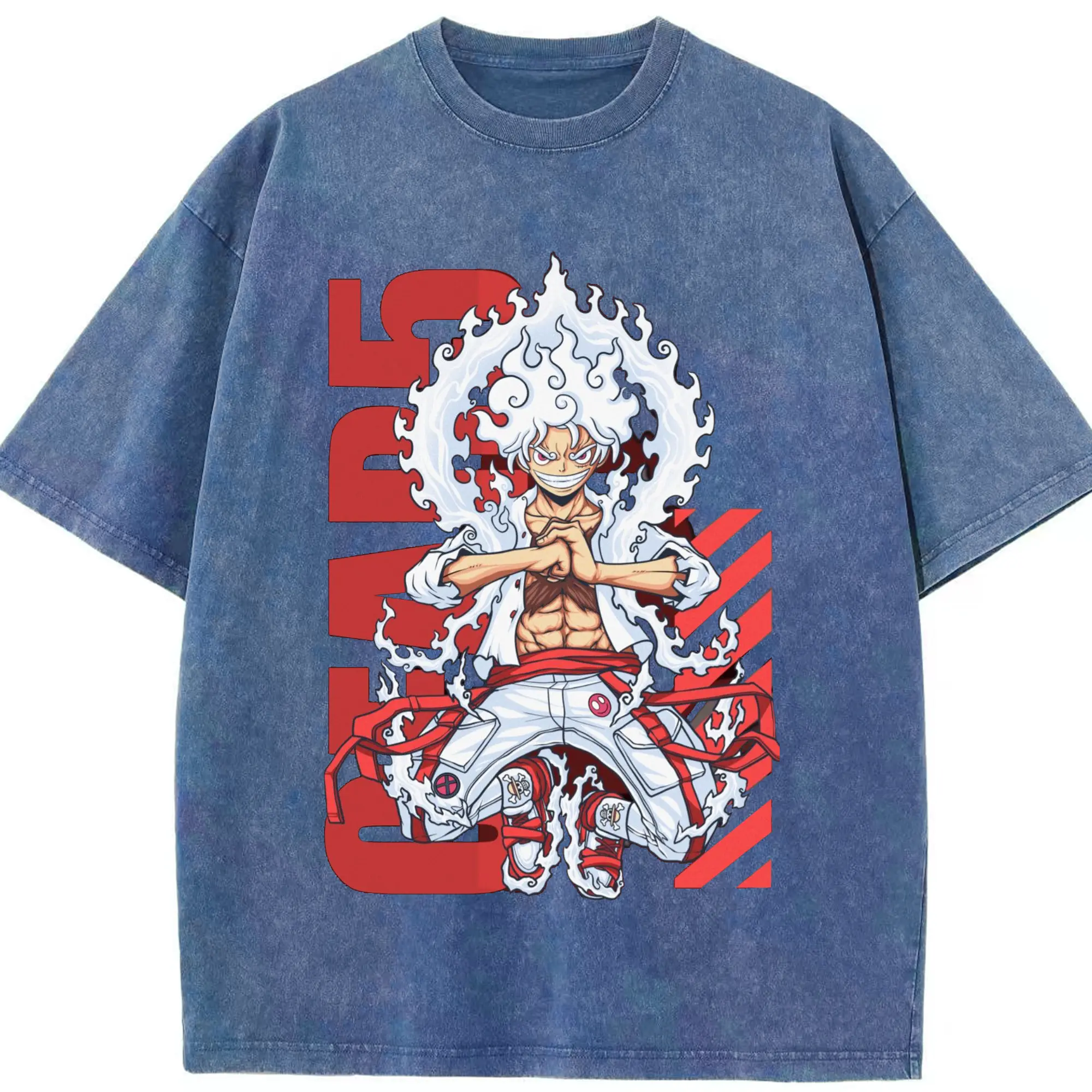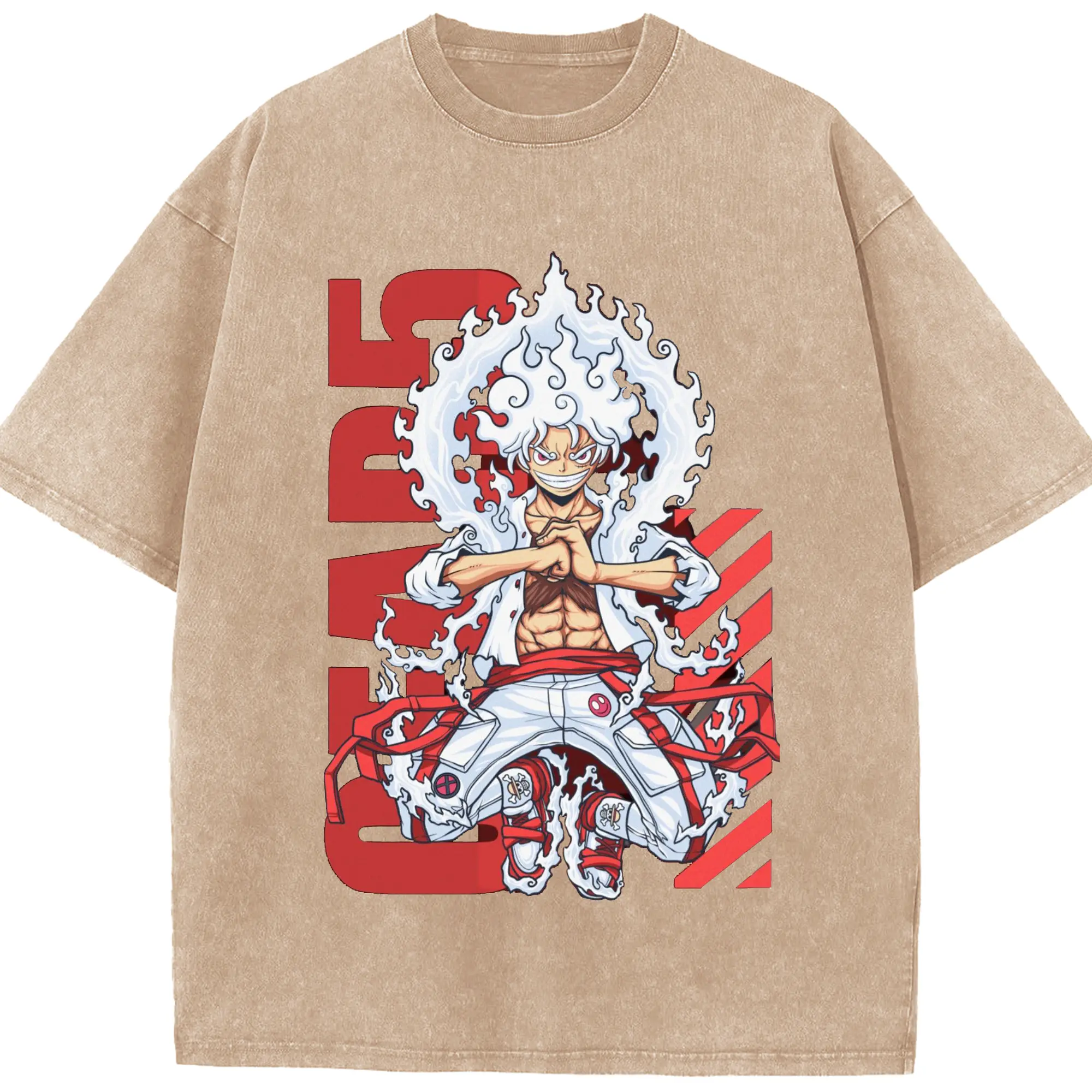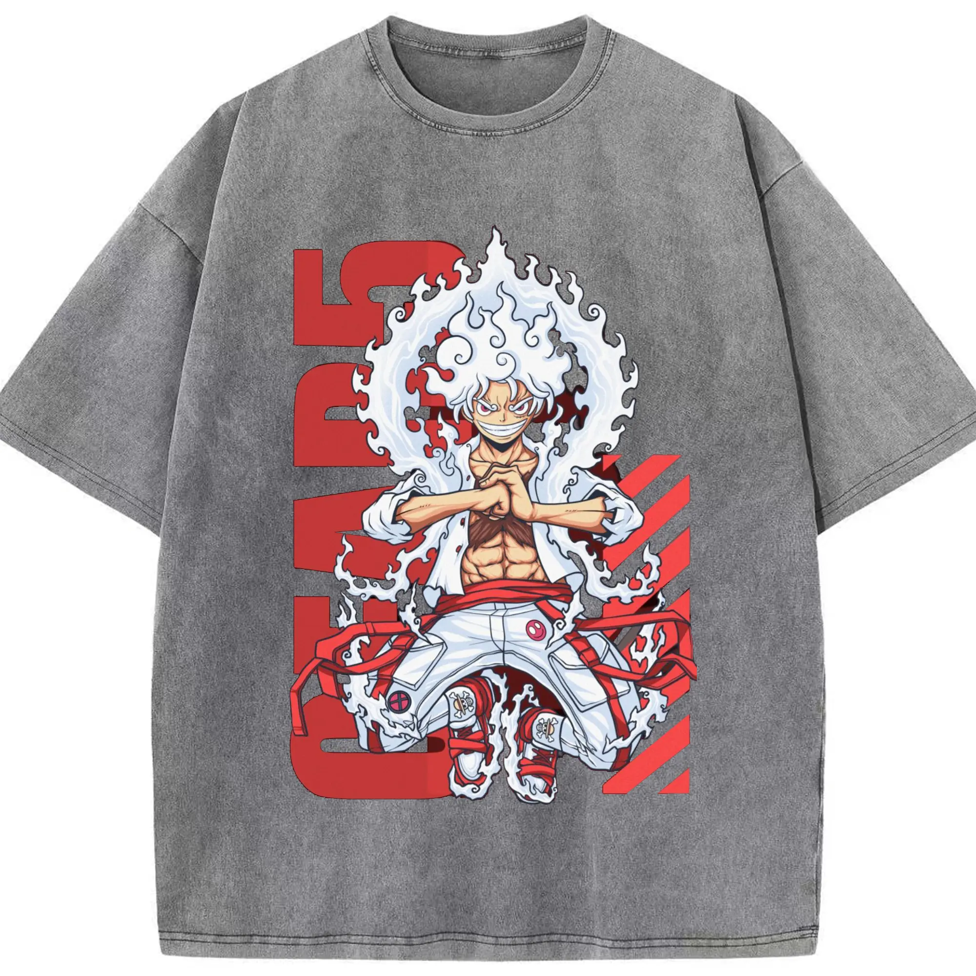 ワンピース モンキー・D・ルフィ - 綿100% ヴィンテージ風 半袖Tシャツ ・ フロントプリント ・ 柔らか肌触り ・ 通気性 快適 ・ スポーツ カジュアル 外出用