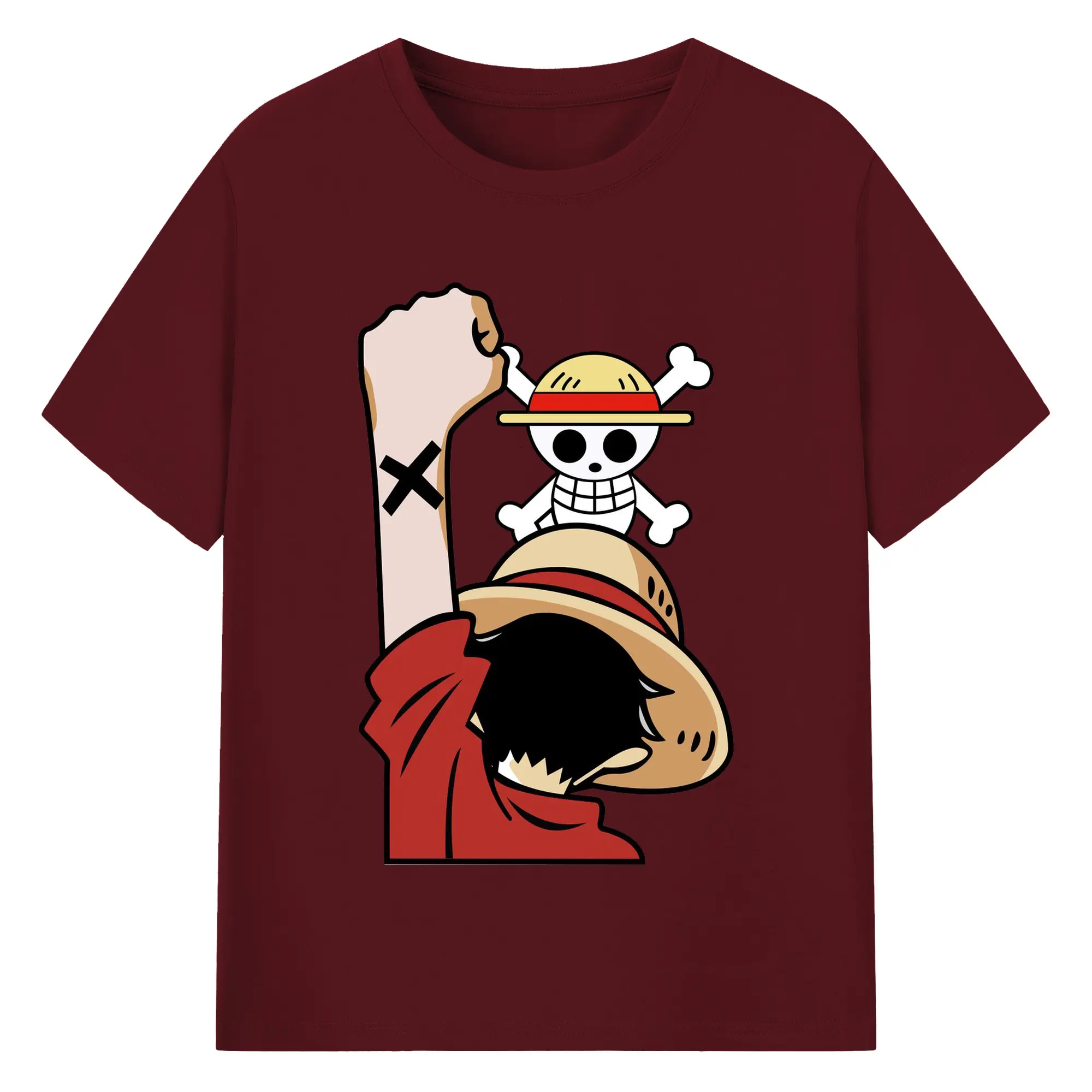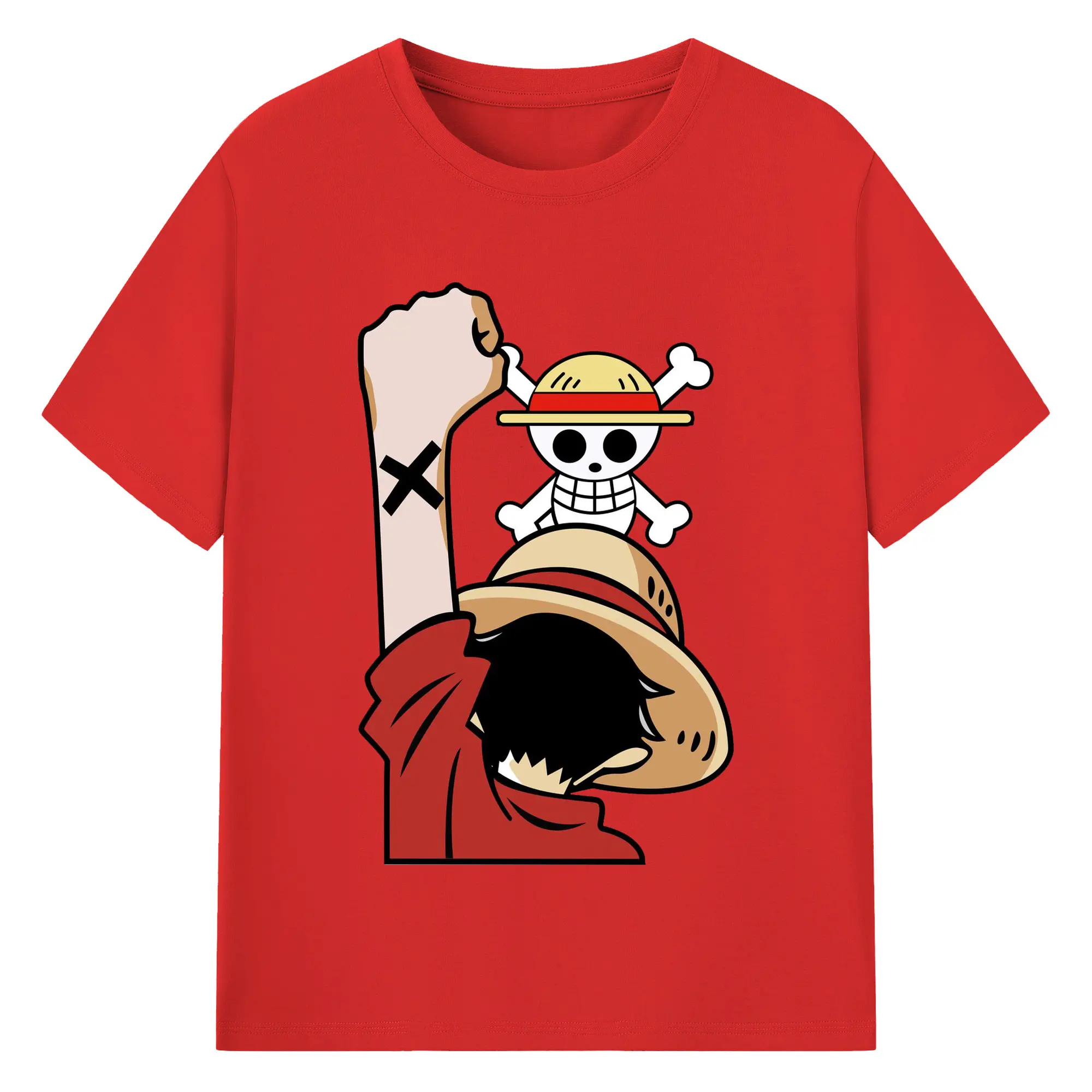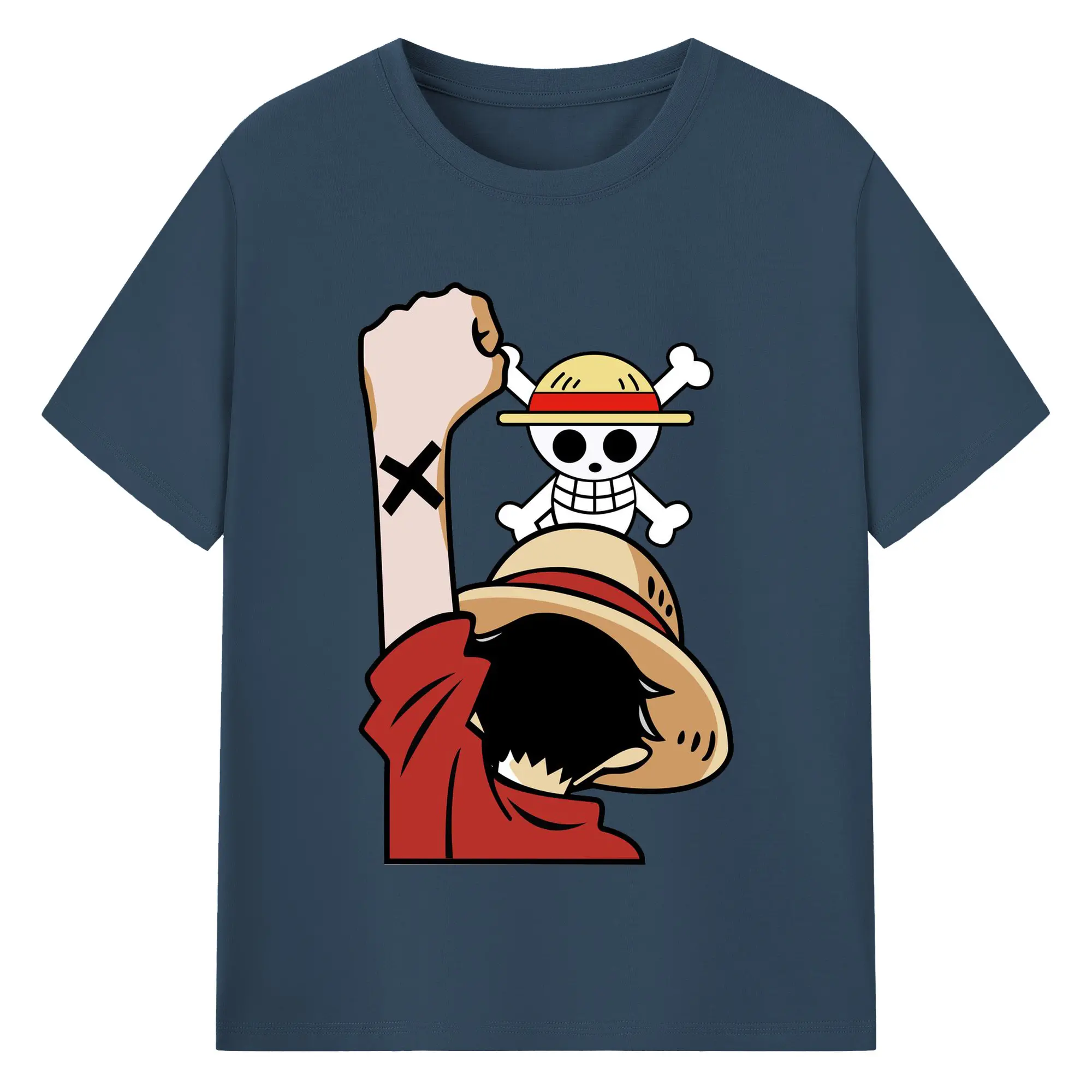 ワンピース モンキー・D・ルフィ - 綿100% 半袖Tシャツ ・ フロントプリント ・ 快適 通気性 ・ 日常使い 散歩 スポーツ用
