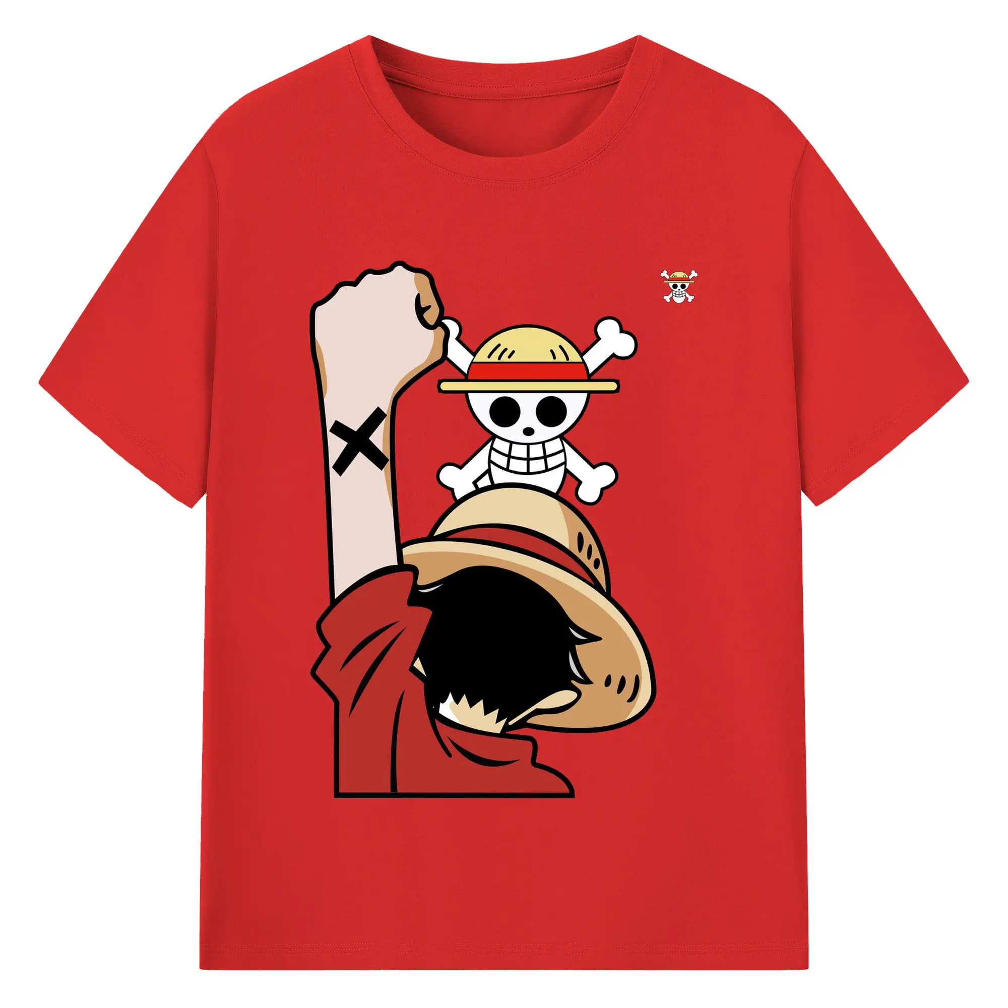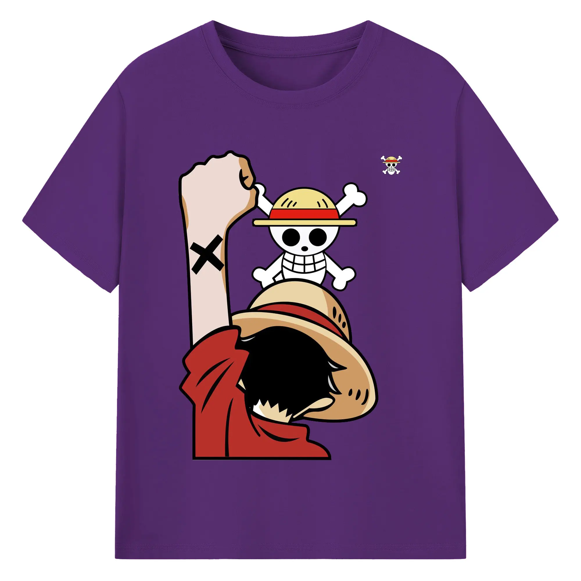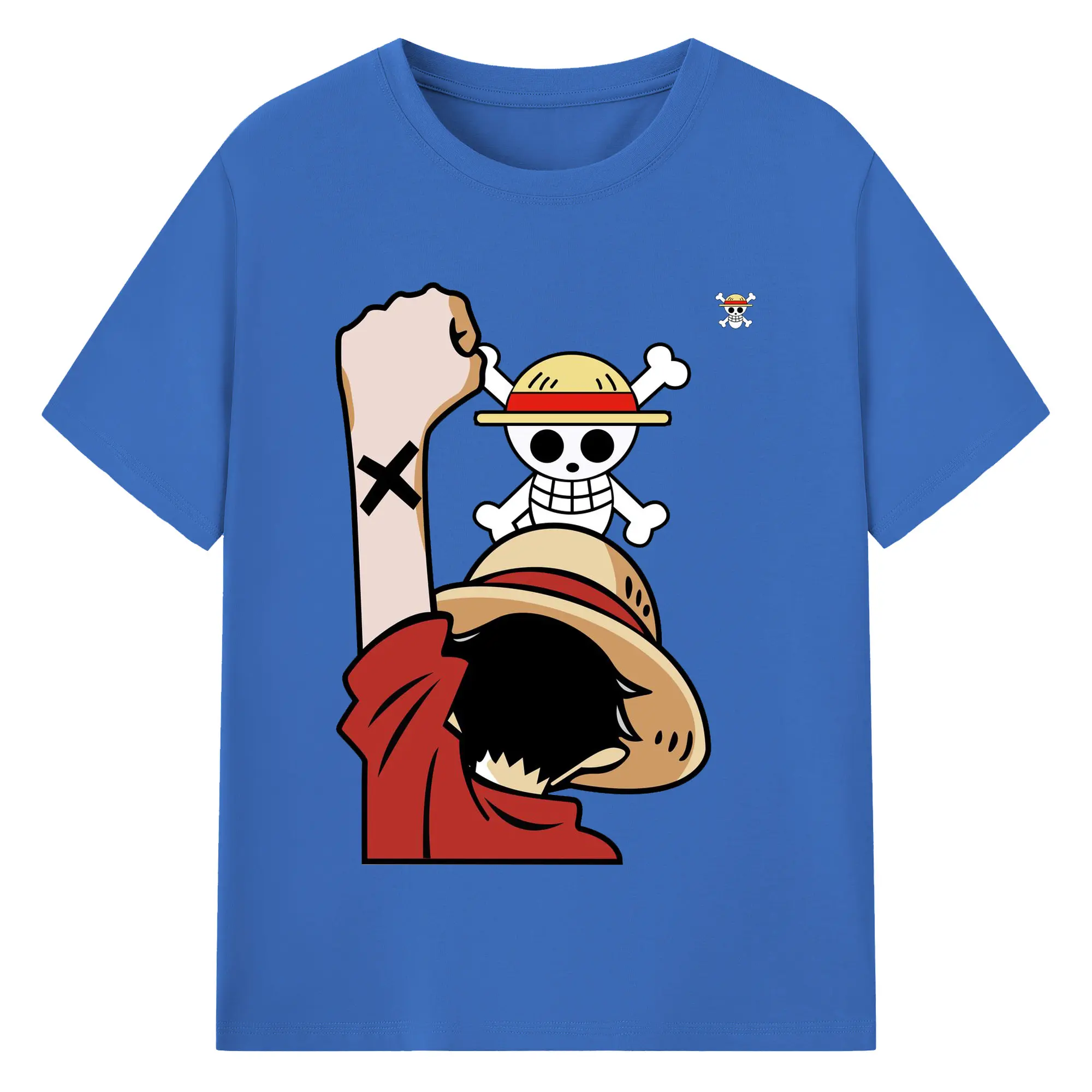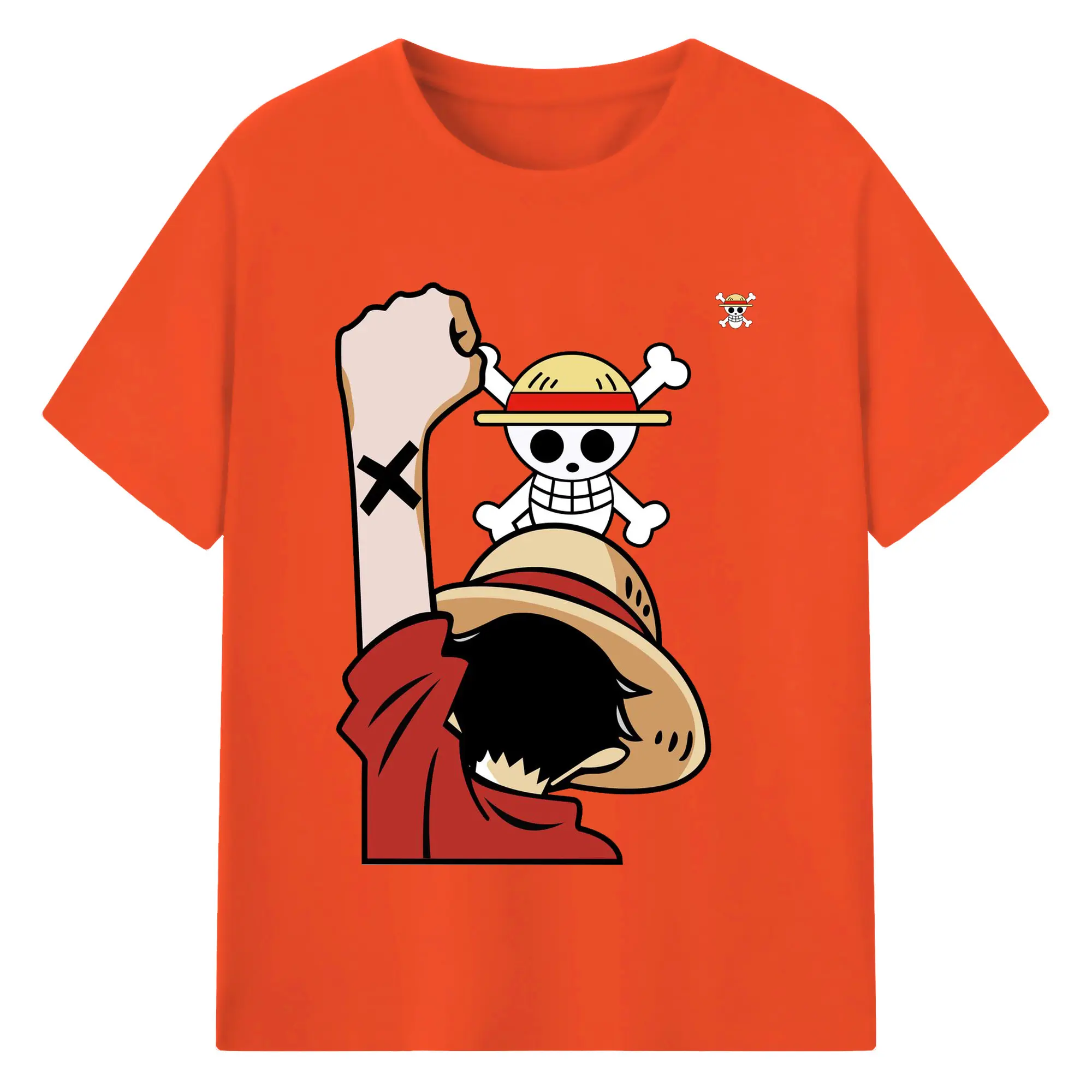 ワンピース モンキー・D・ルフィ - 綿100% 半袖Tシャツ ・ フロントプリント ・ 快適 通気性 ・ 日常使い 散歩 スポーツ用