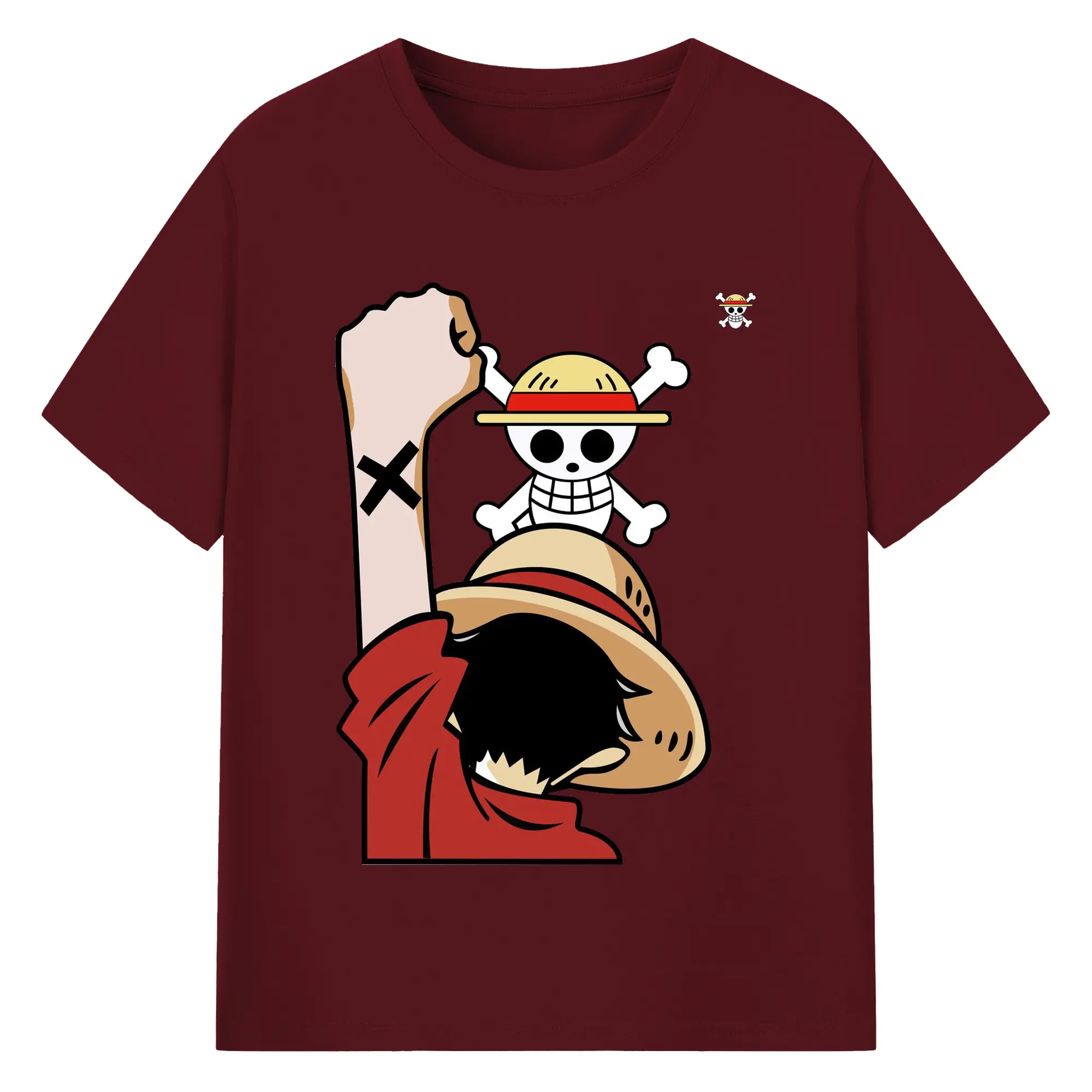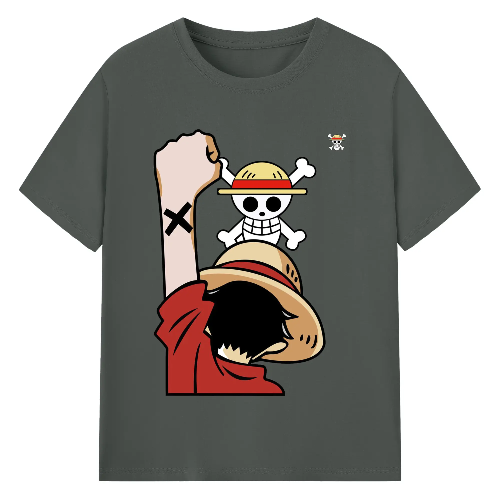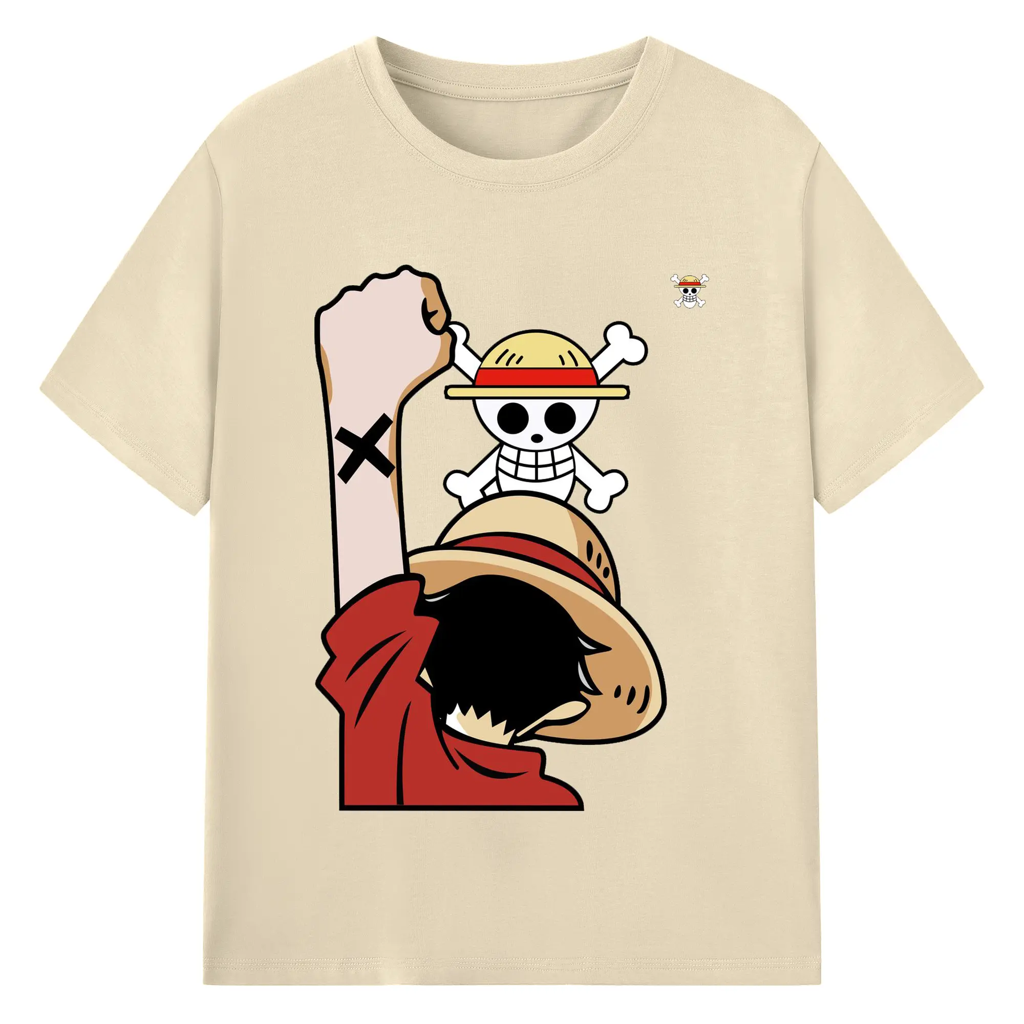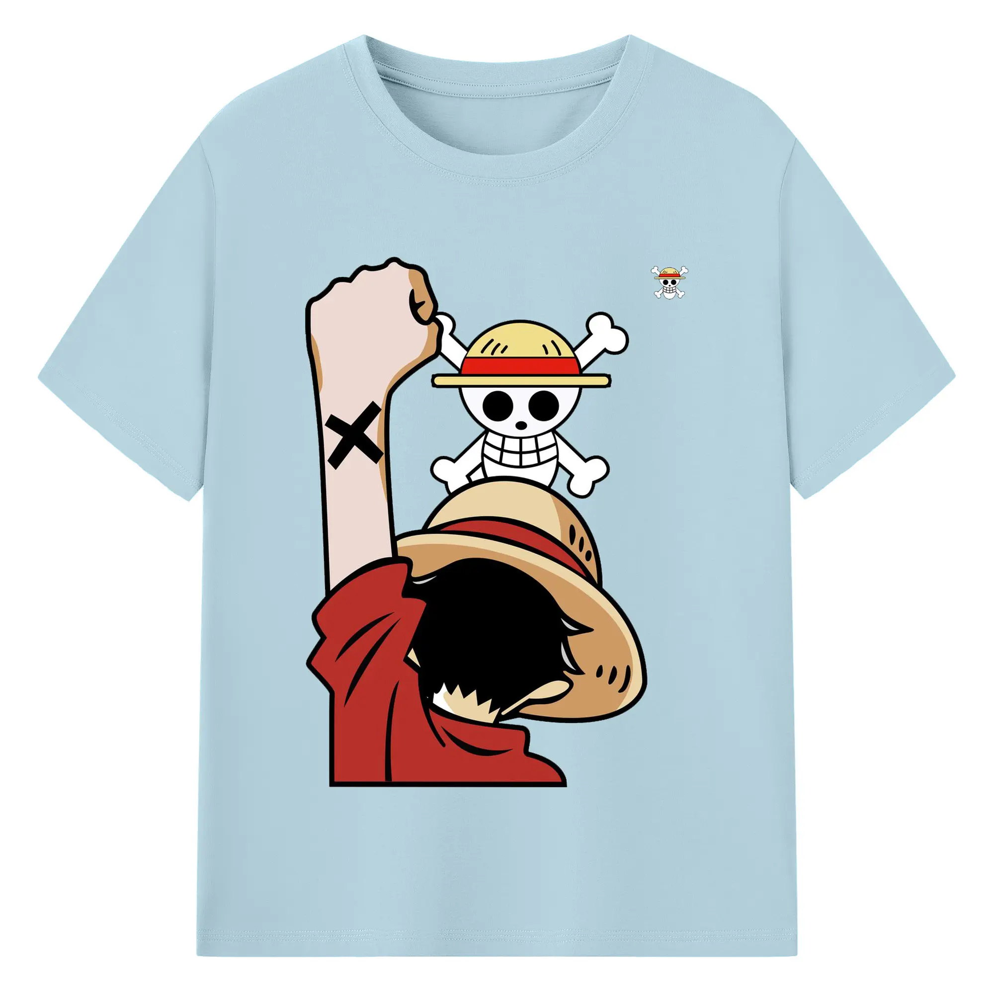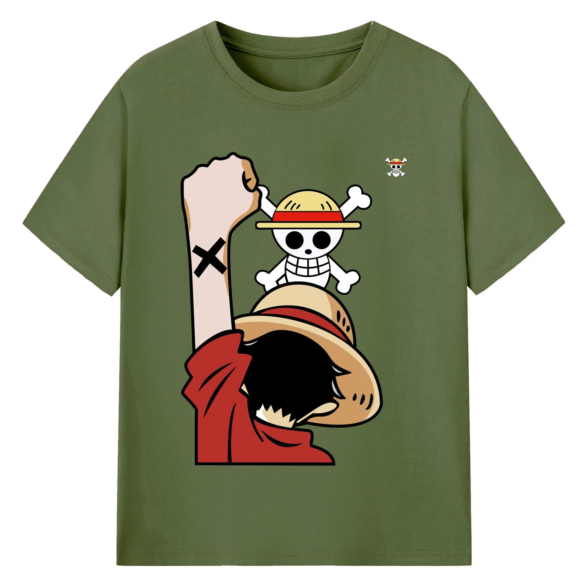 ワンピース モンキー・D・ルフィ - 綿100% 半袖Tシャツ ・ フロントプリント ・ 快適 通気性 ・ 日常使い 散歩 スポーツ用
