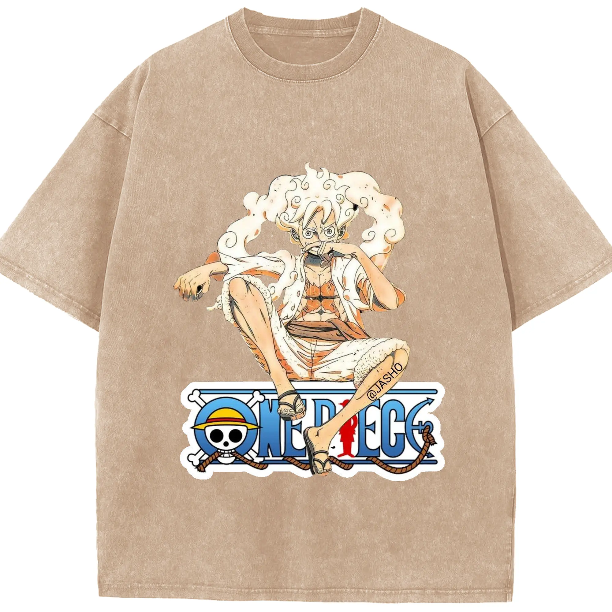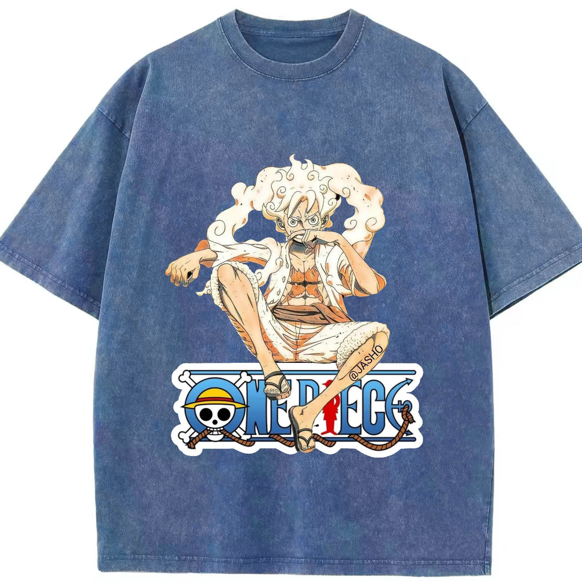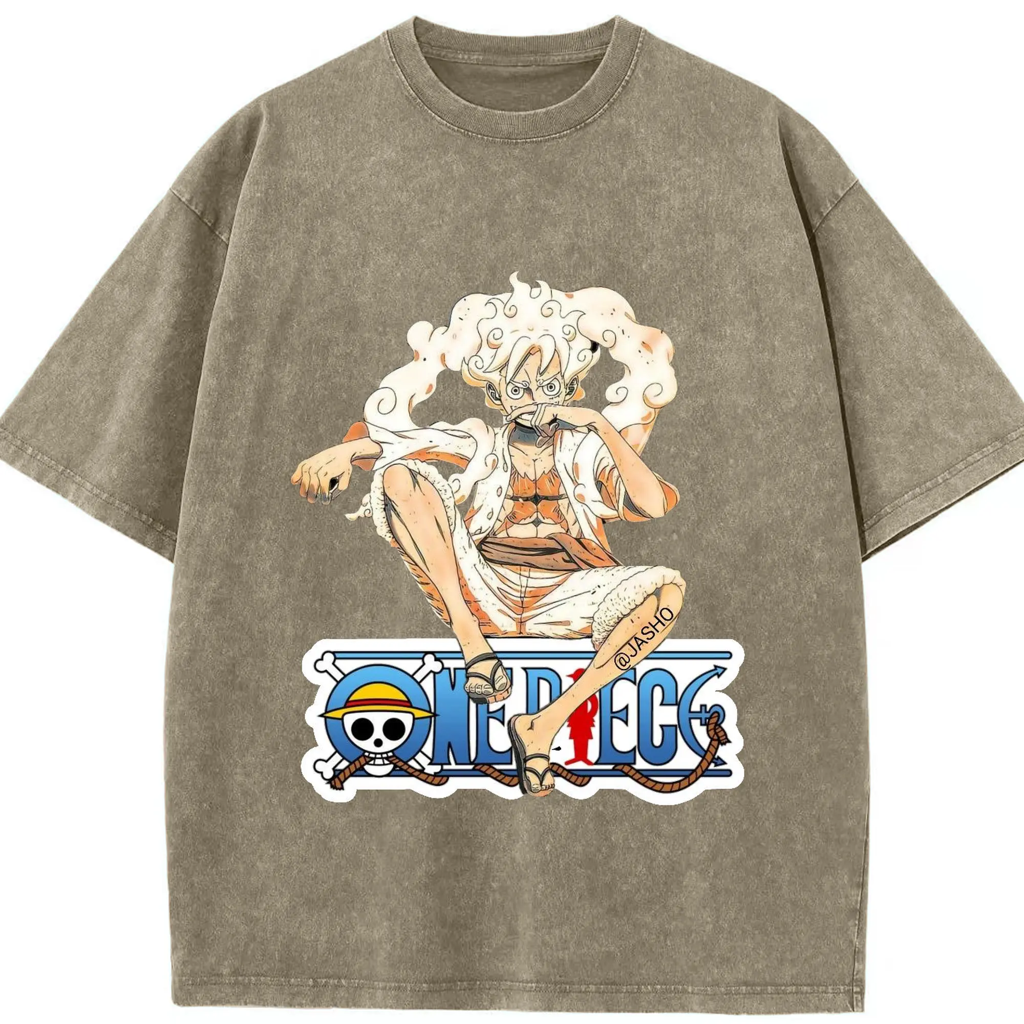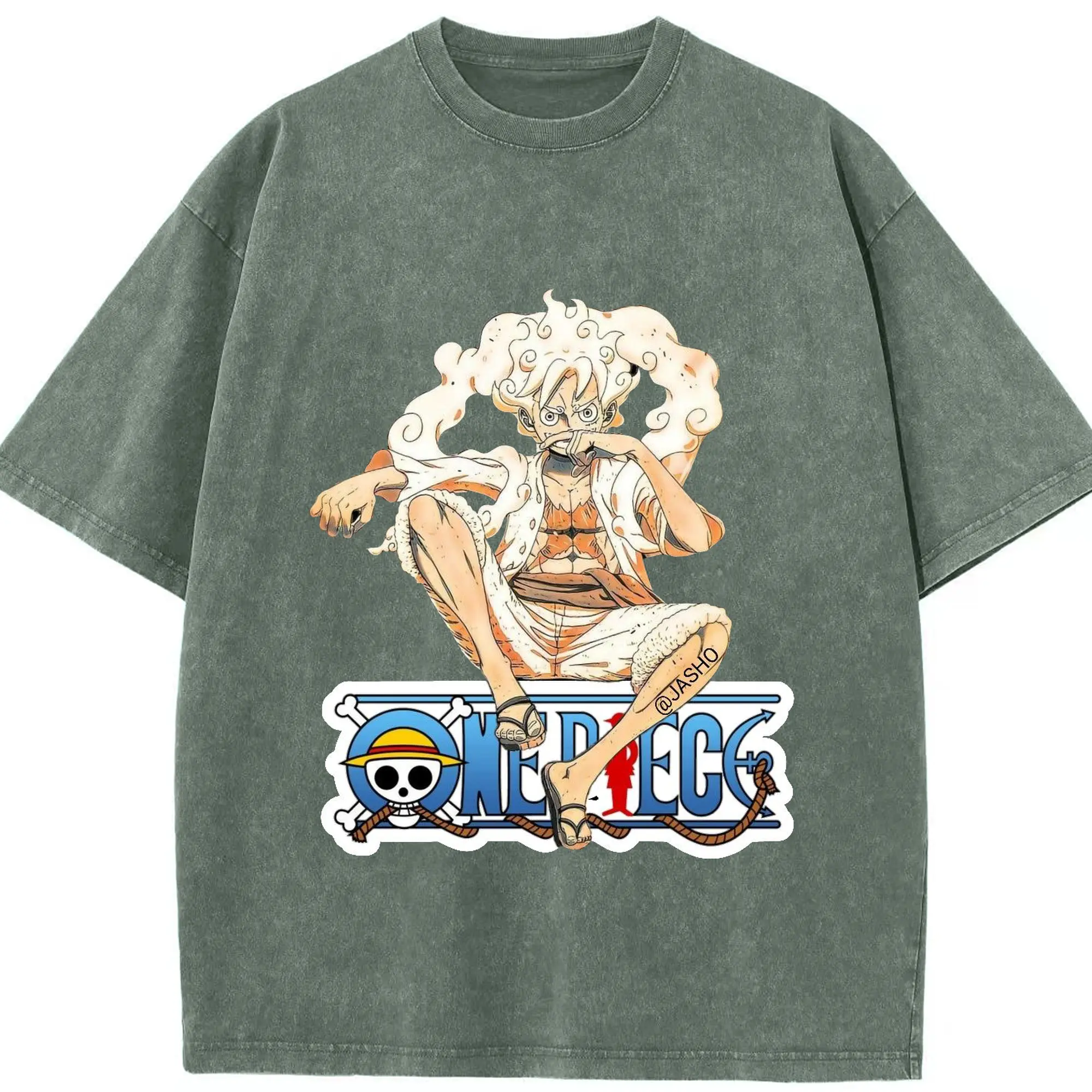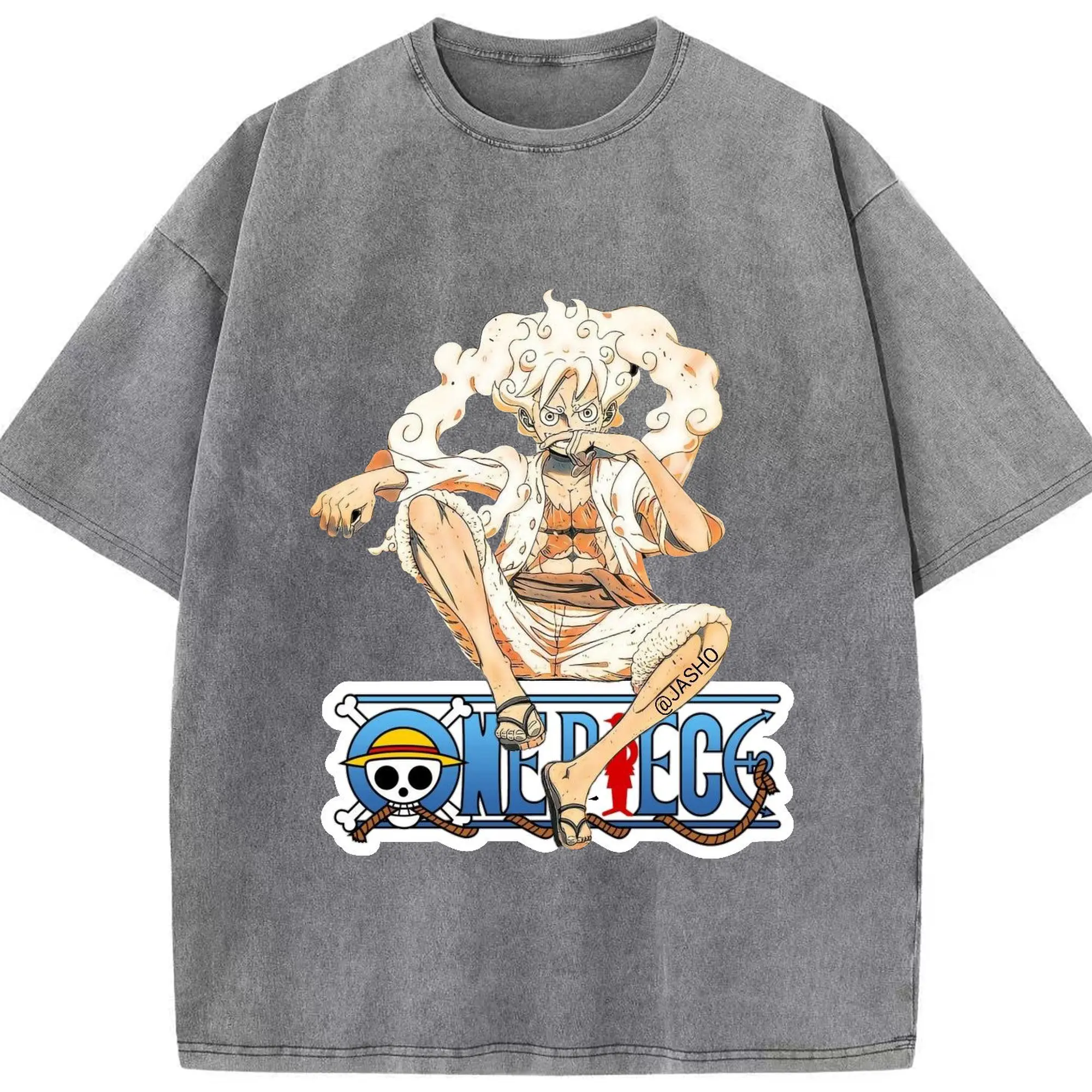 ワンピース モンキー・D・ルフィ - 綿100% ヴィンテージ風 半袖Tシャツ ・ フロントプリント ・ 柔らか肌触り ・ 通気性 快適 ・ スポーツ カジュアル 外出用