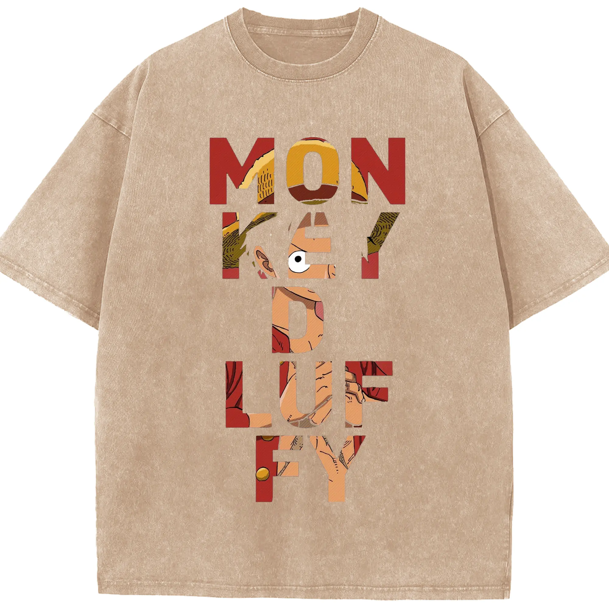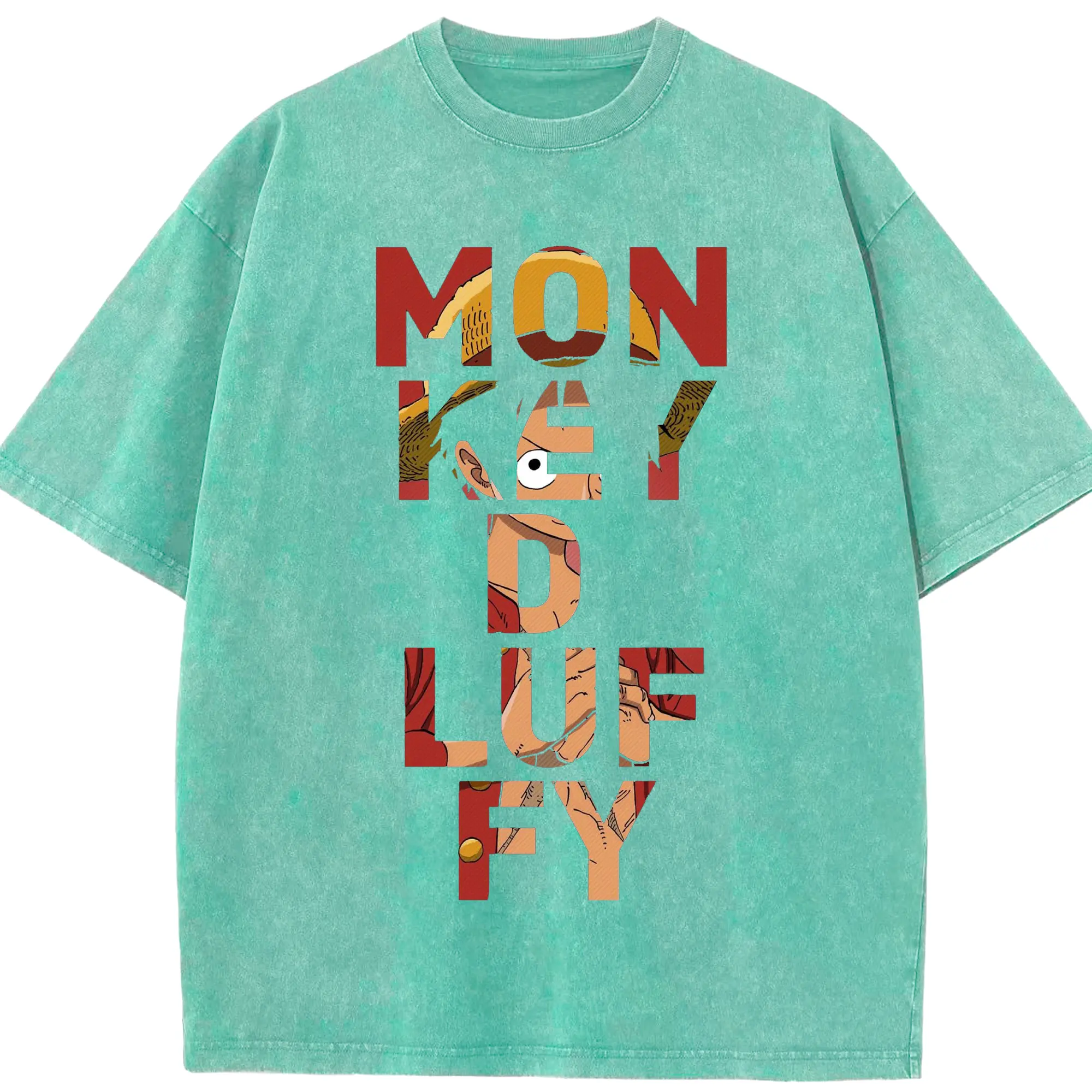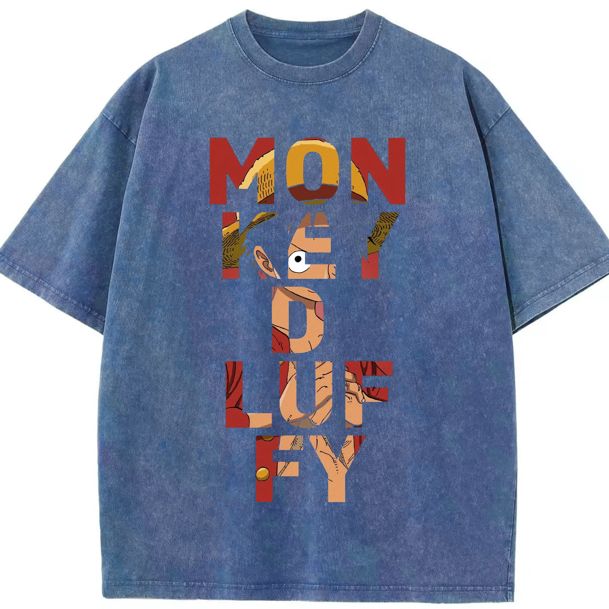 ワンピース モンキー・D・ルフィ - 綿100% ヴィンテージ風 半袖Tシャツ ・ フロントプリント ・ 柔らか肌触り ・ 通気性 快適 ・ スポーツ カジュアル 外出用
