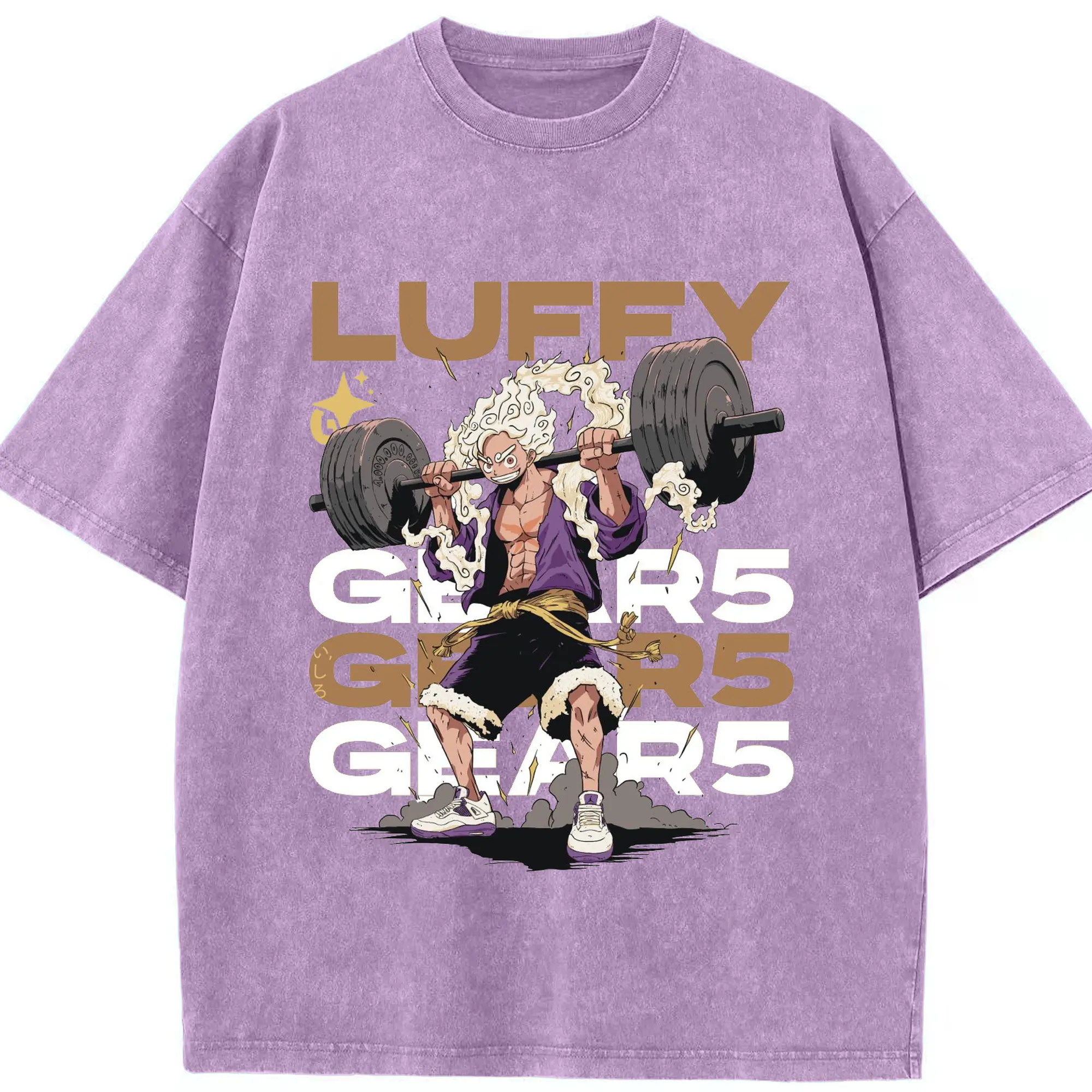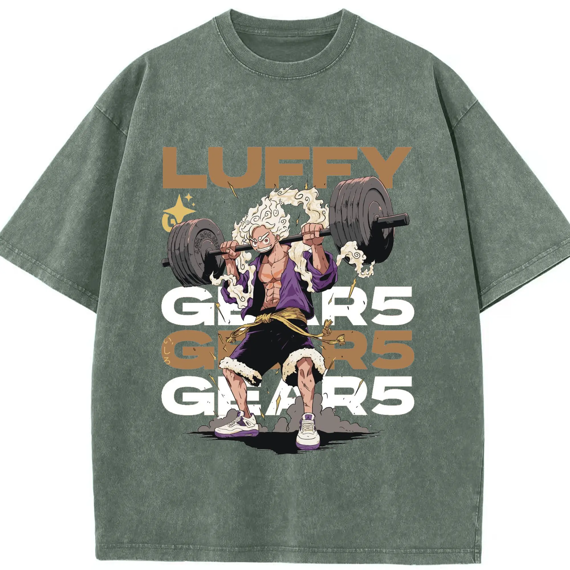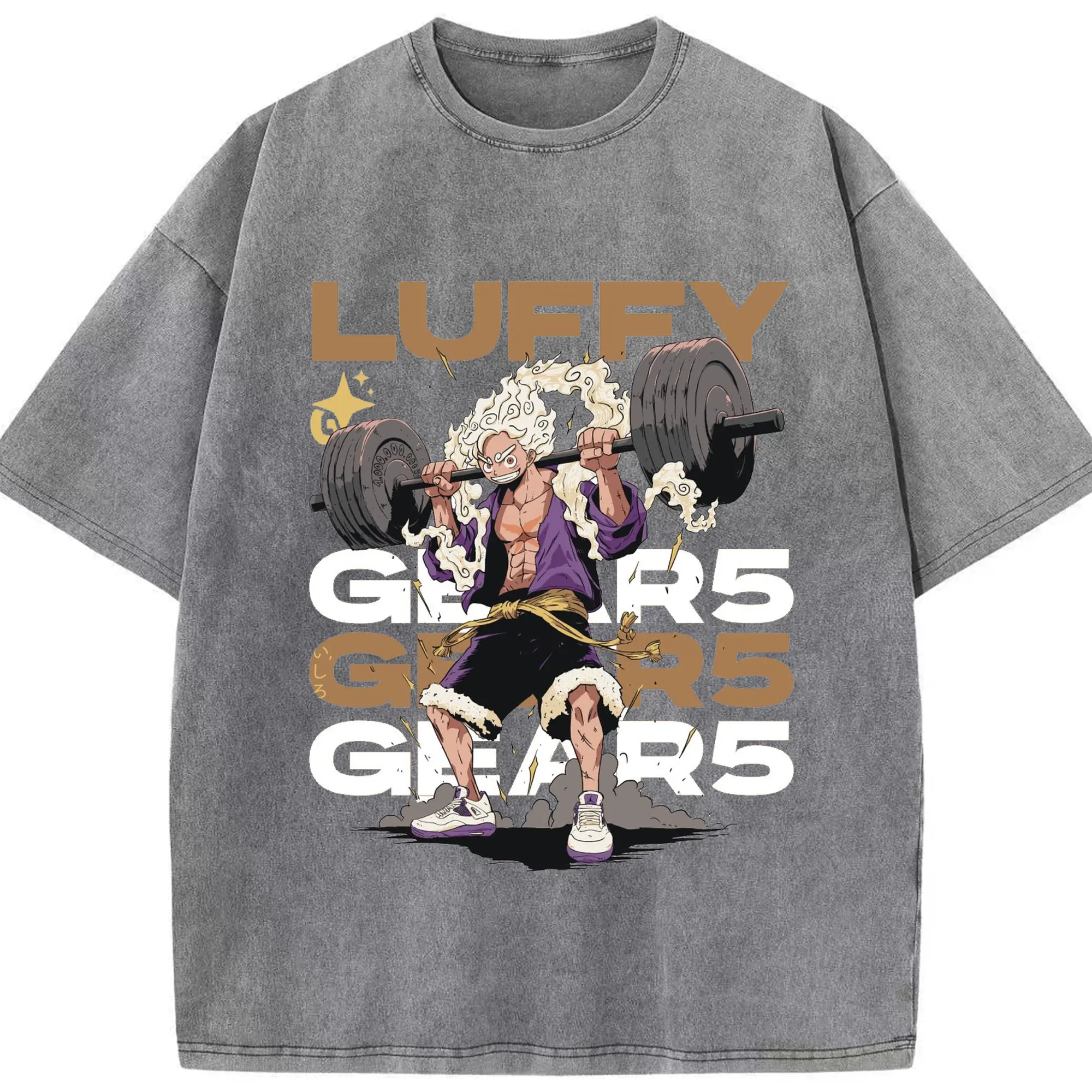 ワンピース モンキー・D・ルフィ GYMトレーニング限界 - 綿100% ヴィンテージ風 半袖Tシャツ ・ フロントプリント ・ 柔らか肌触り ・ 通気性 快適 ・ スポーツ カジュアル 外出用