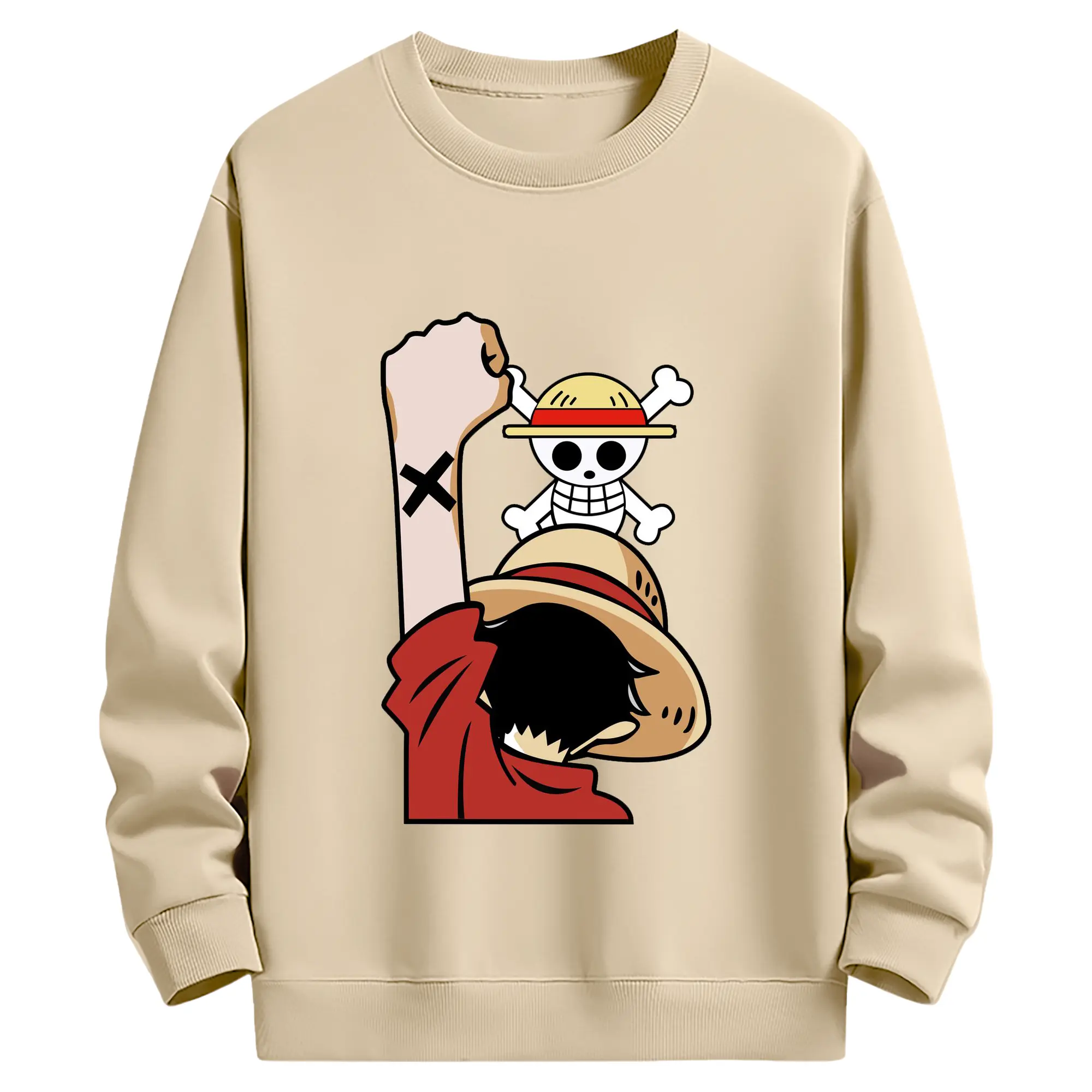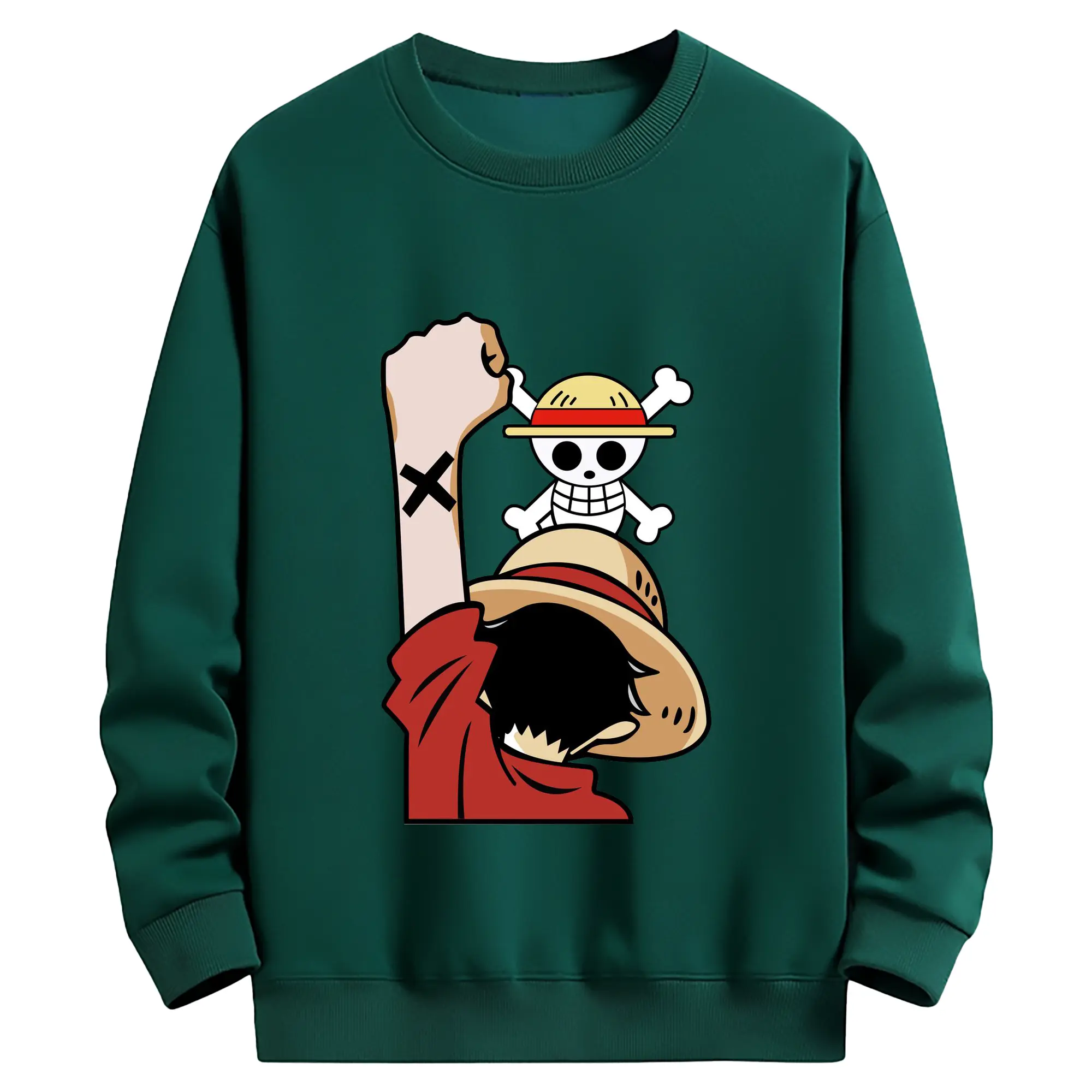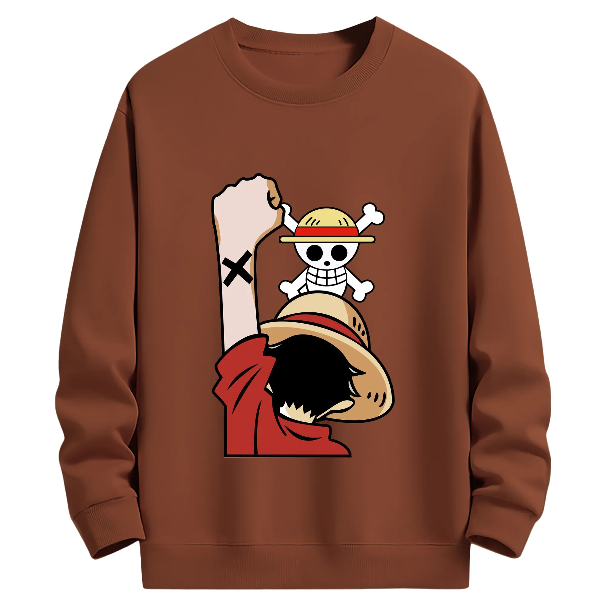 ワンピース モンキー・D・ルフィ - 高品質 クルーネック スウェット ・ コットン59% ポリエステル41% ・ ユニセックス 長袖 トレーナー ・ カジュアル デイリー スポーツ 散歩用