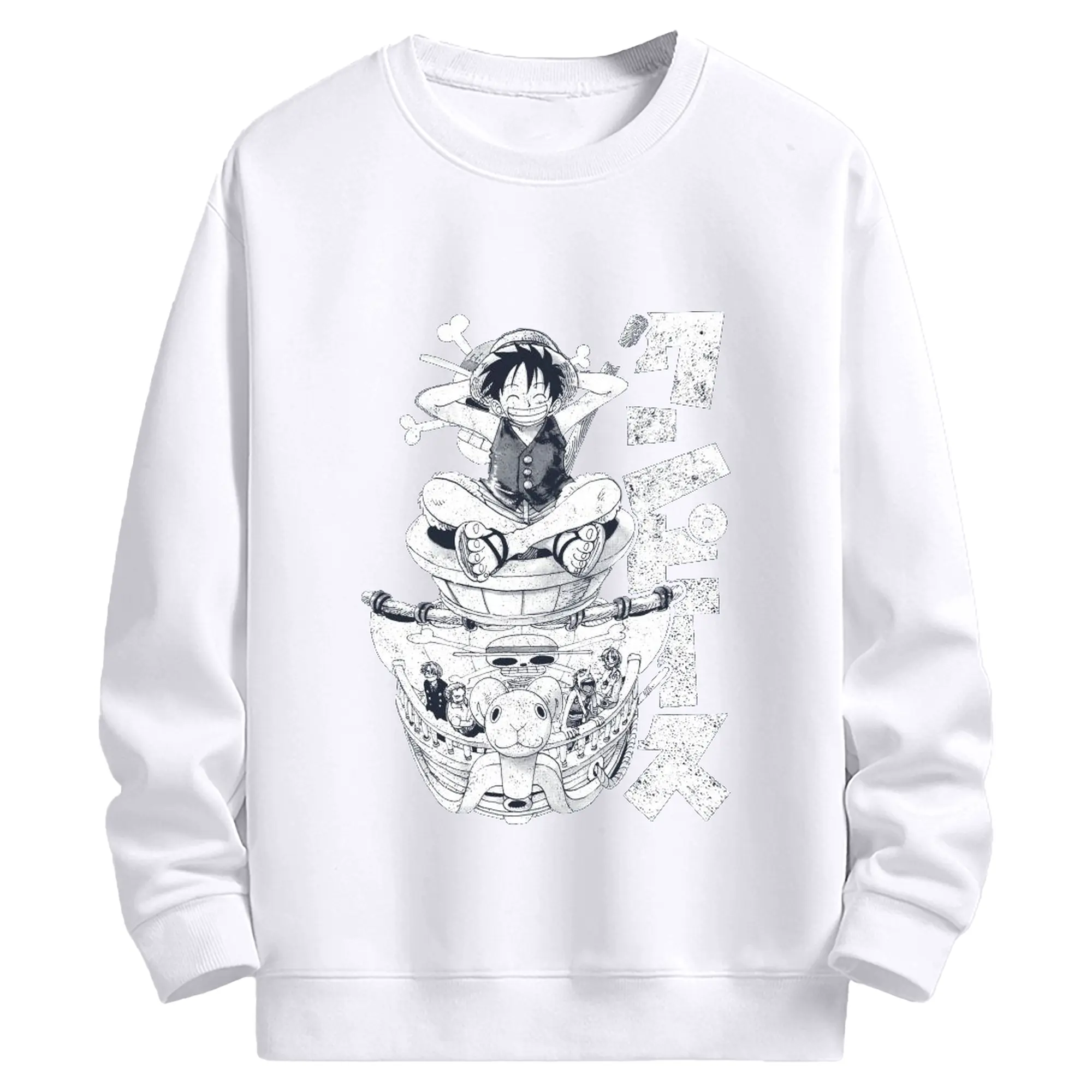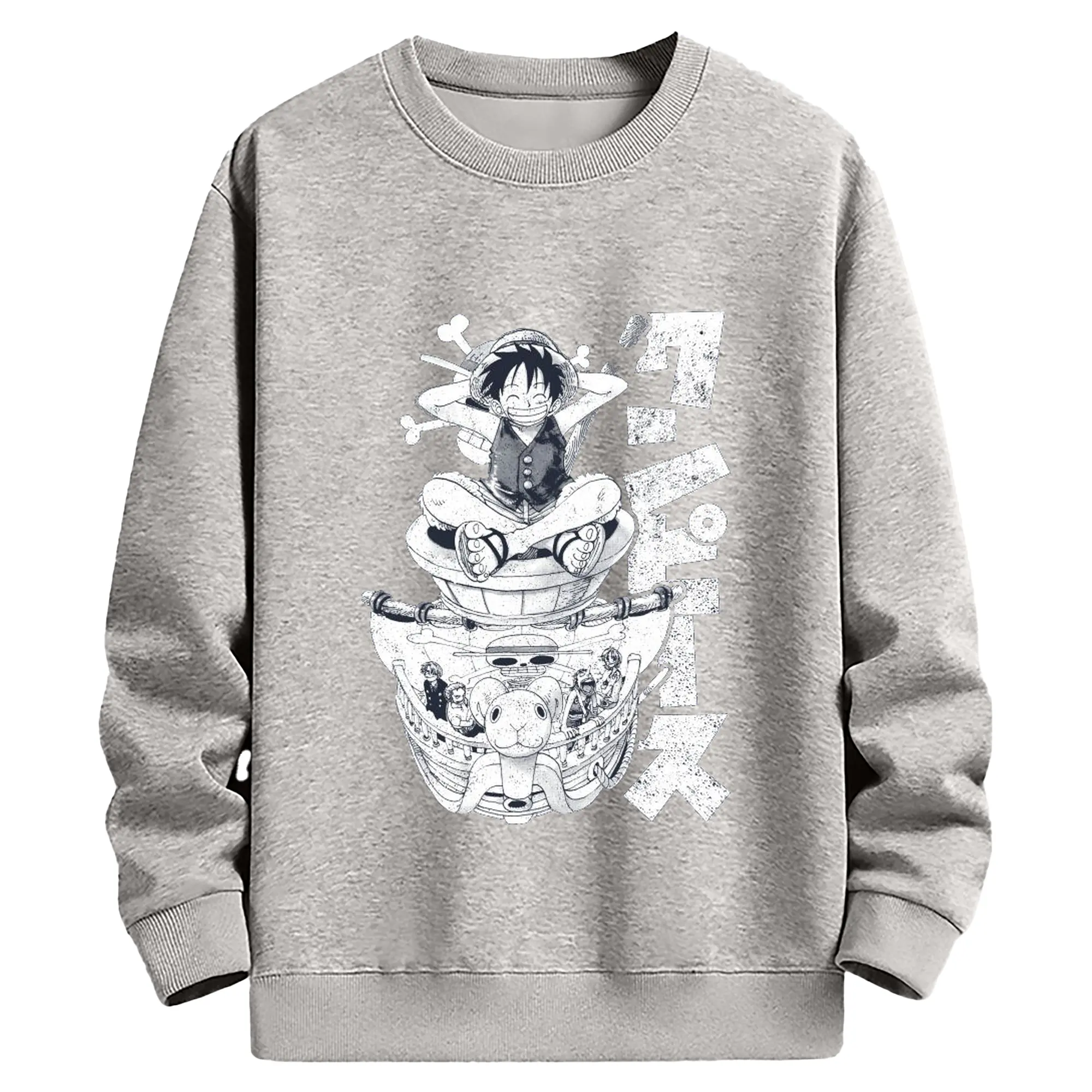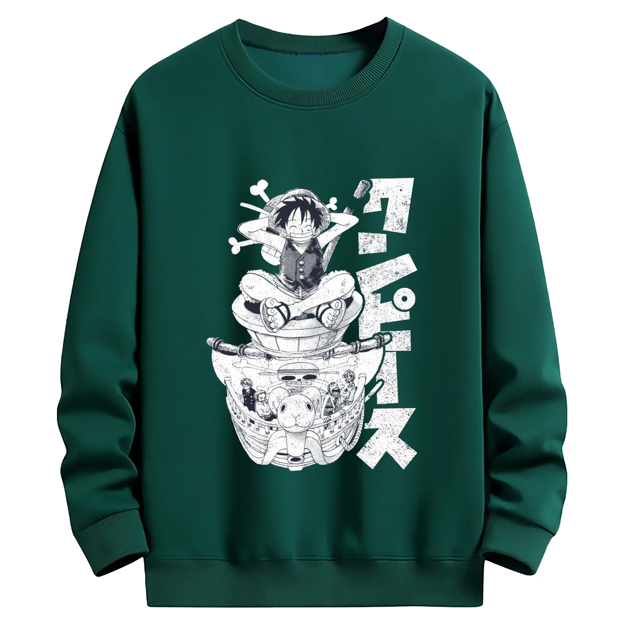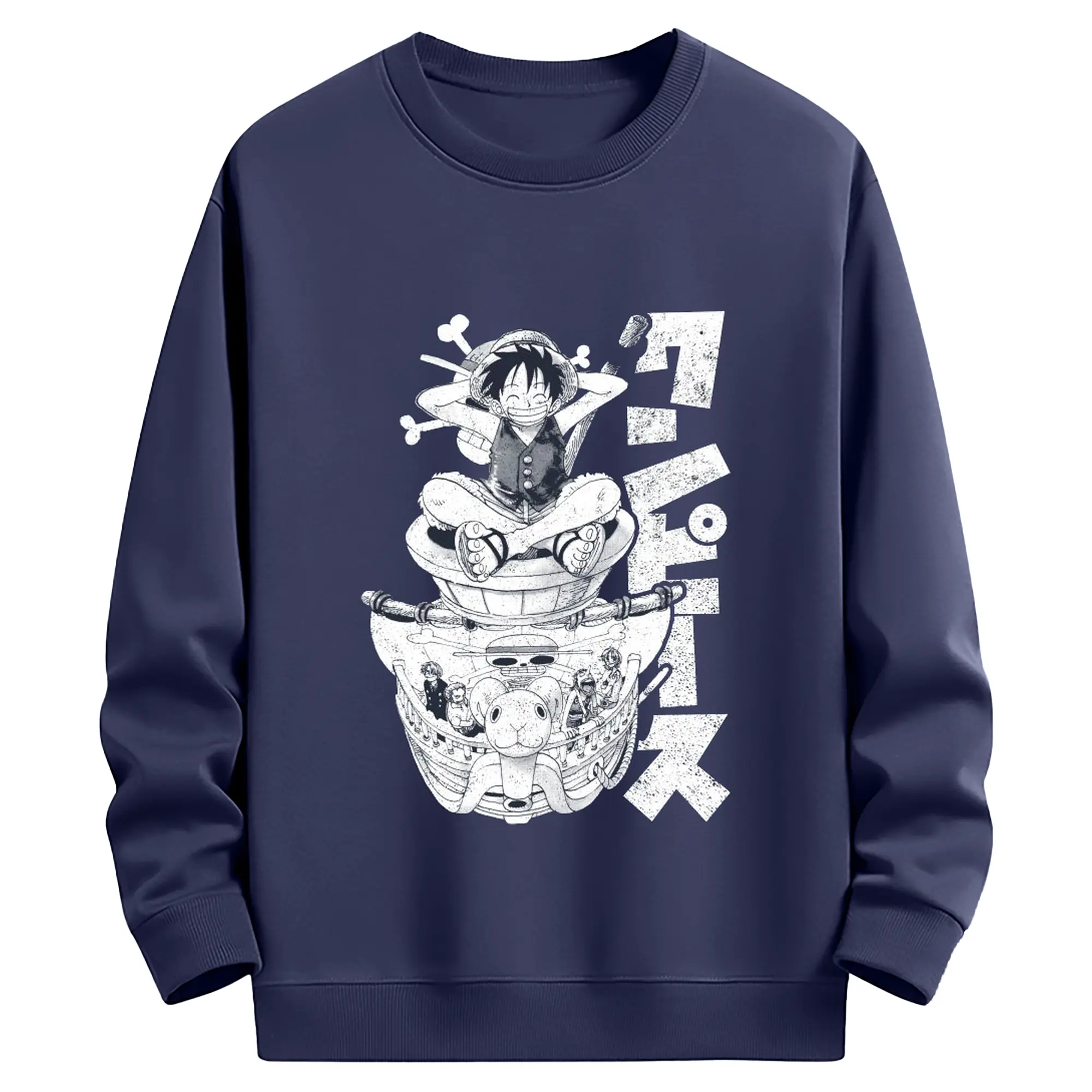 ワンピース モンキー・D・ルフィ - 高品質 クルーネック スウェット ・ コットン59% ポリエステル41% ・ ユニセックス 長袖 トレーナー ・ カジュアル デイリー スポーツ 散歩用