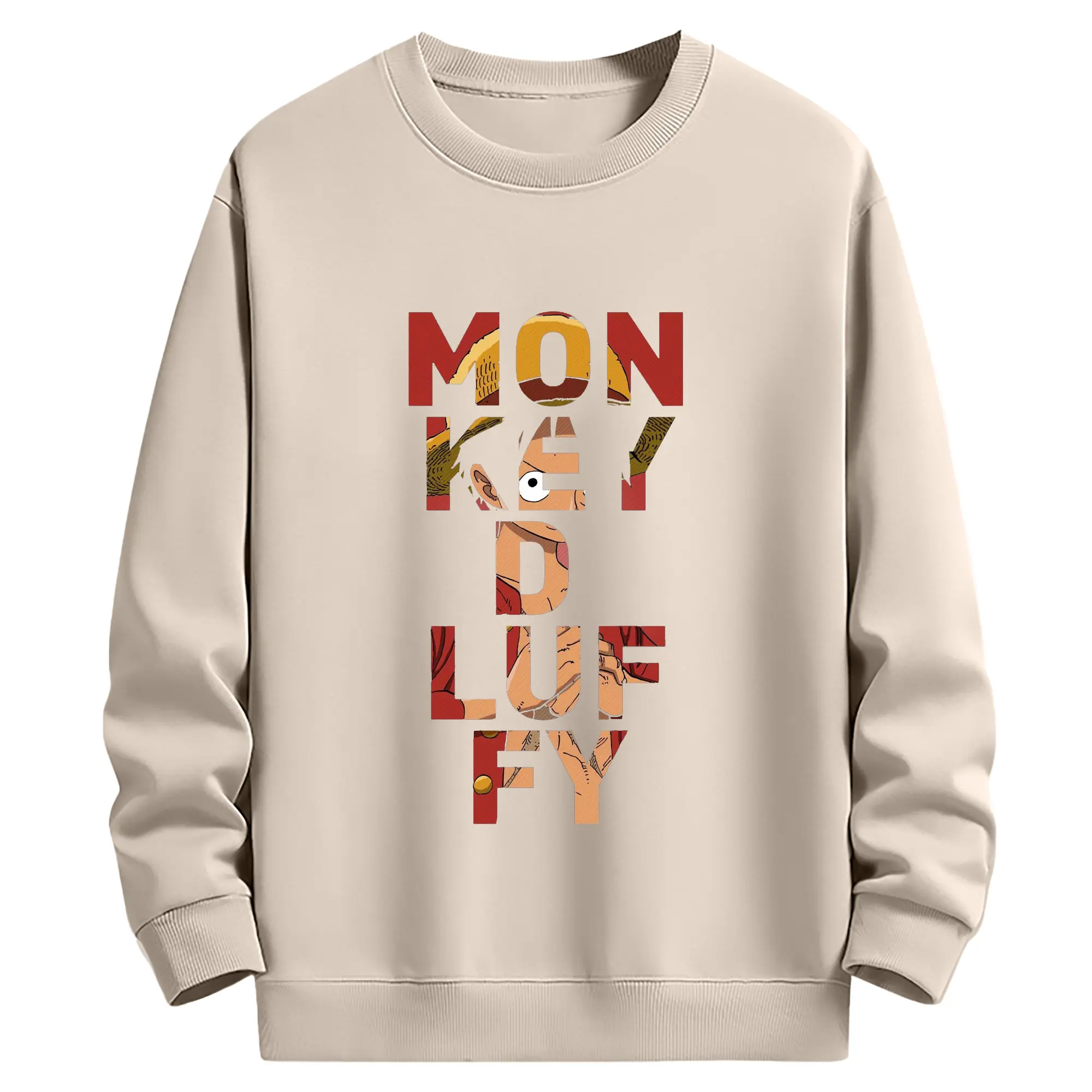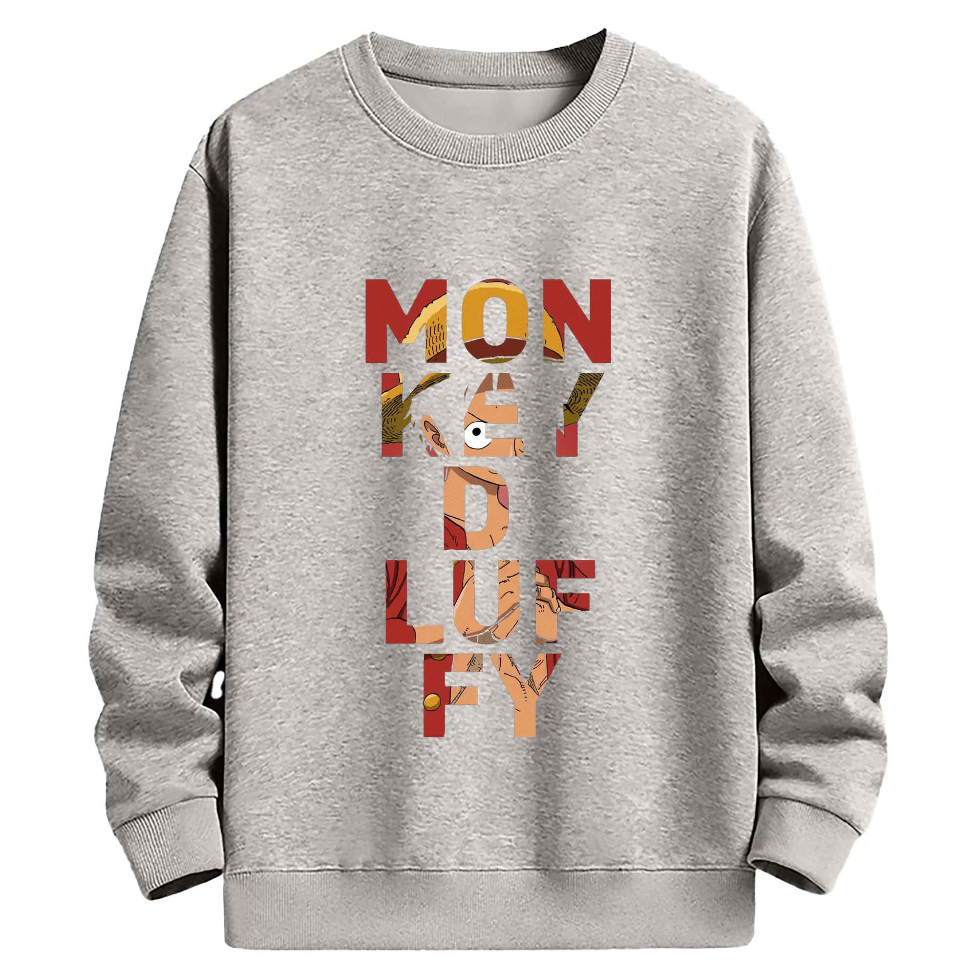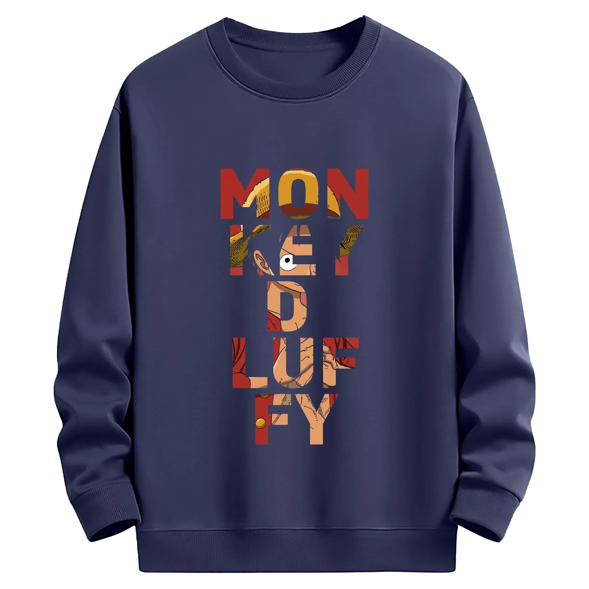 ワンピース モンキー・D・ルフィ - 高品質 クルーネック スウェット ・ コットン59% ポリエステル41% ・ ユニセックス 長袖 トレーナー ・ カジュアル デイリー スポーツ 散歩用