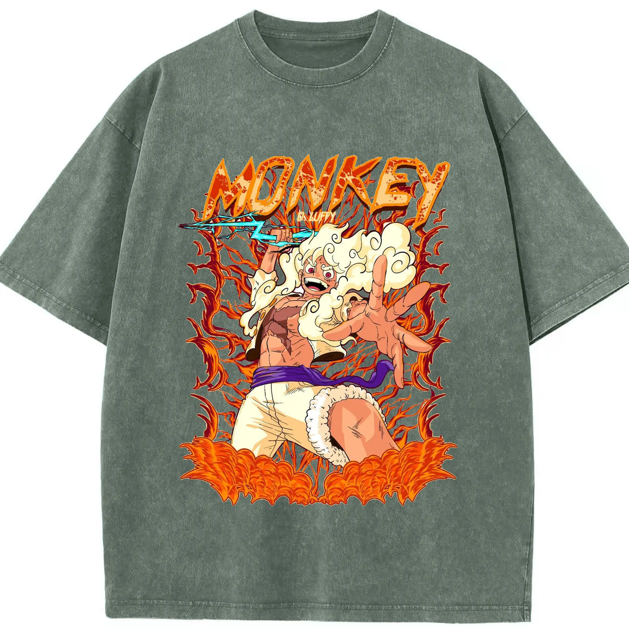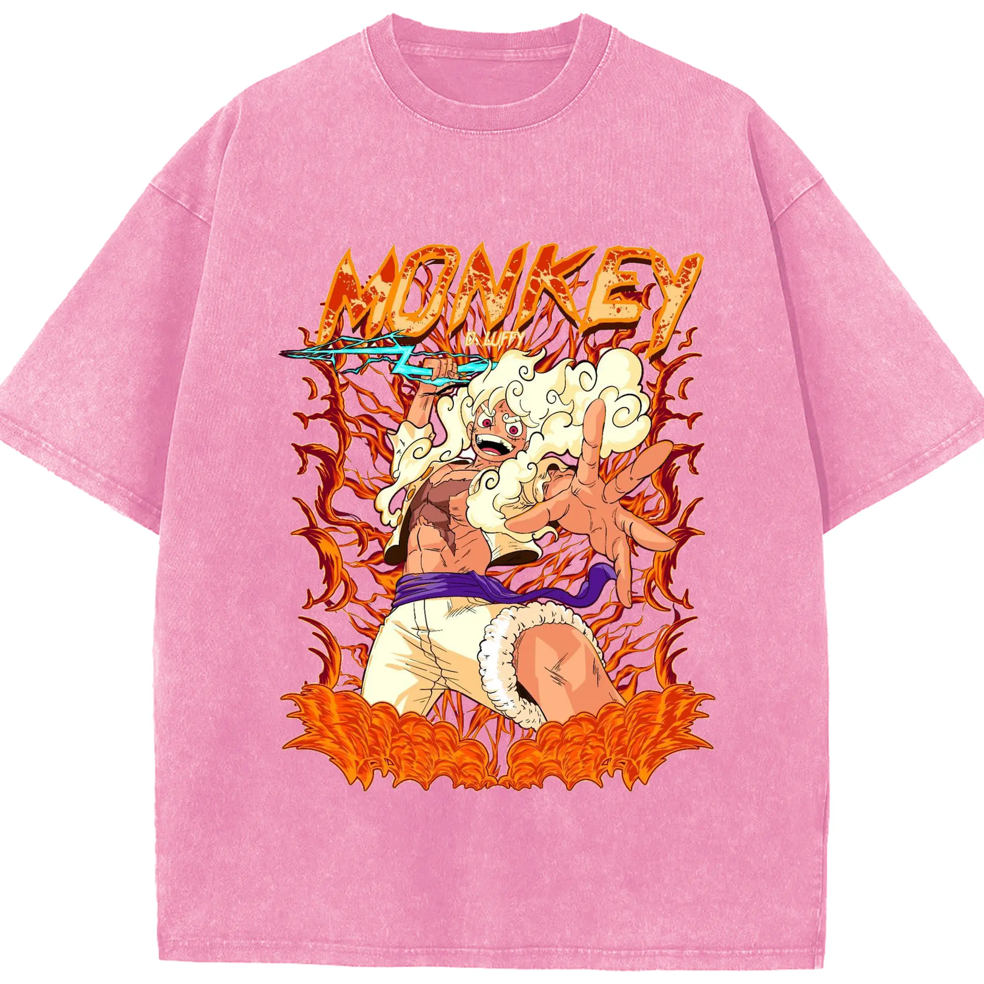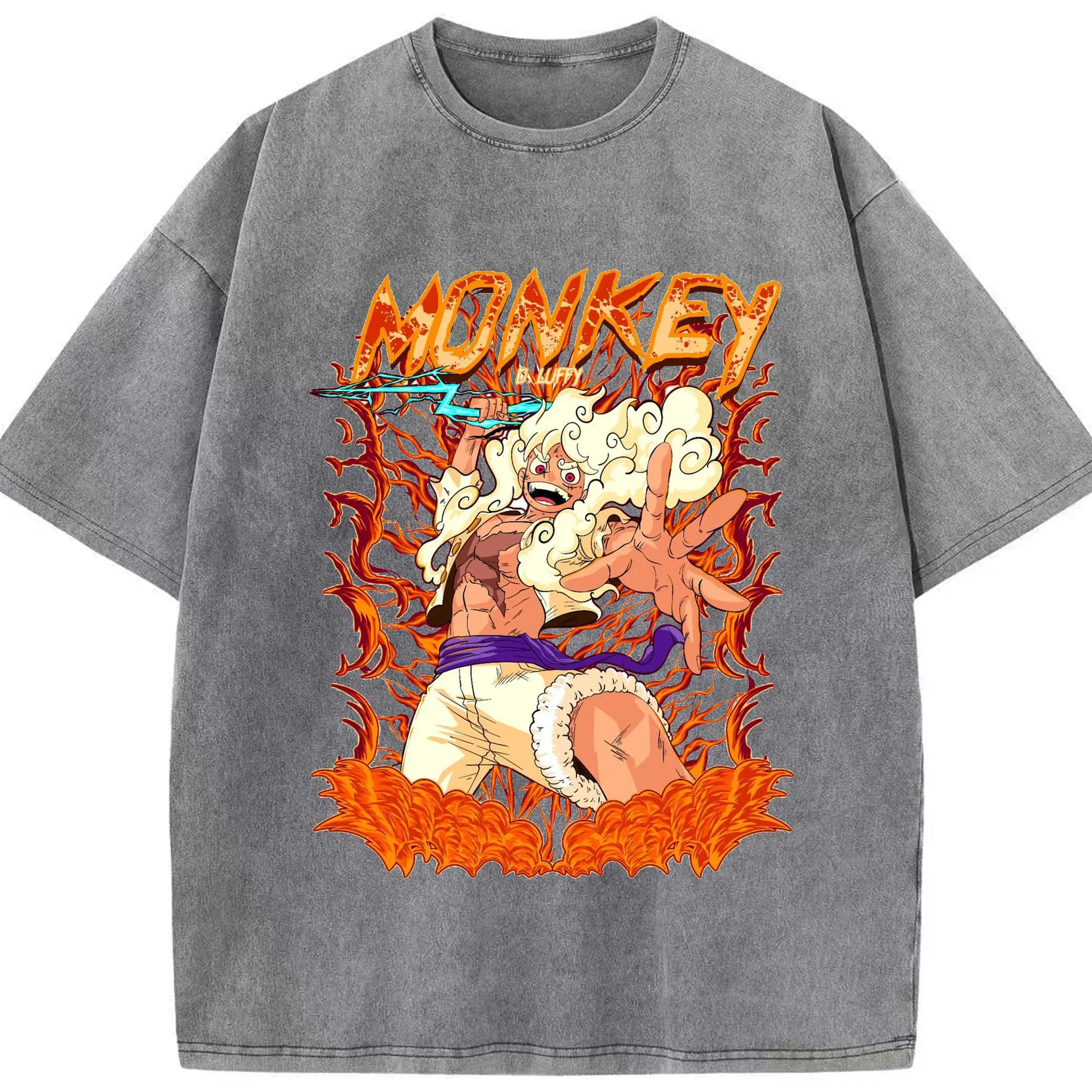 ワンピース モンキー・D・ルフィ - 綿100% ヴィンテージ風 半袖Tシャツ ・ フロントプリント ・ 柔らか肌触り ・ 通気性 快適 ・ スポーツ カジュアル 外出用