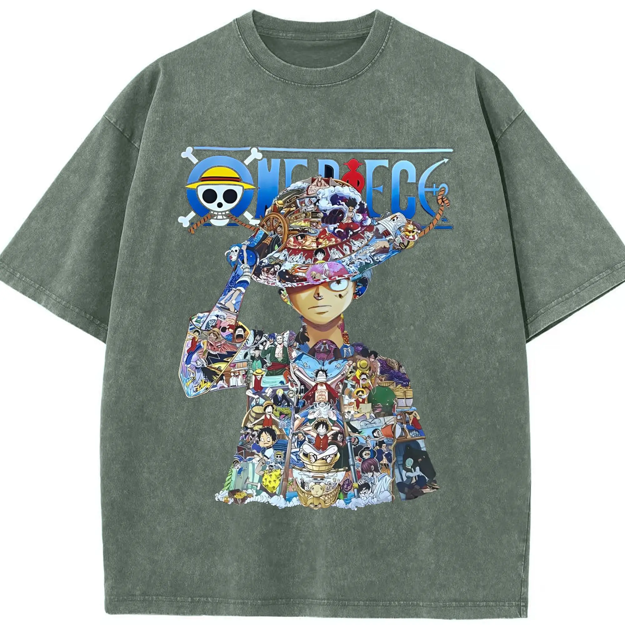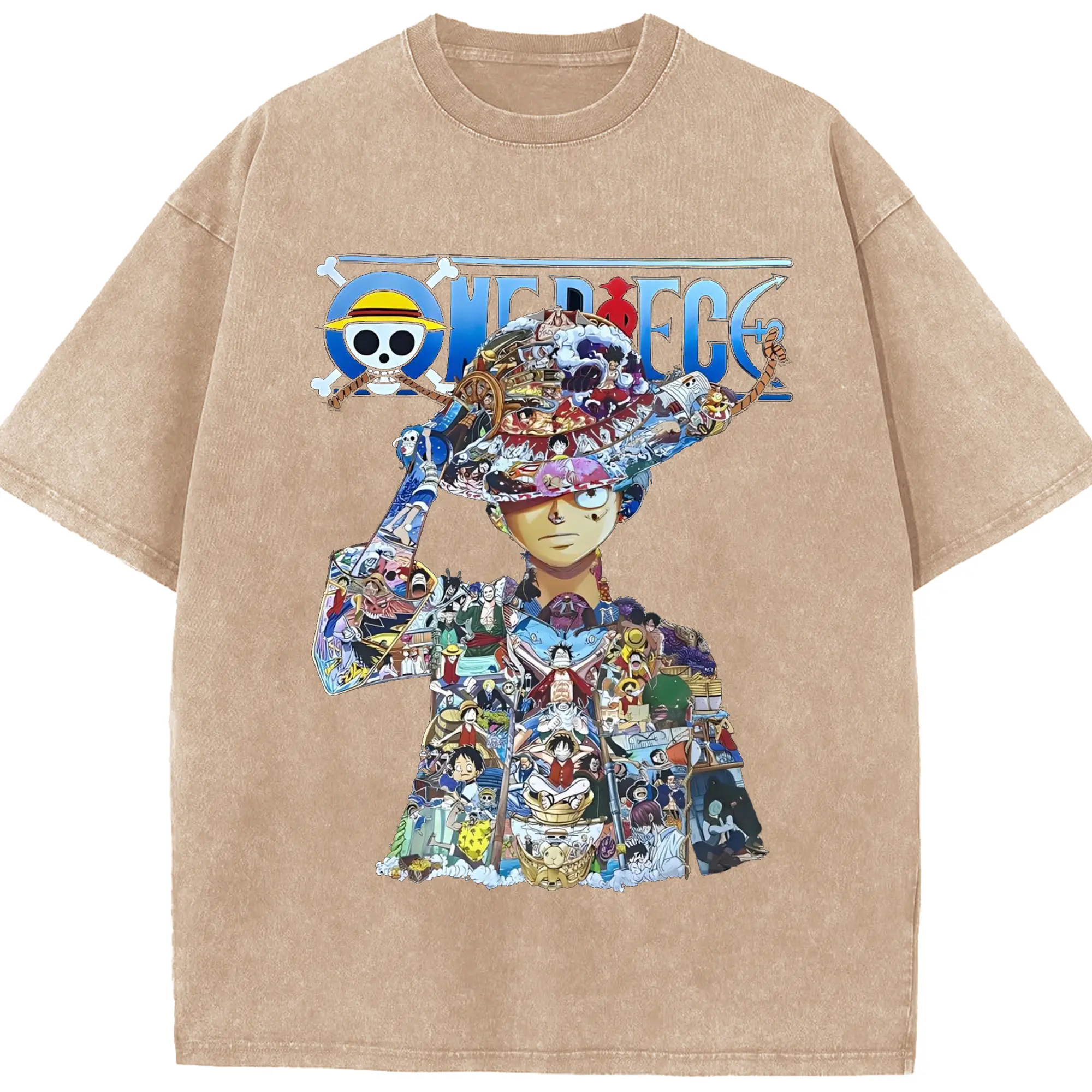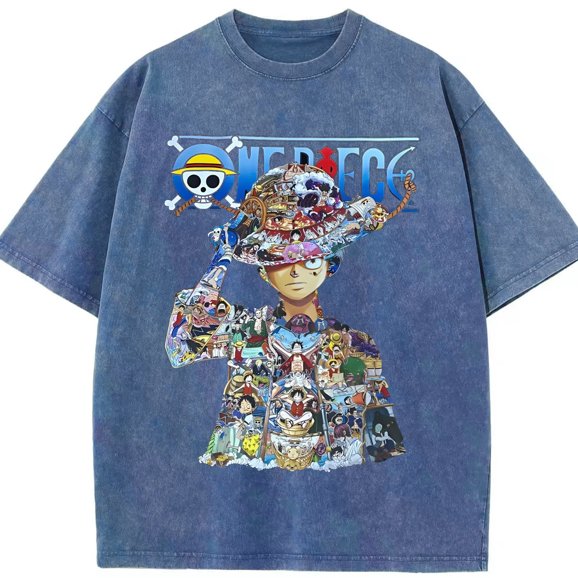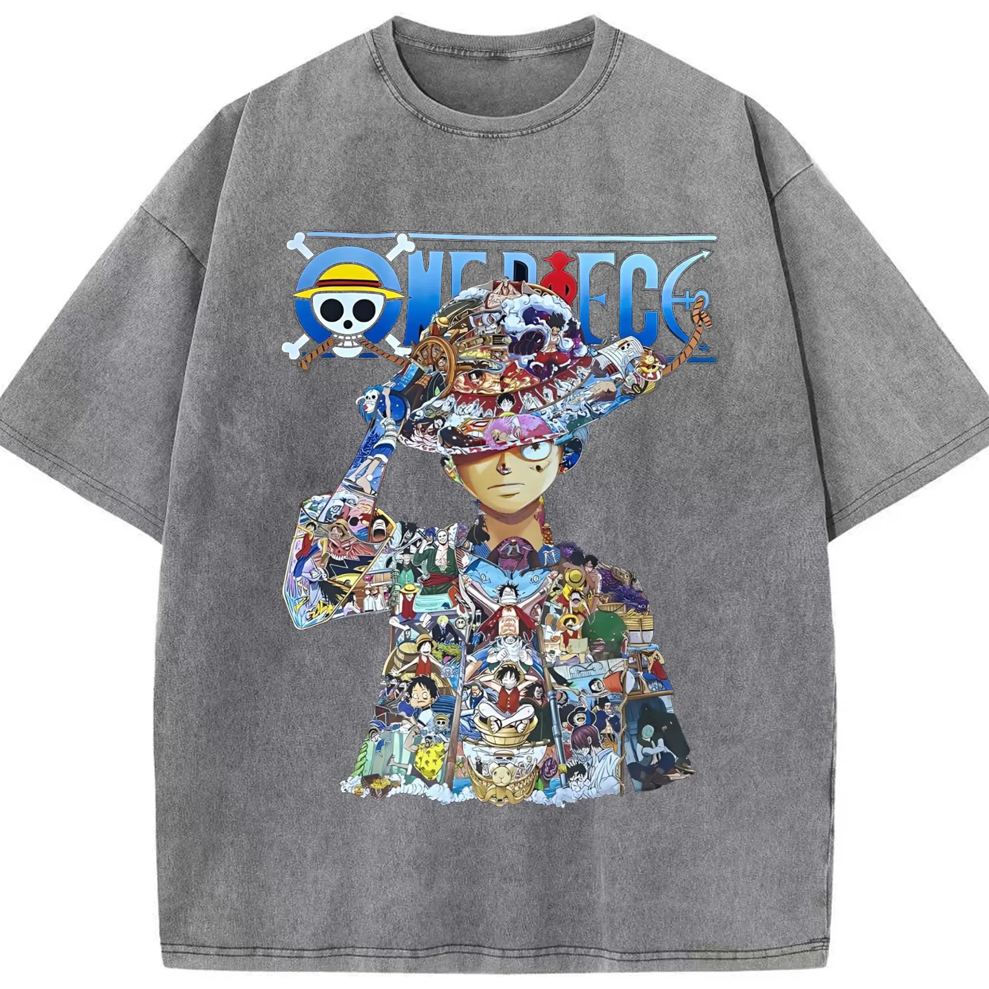 ワンピース モンキー・D・ルフィ - 綿100% ヴィンテージ風 半袖Tシャツ ・ フロントプリント ・ 柔らか肌触り ・ 通気性 快適 ・ スポーツ カジュアル 外出用