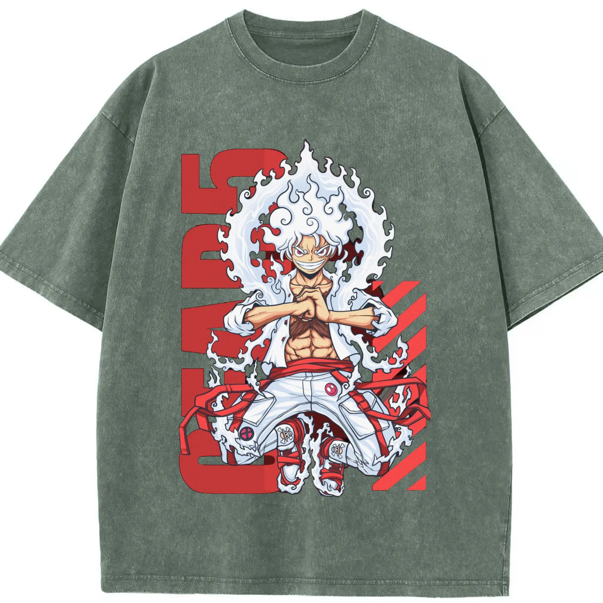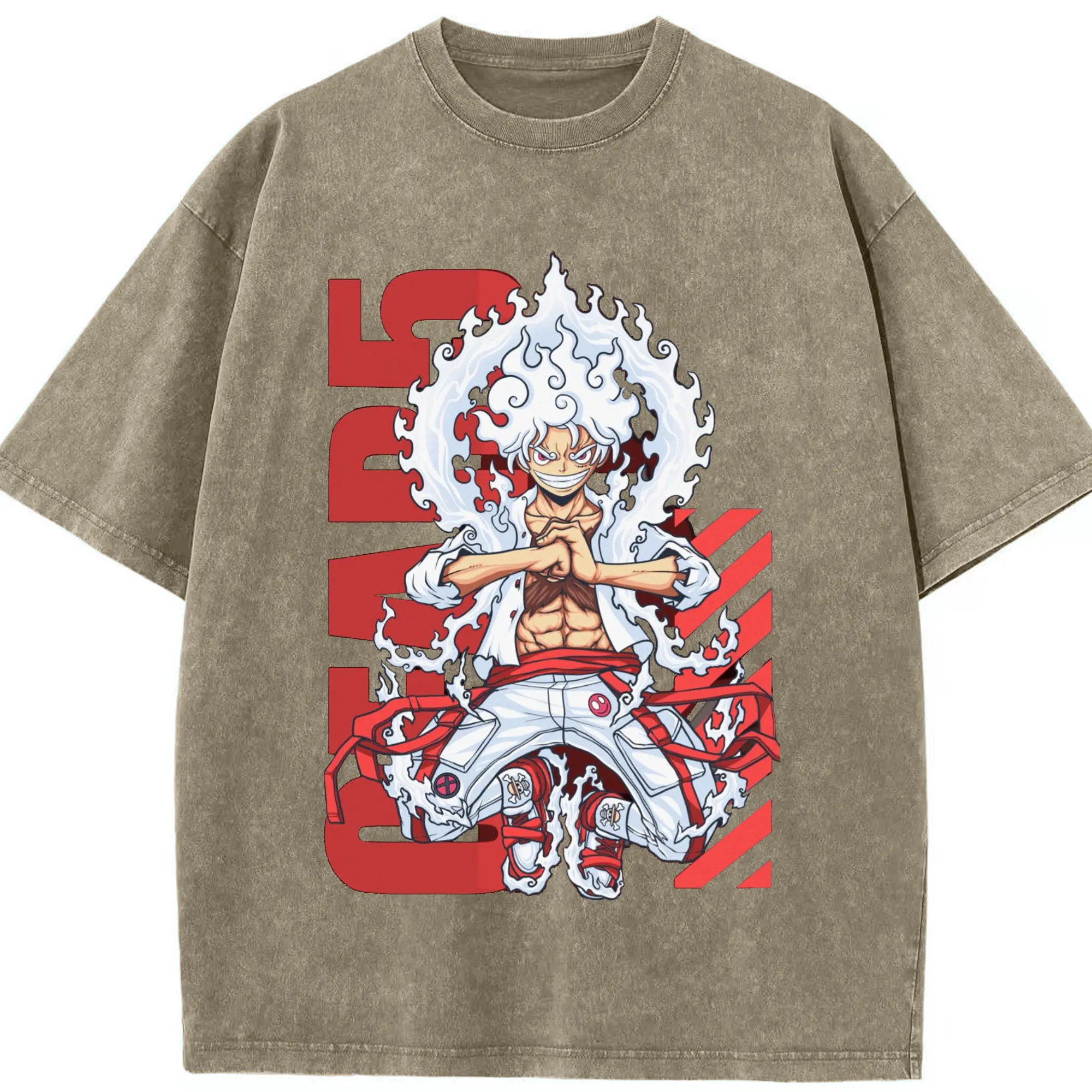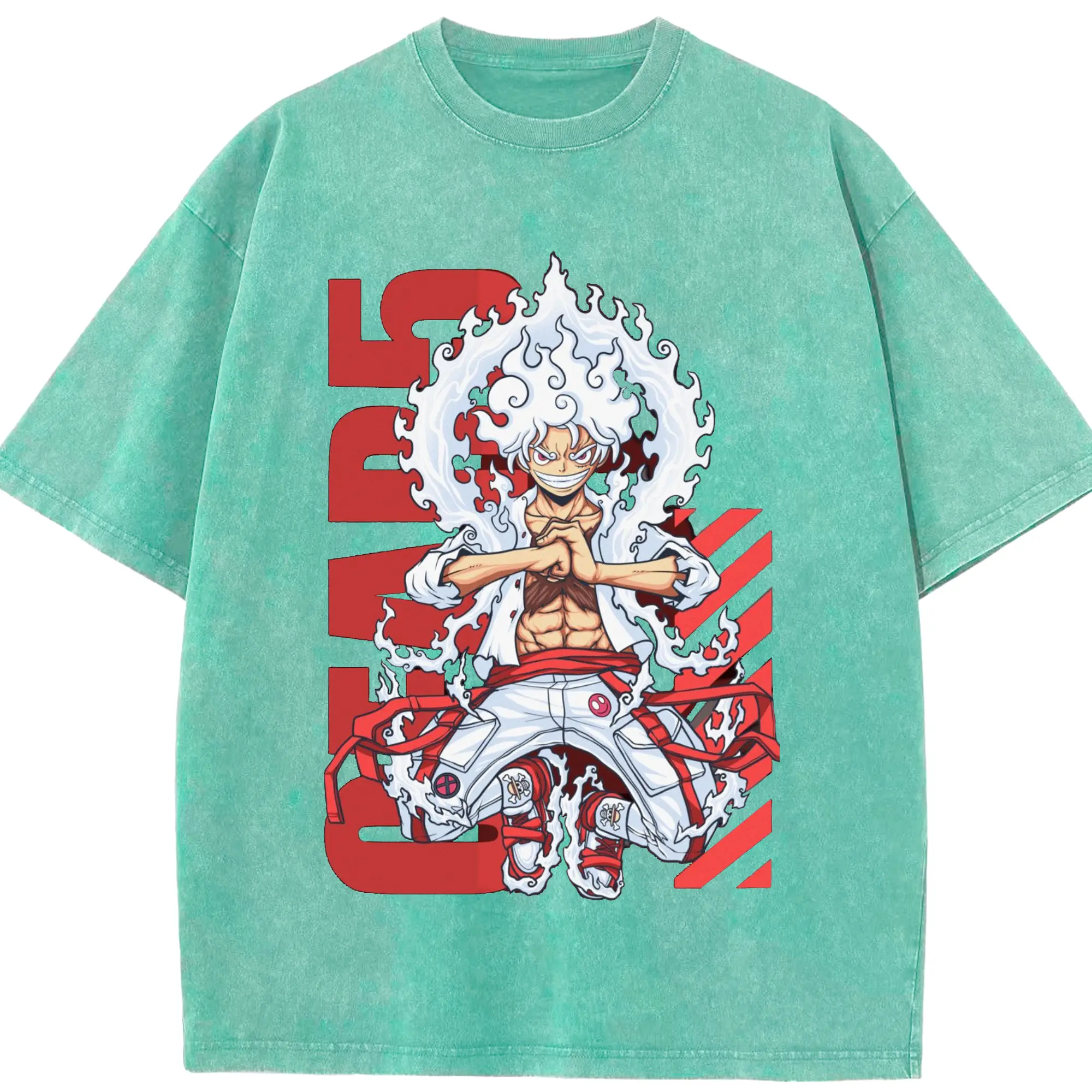 ワンピース モンキー・D・ルフィ - 綿100% ヴィンテージ風 半袖Tシャツ ・ フロントプリント ・ 柔らか肌触り ・ 通気性 快適 ・ スポーツ カジュアル 外出用
