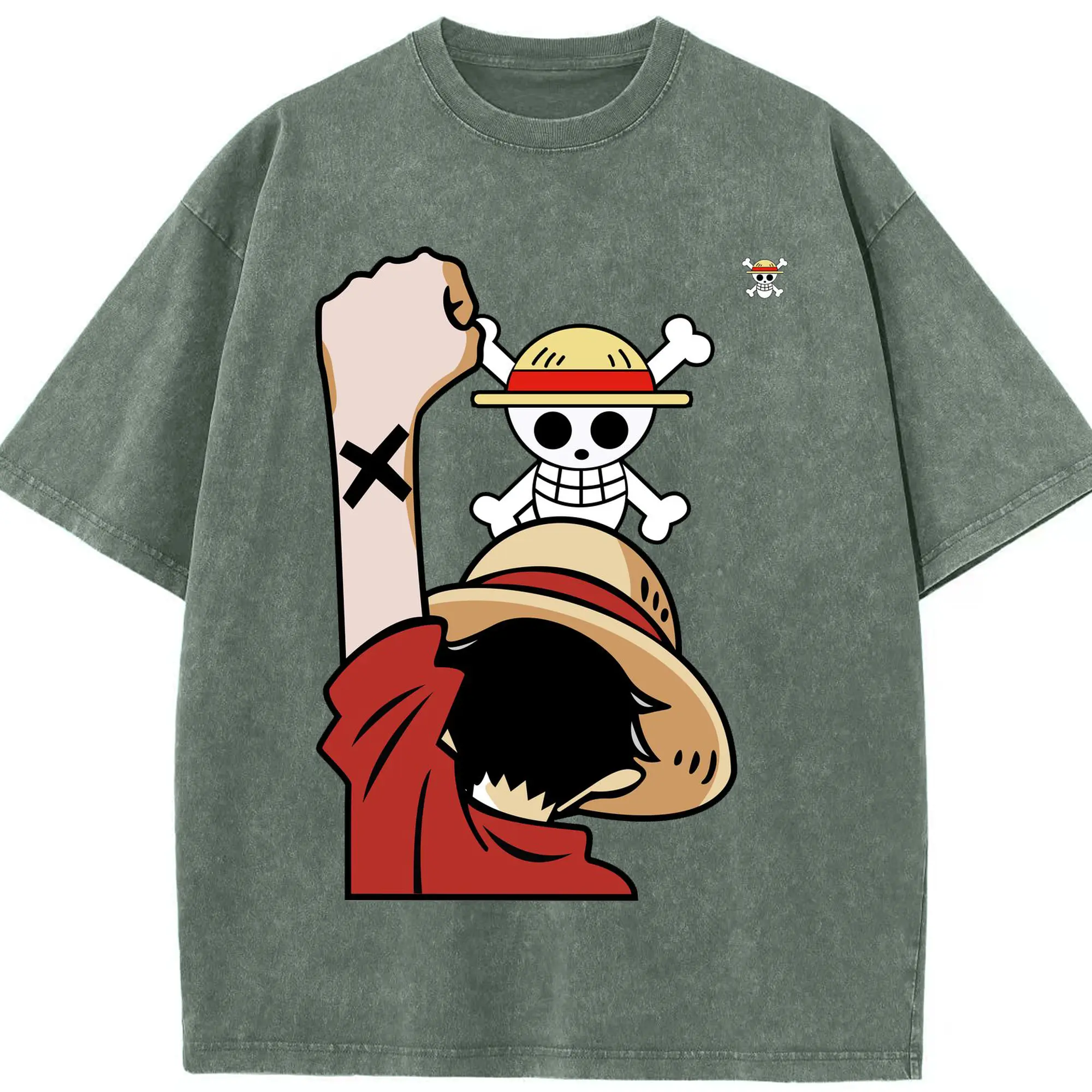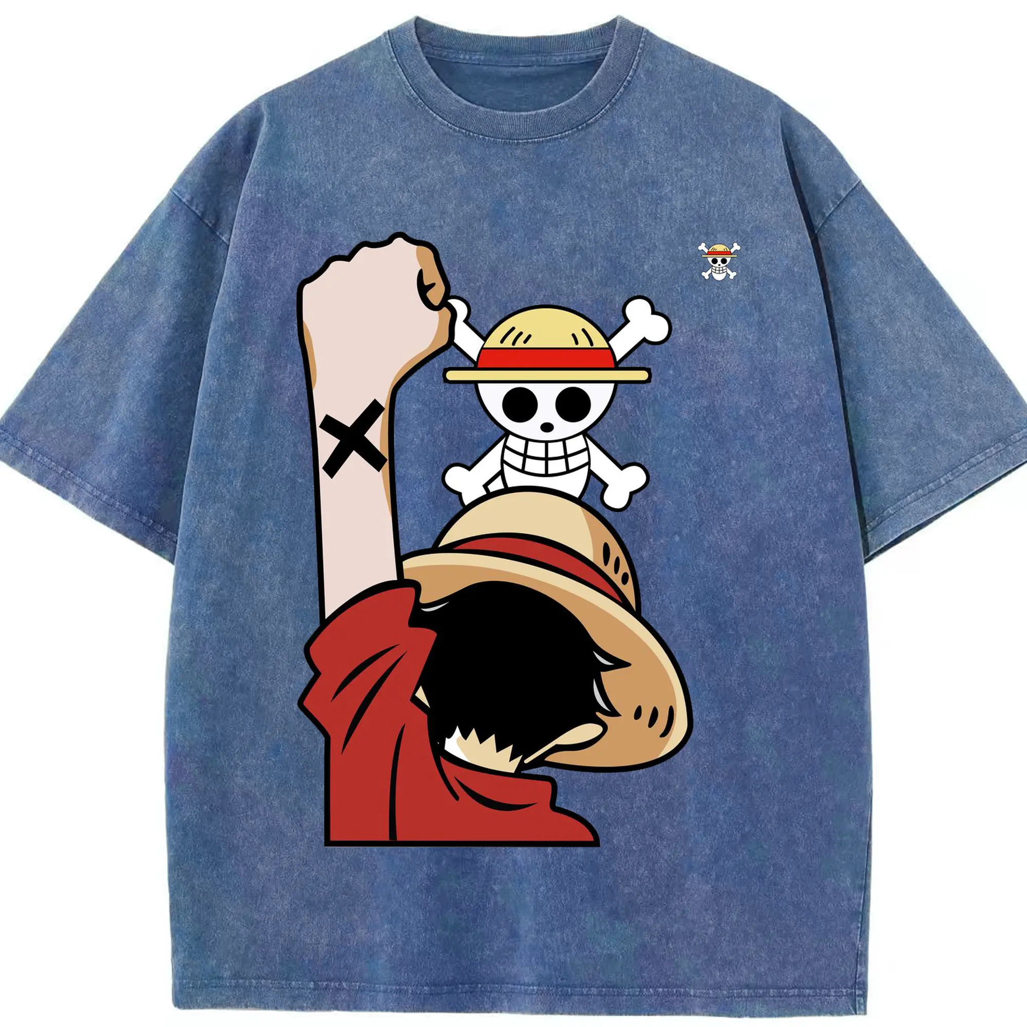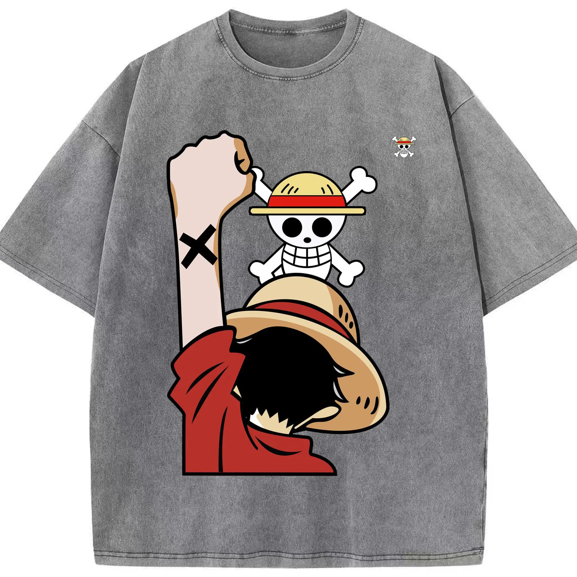 ワンピース モンキー・D・ルフィ - 綿100% ヴィンテージ風 半袖Tシャツ ・ フロントプリント ・ 柔らか肌触り ・ 通気性 快適 ・ スポーツ カジュアル 外出用
