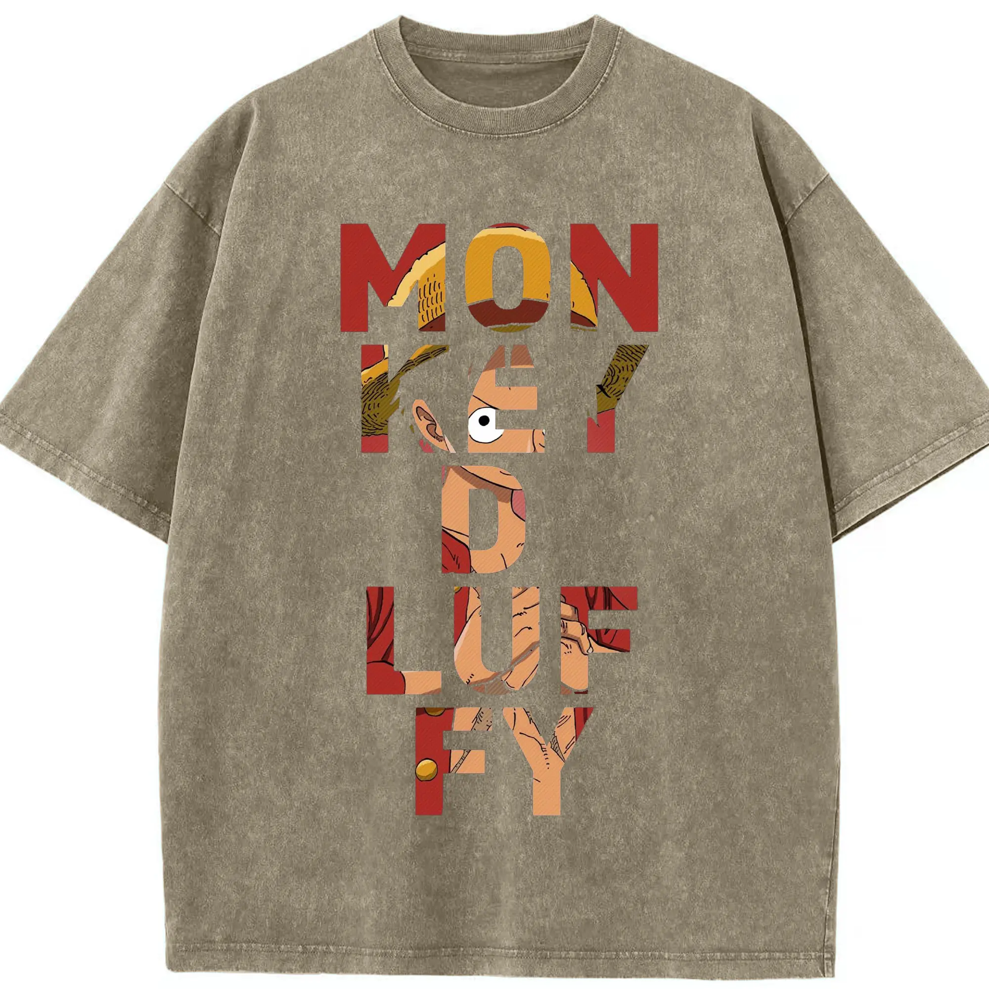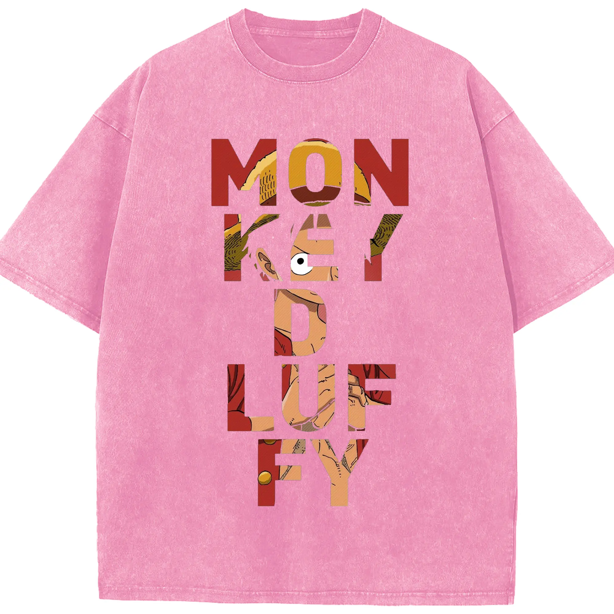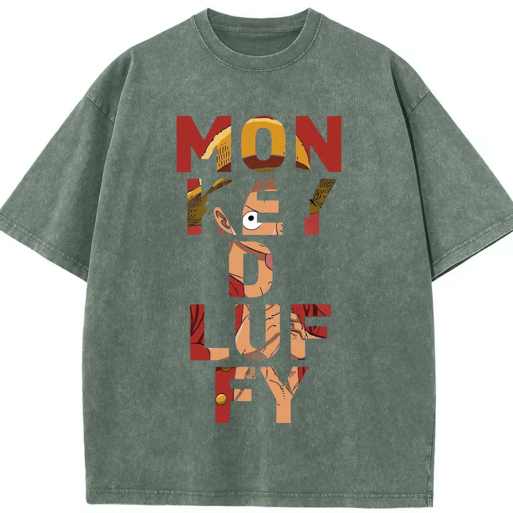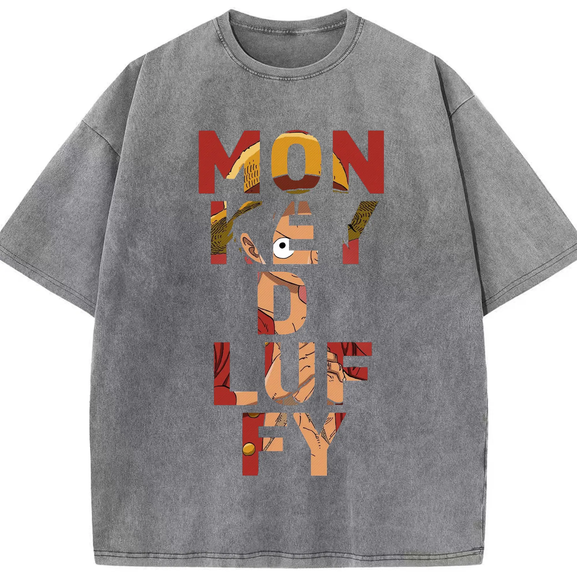 ワンピース モンキー・D・ルフィ - 綿100% ヴィンテージ風 半袖Tシャツ ・ フロントプリント ・ 柔らか肌触り ・ 通気性 快適 ・ スポーツ カジュアル 外出用