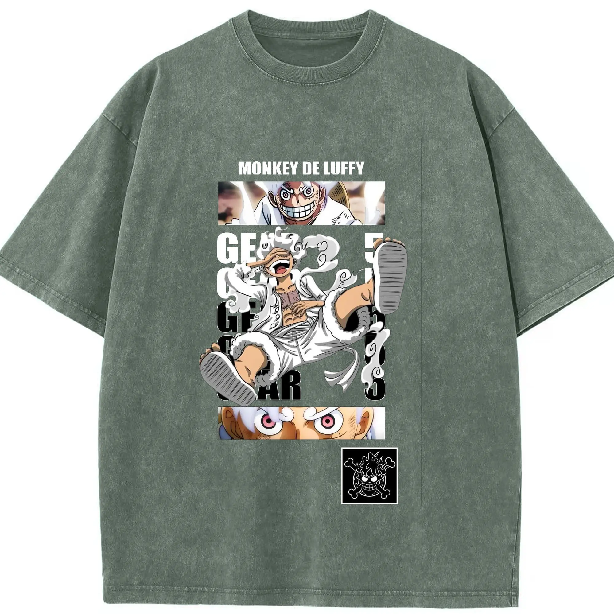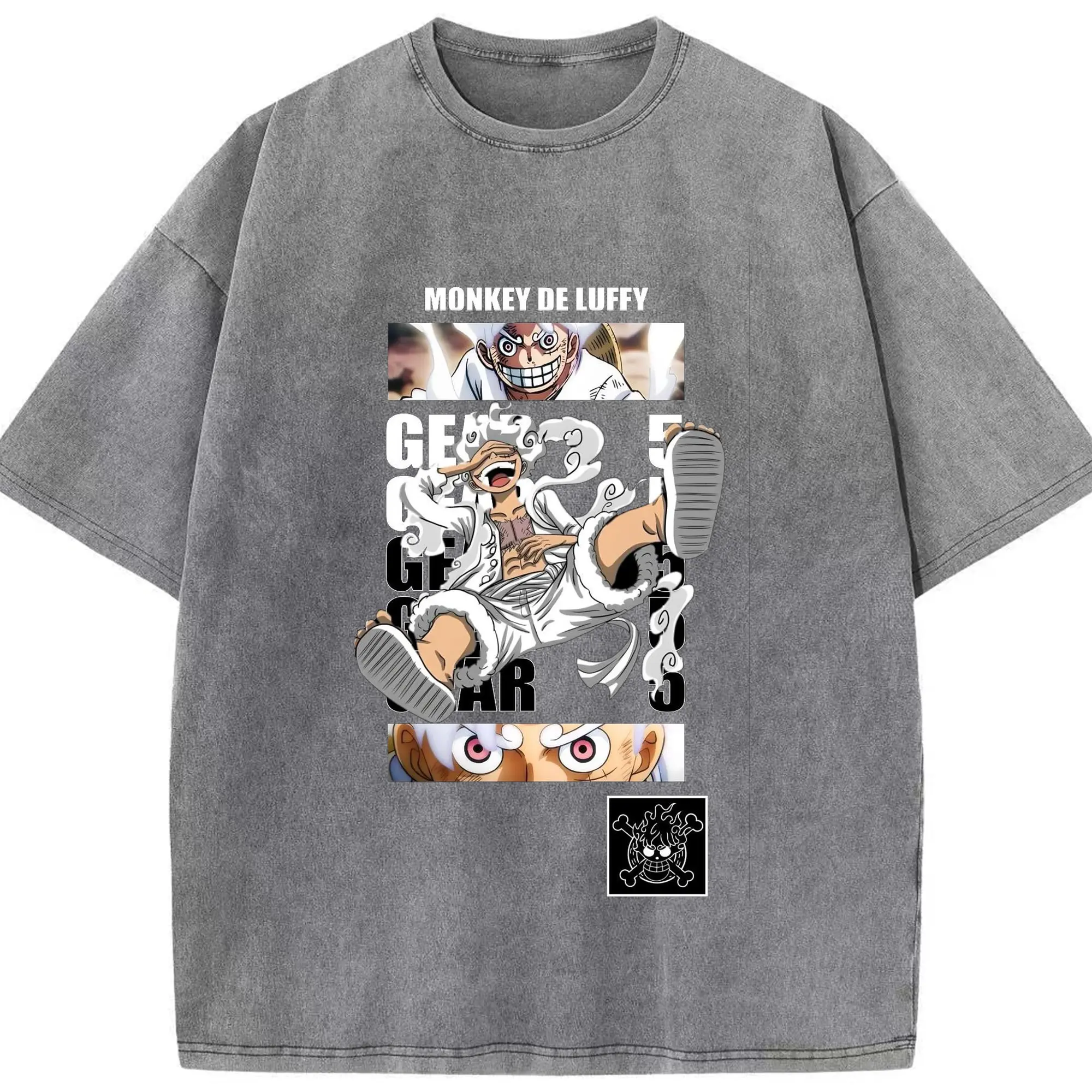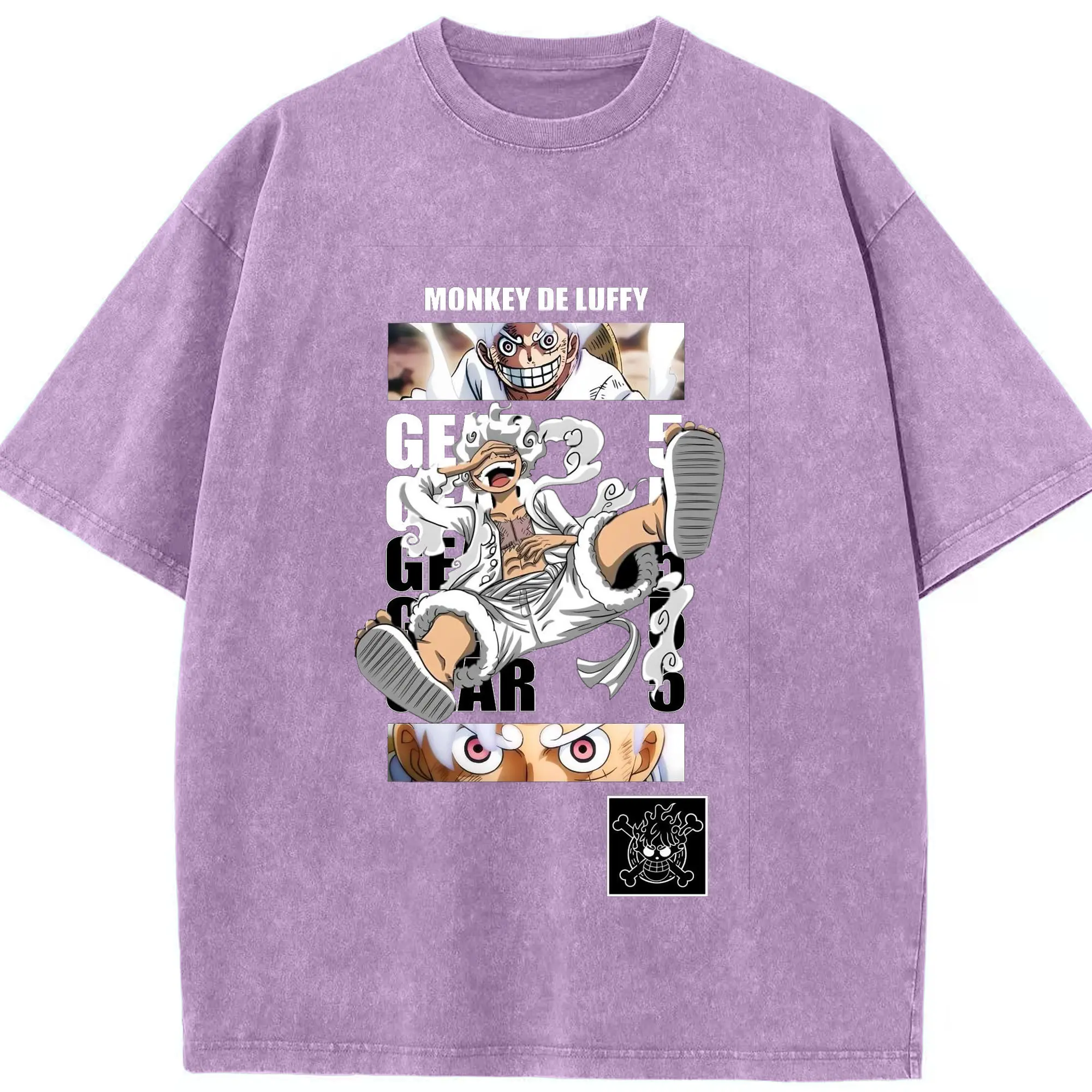 ワンピース ルフィ ギアフィフス - 綿100% 半袖Tシャツ ・ フロントプリント ・ 快適 通気性 ・ 日常使い 散歩 スポーツ用