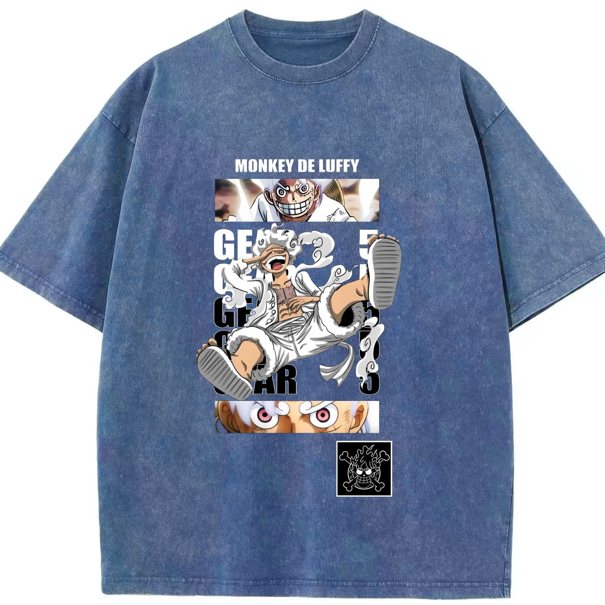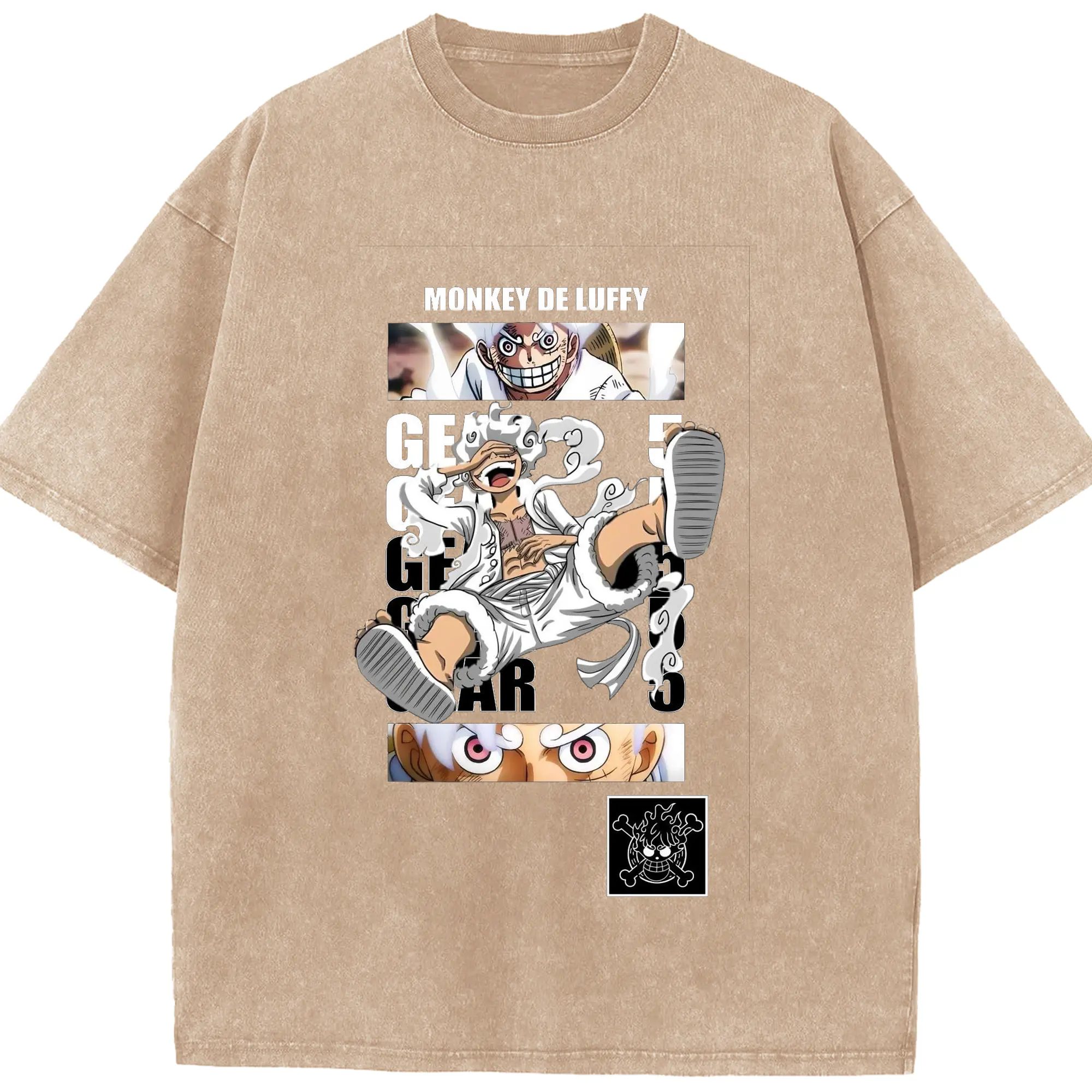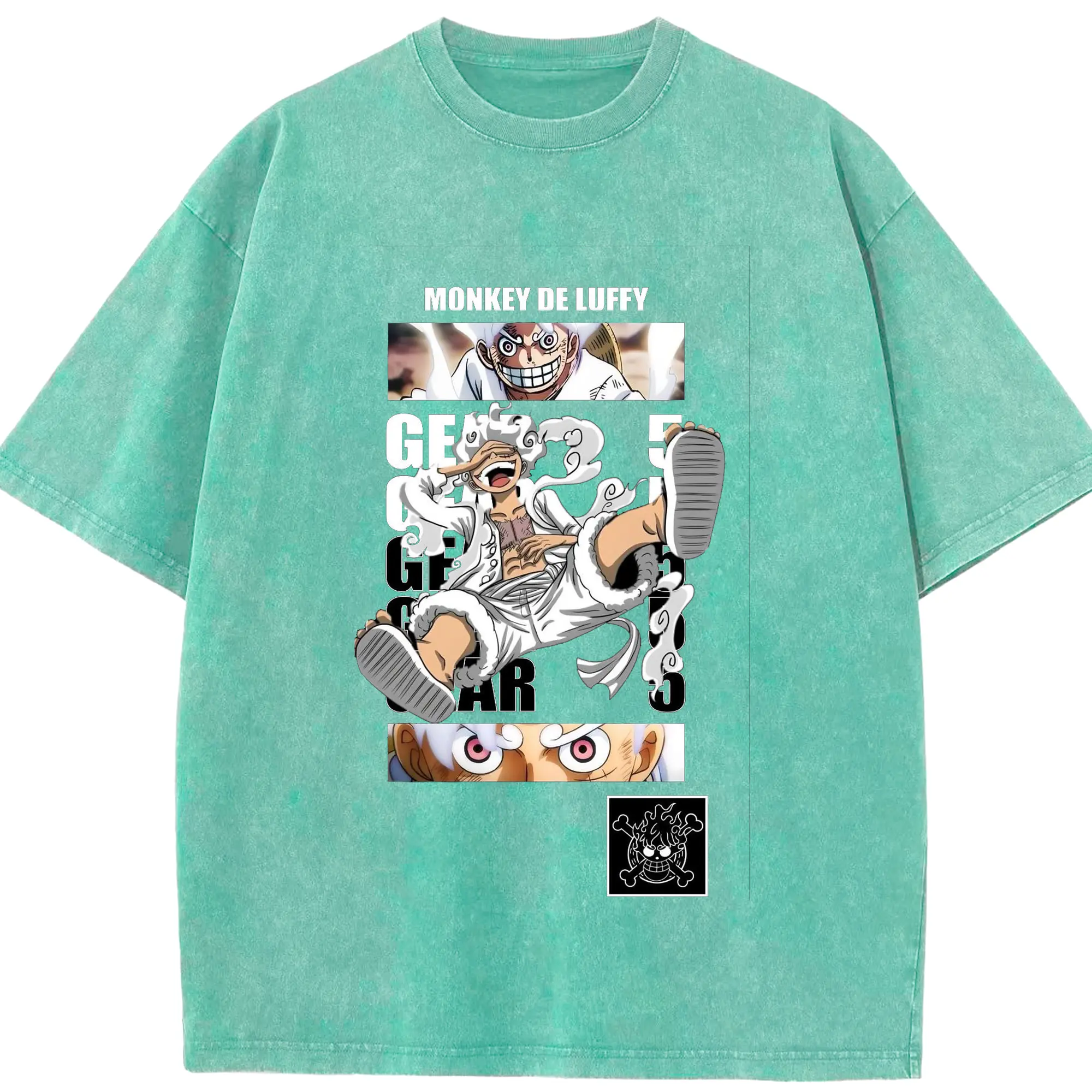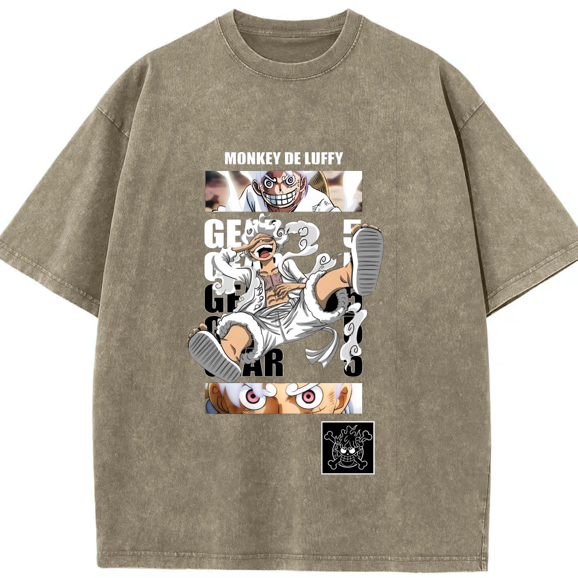 ワンピース ルフィ ギアフィフス - 綿100% 半袖Tシャツ ・ フロントプリント ・ 快適 通気性 ・ 日常使い 散歩 スポーツ用