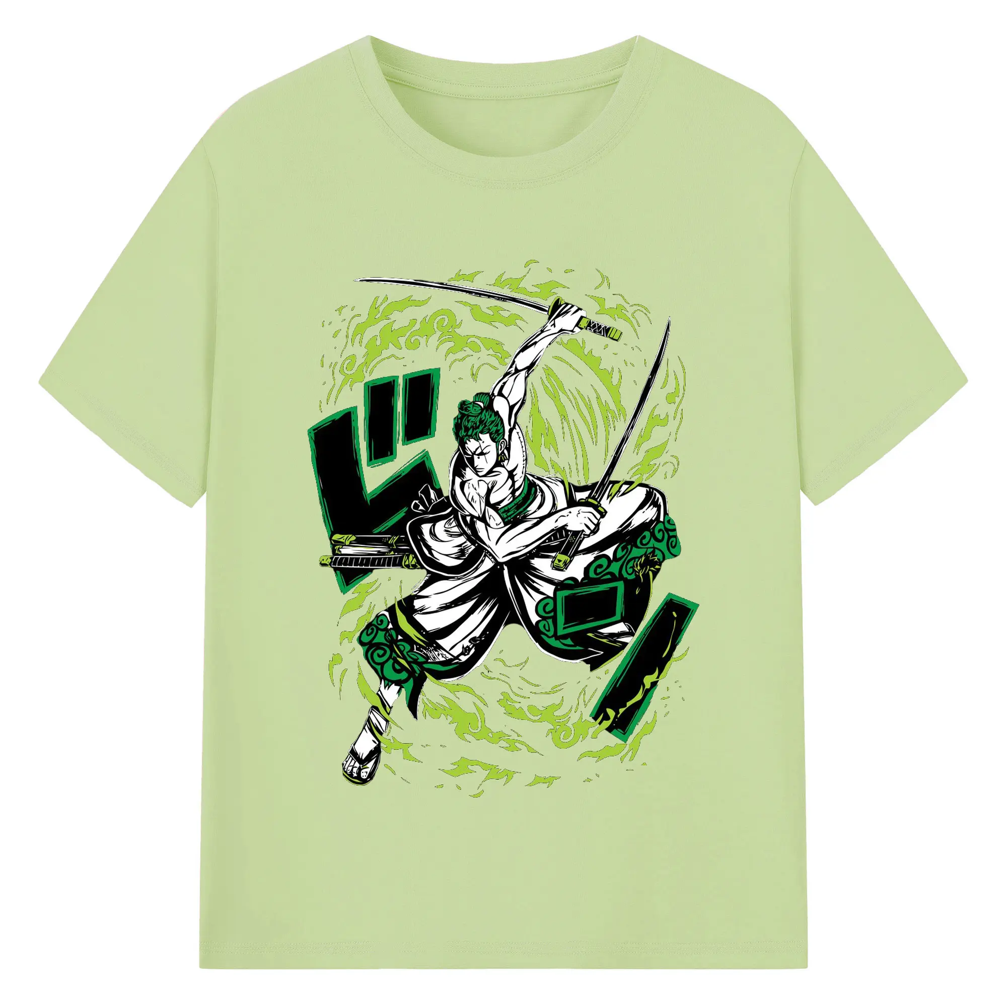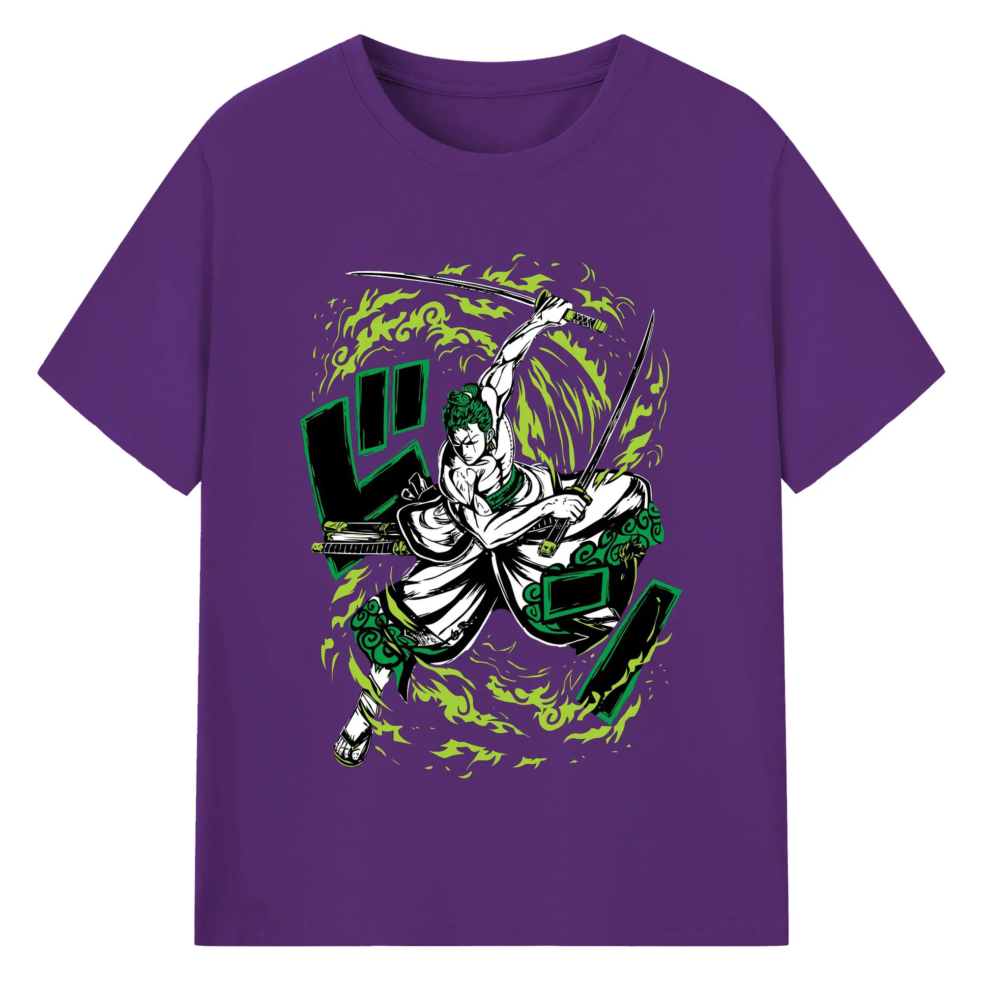 ワンピース ロロノア・ゾロ - 綿100% 半袖Tシャツ ・ フロントプリント ・ 快適 通気性 ・ 日常使い 散歩 スポーツ用
