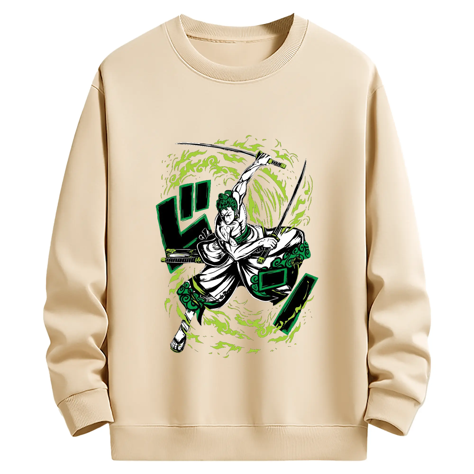 ワンピース ロロノア・ゾロ - 高品質 クルーネック スウェット ・ コットン59% ポリエステル41% ・ ユニセックス 長袖 トレーナー ・ カジュアル デイリー スポーツ 散歩用