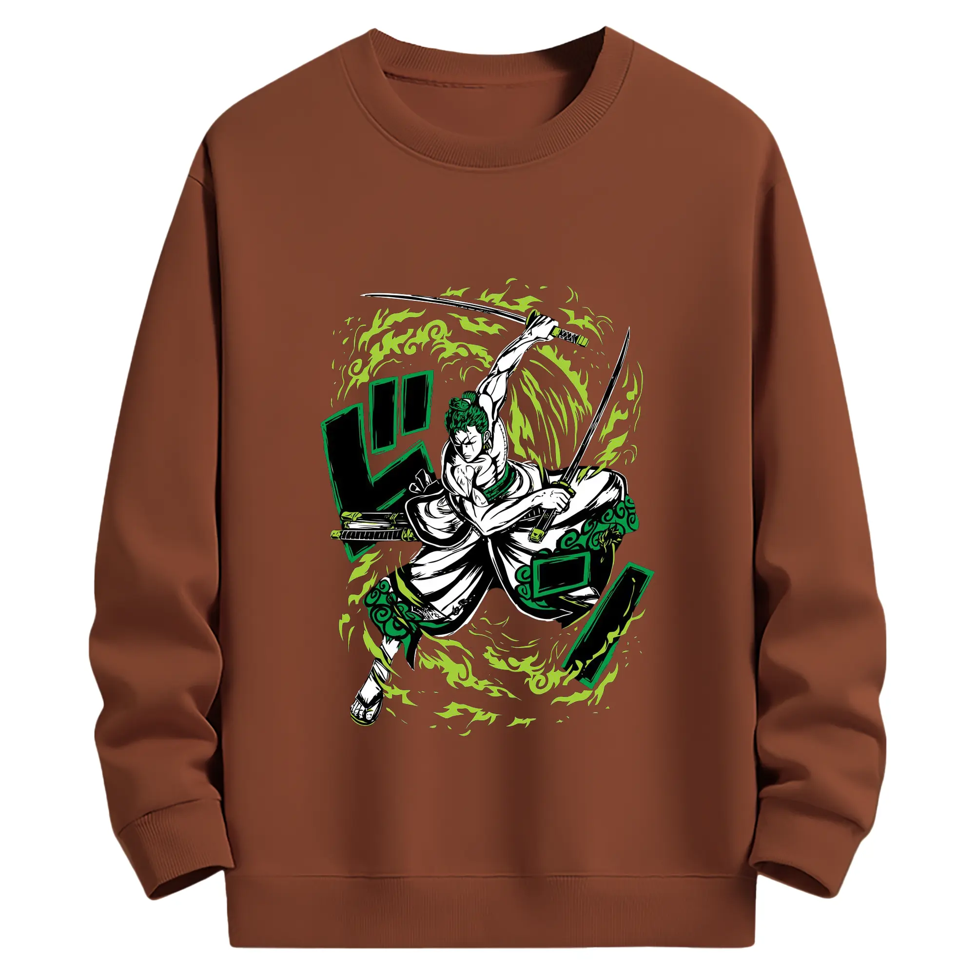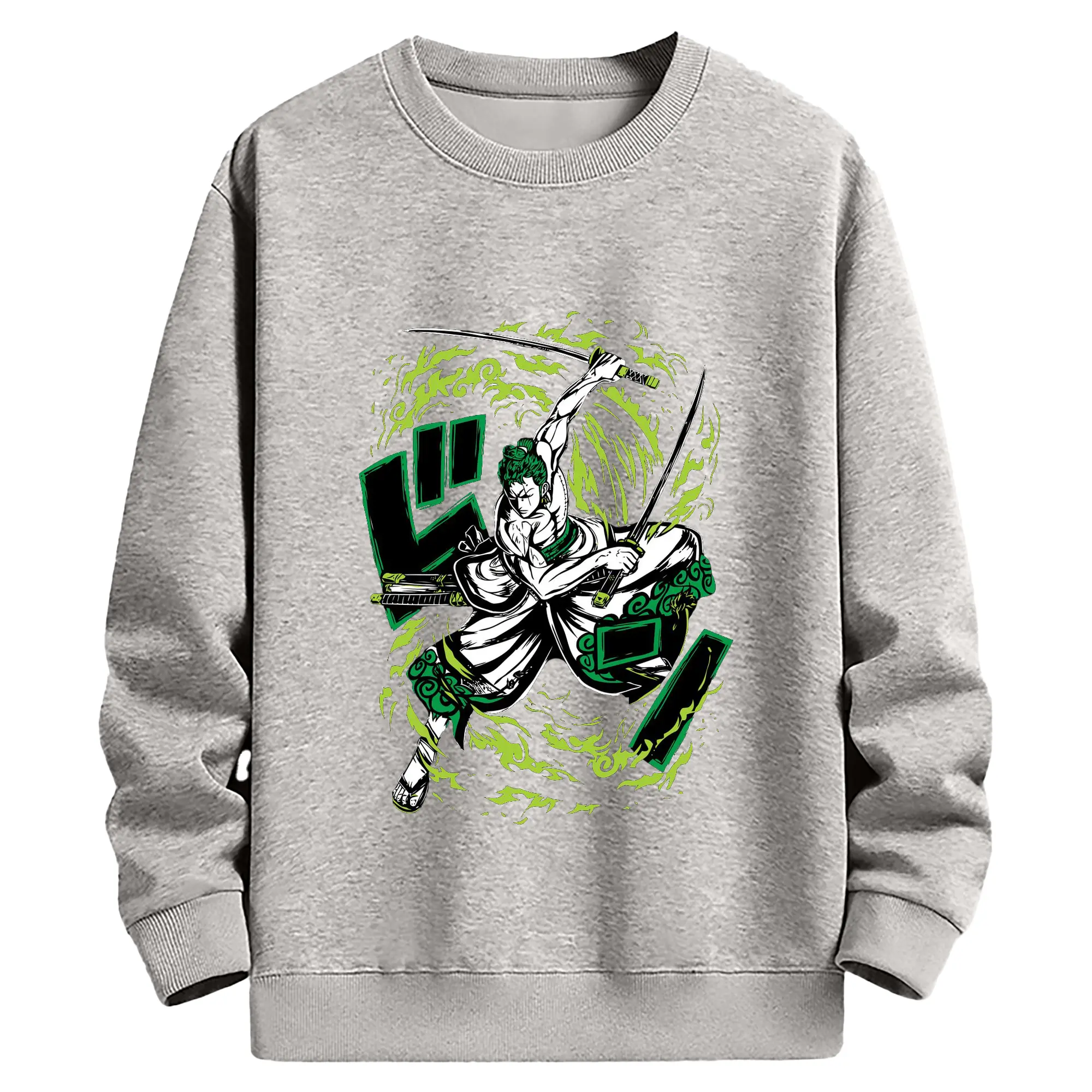ワンピース ロロノア・ゾロ - 高品質 クルーネック スウェット ・ コットン59% ポリエステル41% ・ ユニセックス 長袖 トレーナー ・ カジュアル デイリー スポーツ 散歩用