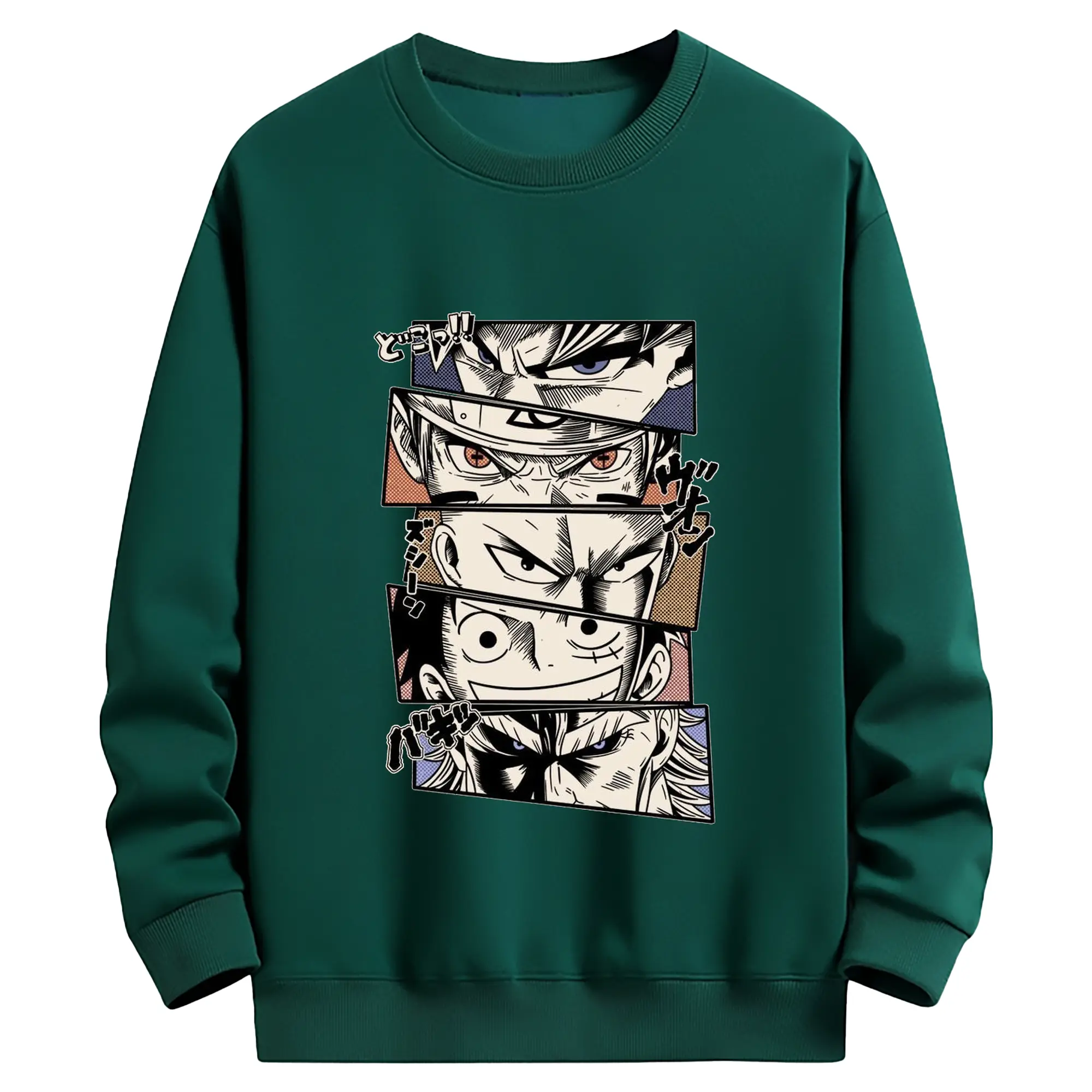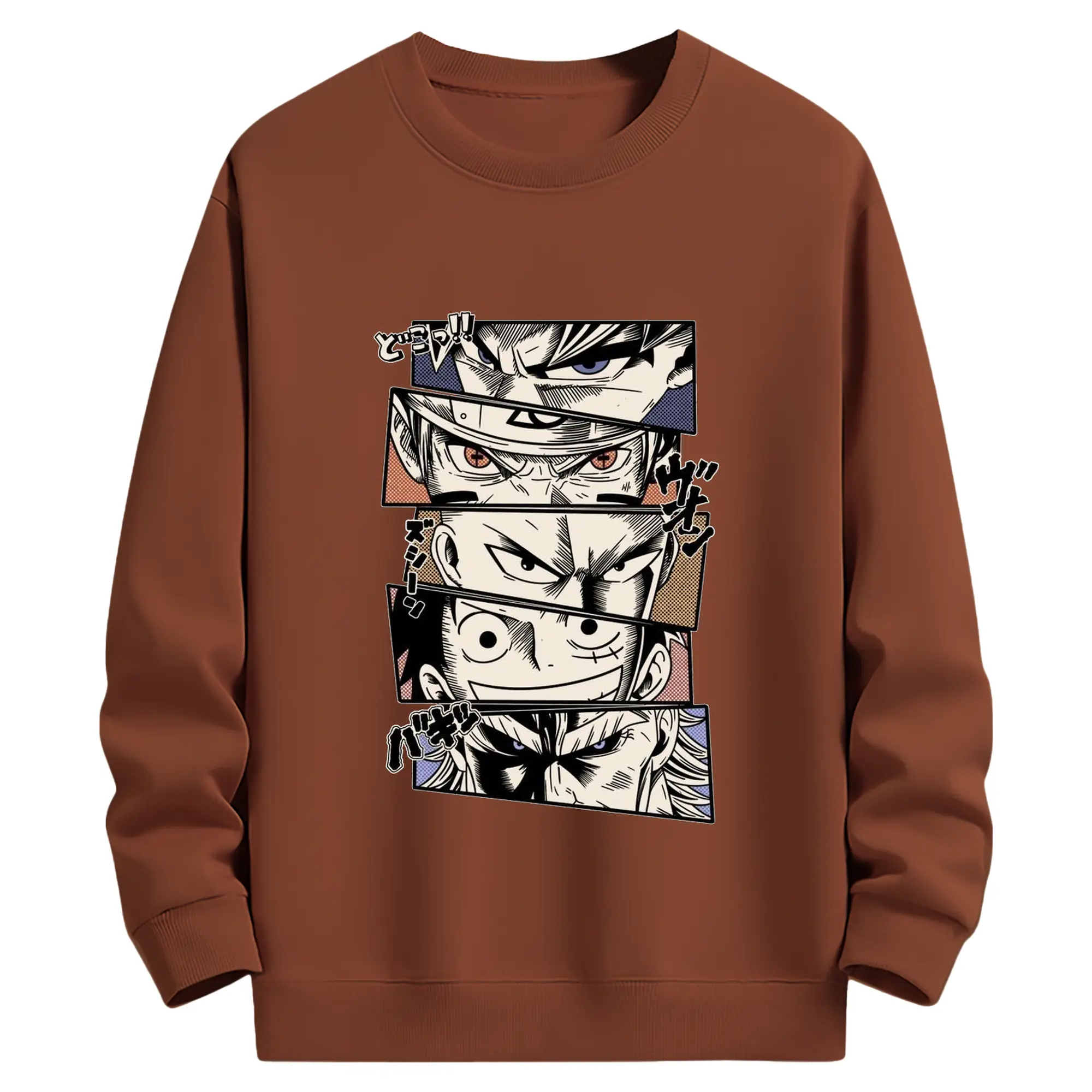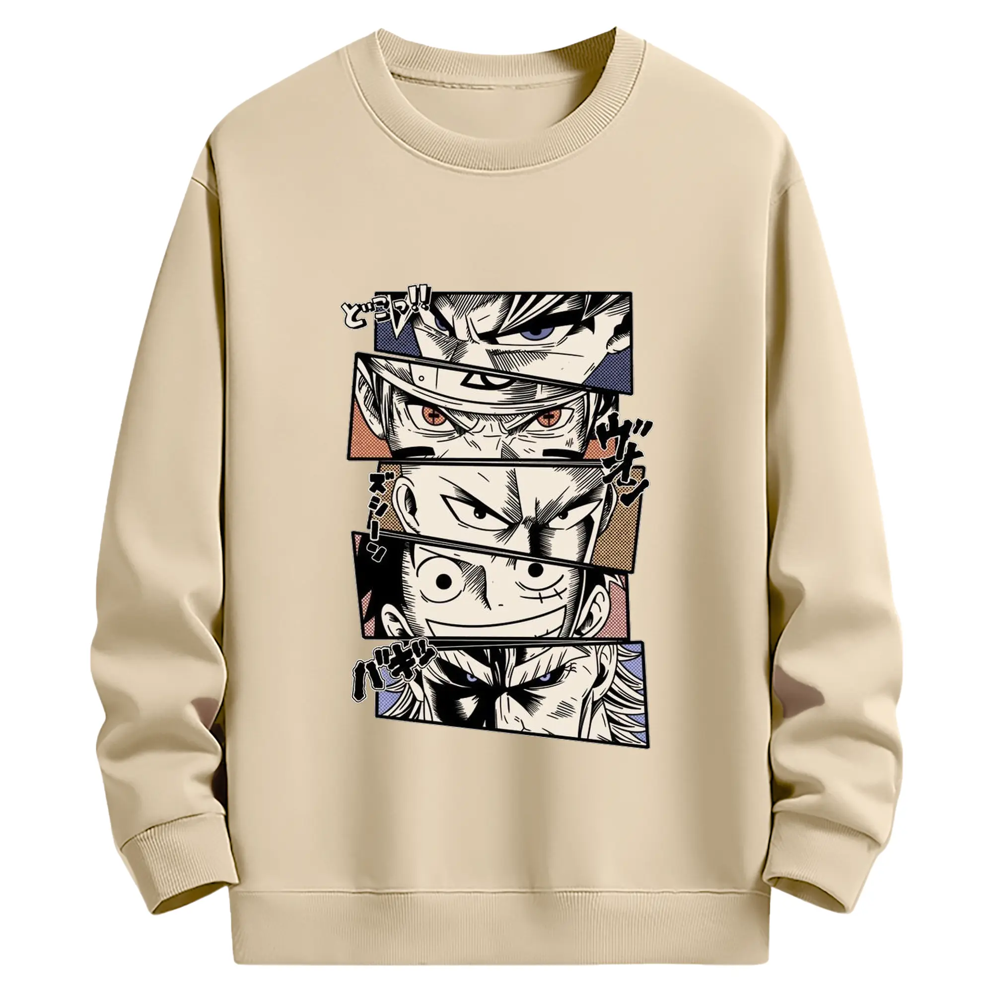 ワンピース モンキー・D・ルフィ - 高品質 クルーネック スウェット ・ コットン59% ポリエステル41% ・ ユニセックス 長袖 トレーナー ・ カジュアル デイリー スポーツ 散歩用