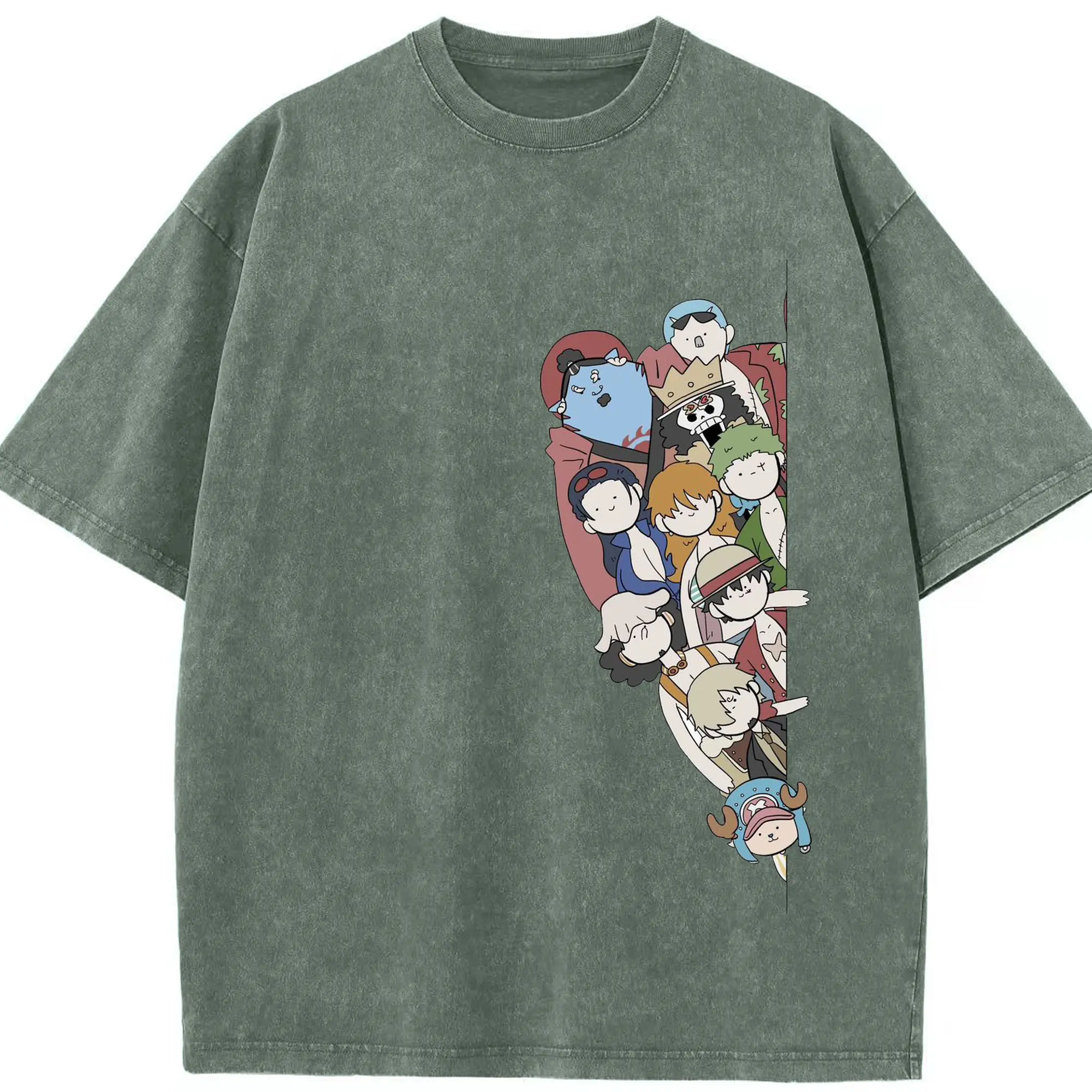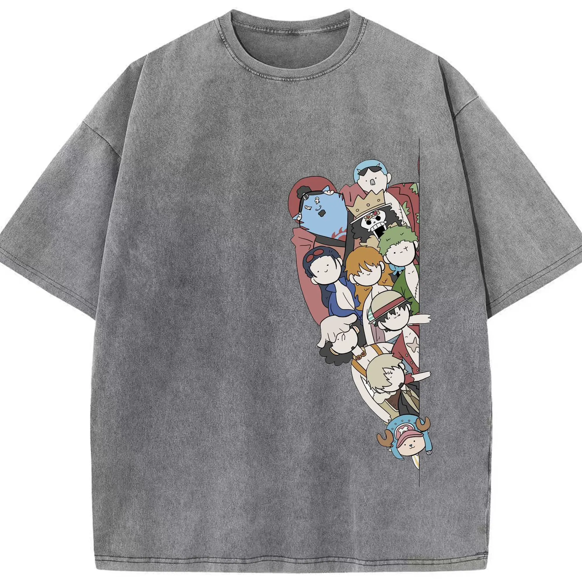 ワンピース モンキー・D・ルフィ - 綿100% ヴィンテージ風 半袖Tシャツ ・ フロントプリント ・ 柔らか肌触り ・ 通気性 快適 ・ スポーツ カジュアル 外出用