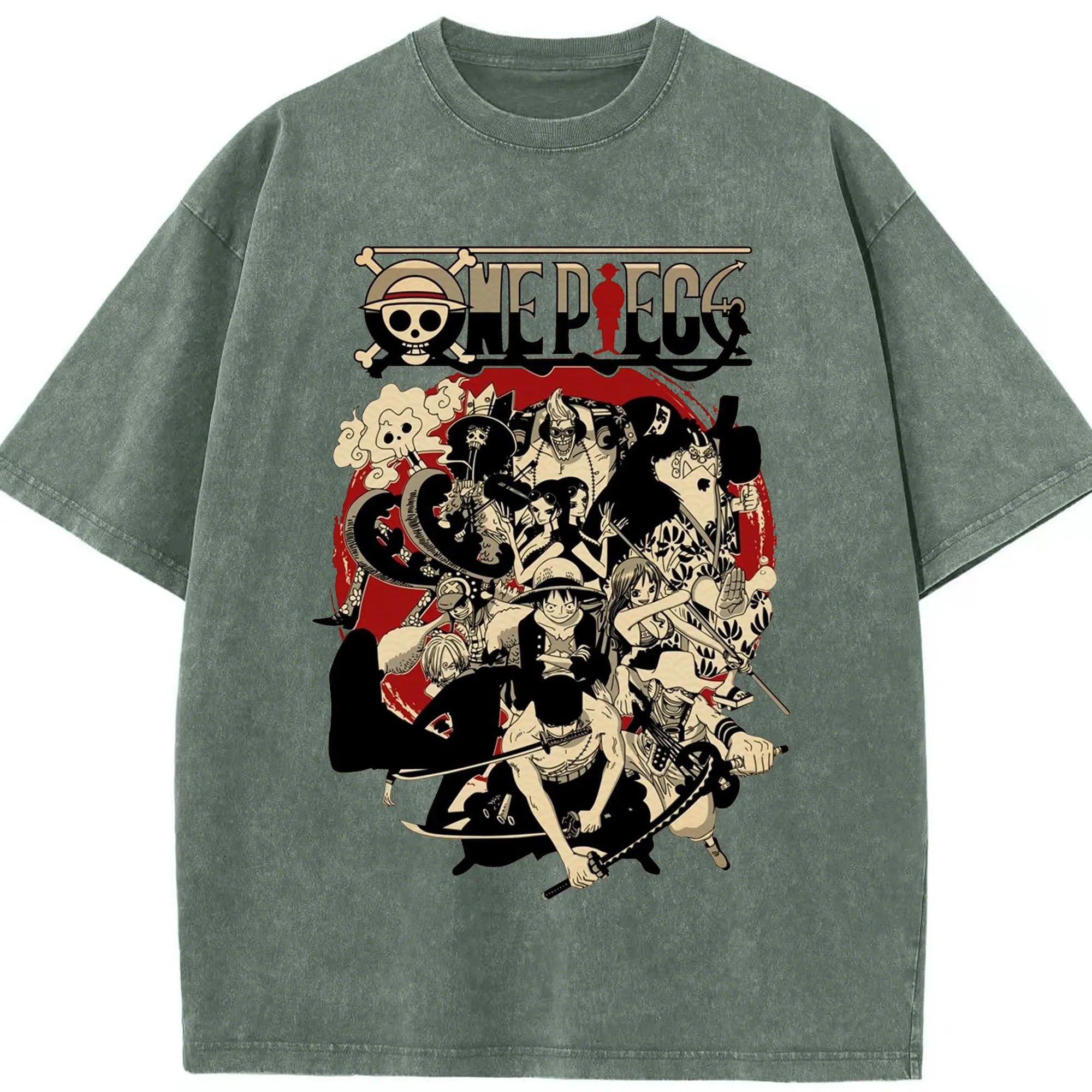 ワンピースロロノア・ゾロ - 綿100% ヴィンテージ風 半袖Tシャツ ・ フロントプリント ・ 柔らか肌触り ・ 通気性 快適 ・ スポーツ カジュアル 外出用