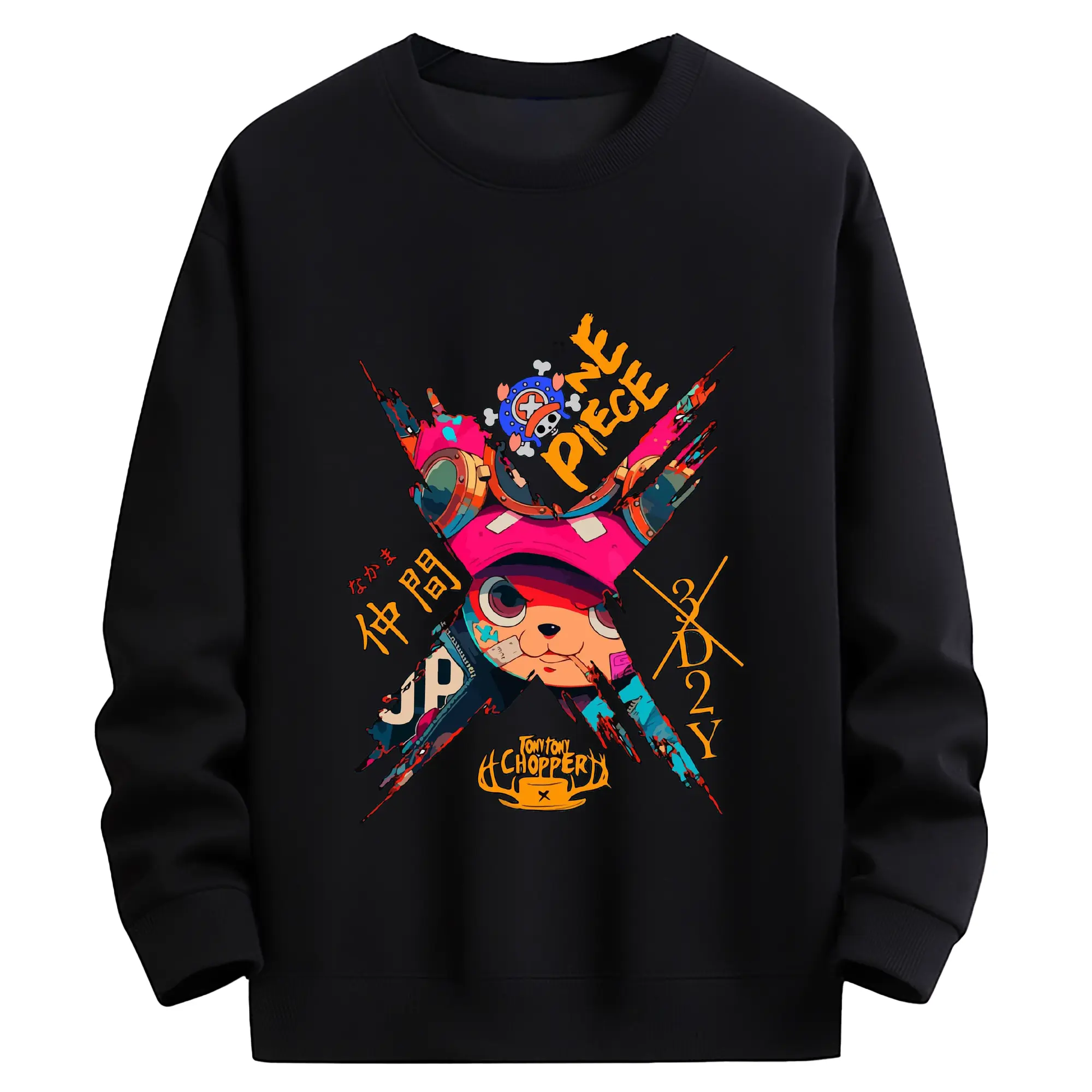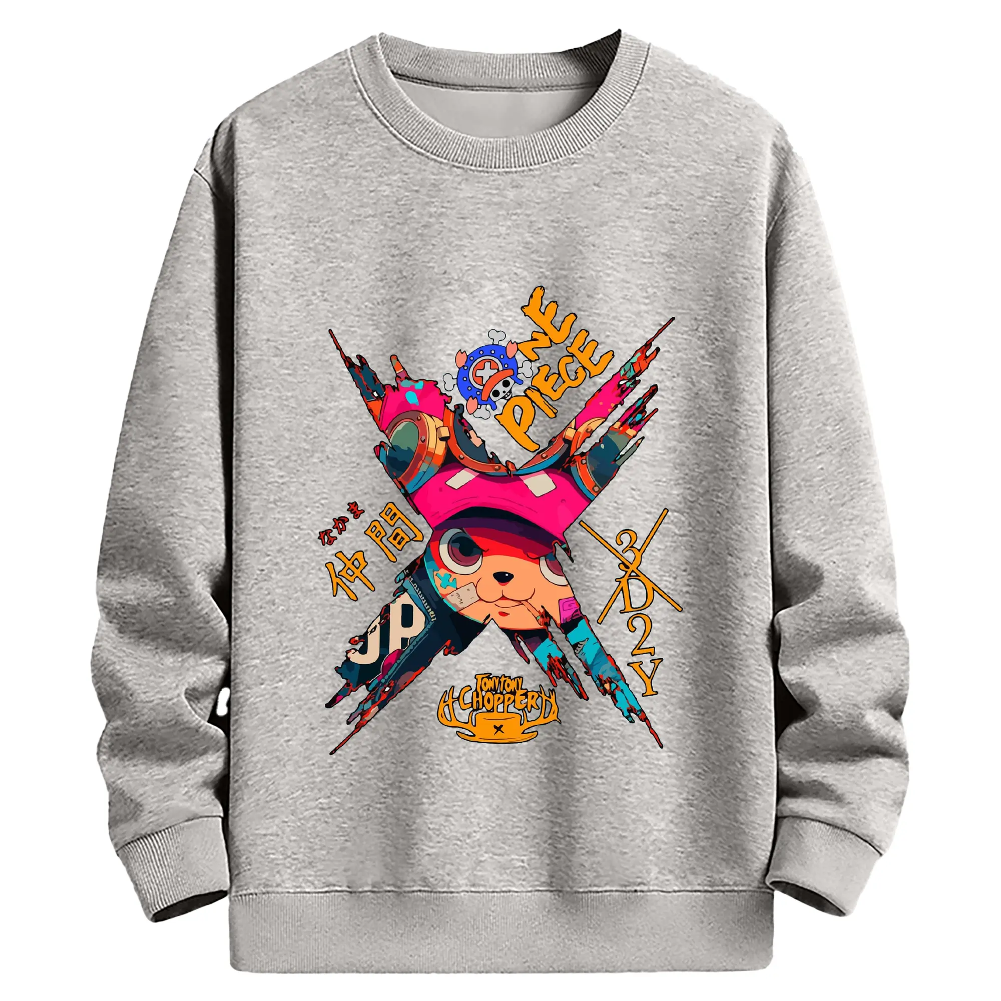 ワンピース モンキー・D・ルフィ - 高品質 クルーネック スウェット ・ コットン59% ポリエステル41% ・ ユニセックス 長袖 トレーナー ・ カジュアル デイリー スポーツ 散歩用