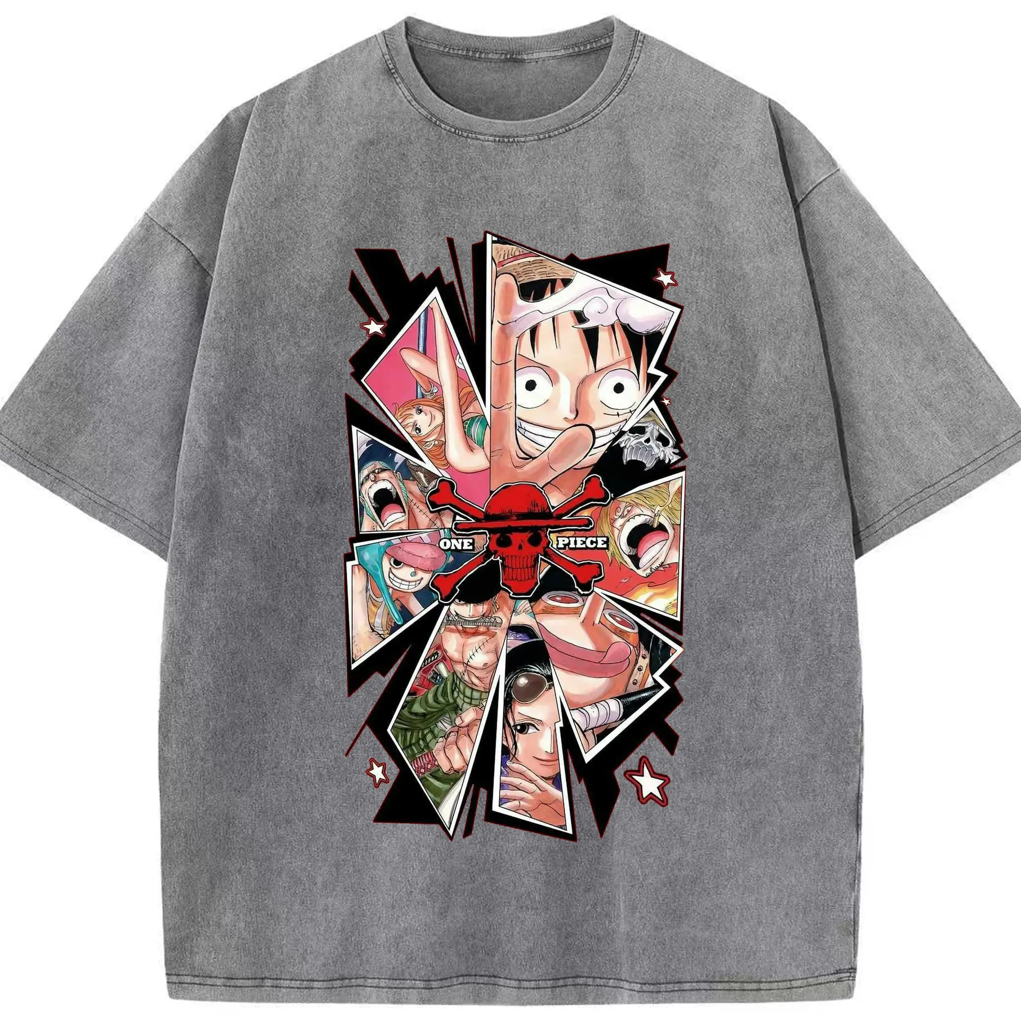 ワンピース モンキー・D・ルフィ - 綿100% ヴィンテージ風 半袖Tシャツ ・ フロントプリント ・ 柔らか肌触り ・ 通気性 快適 ・ スポーツ カジュアル 外出用
