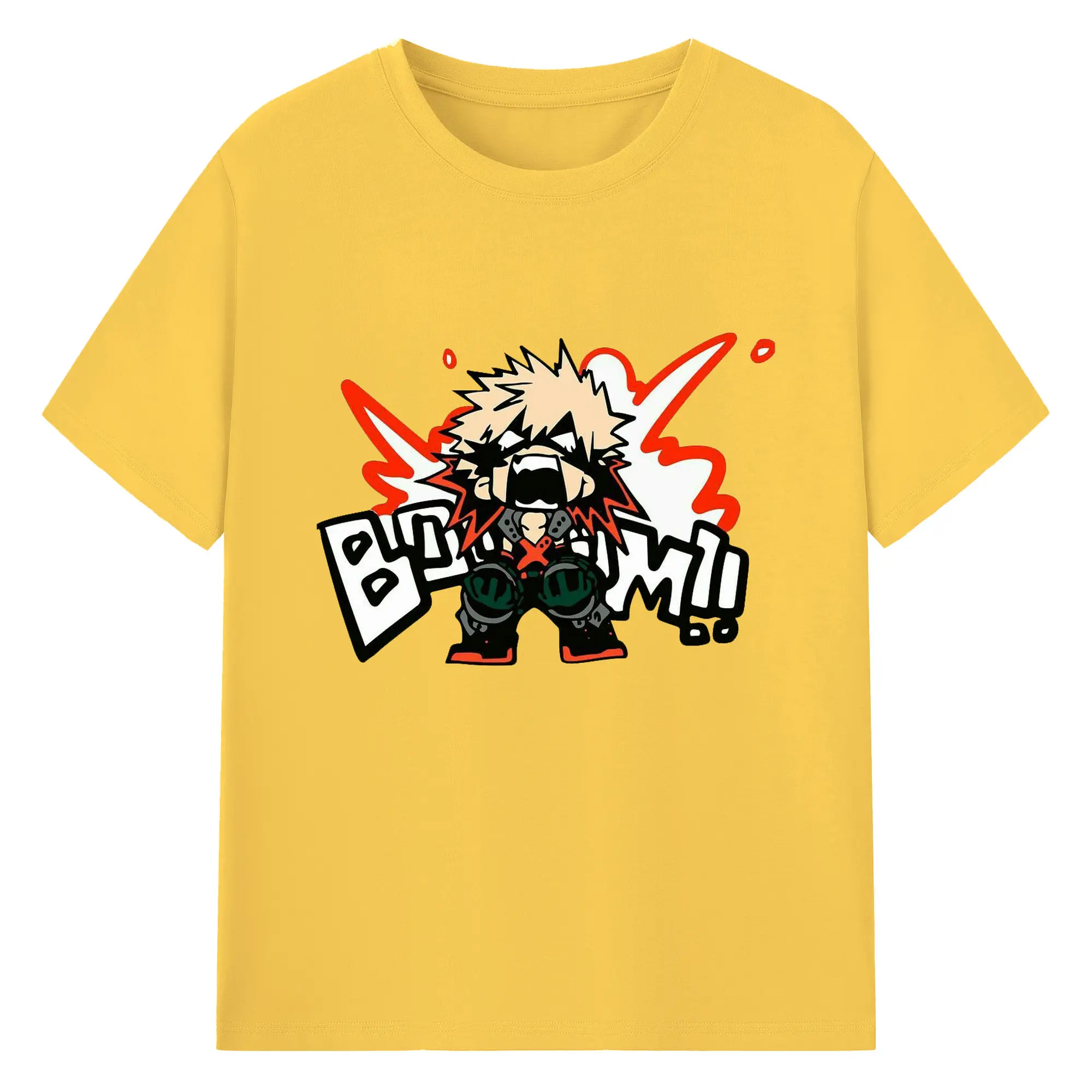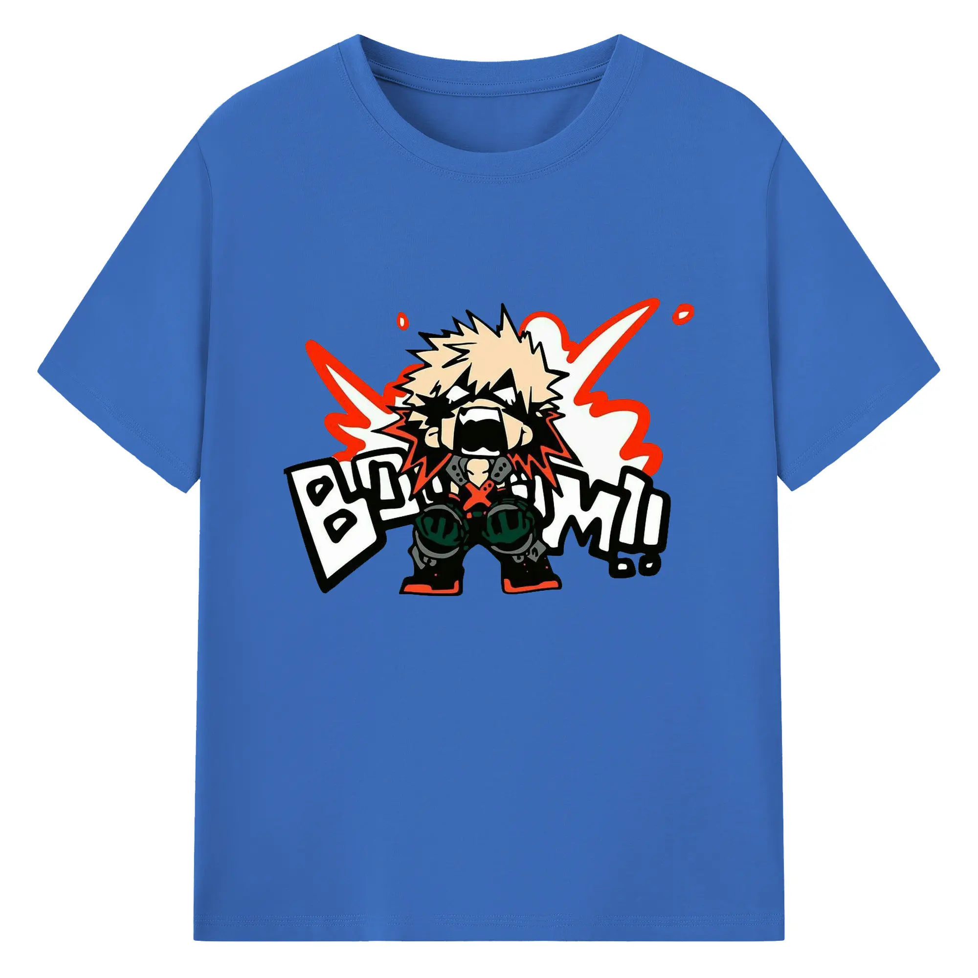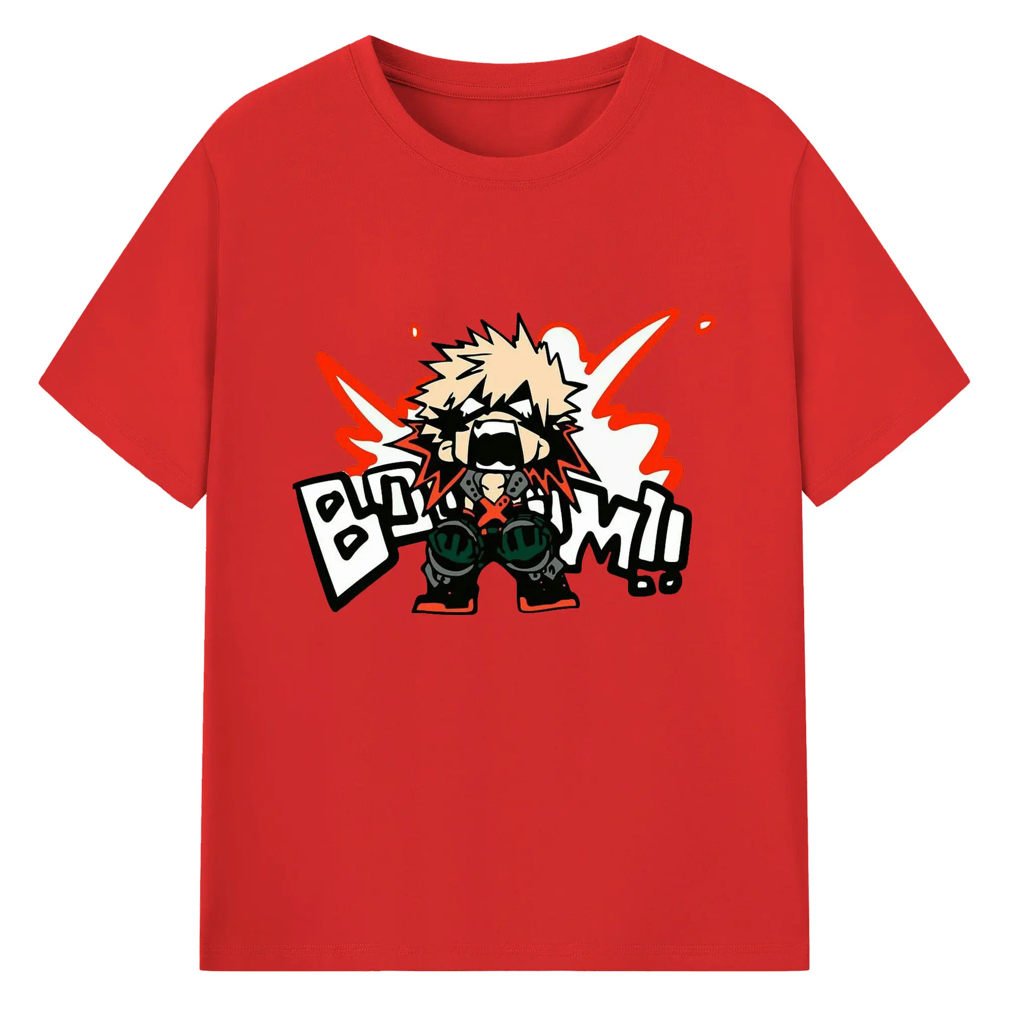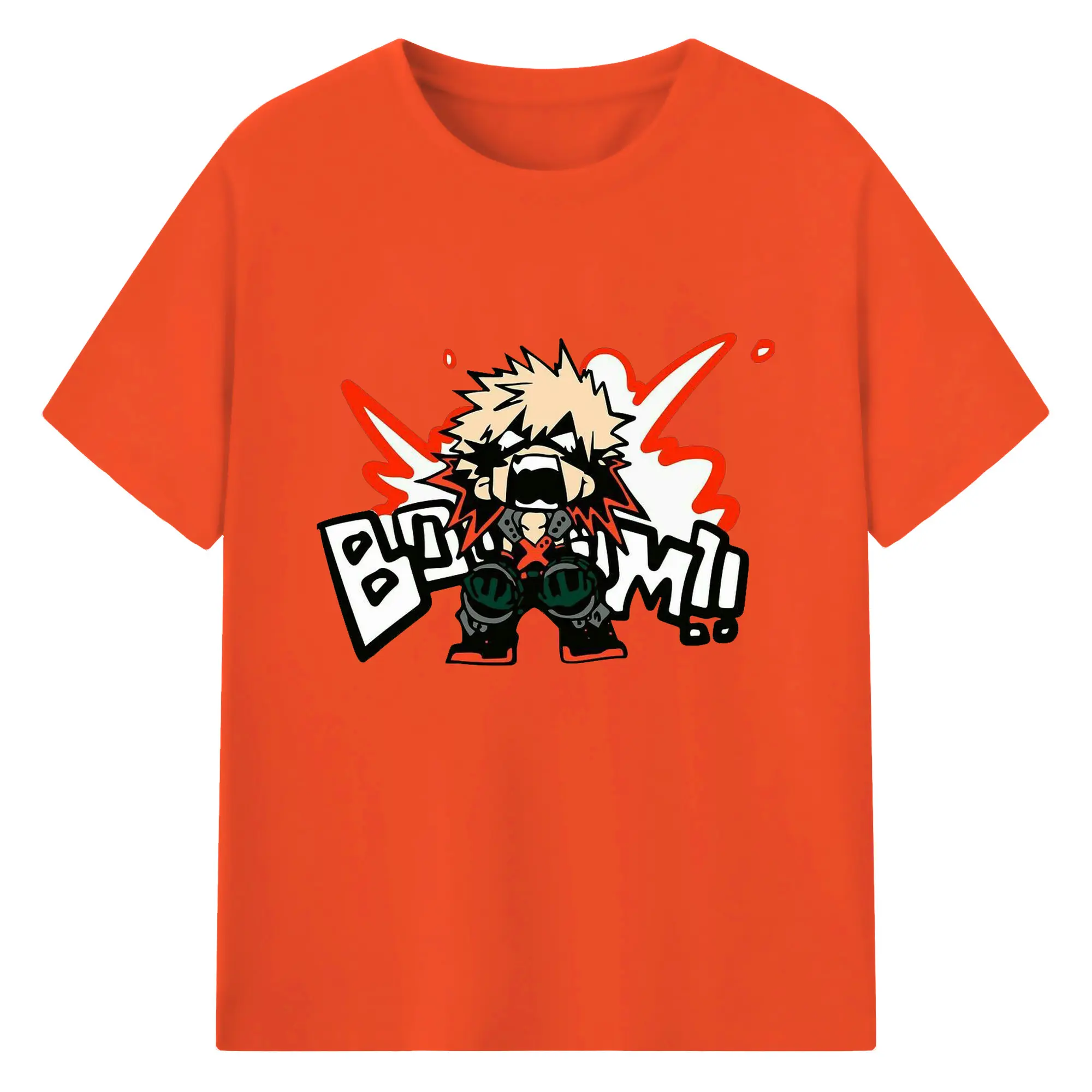 僕のヒーローアカデミア 爆豪 勝己 - 綿100% 半袖Tシャツ ・ フロントプリント ・ 快適 通気性 ・ 日常使い 散歩 スポーツ用