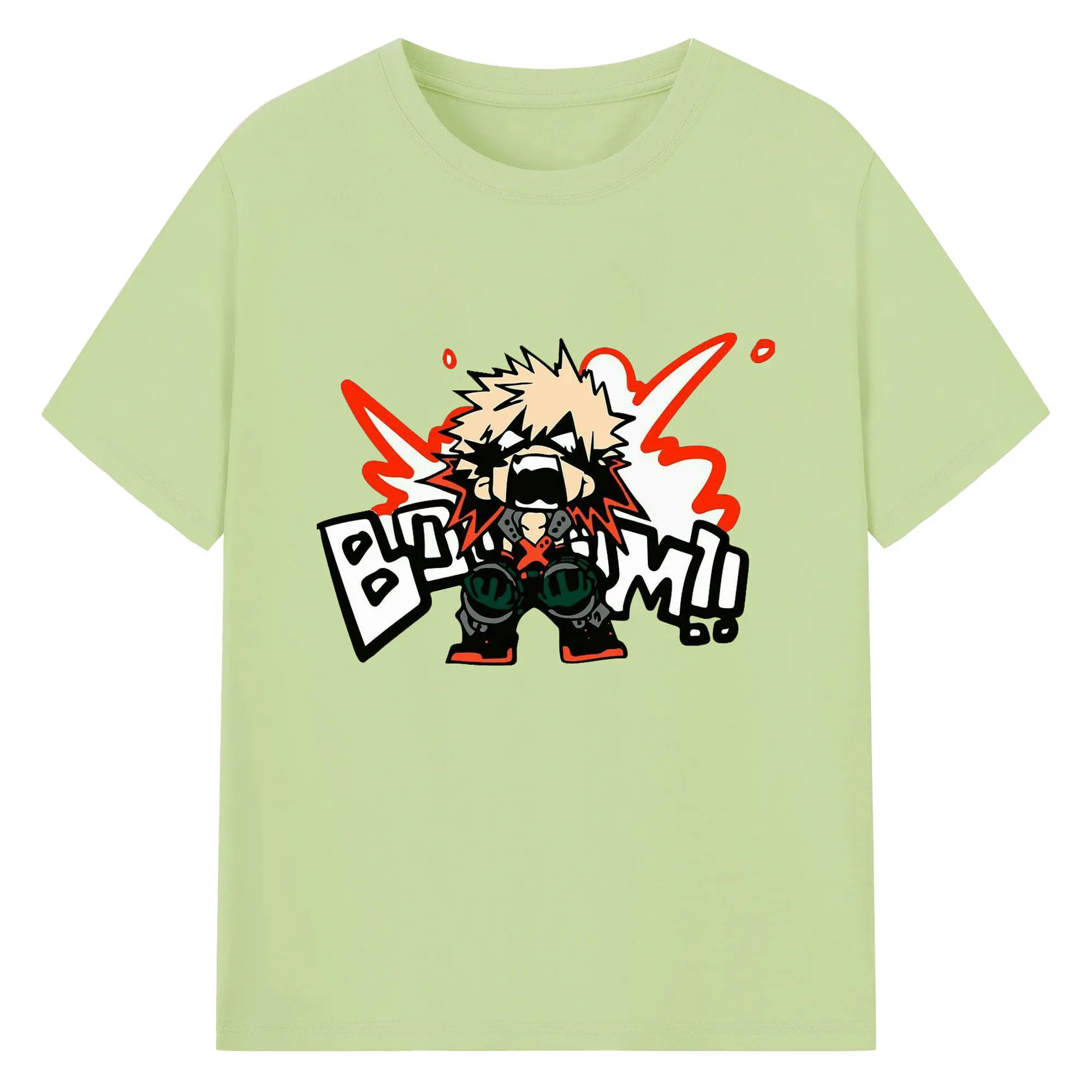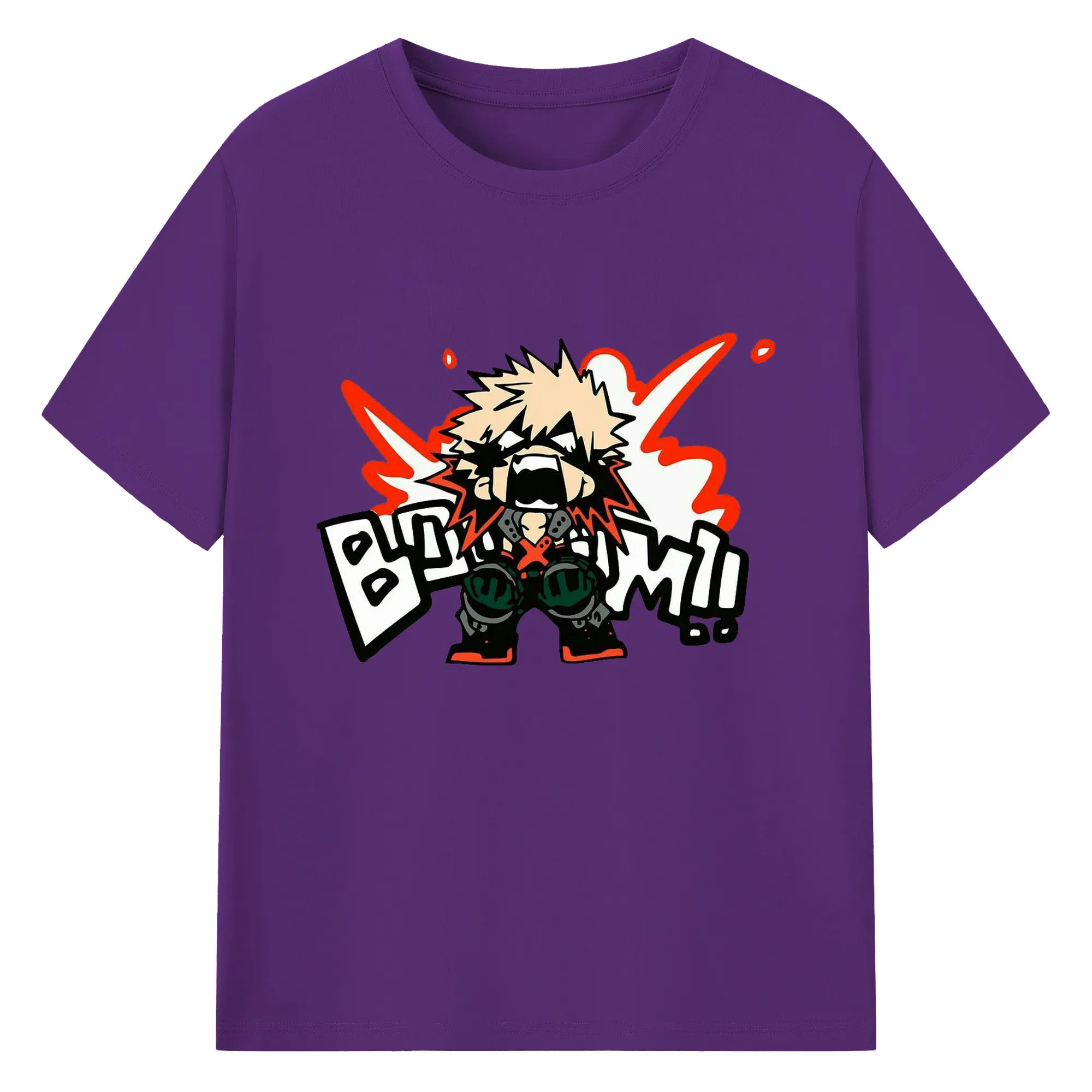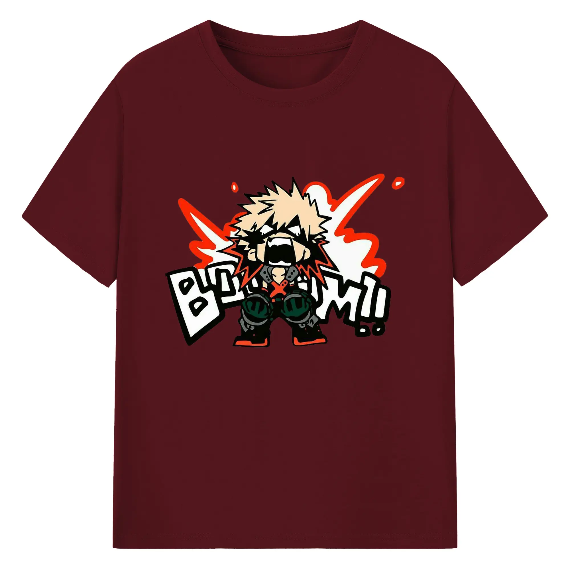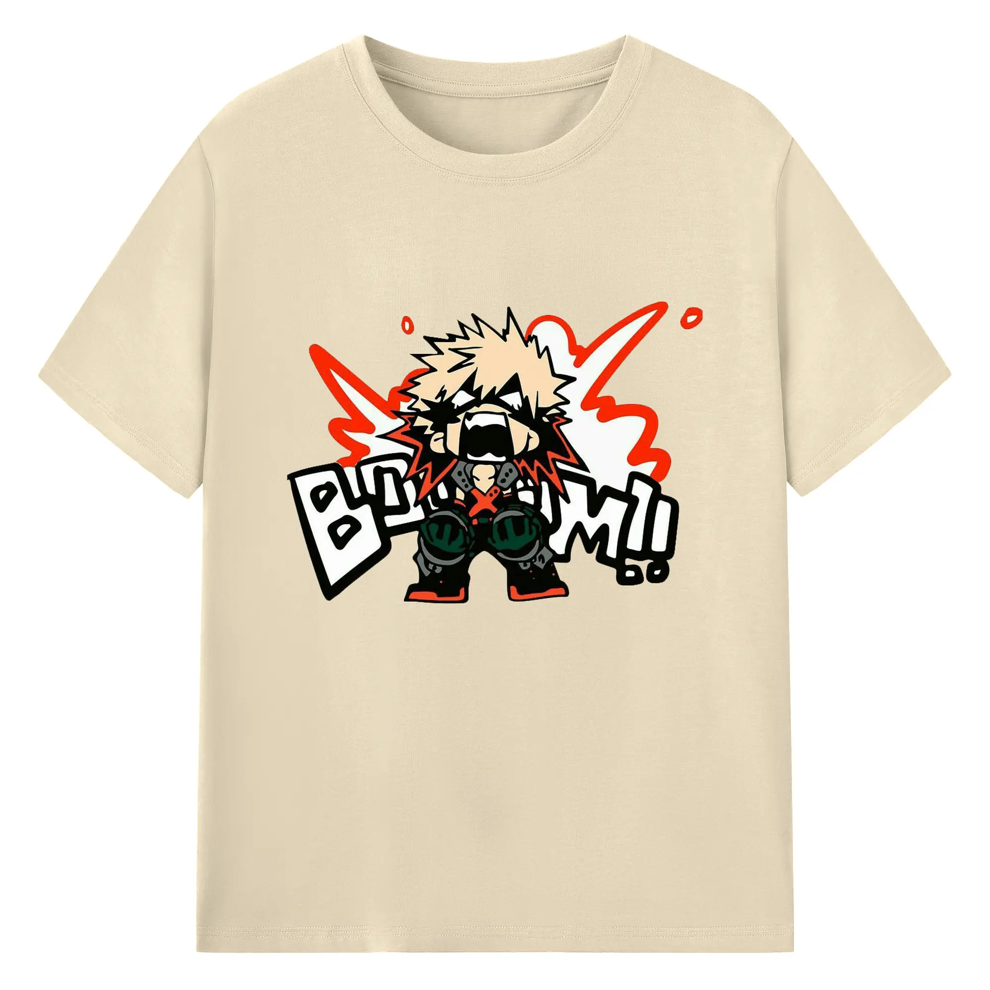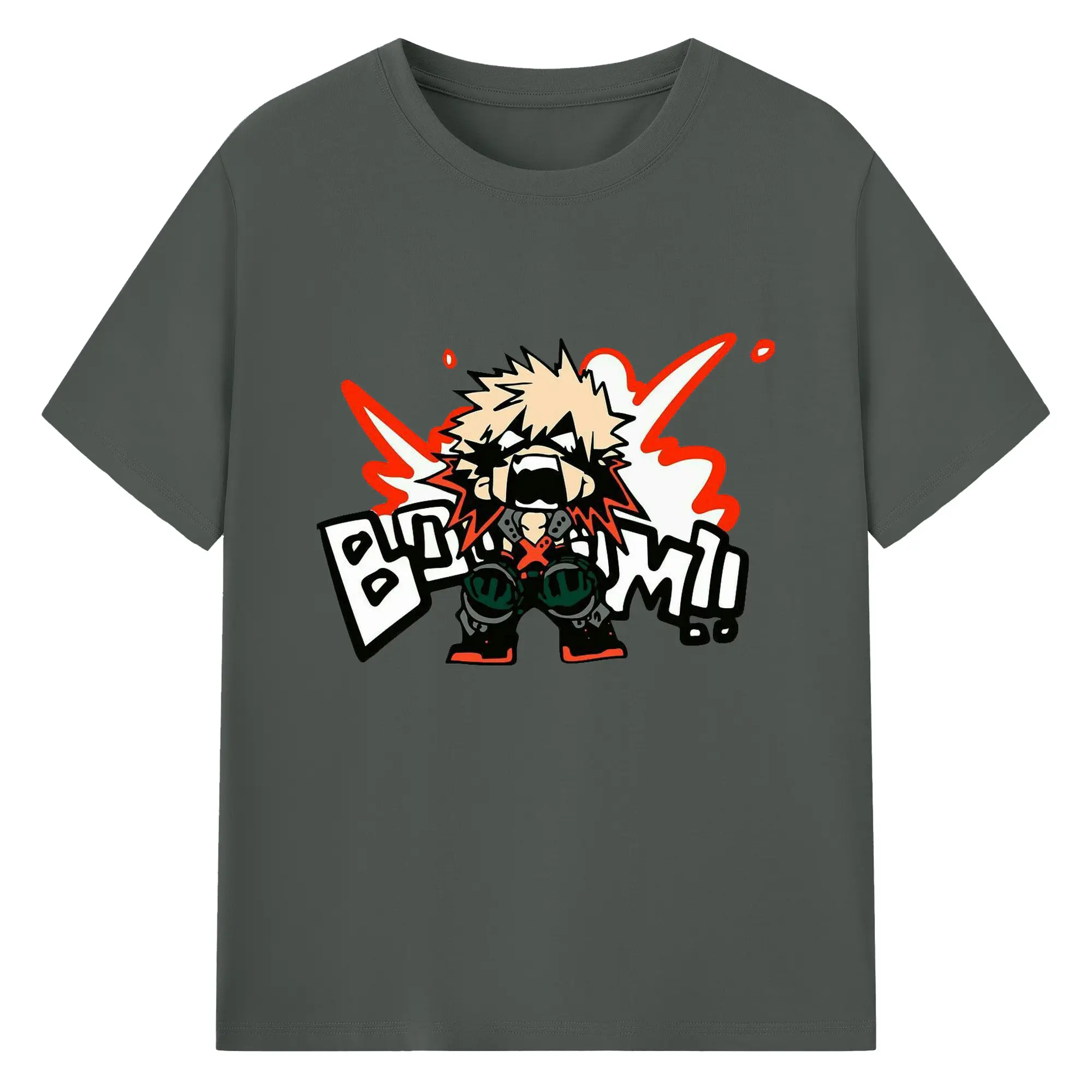僕のヒーローアカデミア 爆豪 勝己 - 綿100% 半袖Tシャツ ・ フロントプリント ・ 快適 通気性 ・ 日常使い 散歩 スポーツ用