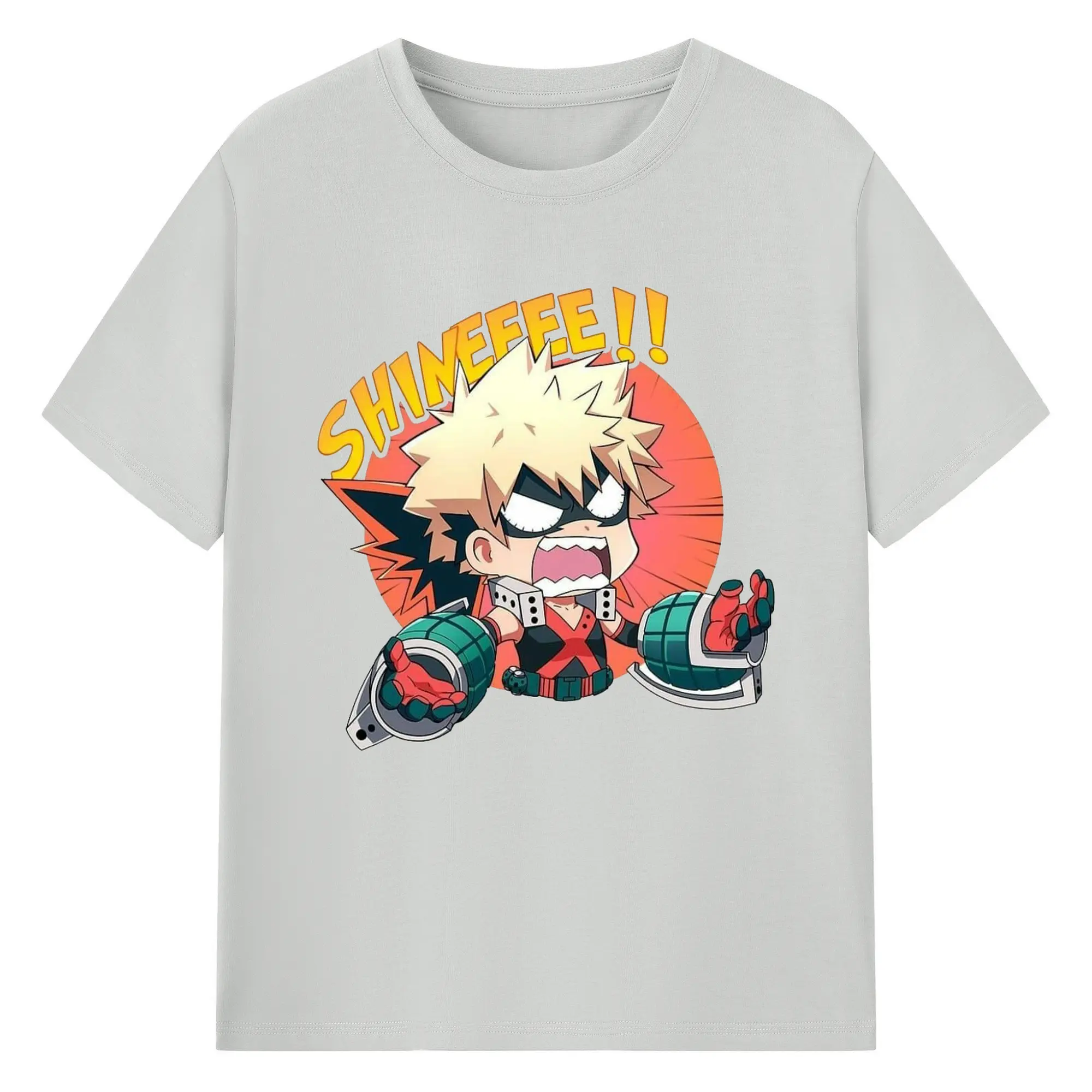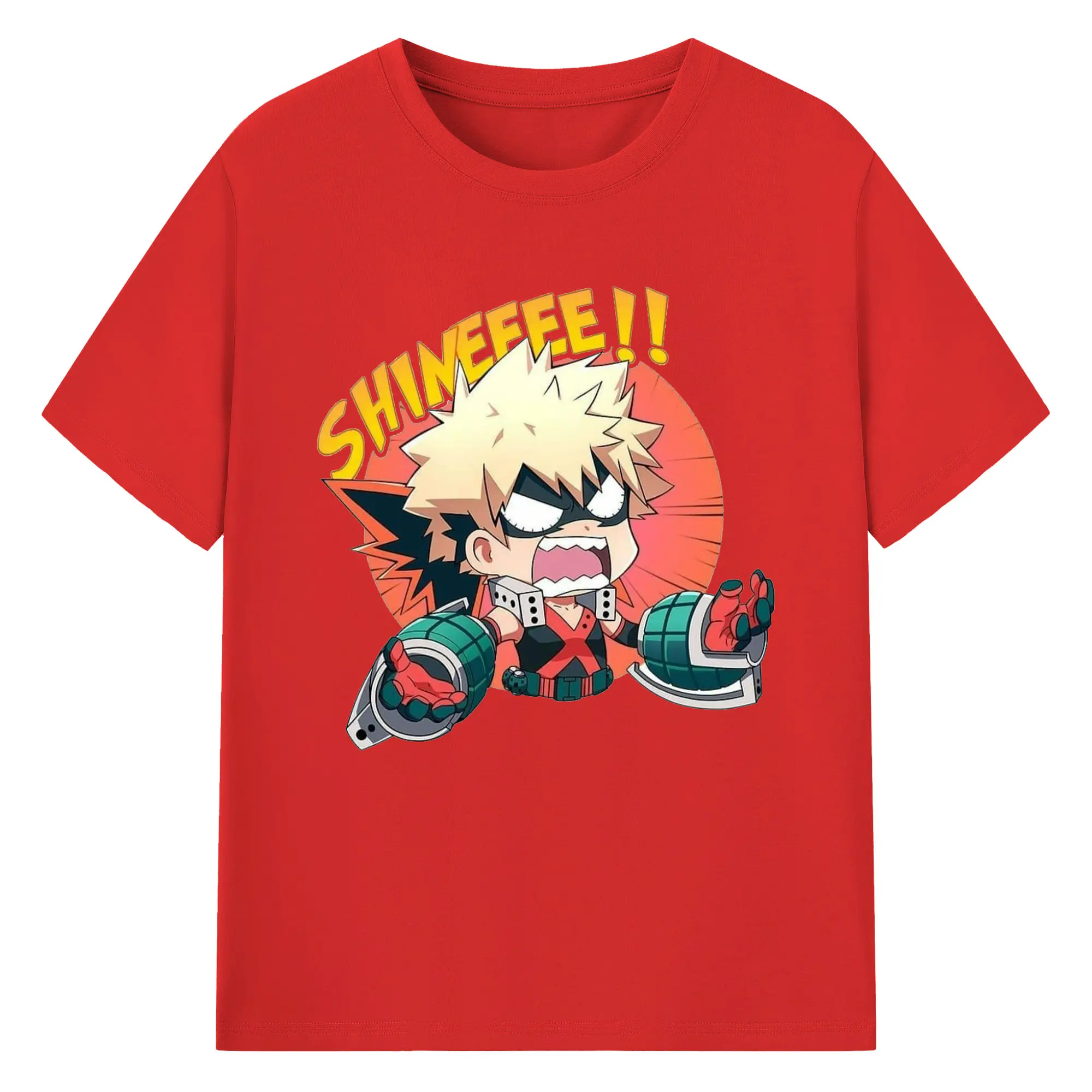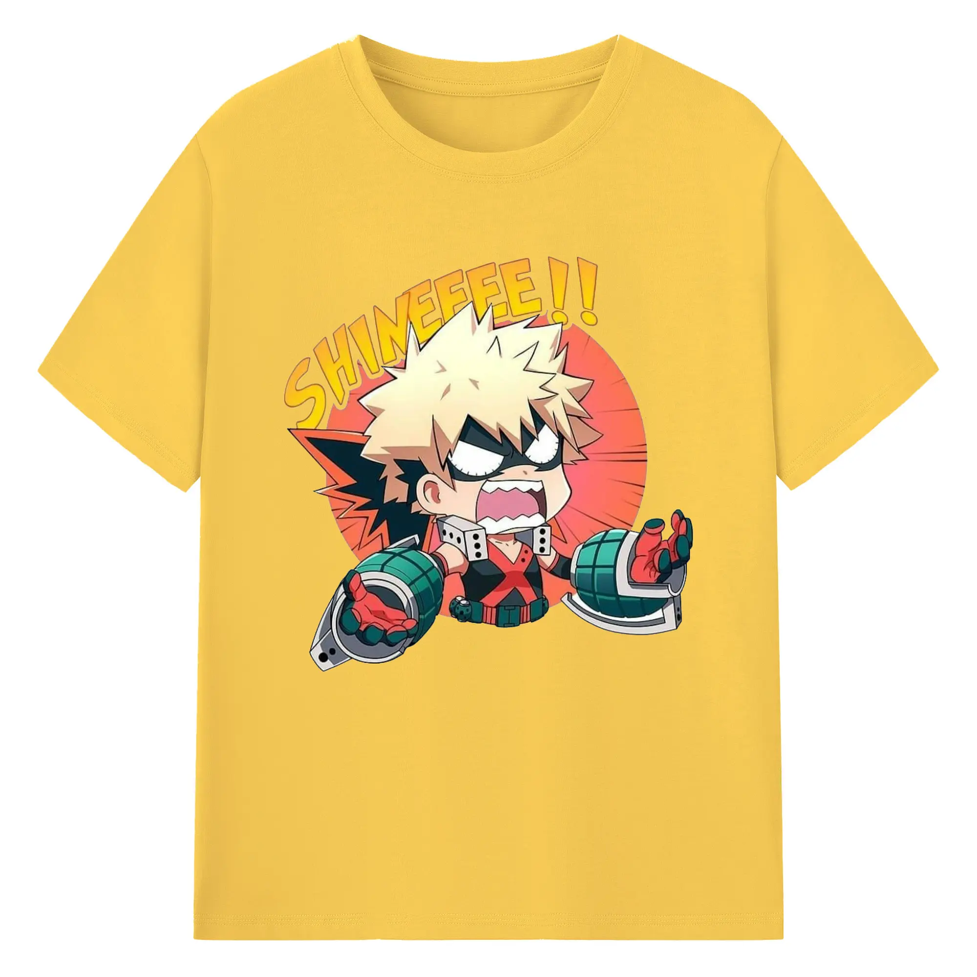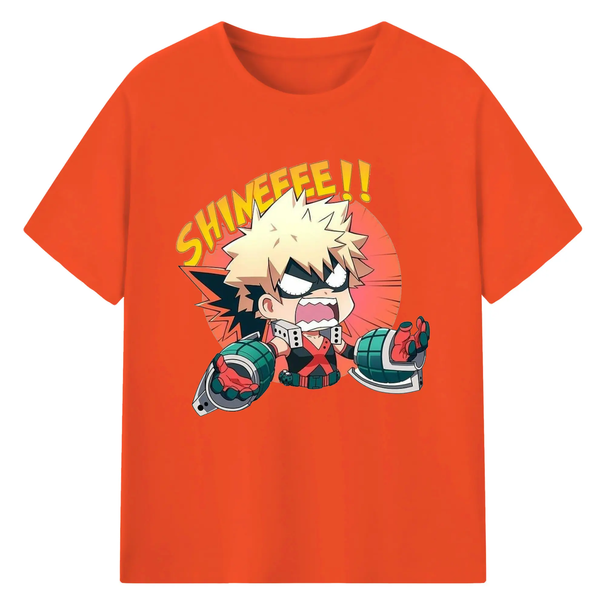 僕のヒーローアカデミア 爆豪 勝己 - 綿100% ヴィンテージ風 半袖Tシャツ ・ フロントプリント ・ 柔らか肌触り ・ 通気性 快適 ・ スポーツ カジュアル 外出用