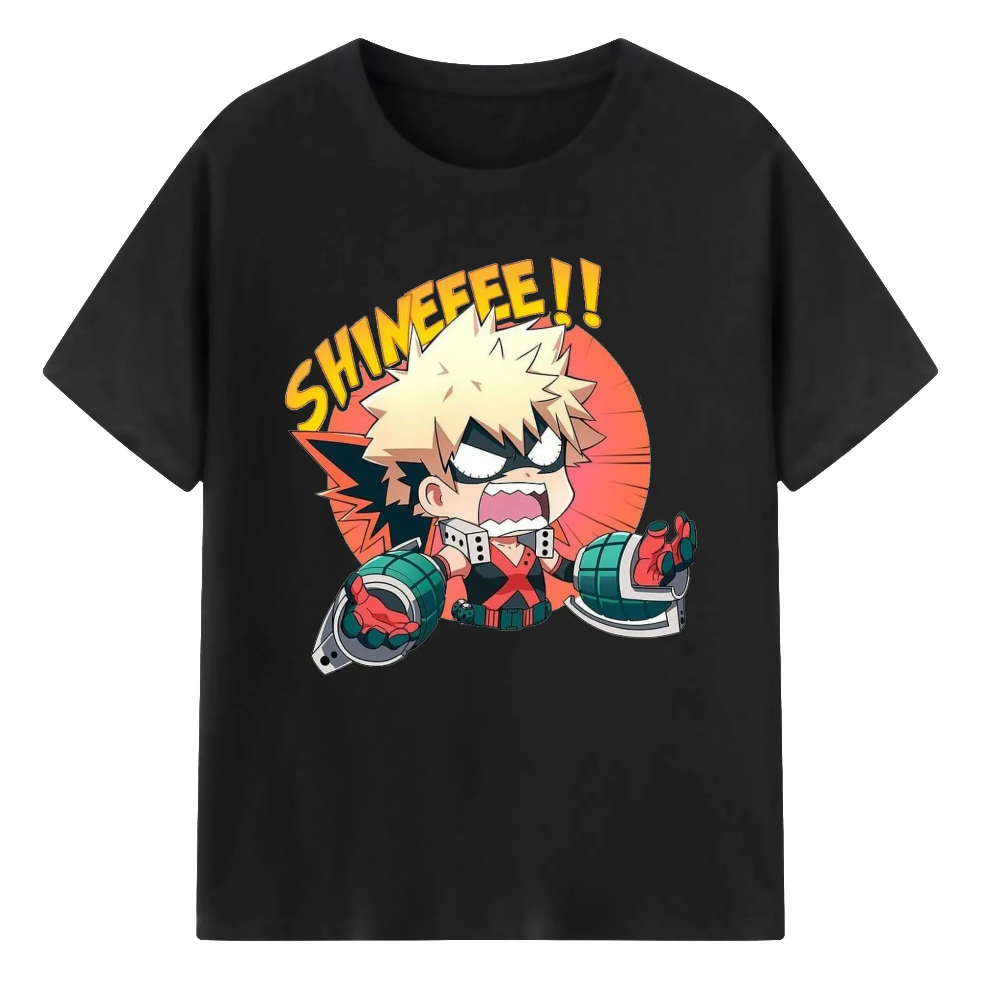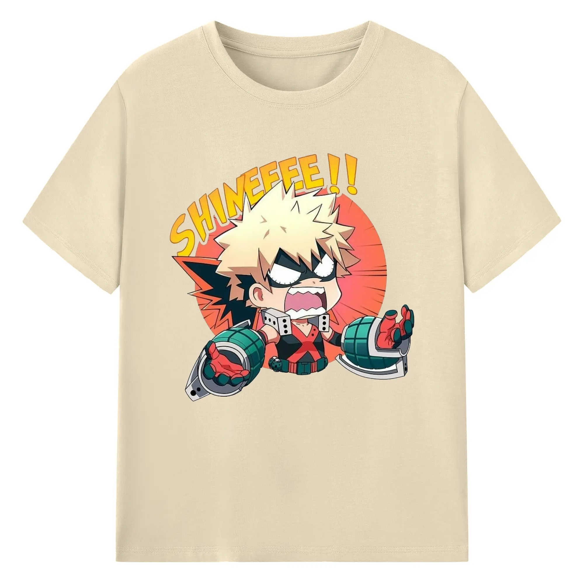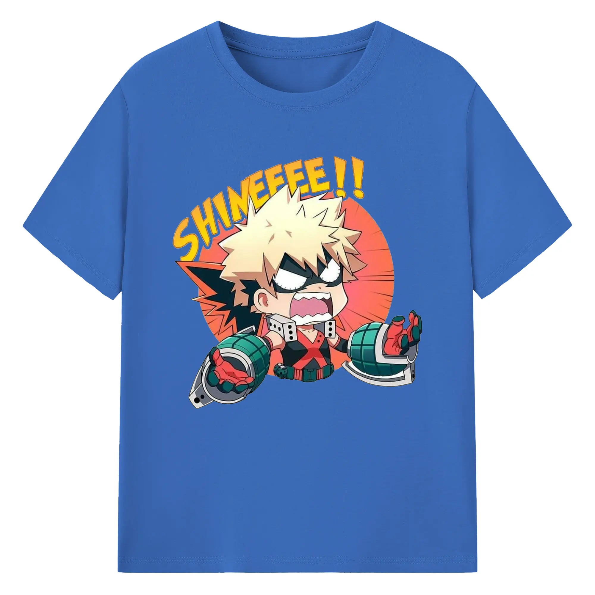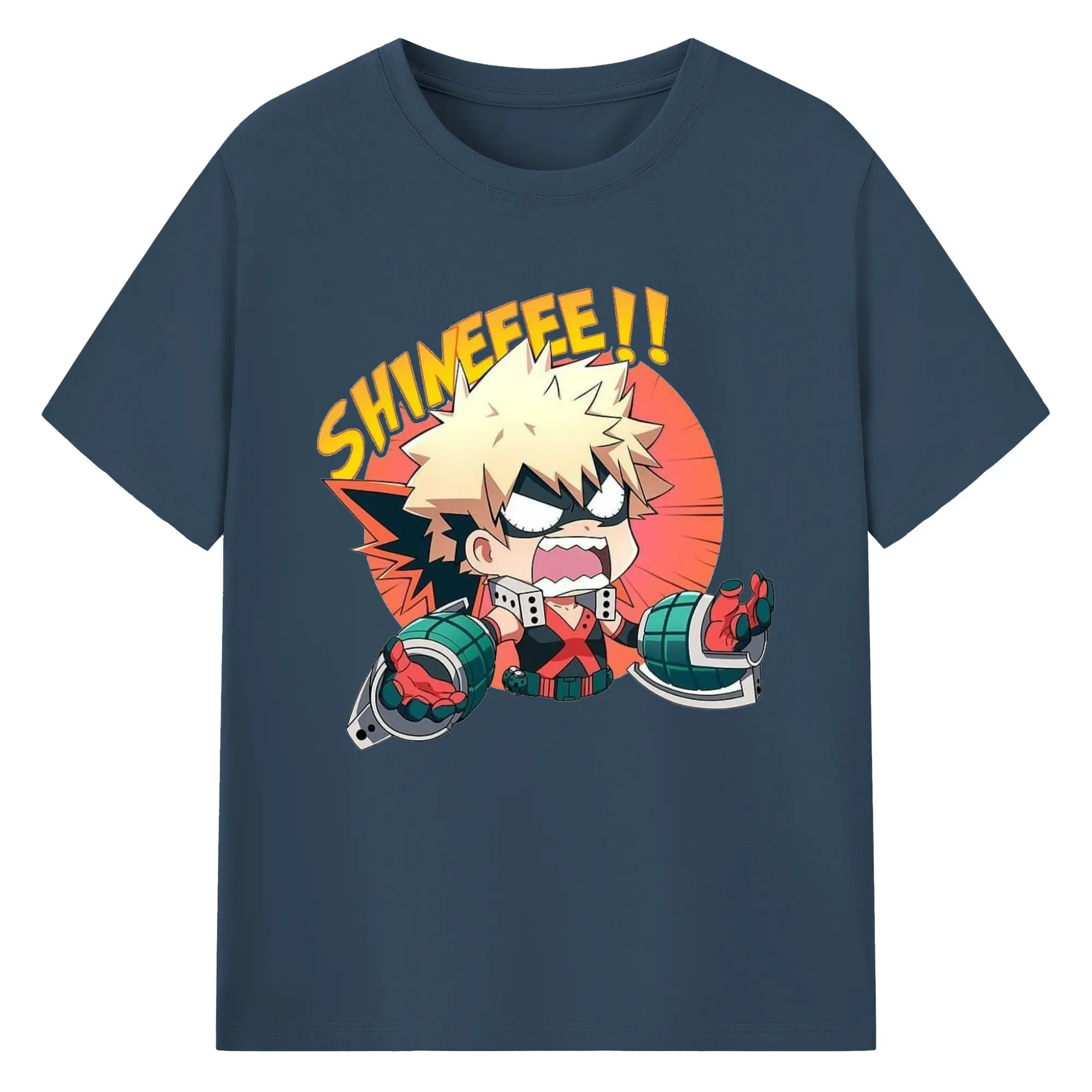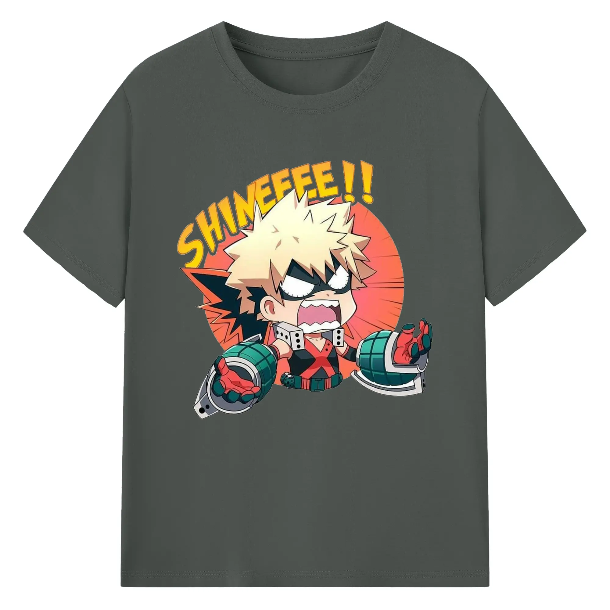 僕のヒーローアカデミア 爆豪 勝己 - 綿100% ヴィンテージ風 半袖Tシャツ ・ フロントプリント ・ 柔らか肌触り ・ 通気性 快適 ・ スポーツ カジュアル 外出用