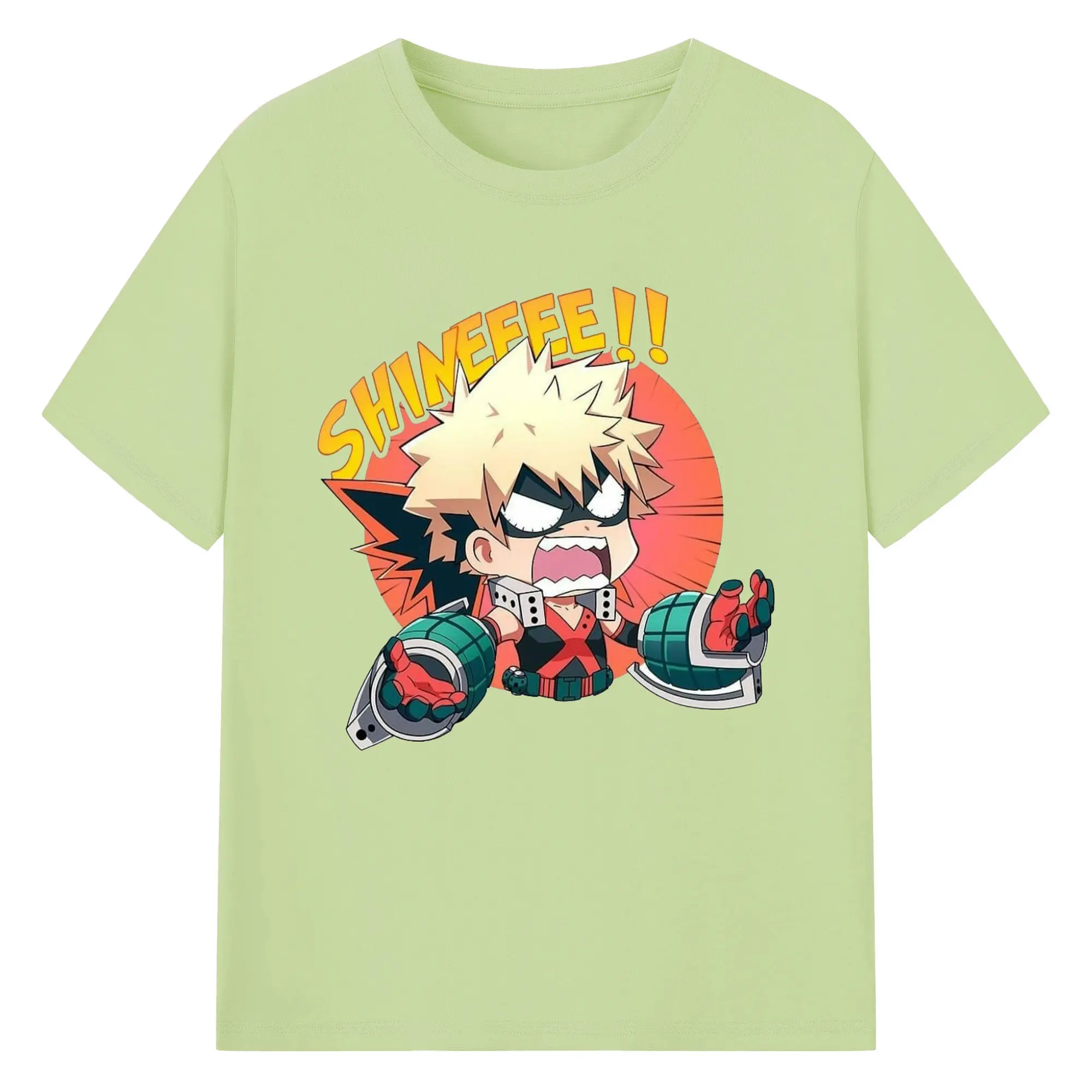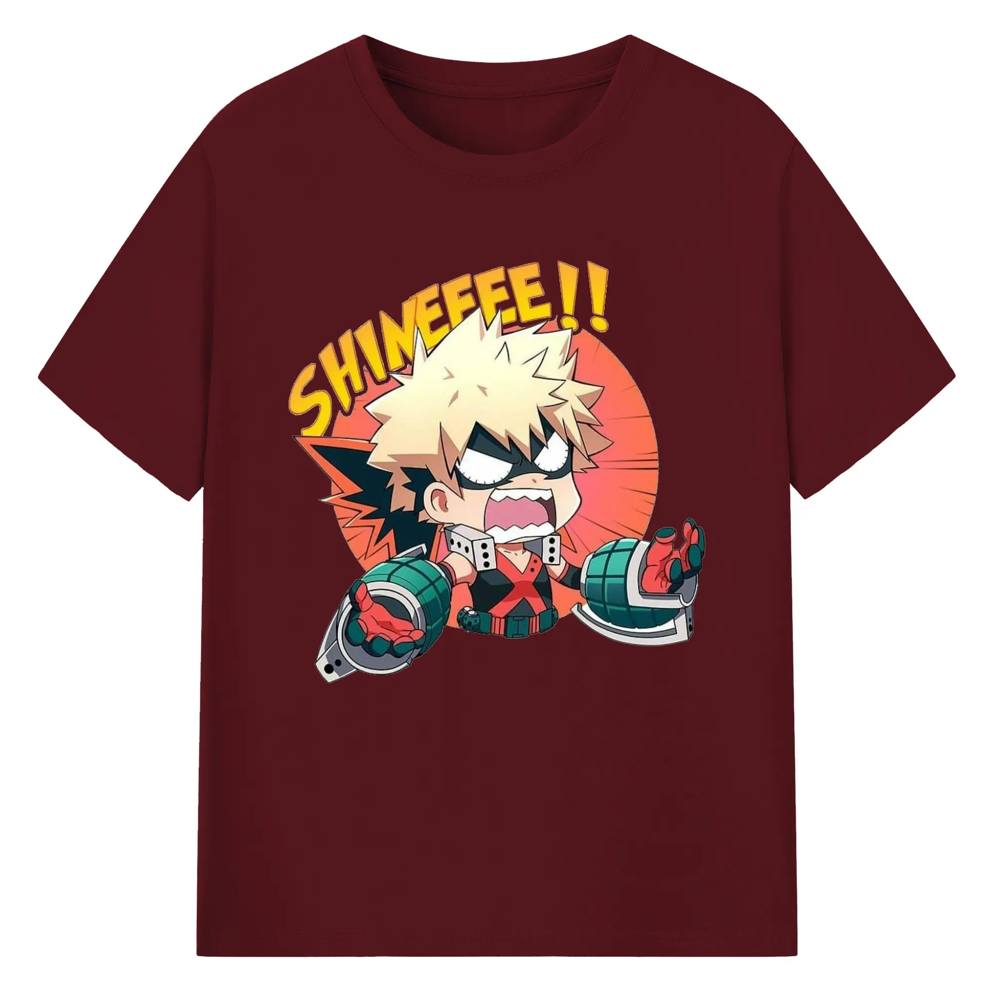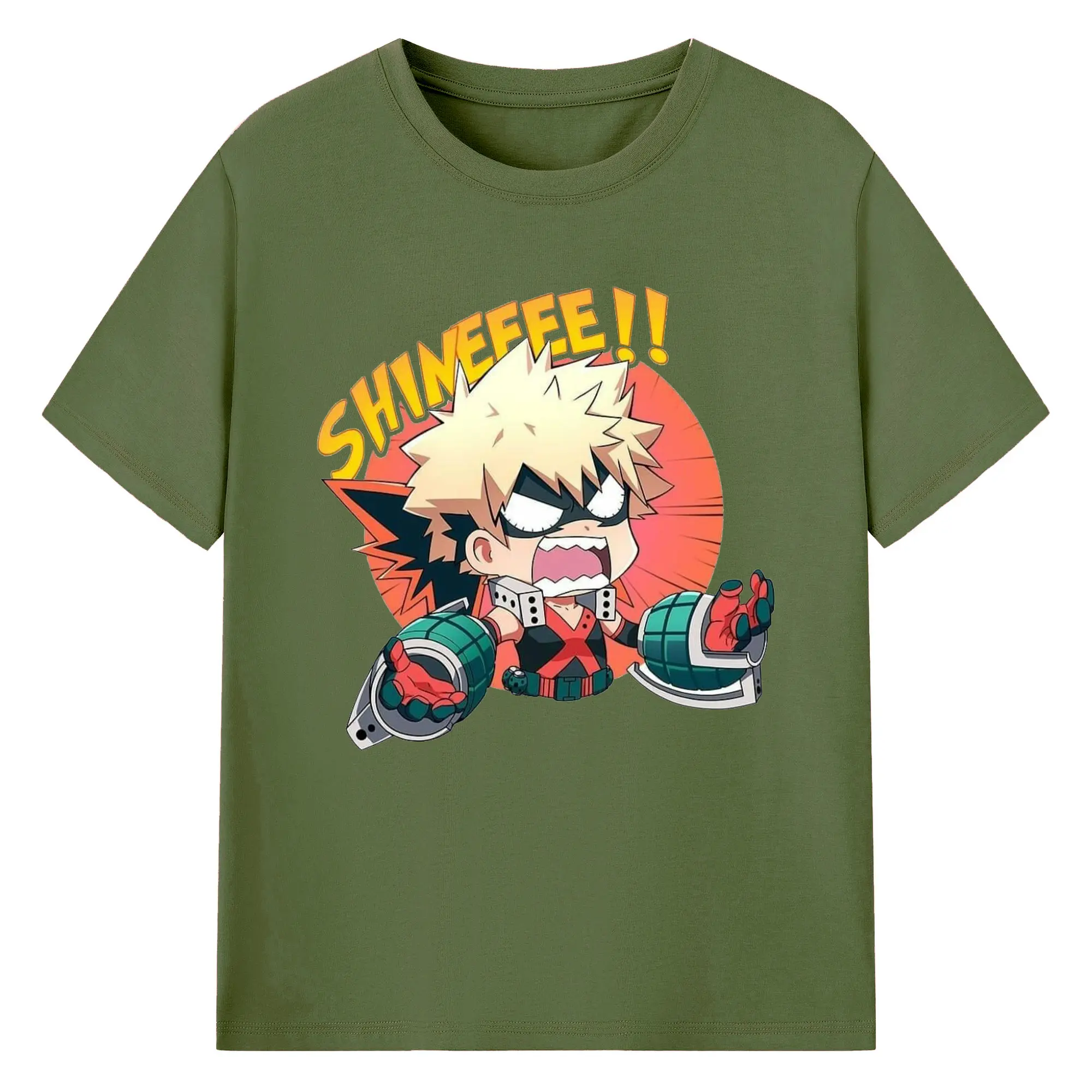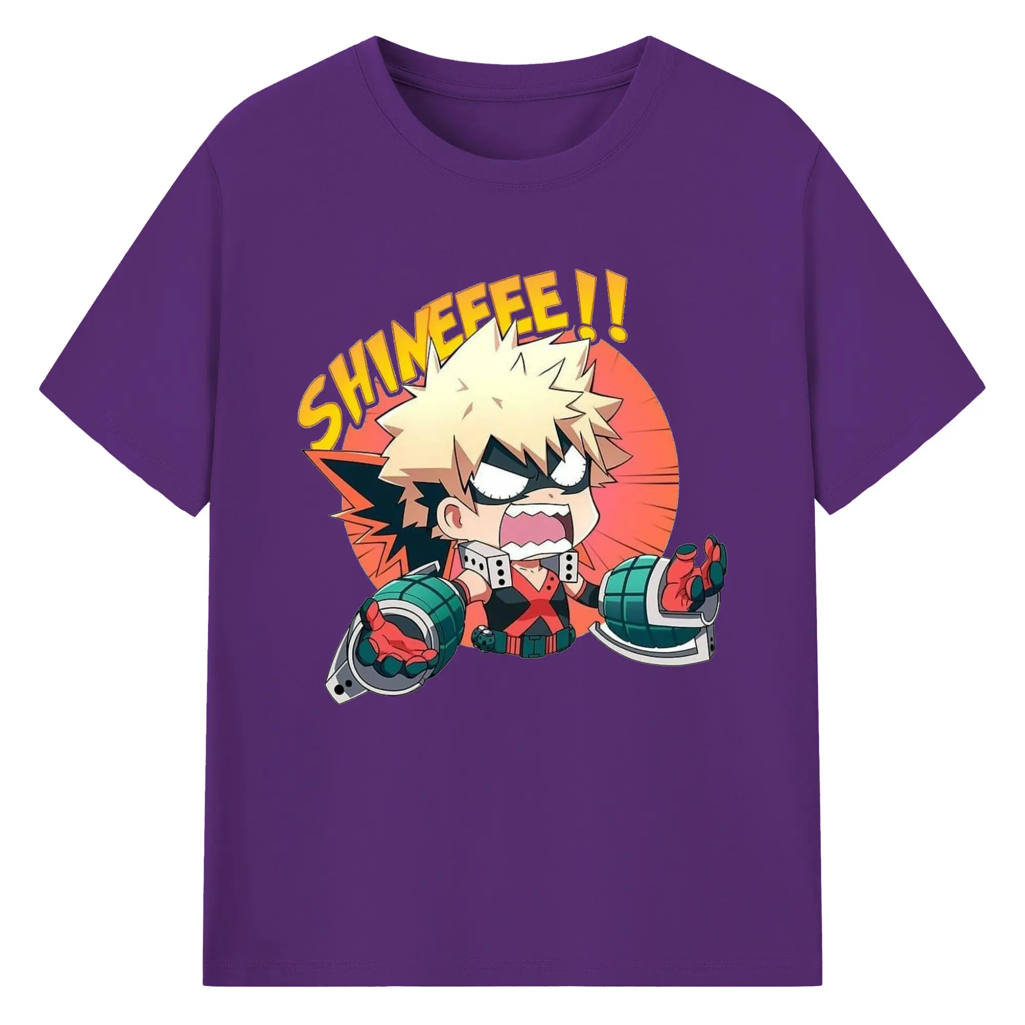 僕のヒーローアカデミア 爆豪 勝己 - 綿100% ヴィンテージ風 半袖Tシャツ ・ フロントプリント ・ 柔らか肌触り ・ 通気性 快適 ・ スポーツ カジュアル 外出用