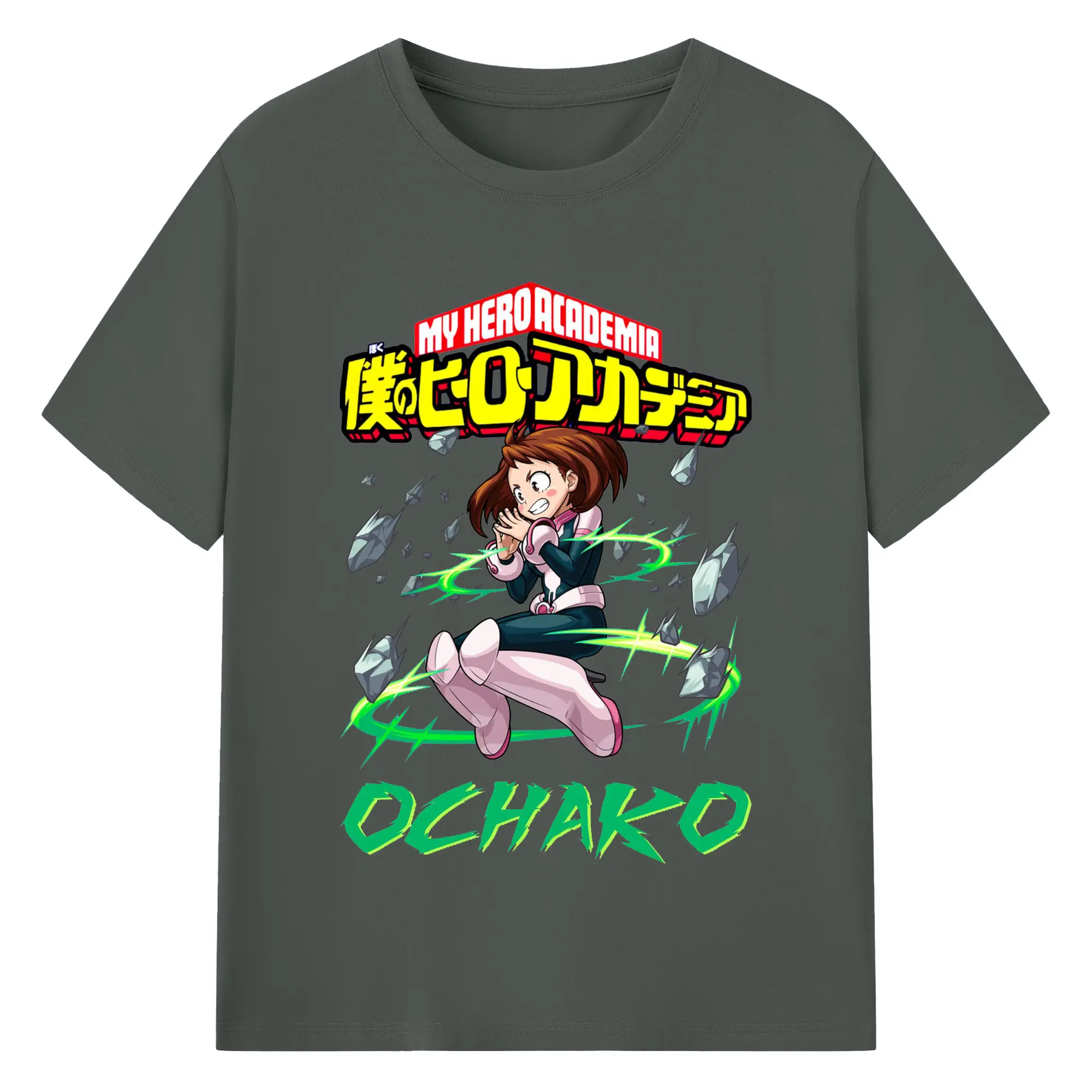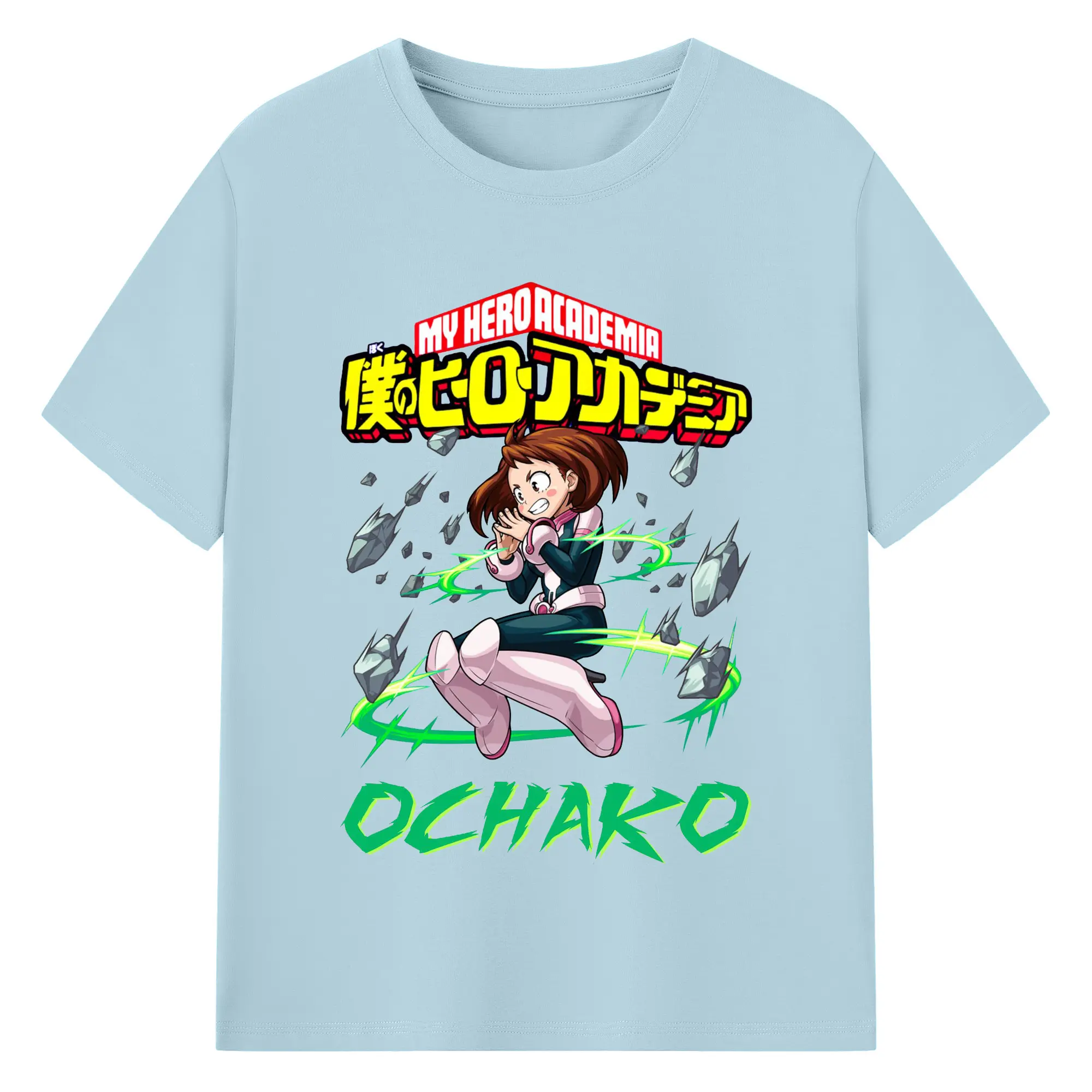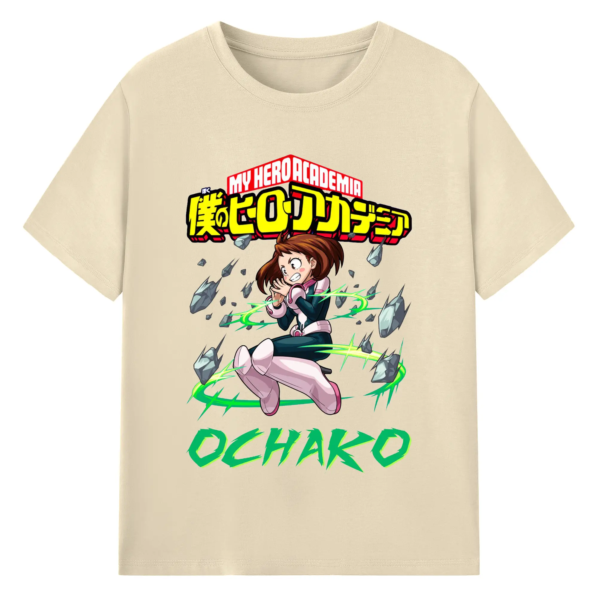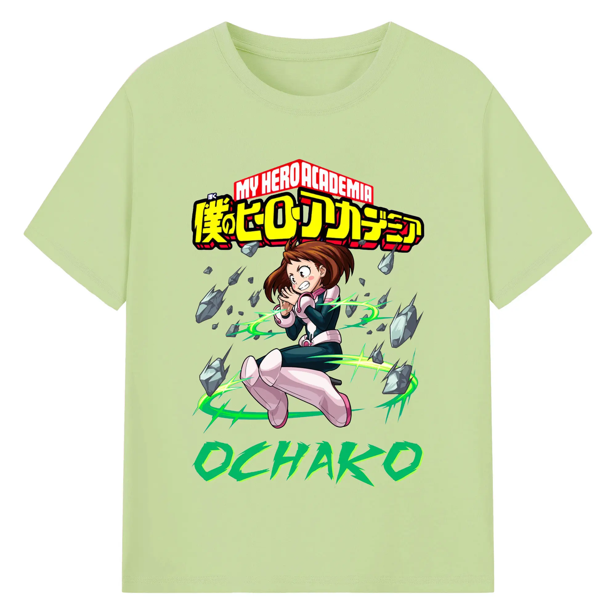僕のヒーローアカデミア 麗日 お茶子 - 綿100% ヴィンテージ風 半袖Tシャツ ・ フロントプリント ・ 柔らか肌触り ・ 通気性 快適 ・ スポーツ カジュアル 外出用