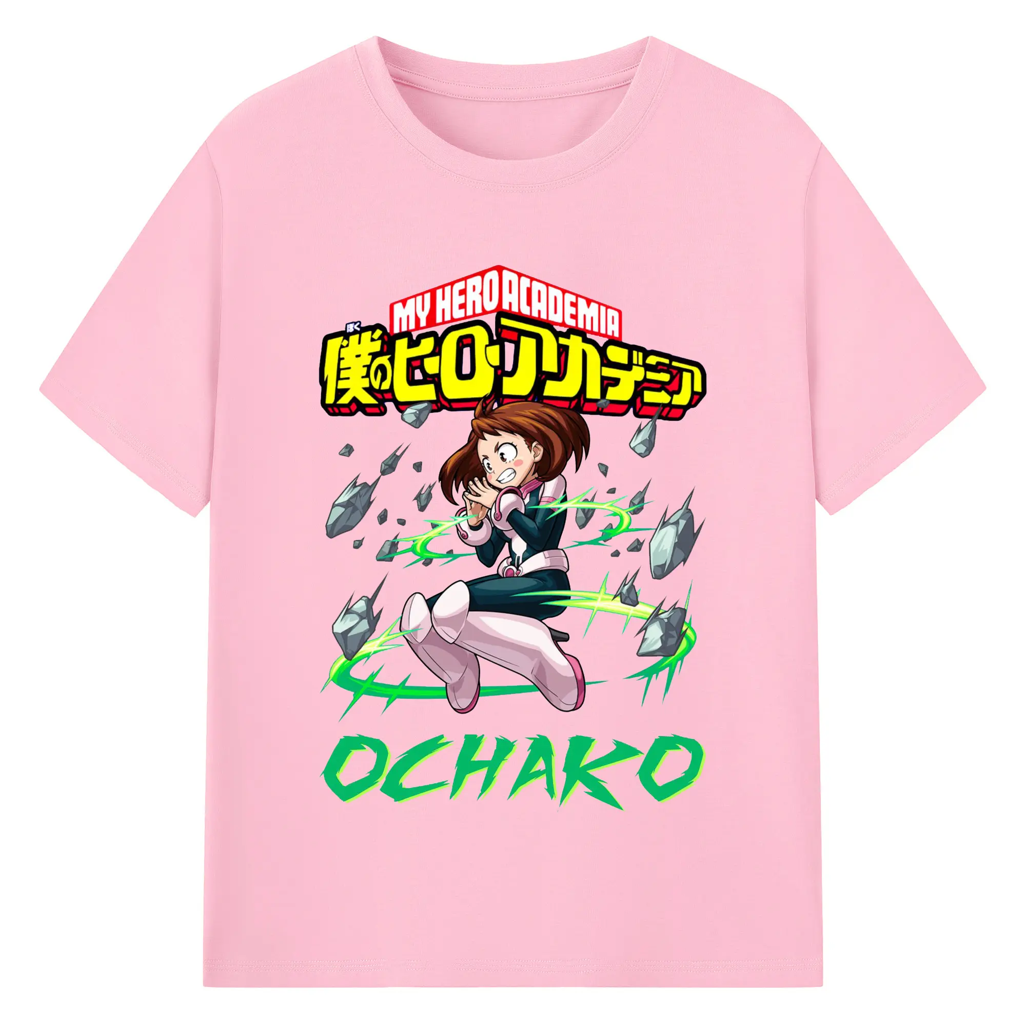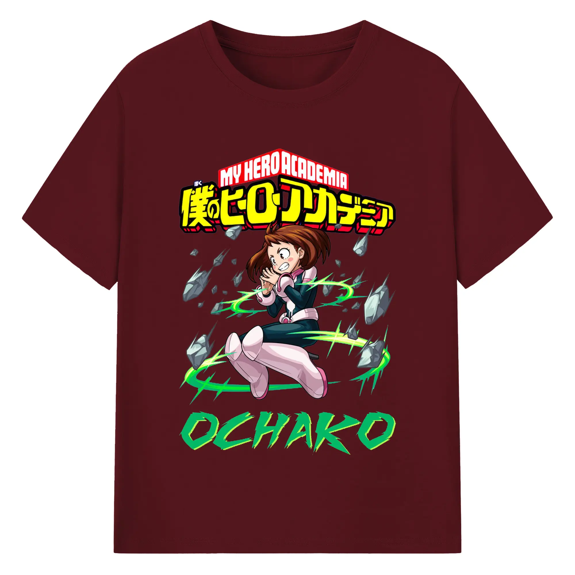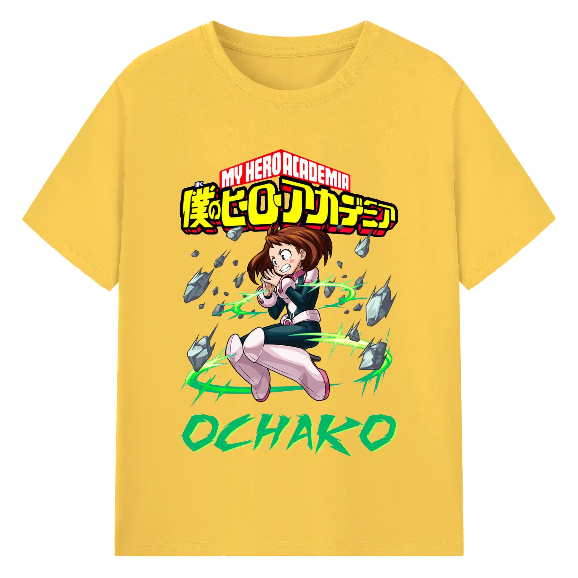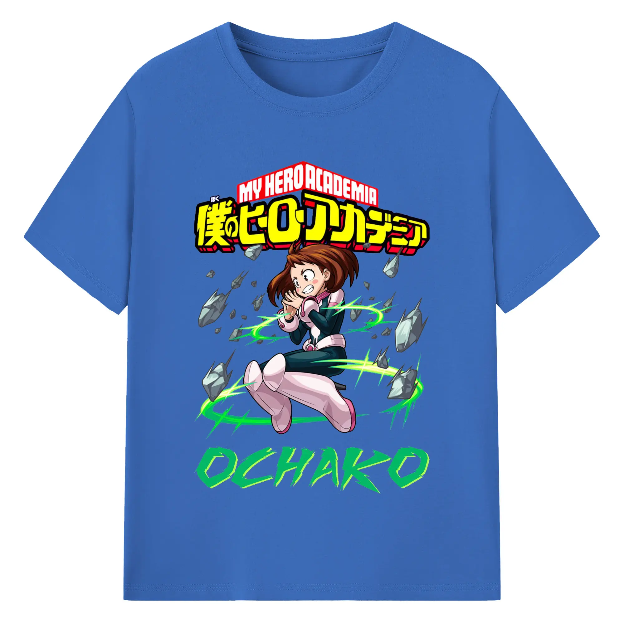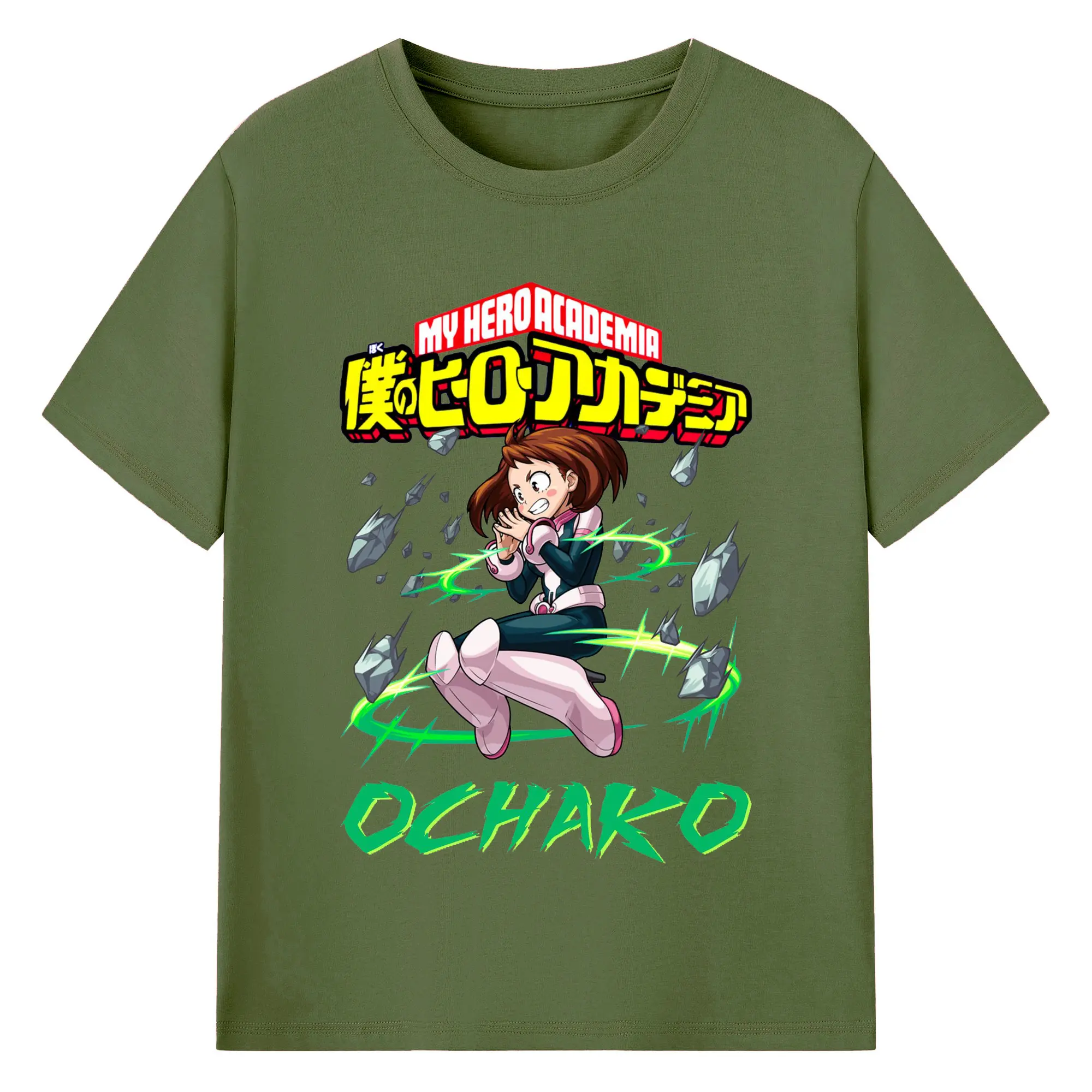 僕のヒーローアカデミア 麗日 お茶子 - 綿100% ヴィンテージ風 半袖Tシャツ ・ フロントプリント ・ 柔らか肌触り ・ 通気性 快適 ・ スポーツ カジュアル 外出用