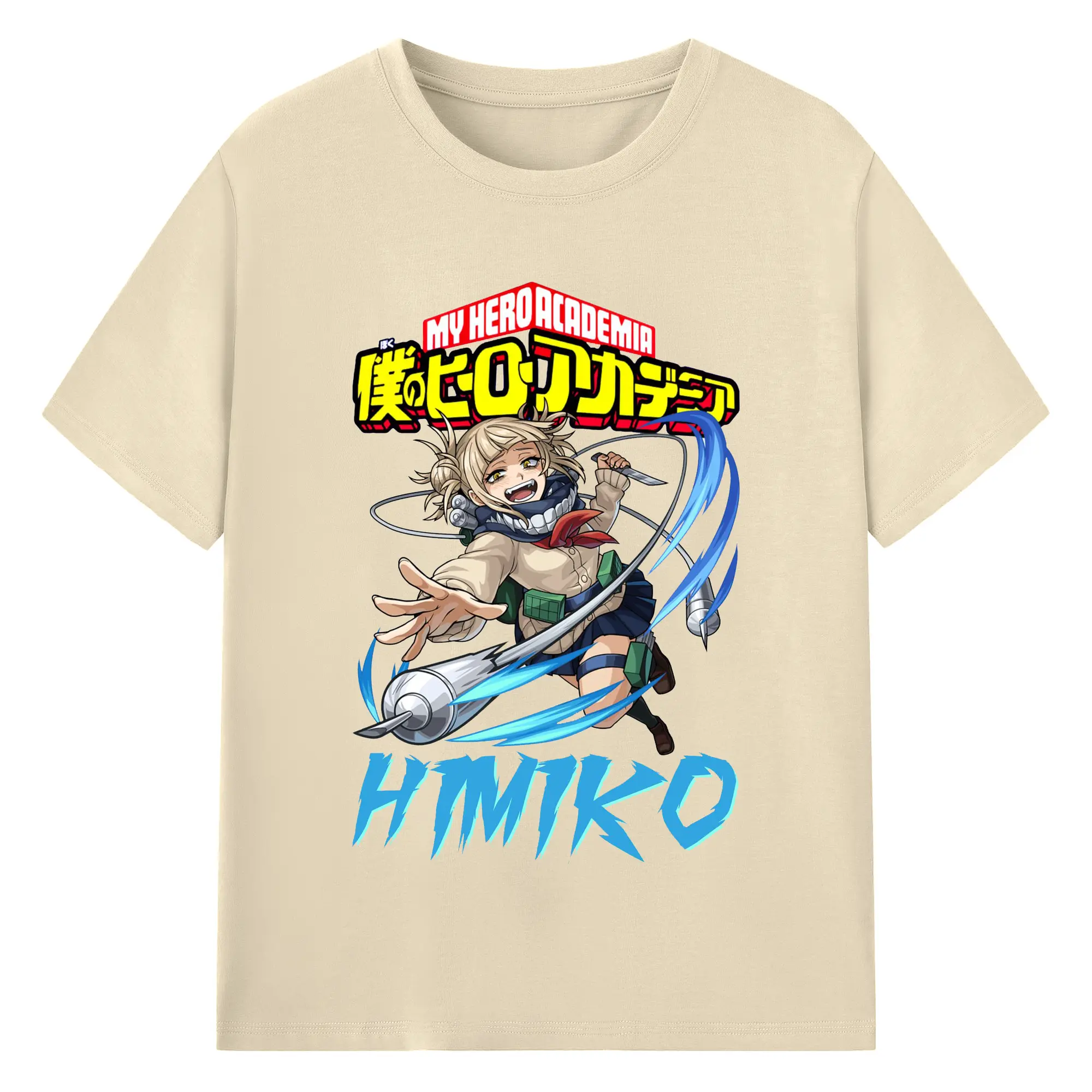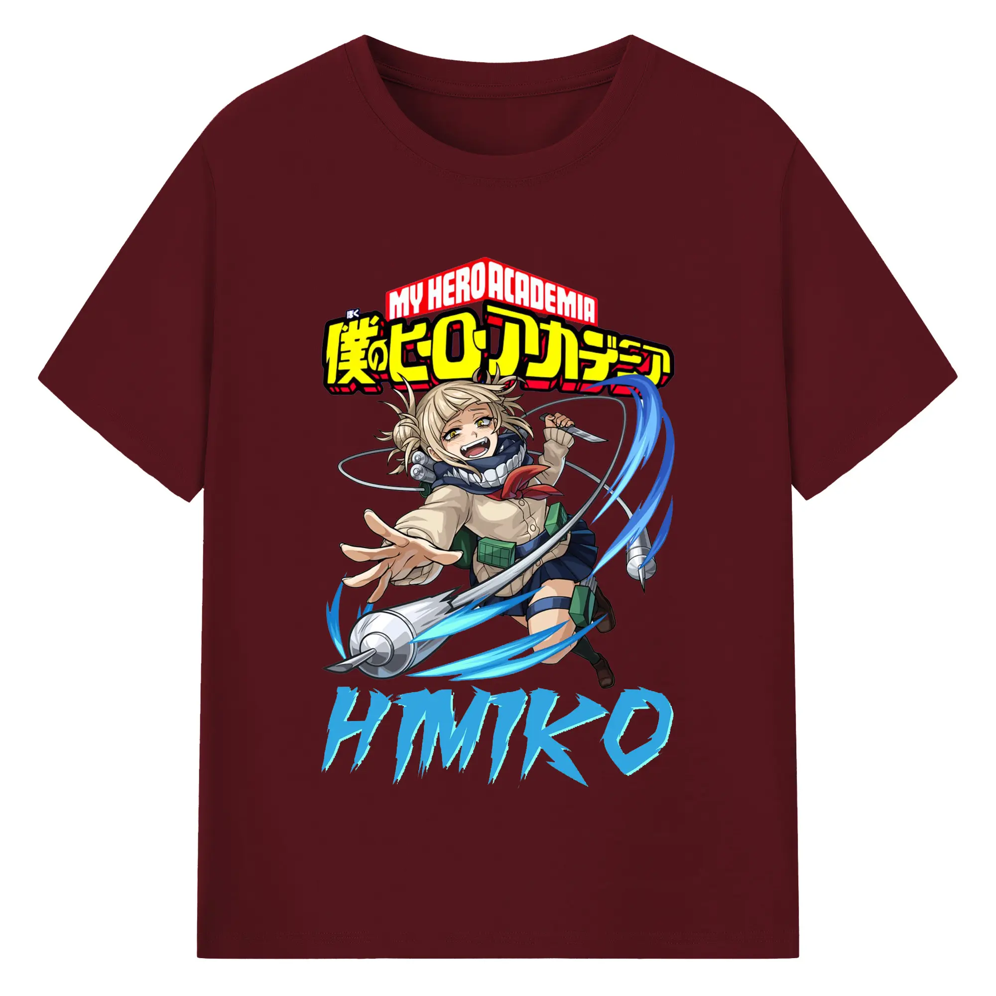 僕のヒーローアカデミア トガ ヒミコ - 綿100% ヴィンテージ風 半袖Tシャツ ・ フロントプリント ・ 柔らか肌触り ・ 通気性 快適 ・ スポーツ カジュアル 外出用