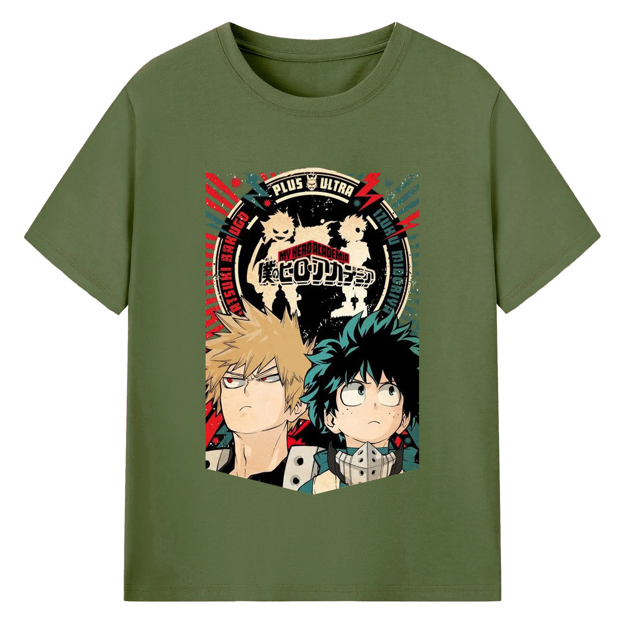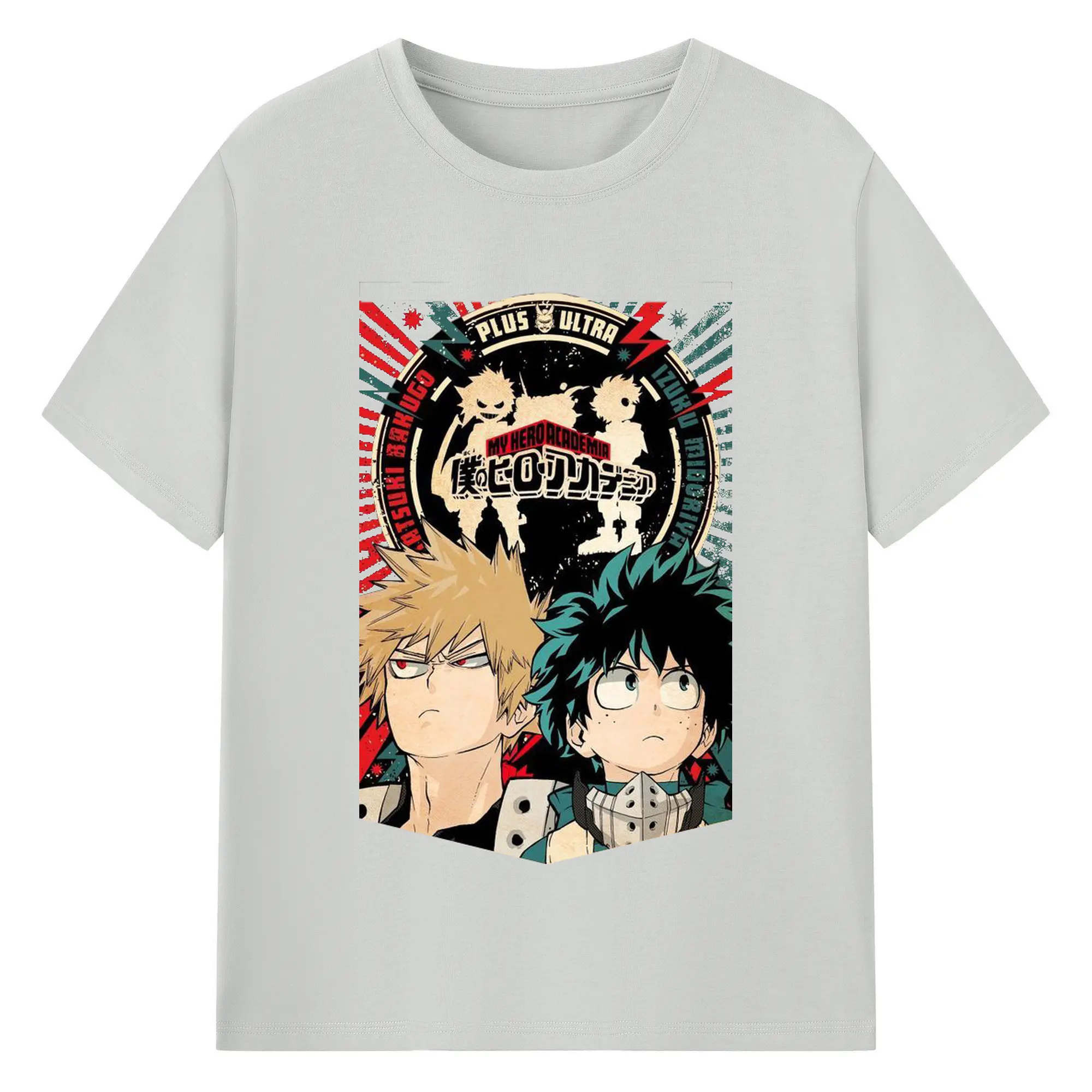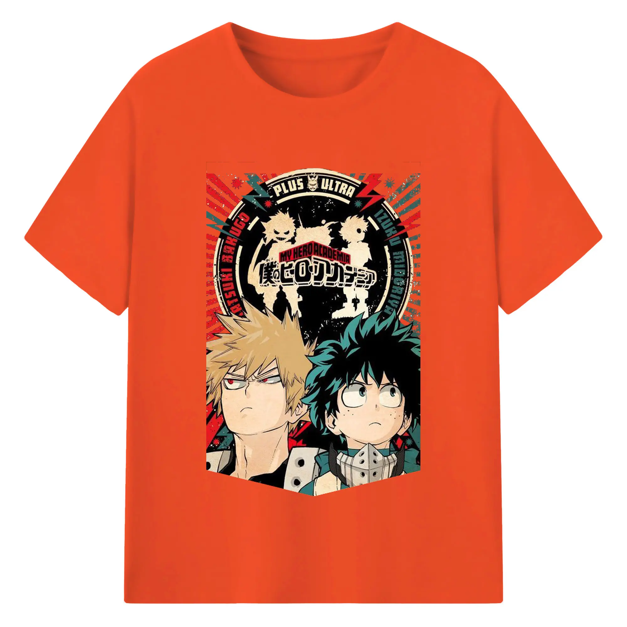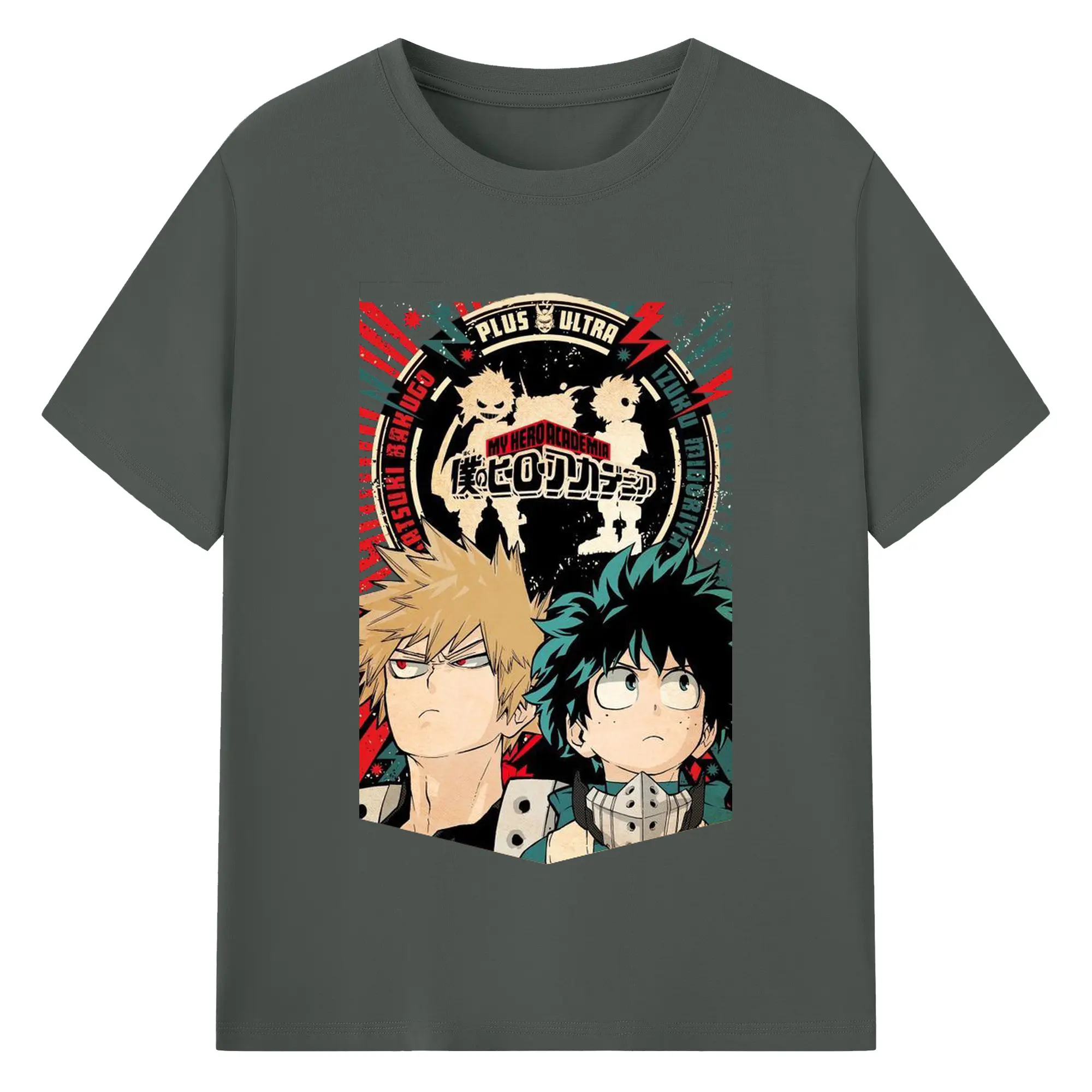 僕のヒーローアカデミア ヒロアカ デクと爆豪友情 - 綿100% ヴィンテージ風 半袖Tシャツ ・ フロントプリント ・ 柔らか肌触り ・ 通気性 快適 ・ スポーツ カジュアル 外出用