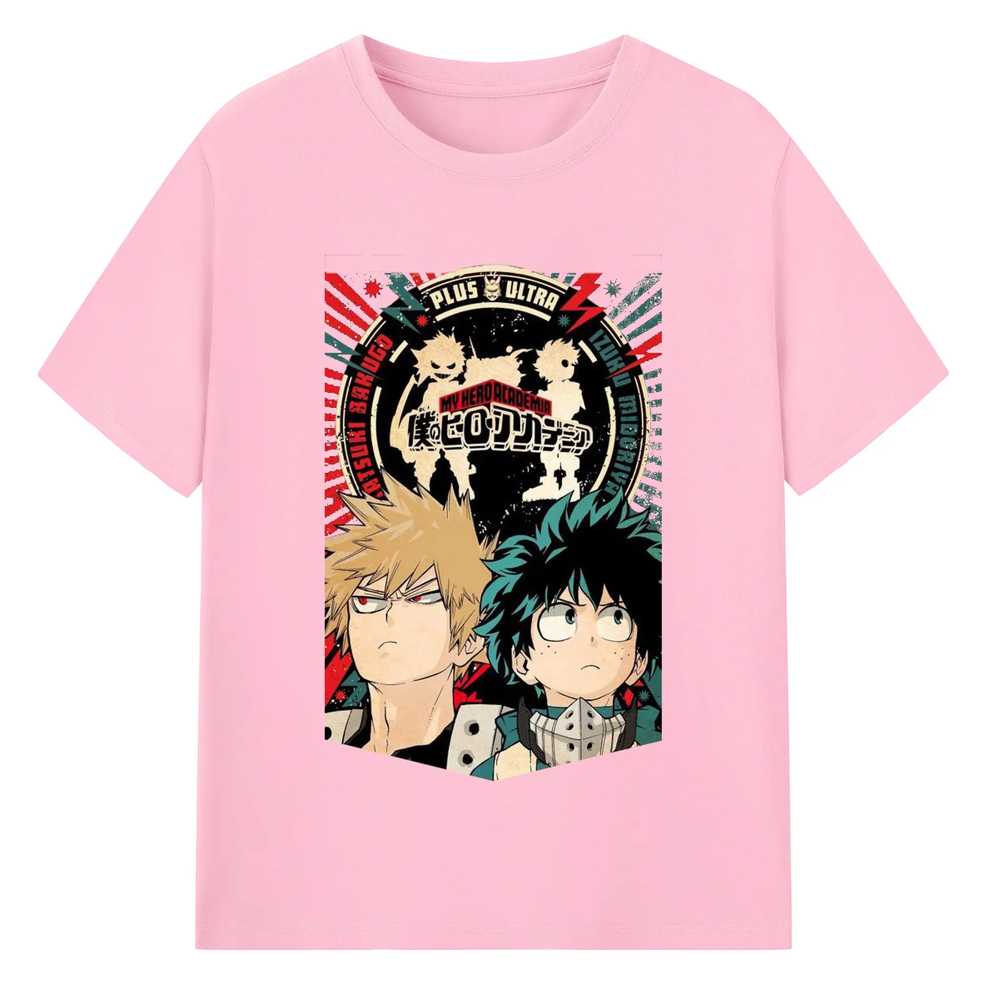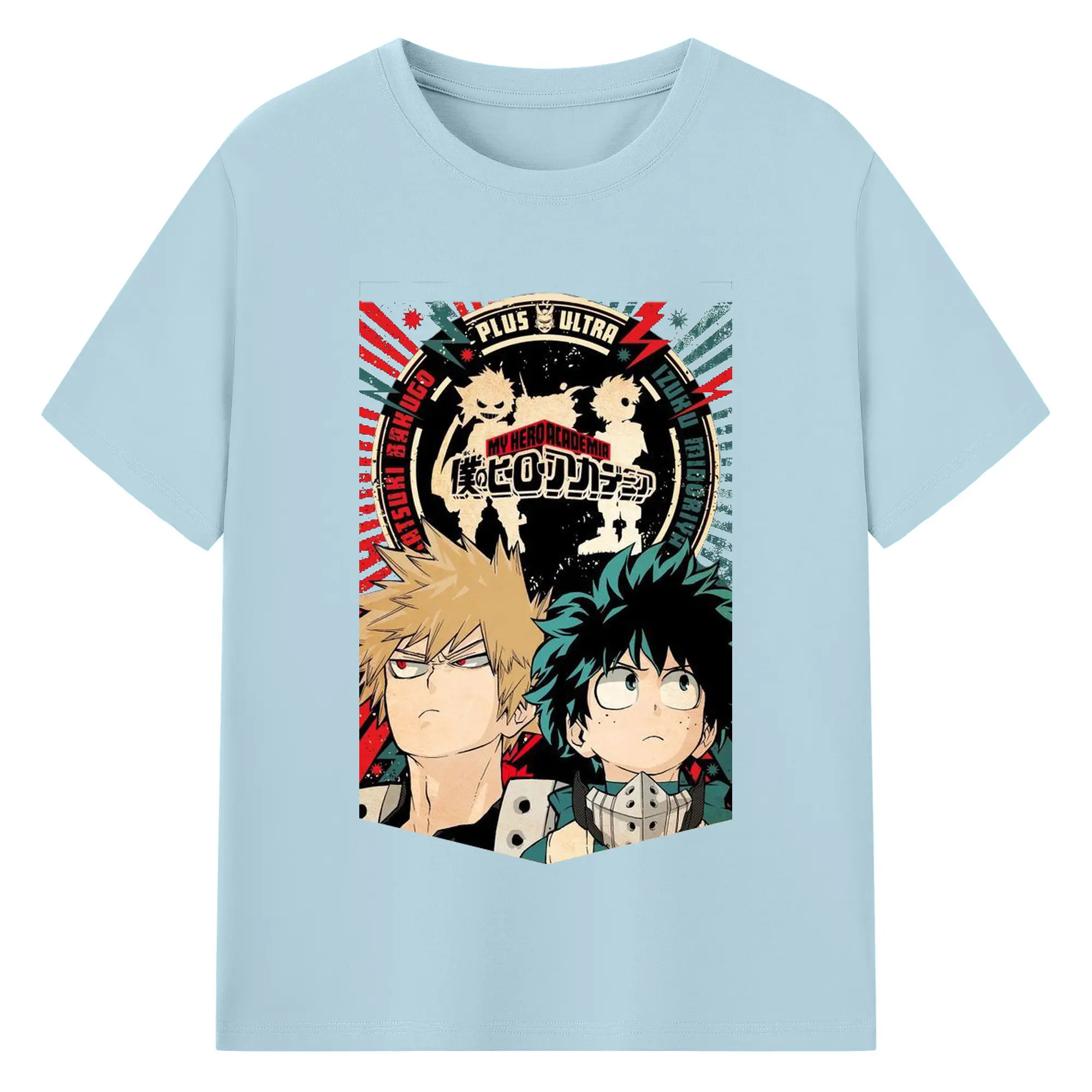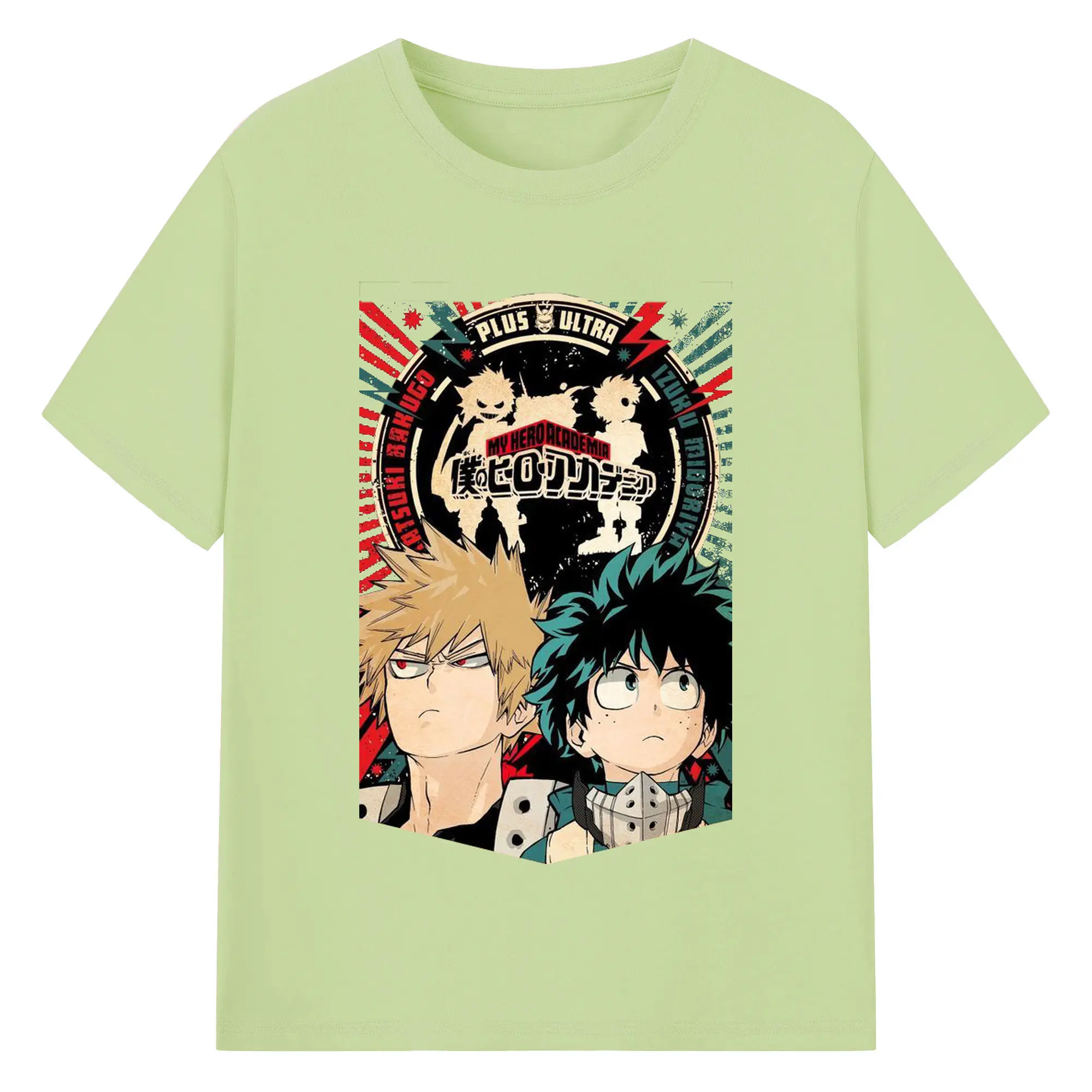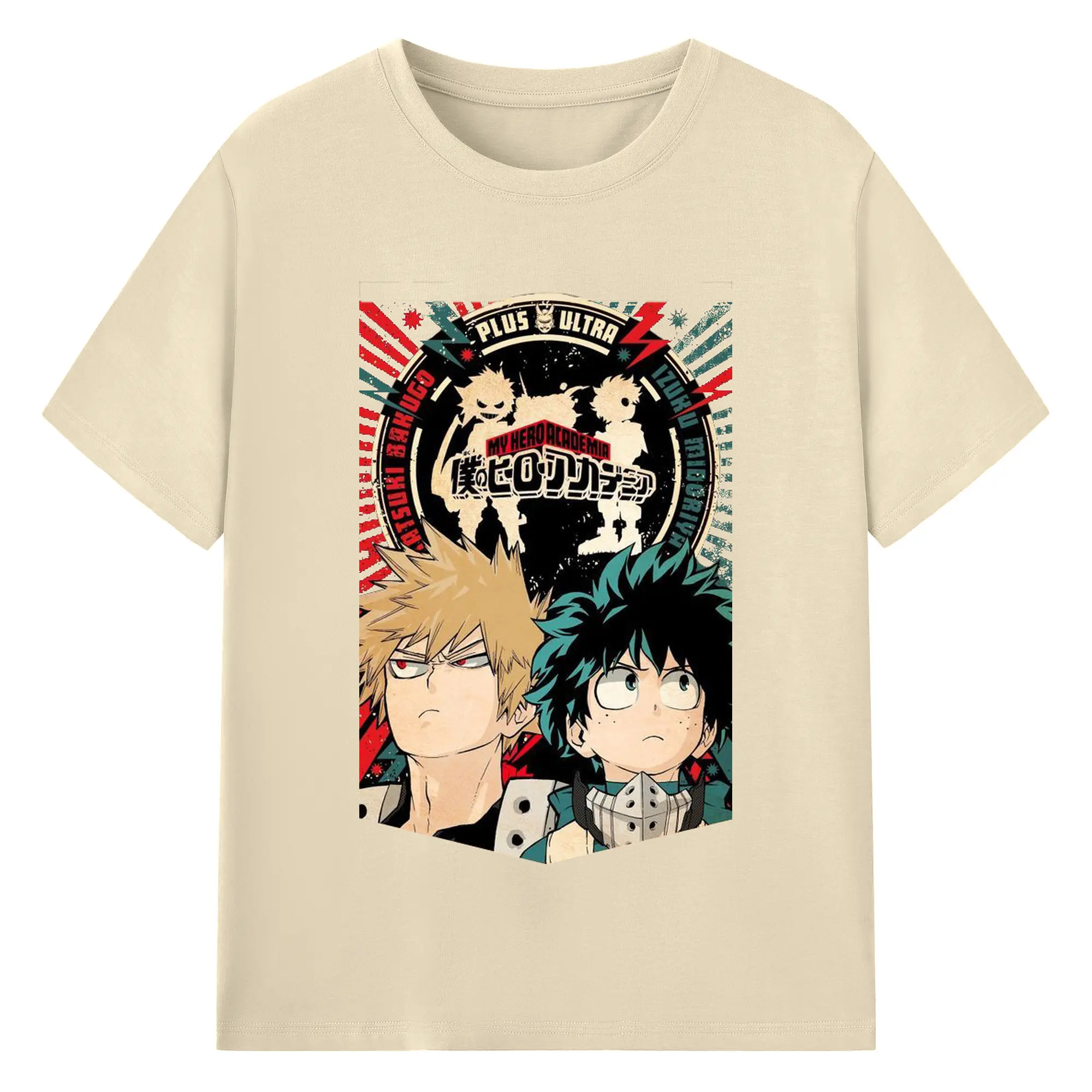 僕のヒーローアカデミア ヒロアカ デクと爆豪友情 - 綿100% ヴィンテージ風 半袖Tシャツ ・ フロントプリント ・ 柔らか肌触り ・ 通気性 快適 ・ スポーツ カジュアル 外出用