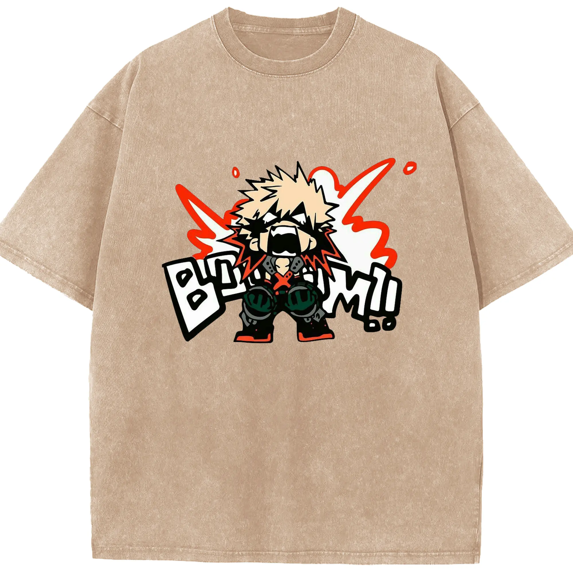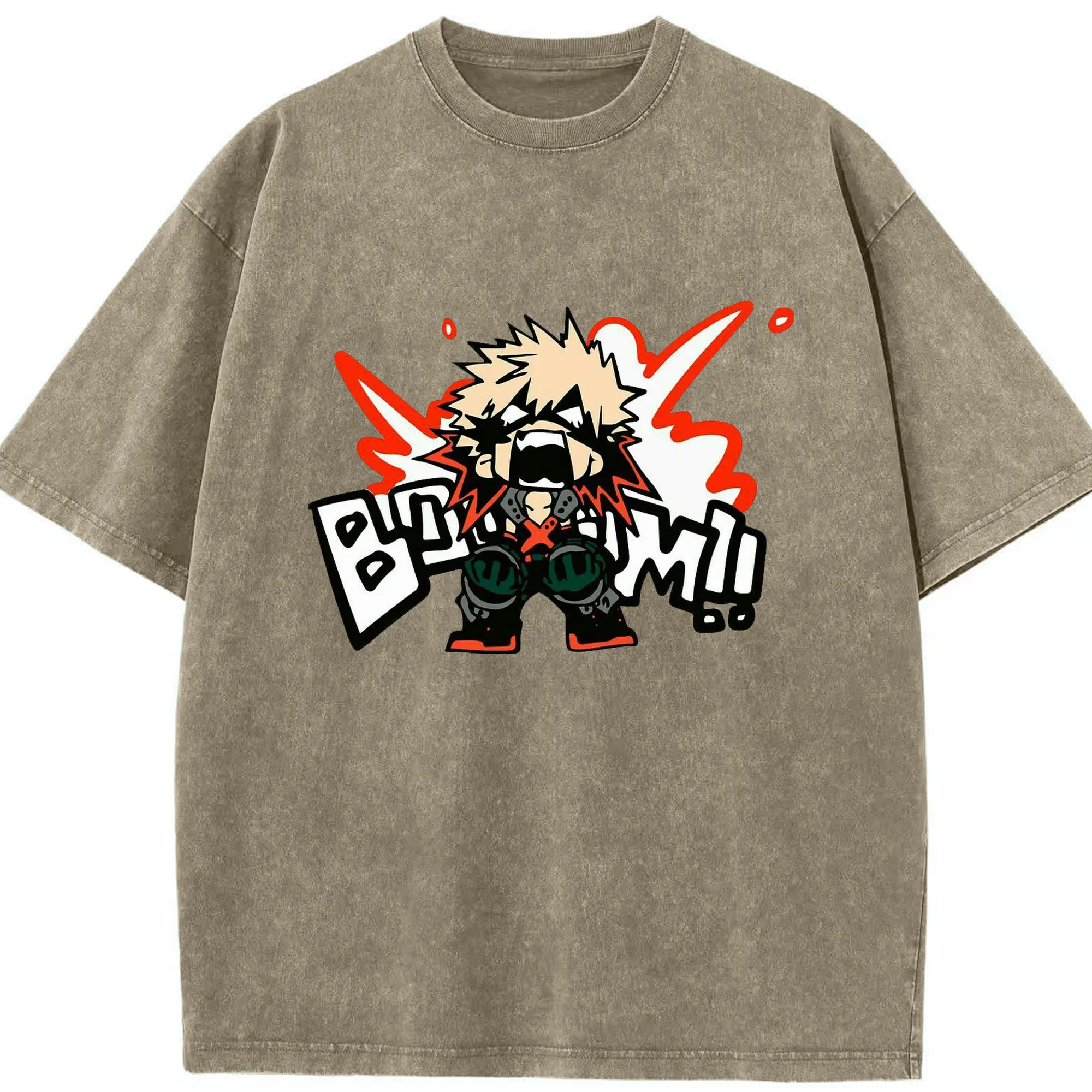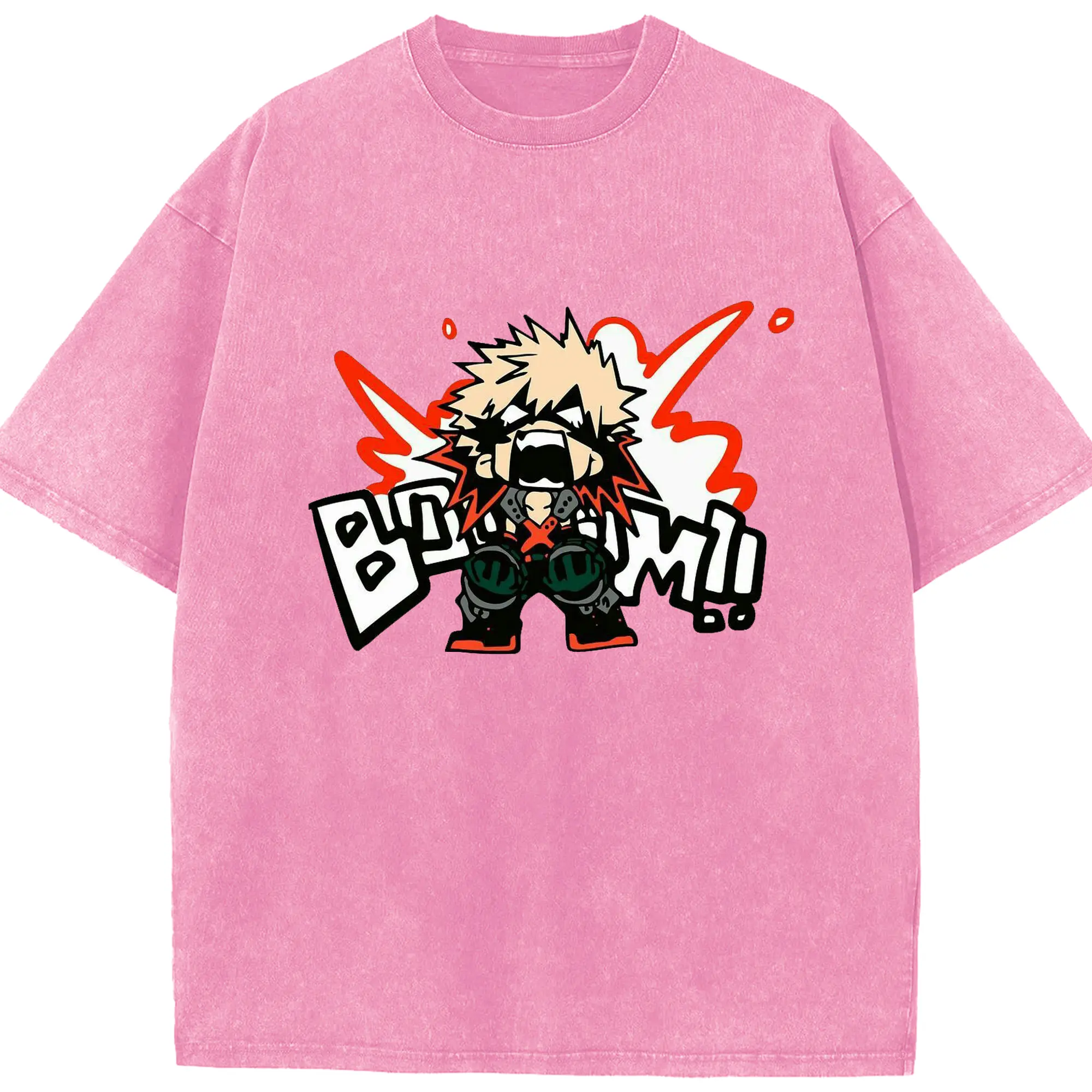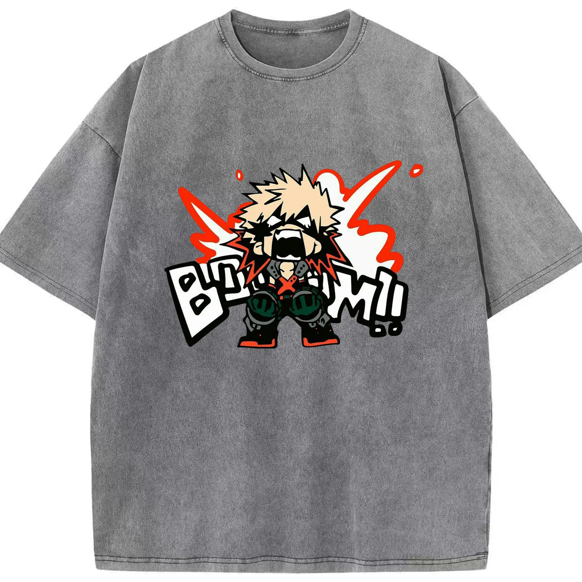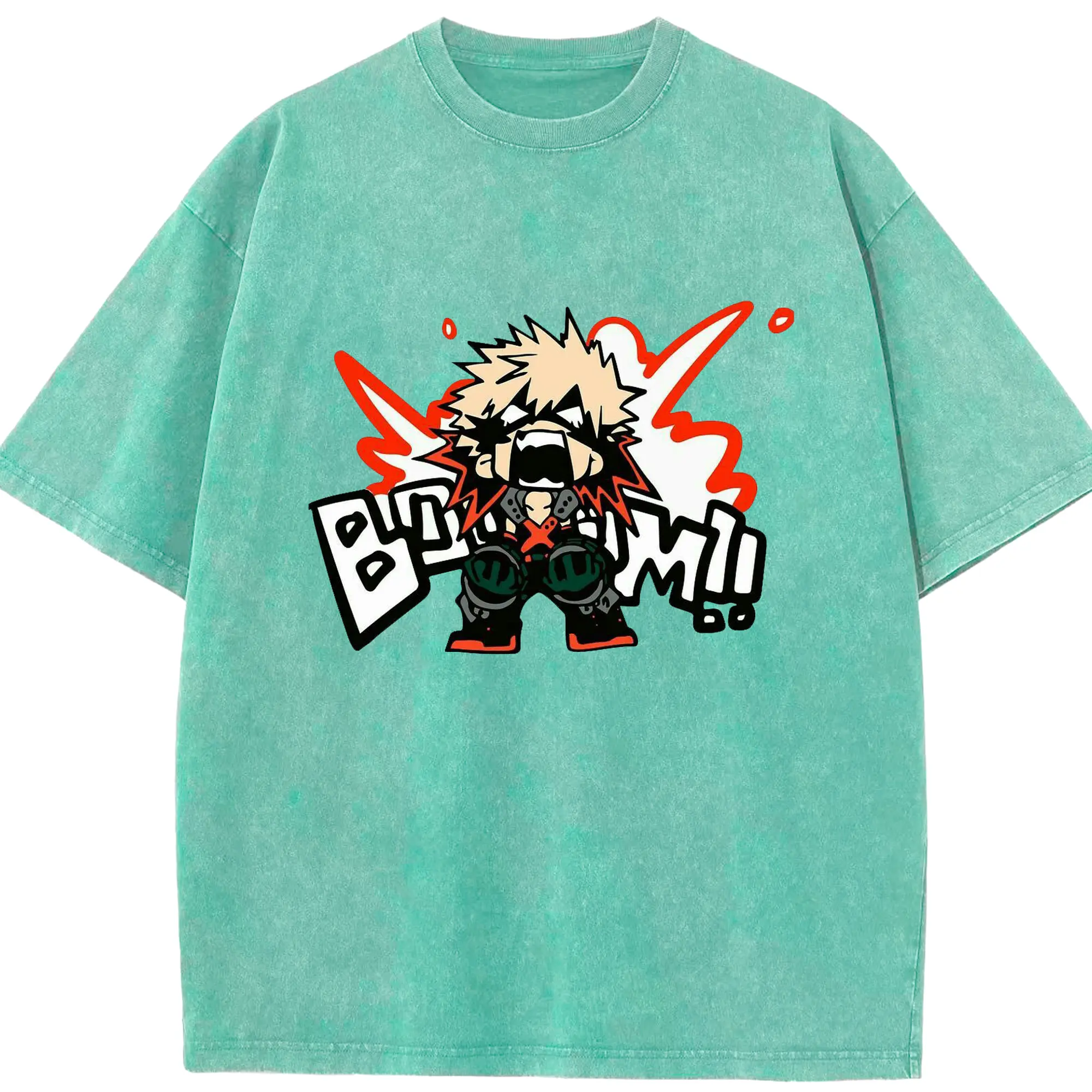 僕のヒーローアカデミア 爆豪 勝己 - 綿100% 半袖Tシャツ ・ フロントプリント ・ 快適 通気性 ・ 日常使い 散歩 スポーツ用