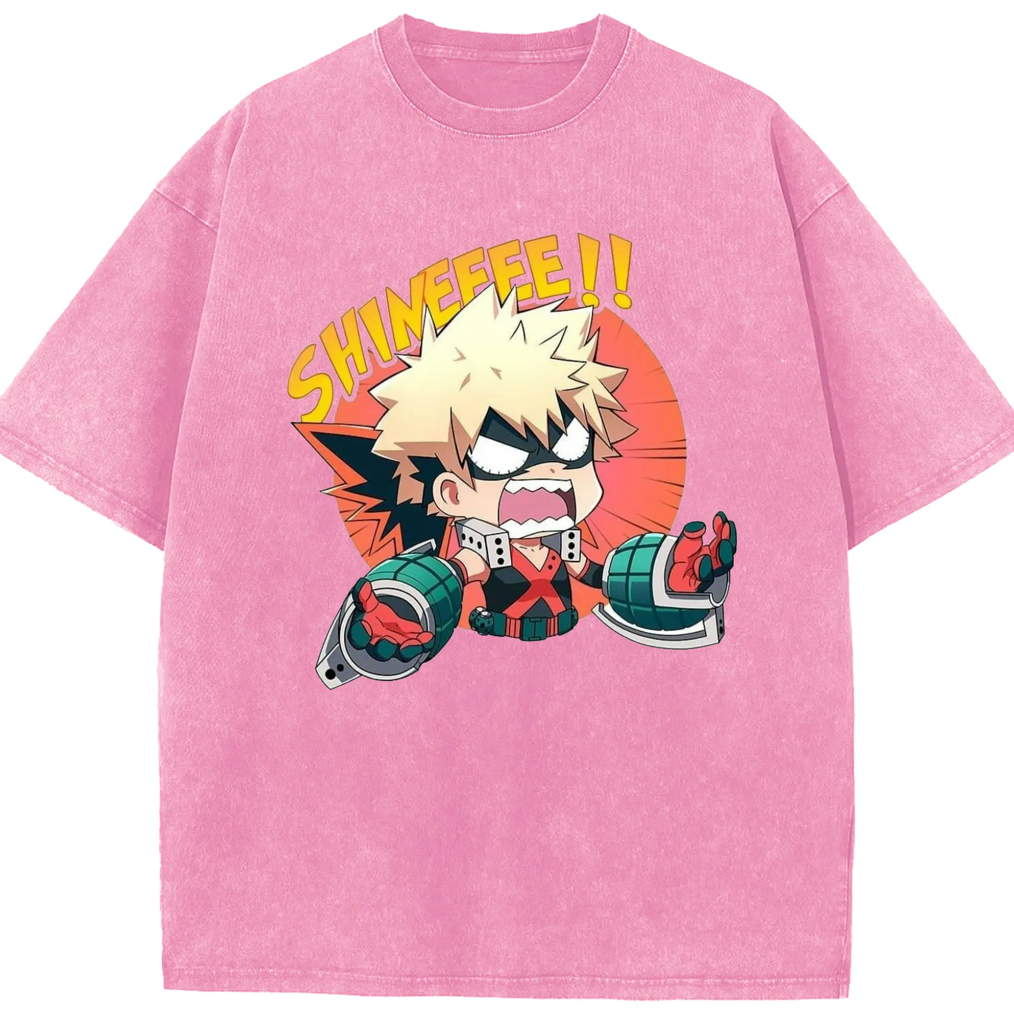僕のヒーローアカデミア 爆豪 勝己 - 綿100% 半袖Tシャツ ・ フロントプリント ・ 快適 通気性 ・ 日常使い 散歩 スポーツ用