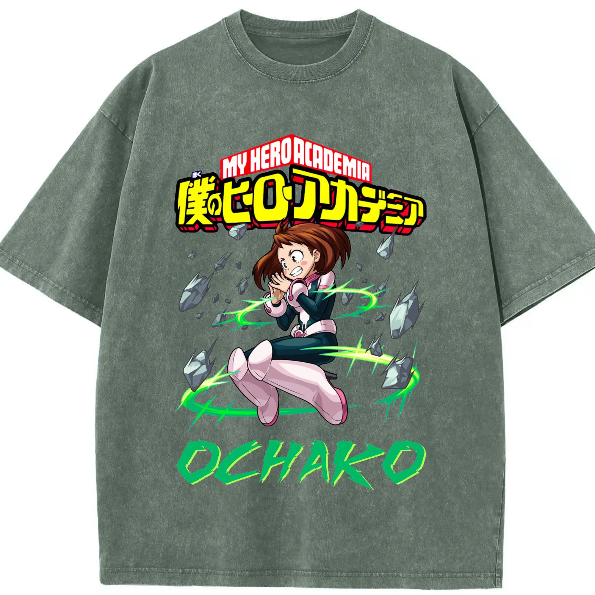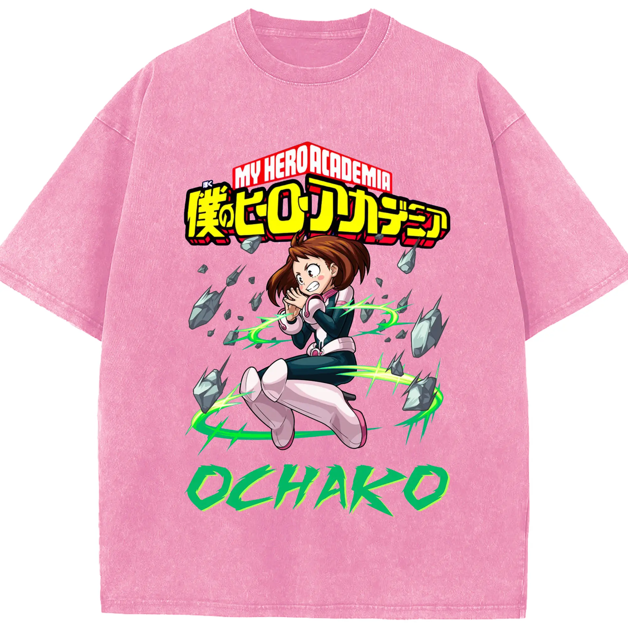 僕のヒーローアカデミア 麗日 お茶子 - 綿100% 半袖Tシャツ ・ フロントプリント ・ 快適 通気性 ・ 日常使い 散歩 スポーツ用