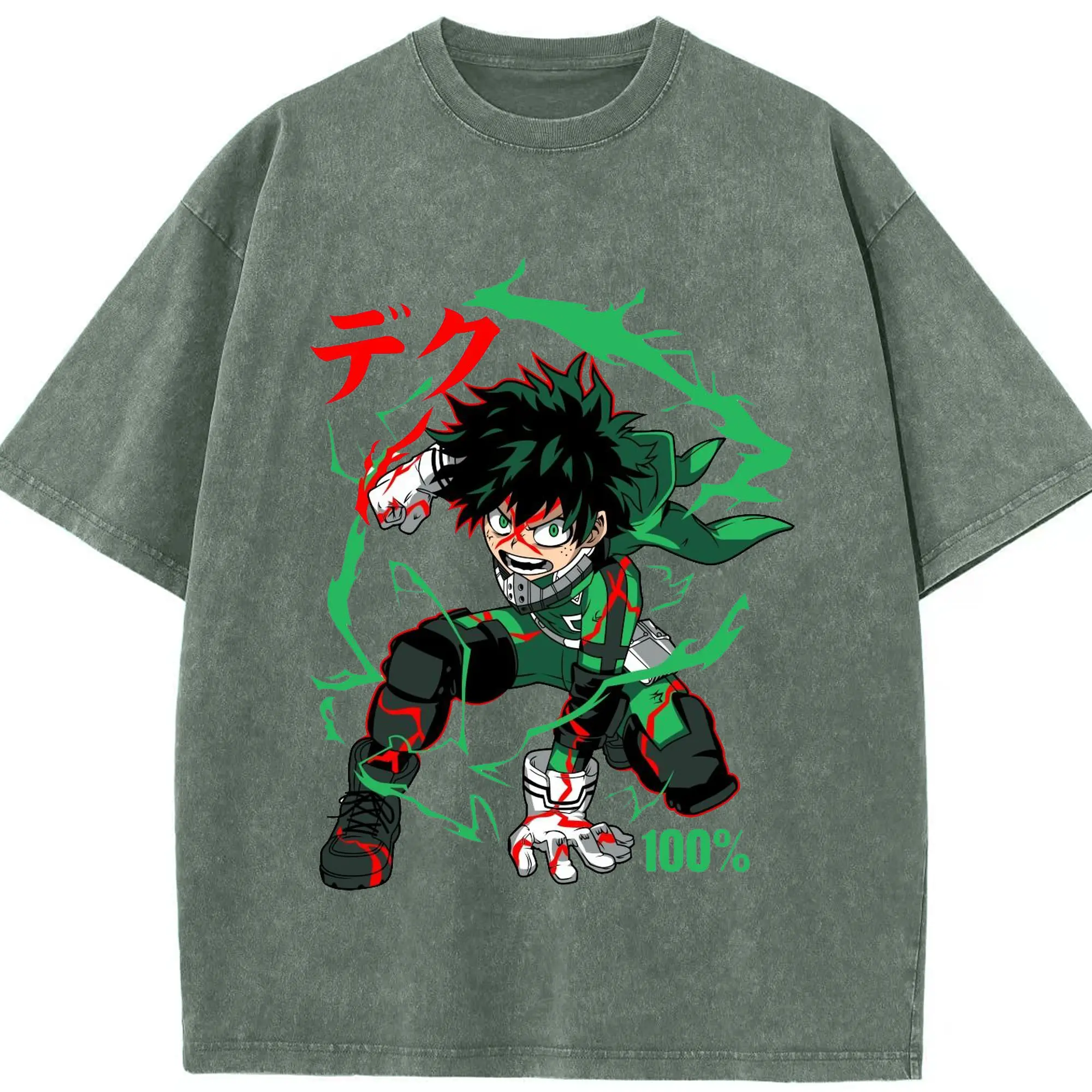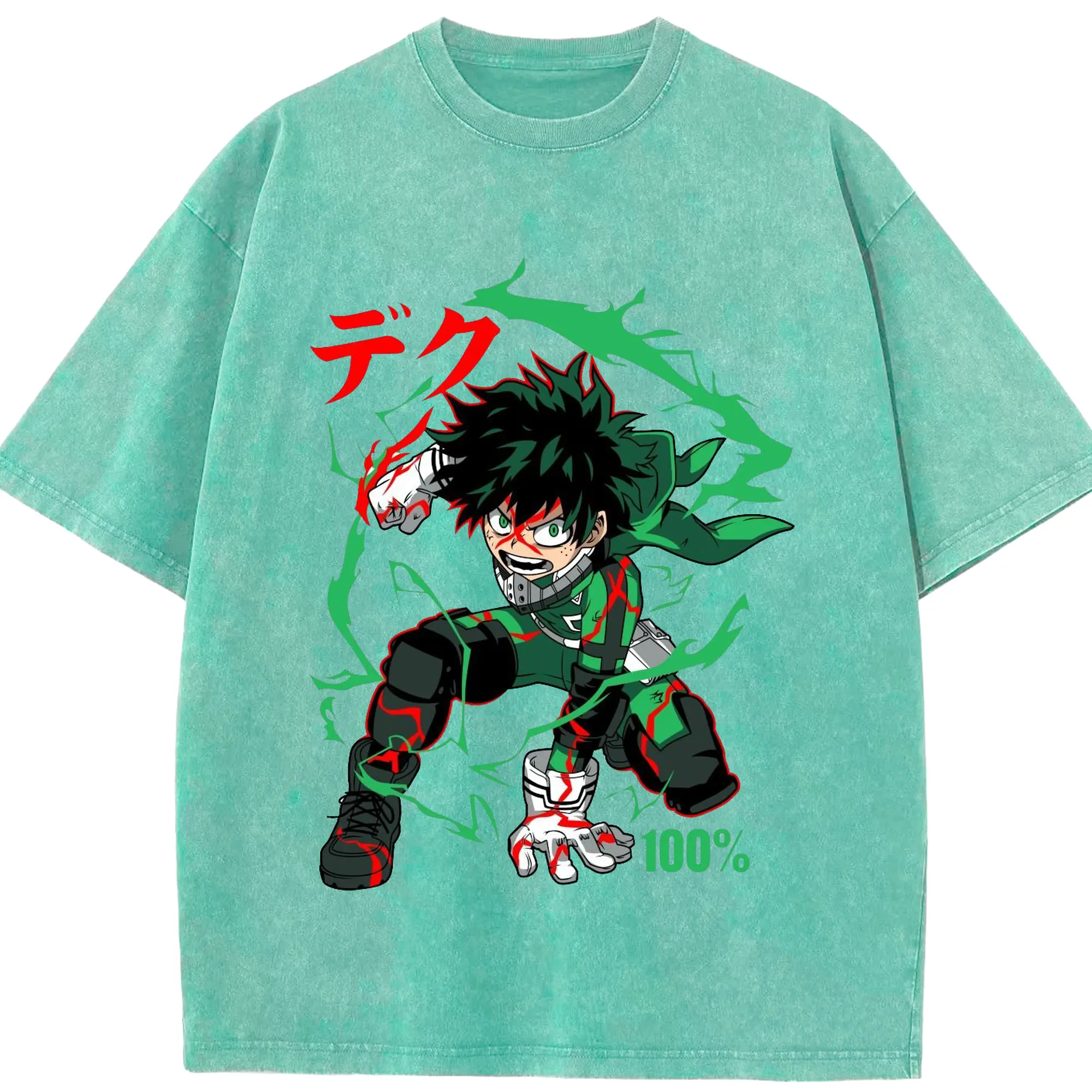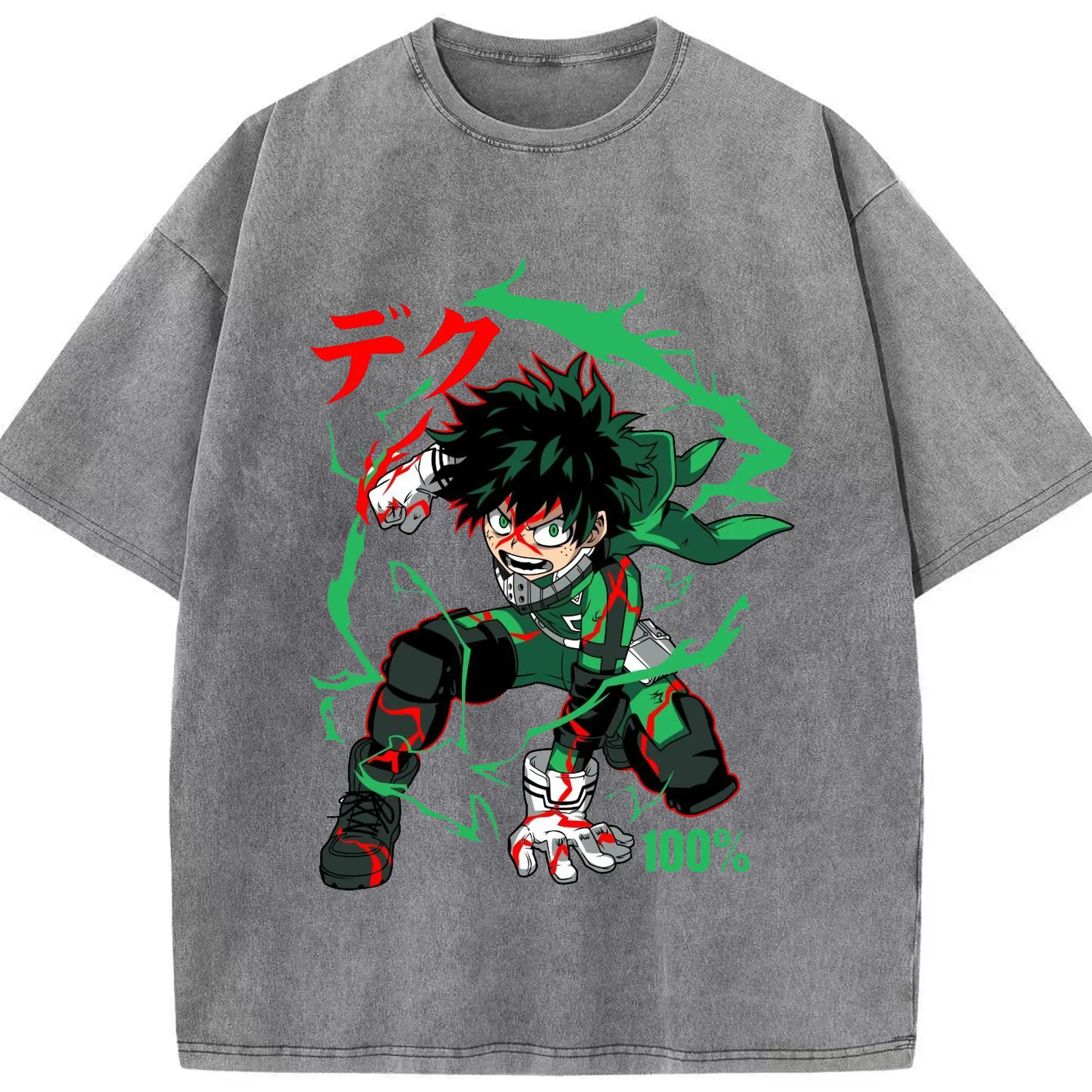 僕のヒーローアカデミア 緑谷 出久 激闘シーン - 綿100% 半袖Tシャツ ・ フロントプリント ・ 快適 通気性 ・ 日常使い 散歩 スポーツ用
