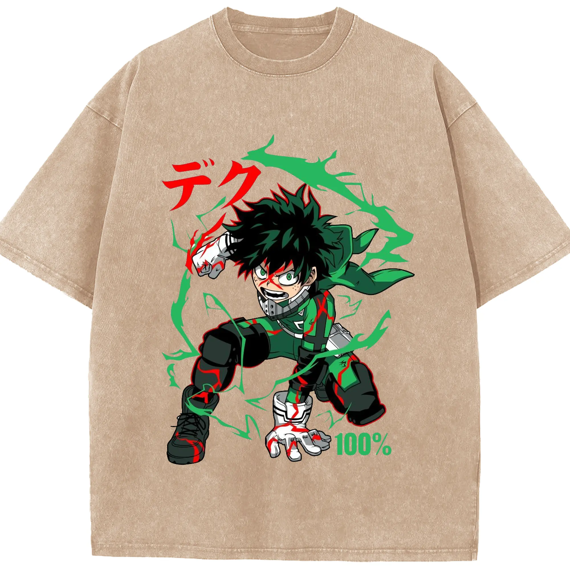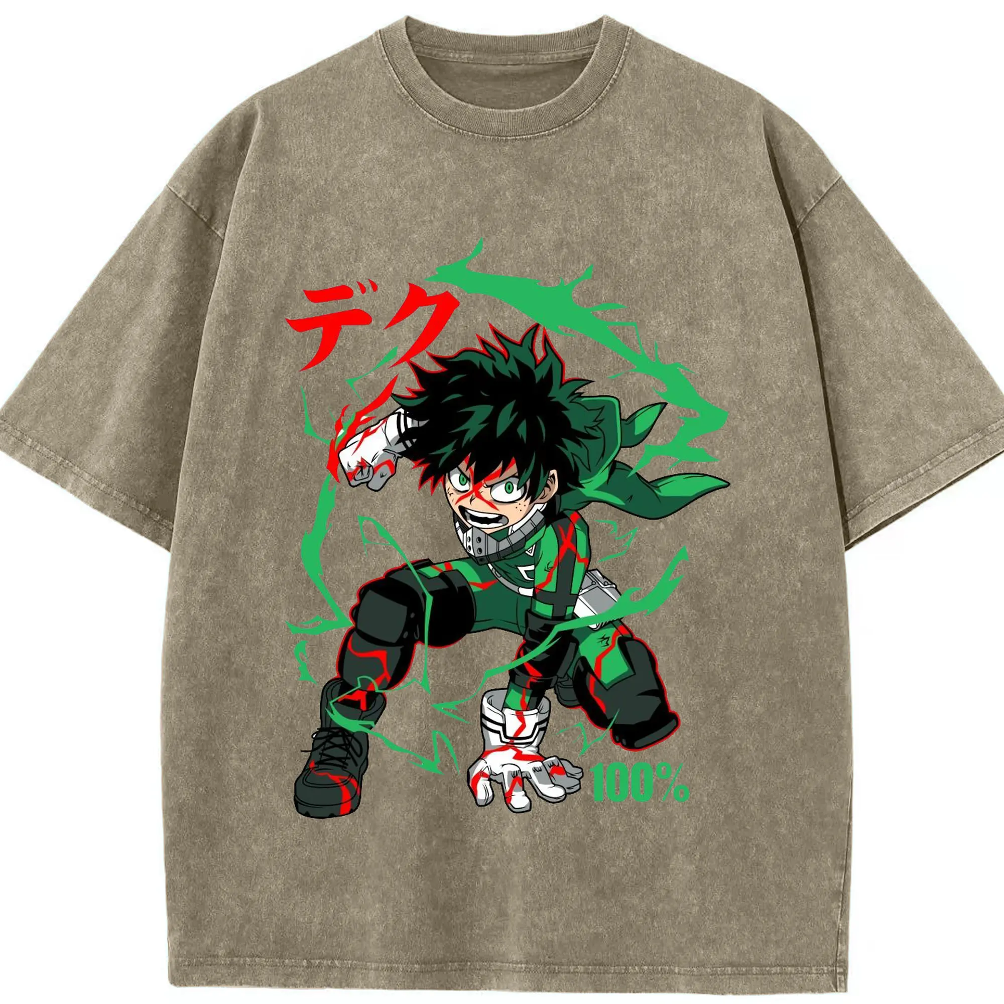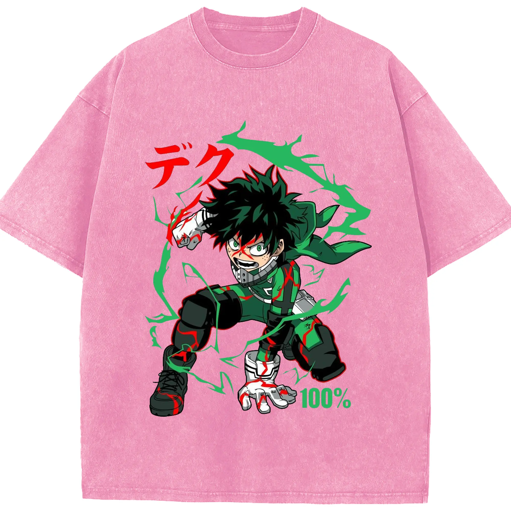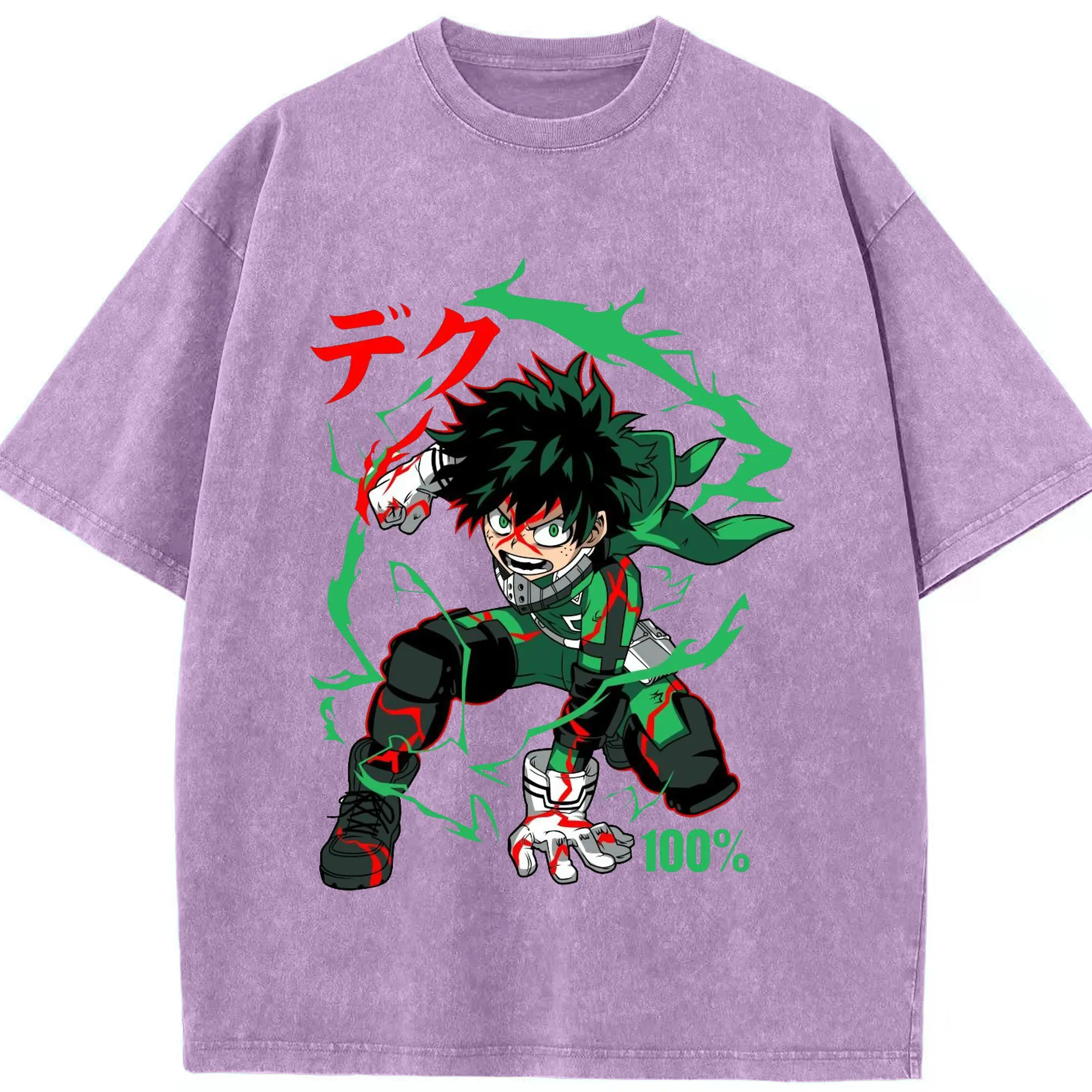 僕のヒーローアカデミア 緑谷 出久 激闘シーン - 綿100% 半袖Tシャツ ・ フロントプリント ・ 快適 通気性 ・ 日常使い 散歩 スポーツ用