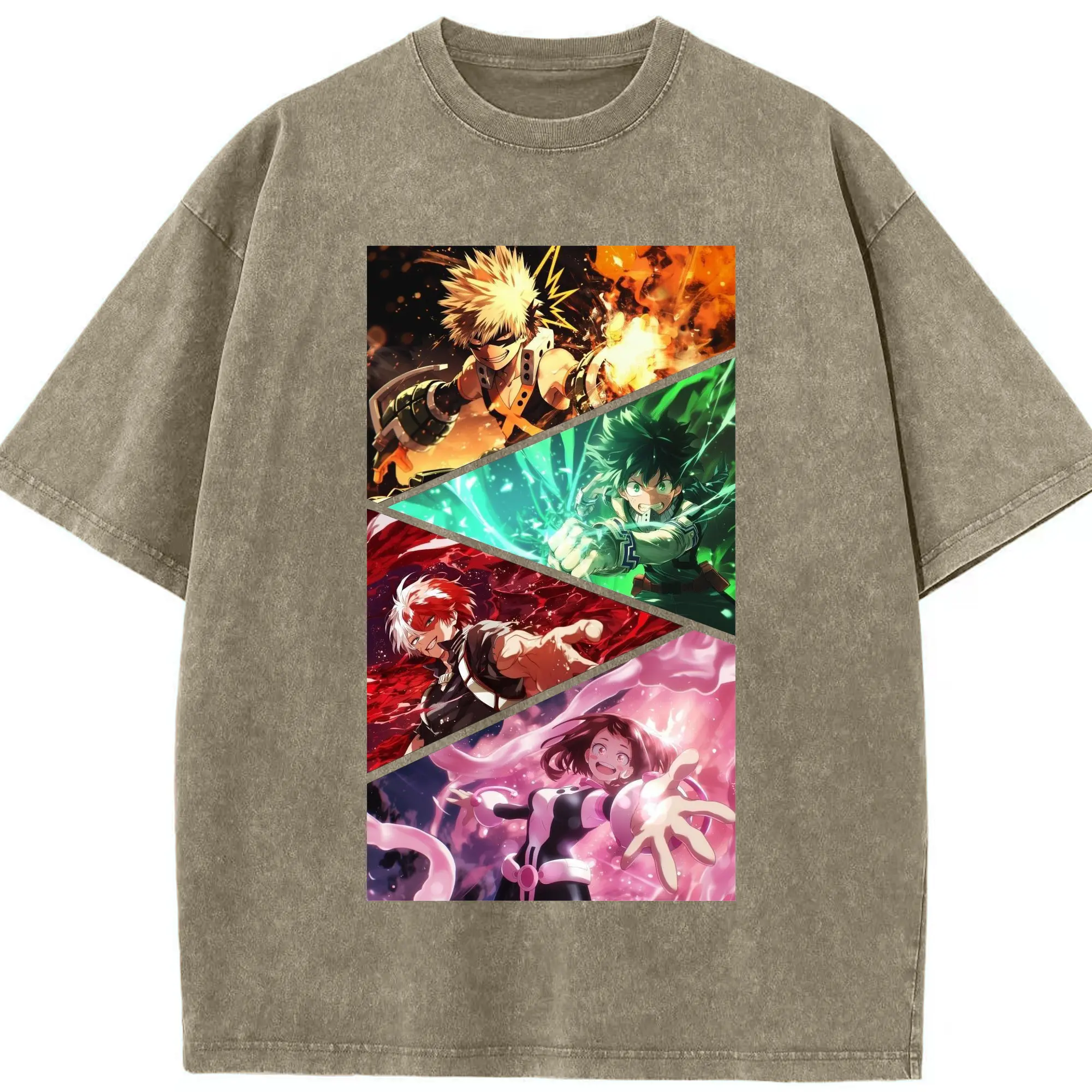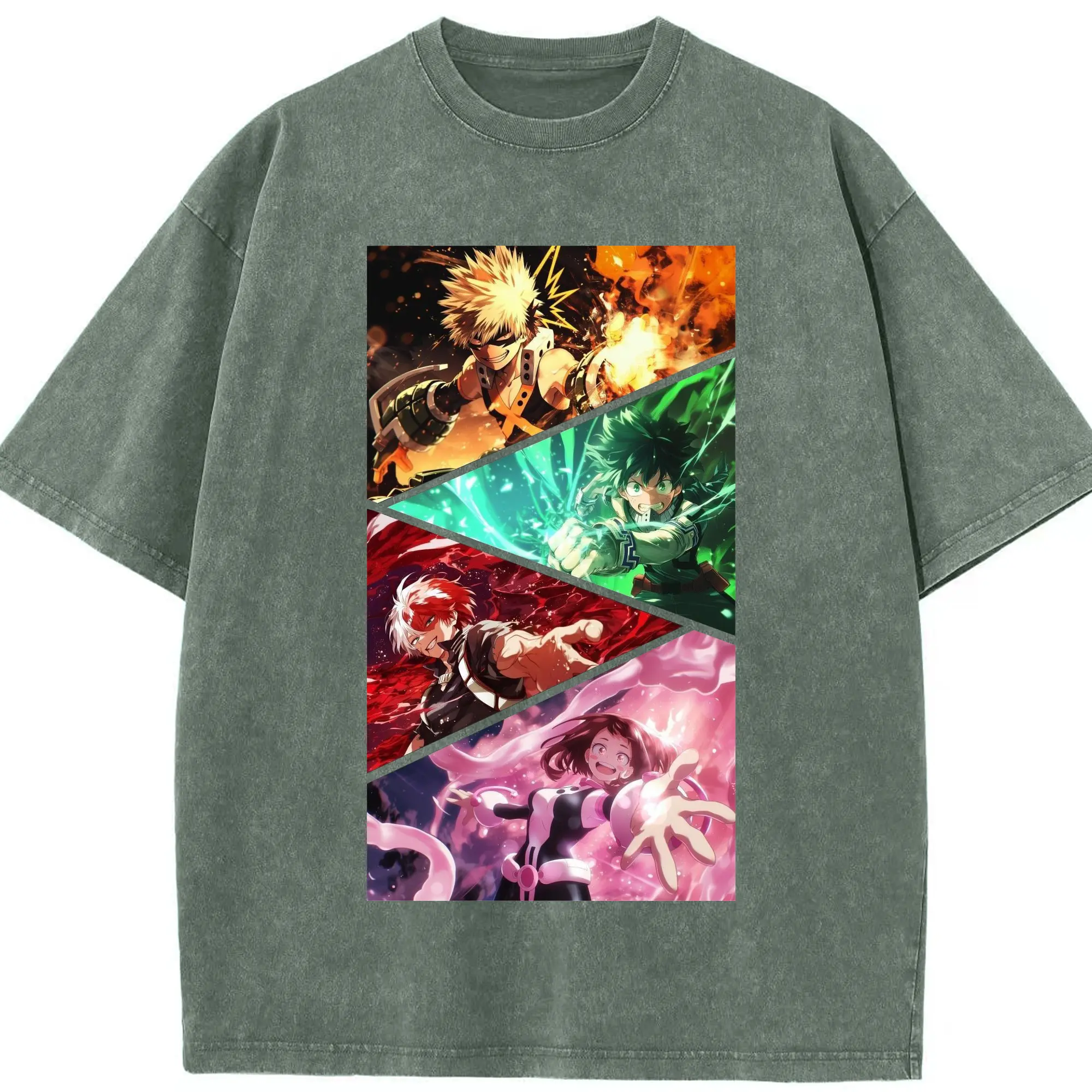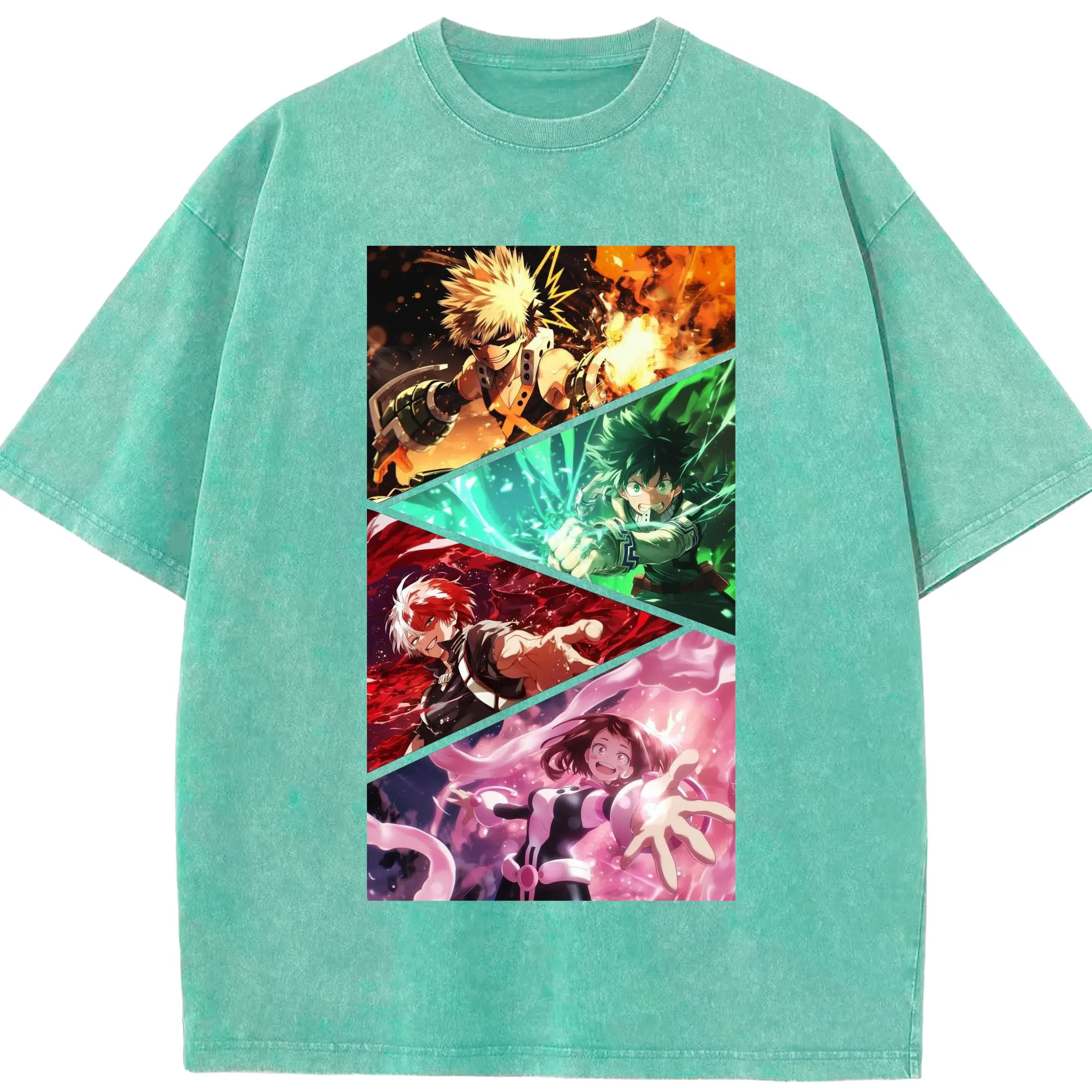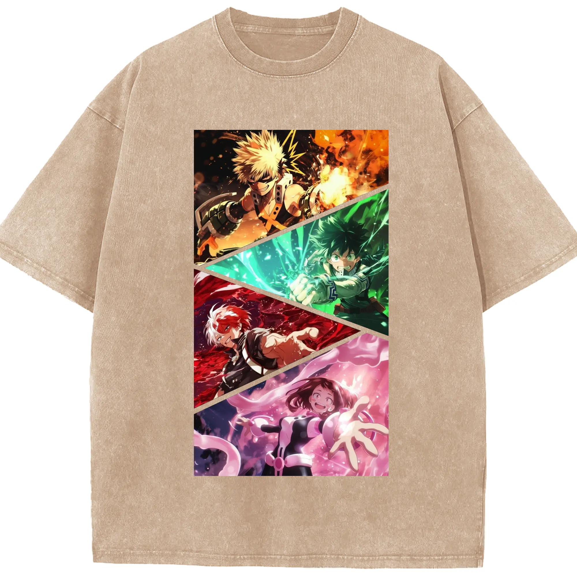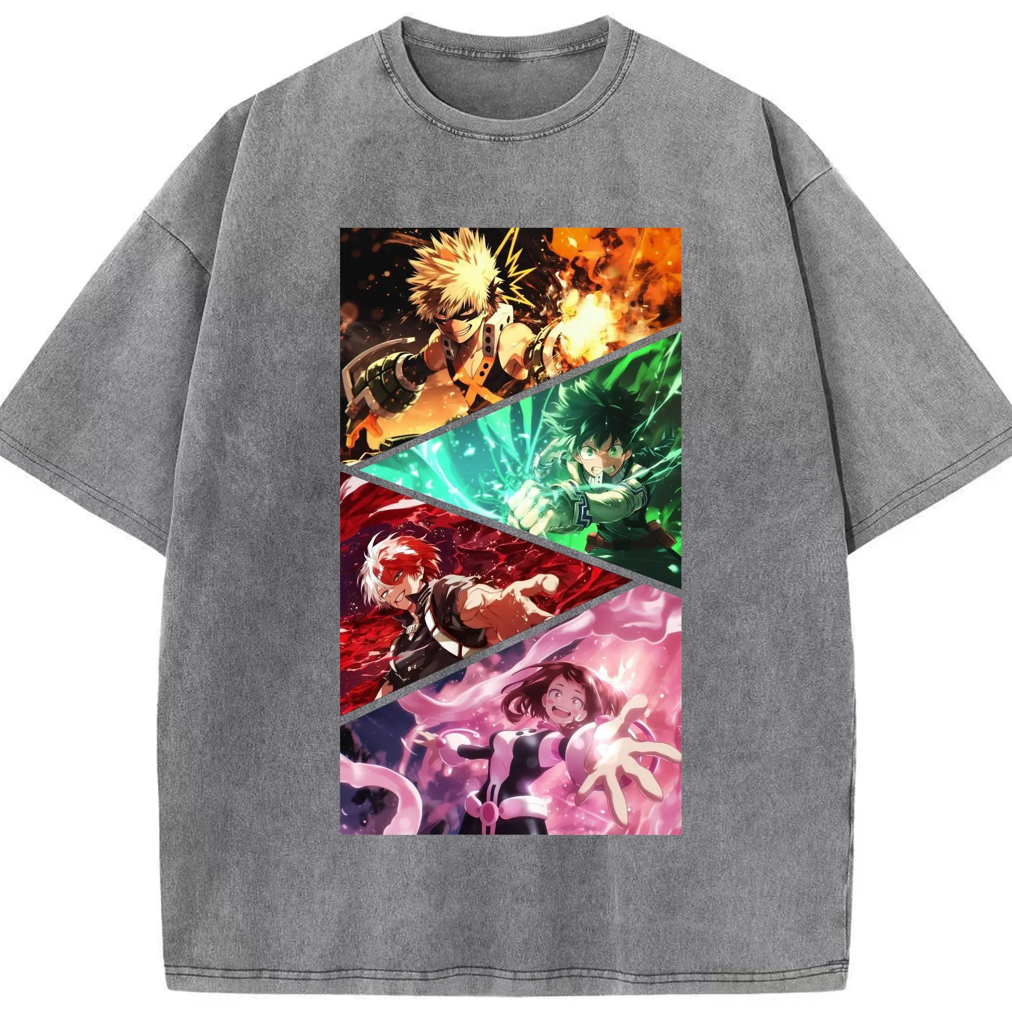 僕のヒーローアカデミア - 綿100% ヴィンテージ風 半袖Tシャツ ・ フロントプリント ・ 柔らか肌触り ・ 通気性 快適 ・ スポーツ カジュアル 外出用