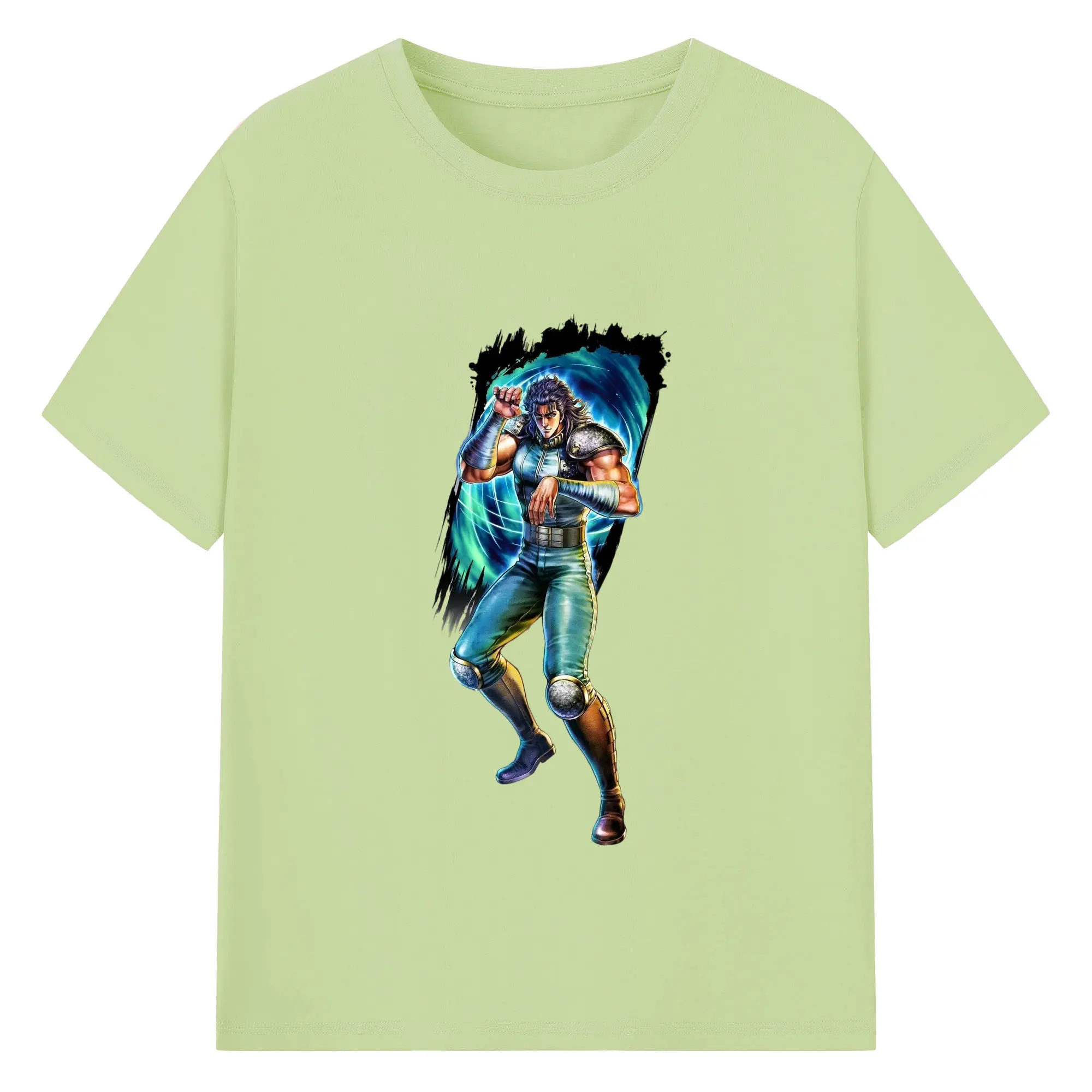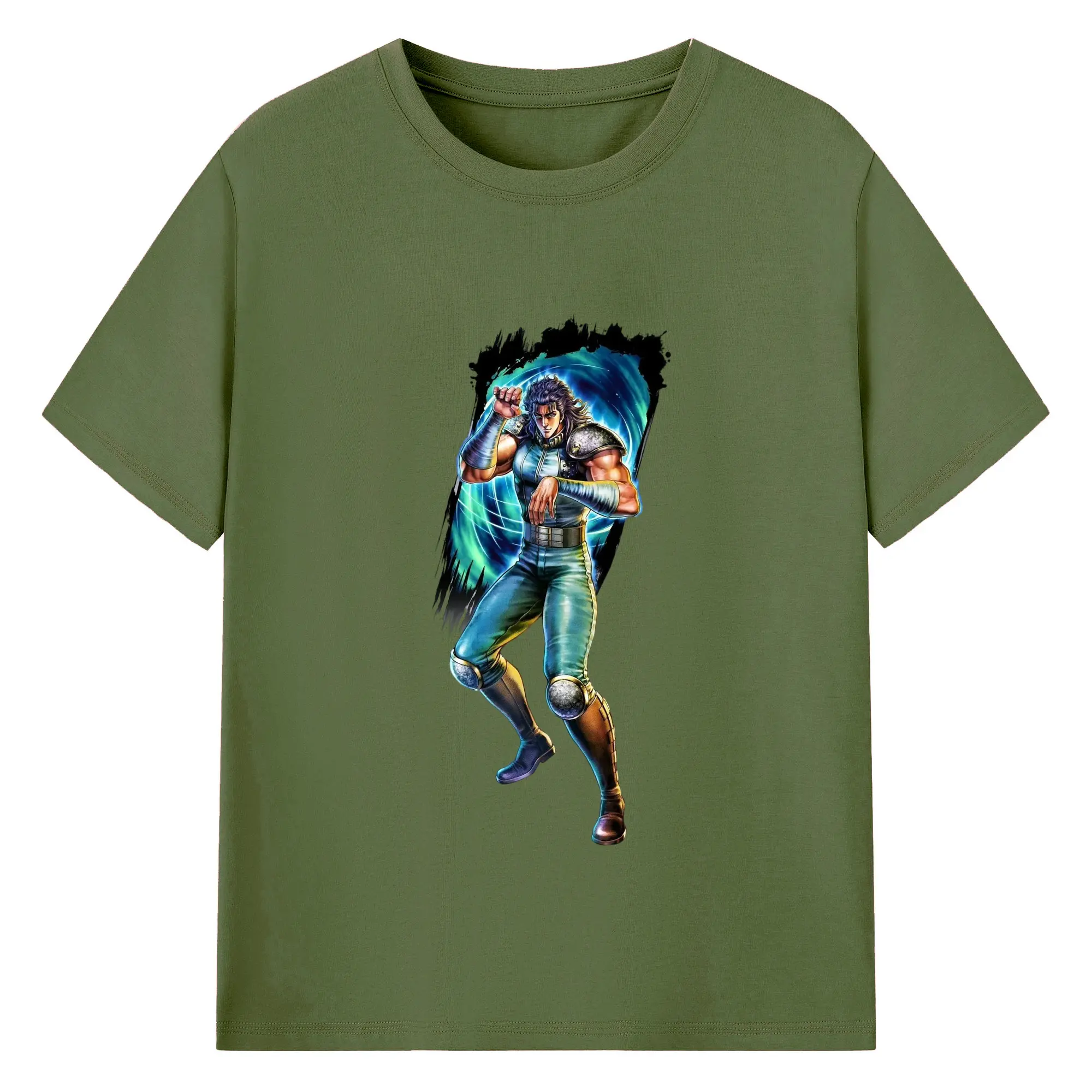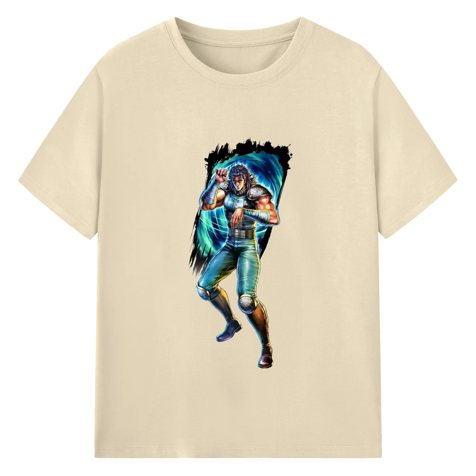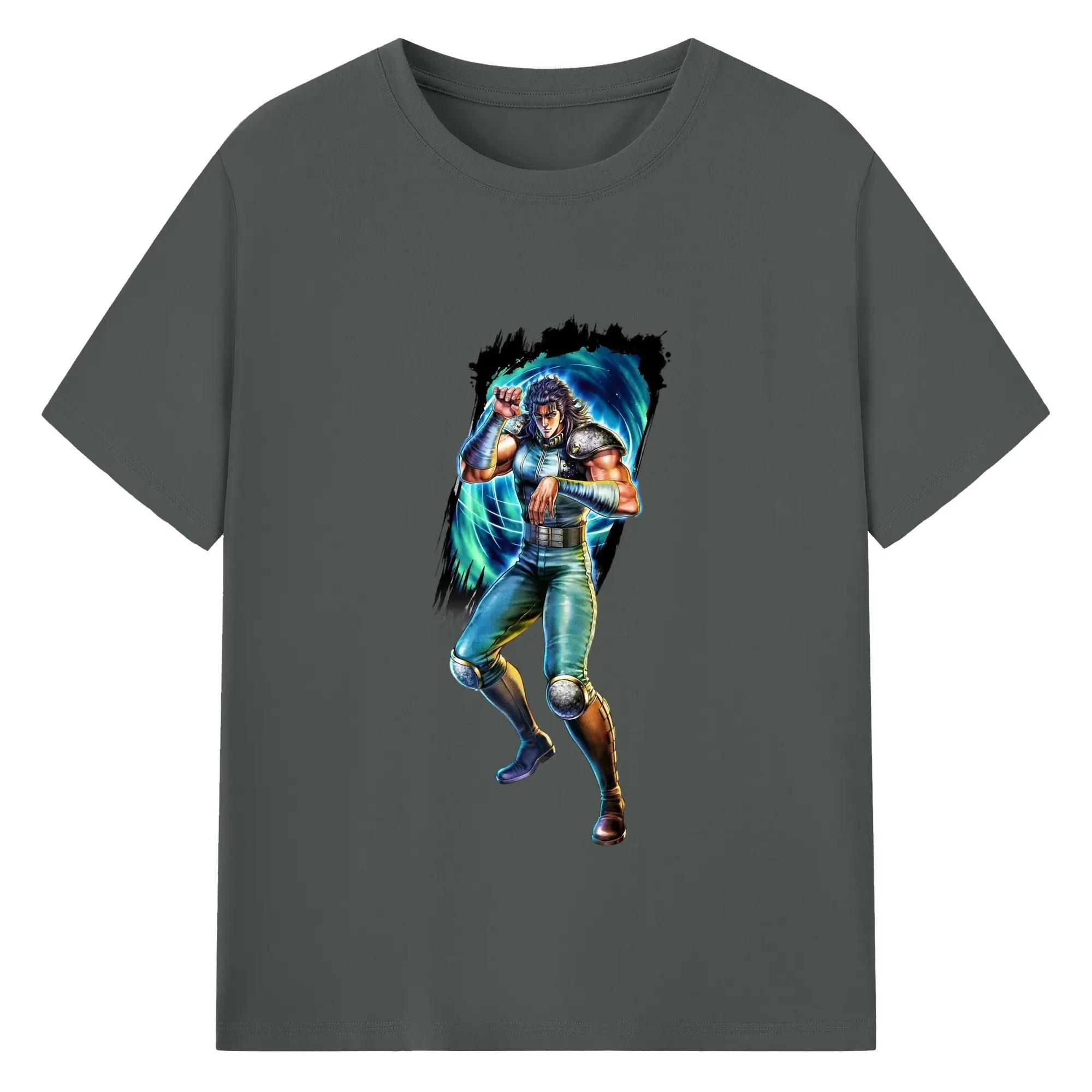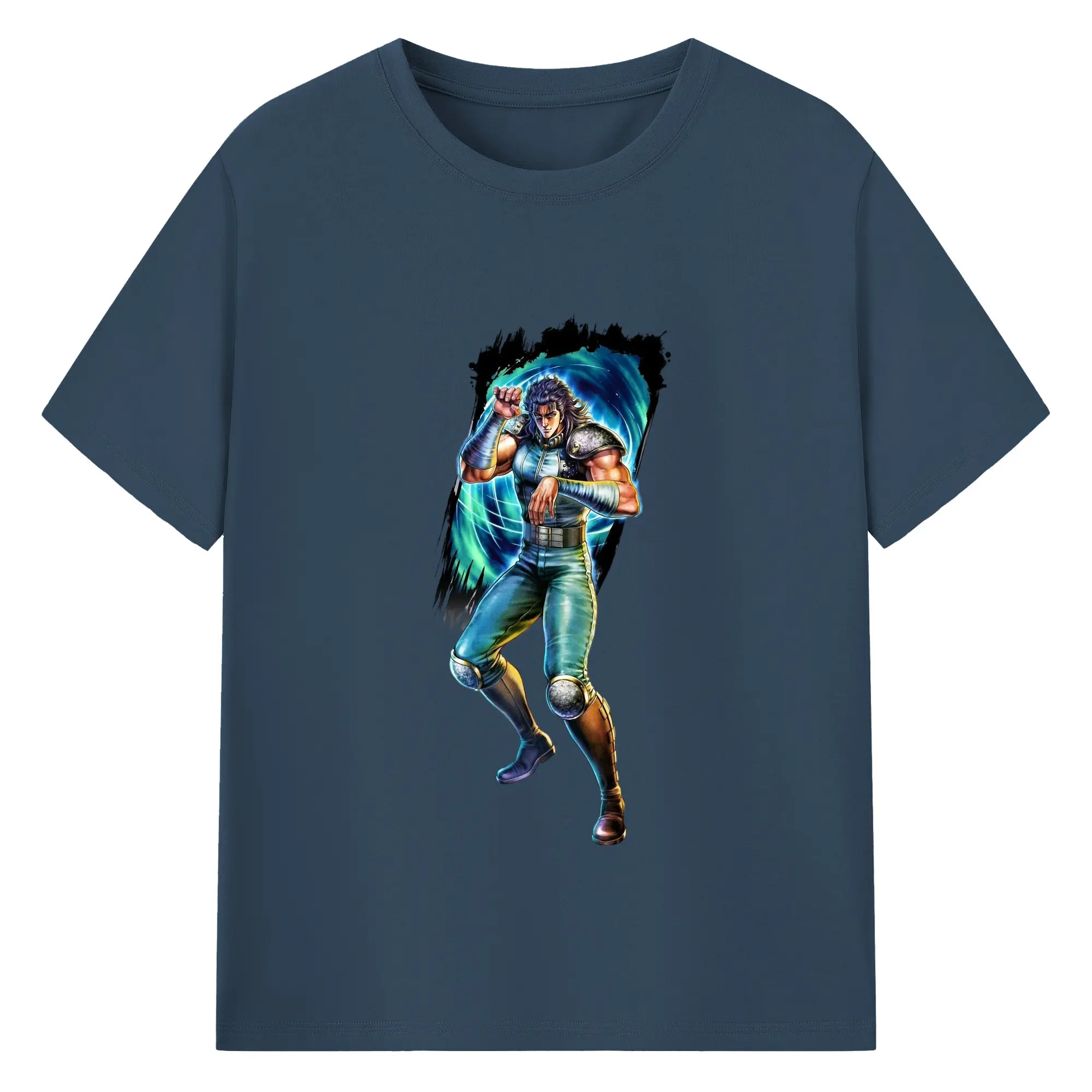 北斗の拳 レイ 南斗水鳥拳の力を見せてやる! - 綿100% ヴィンテージ風 半袖Tシャツ ・ フロントプリント ・ 柔らか肌触り ・ 通気性 快適 ・ スポーツ カジュアル 外出用