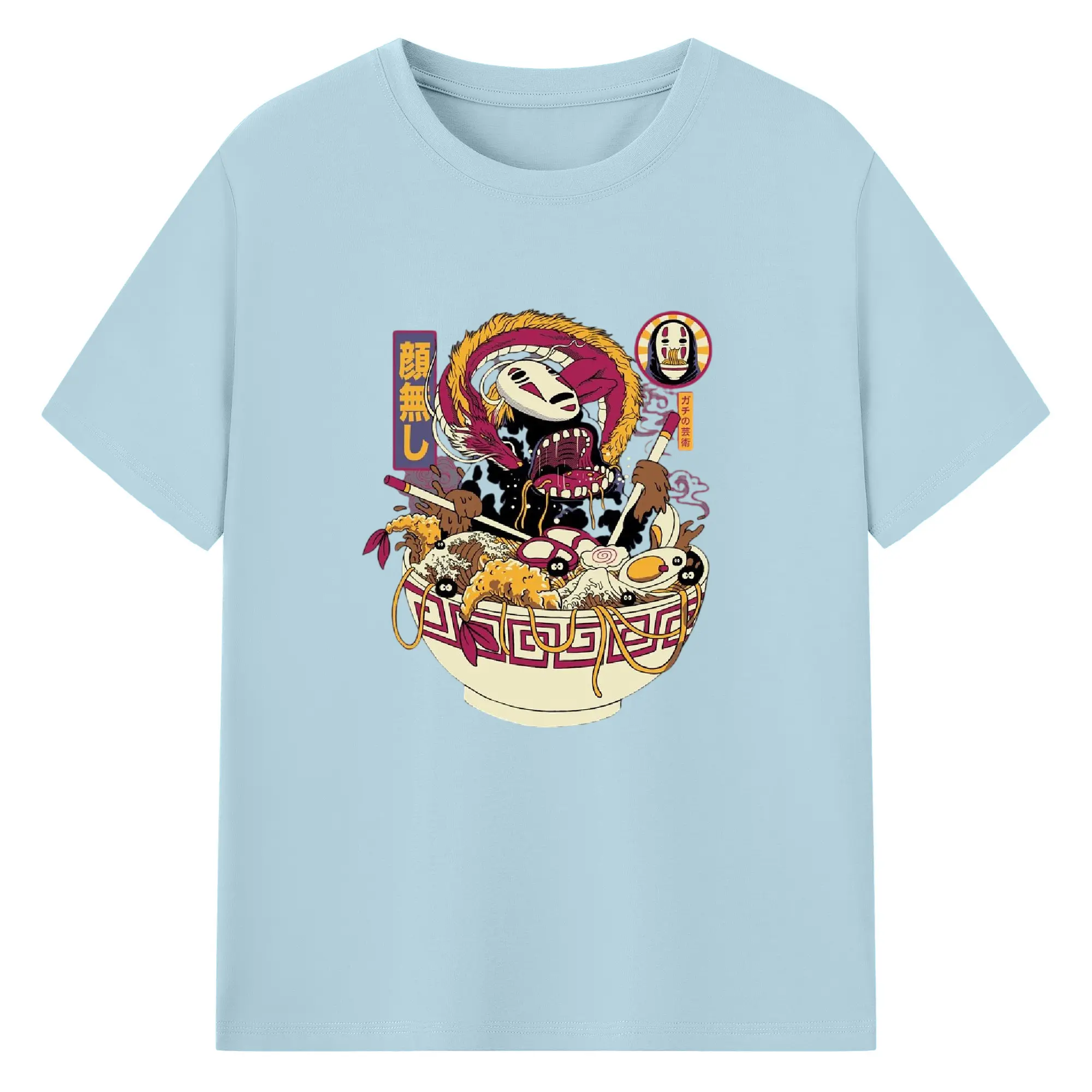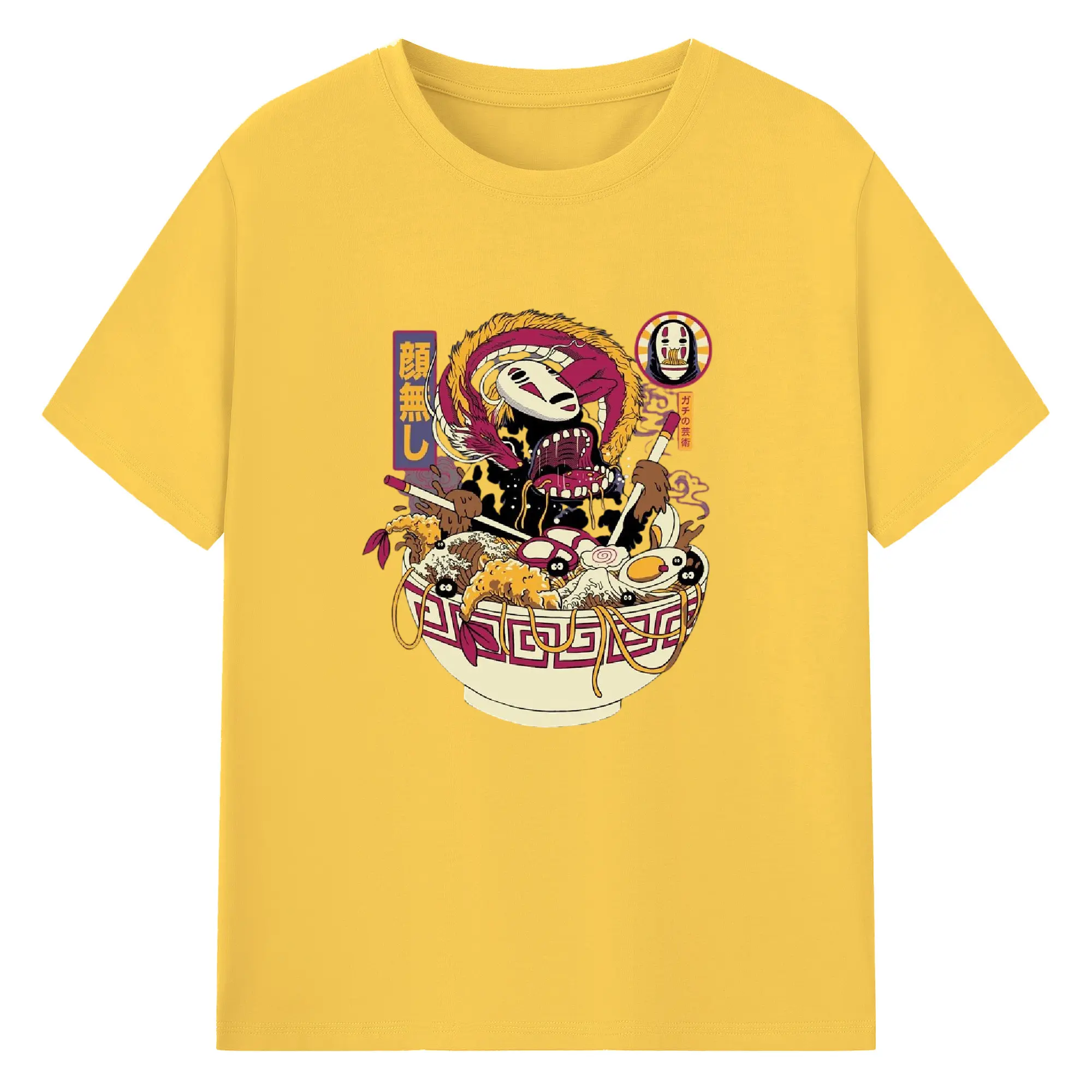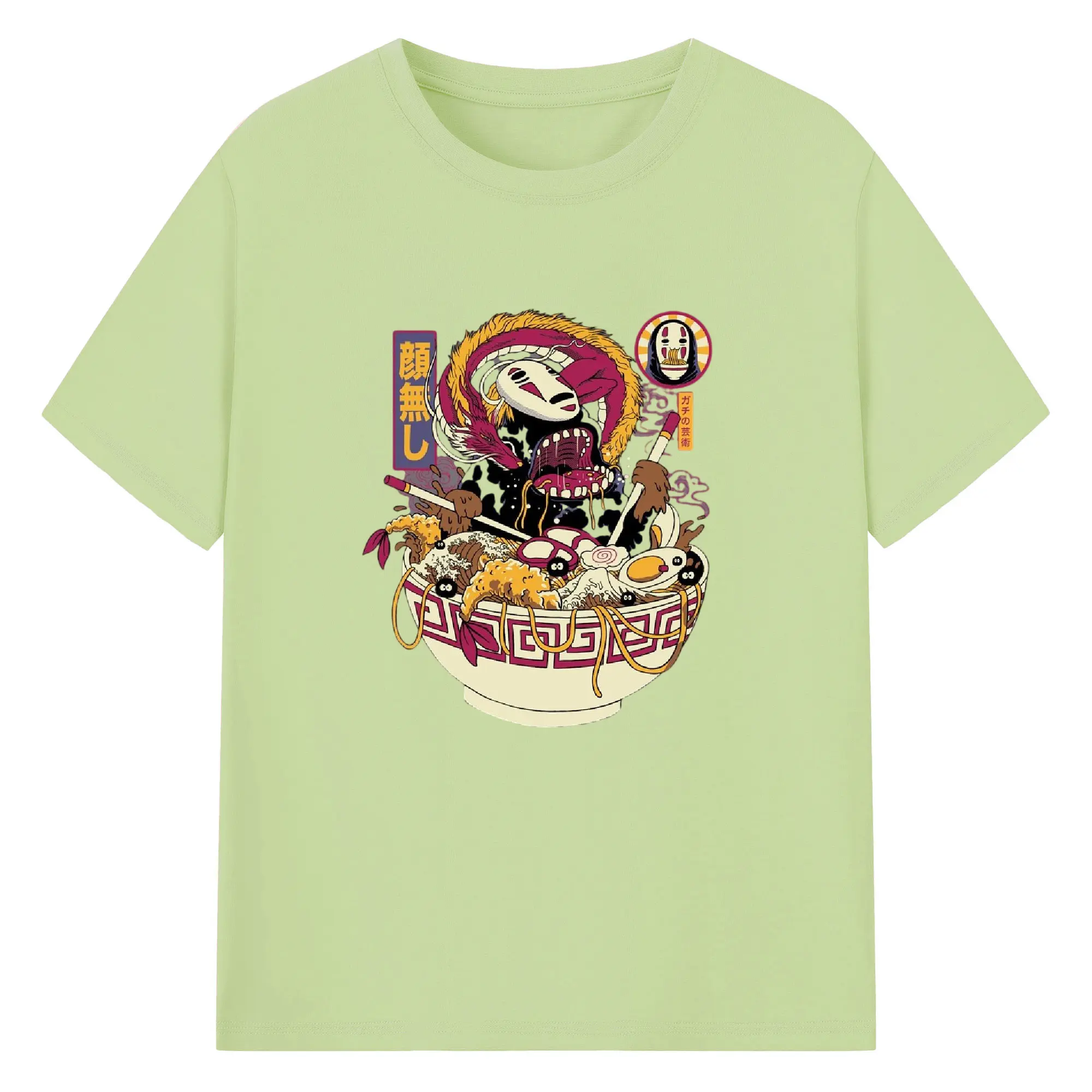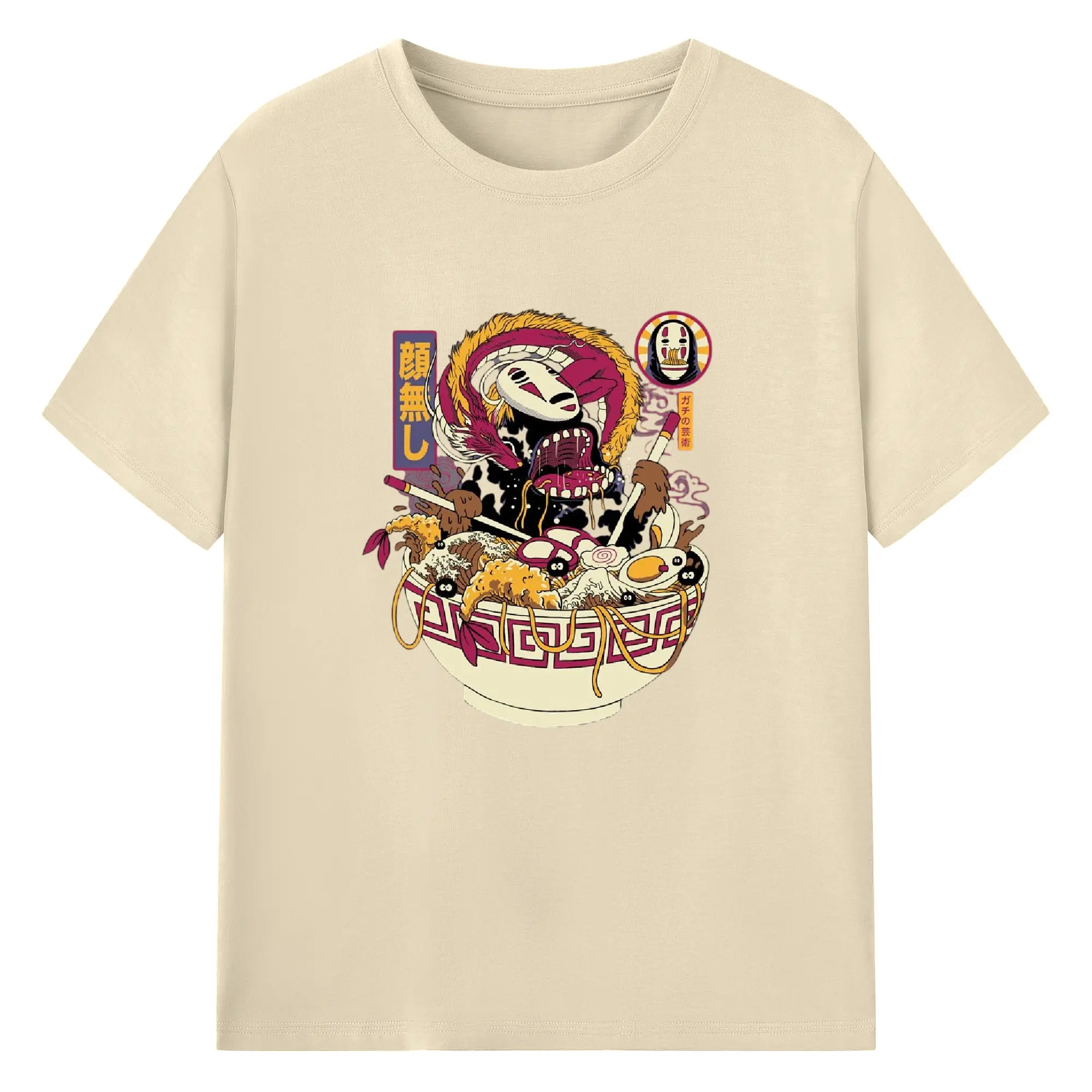 千と千尋の神隠し ラーメン特別限定 - 綿100% ヴィンテージ風 半袖Tシャツ ・ フロントプリント ・ 柔らか肌触り ・ 通気性 快適 ・ スポーツ カジュアル 外出用