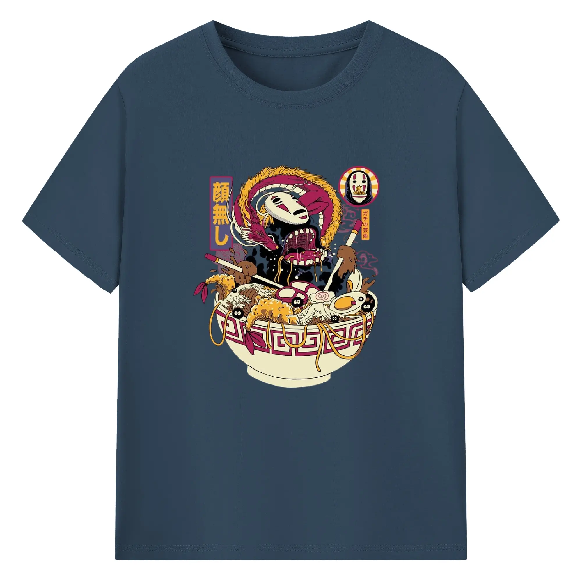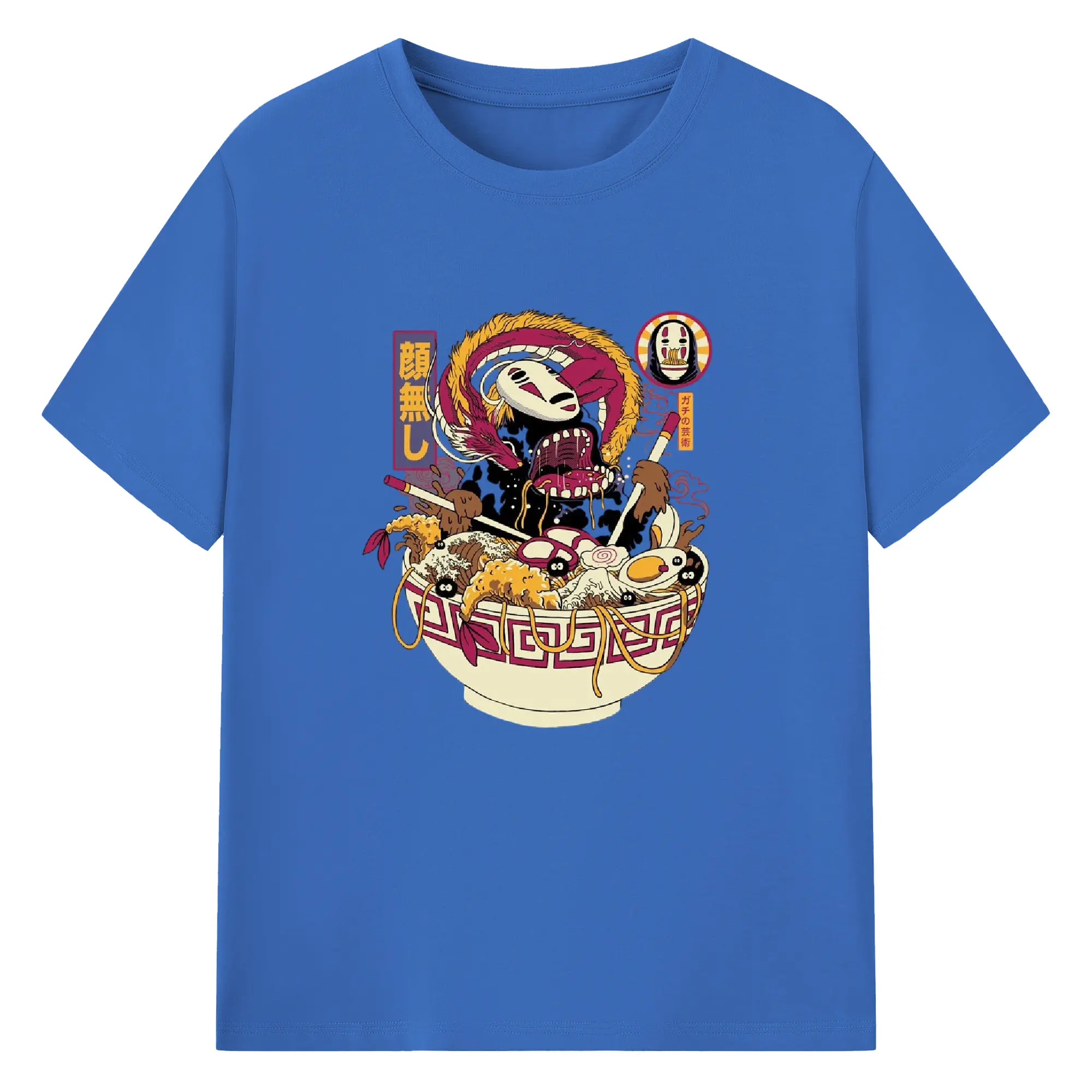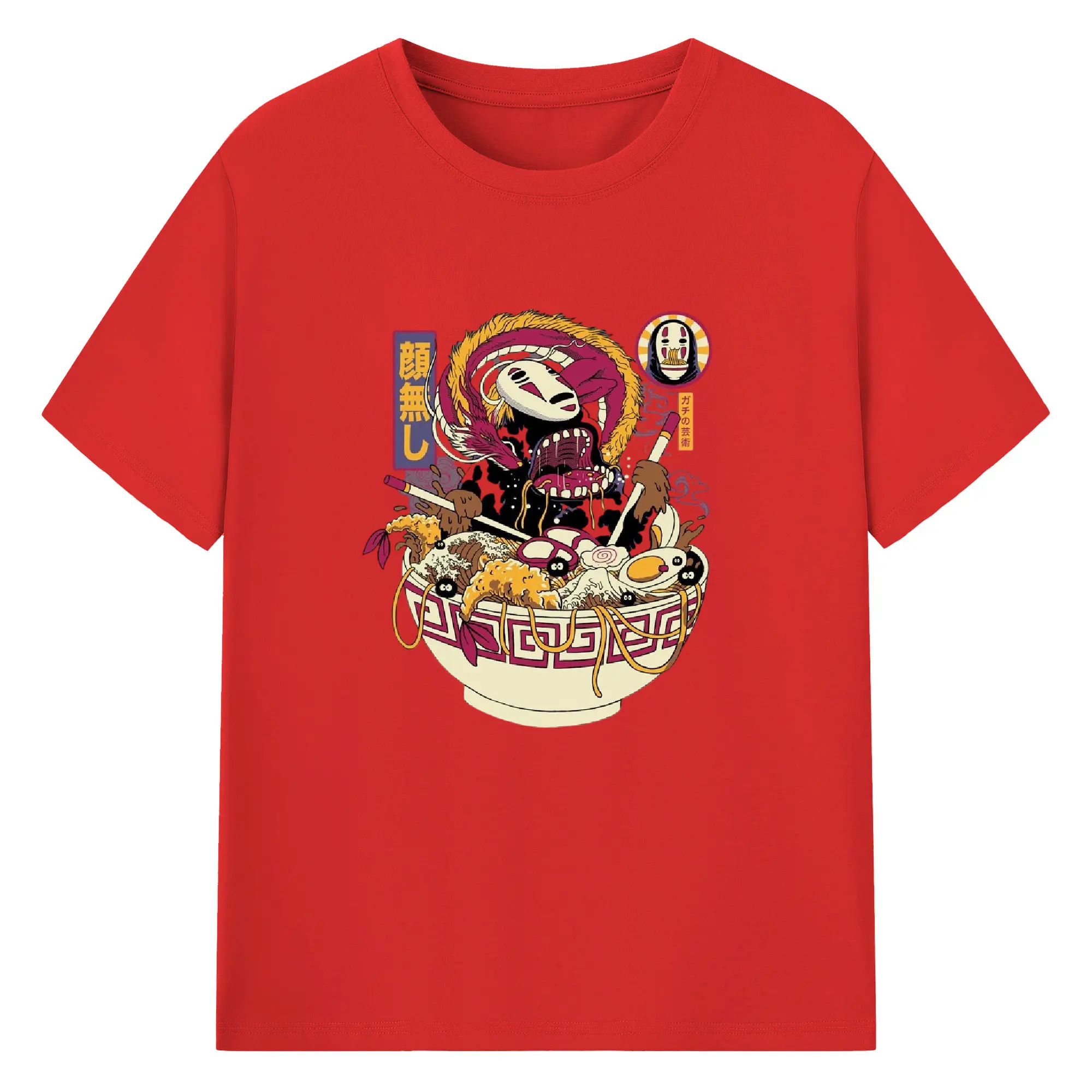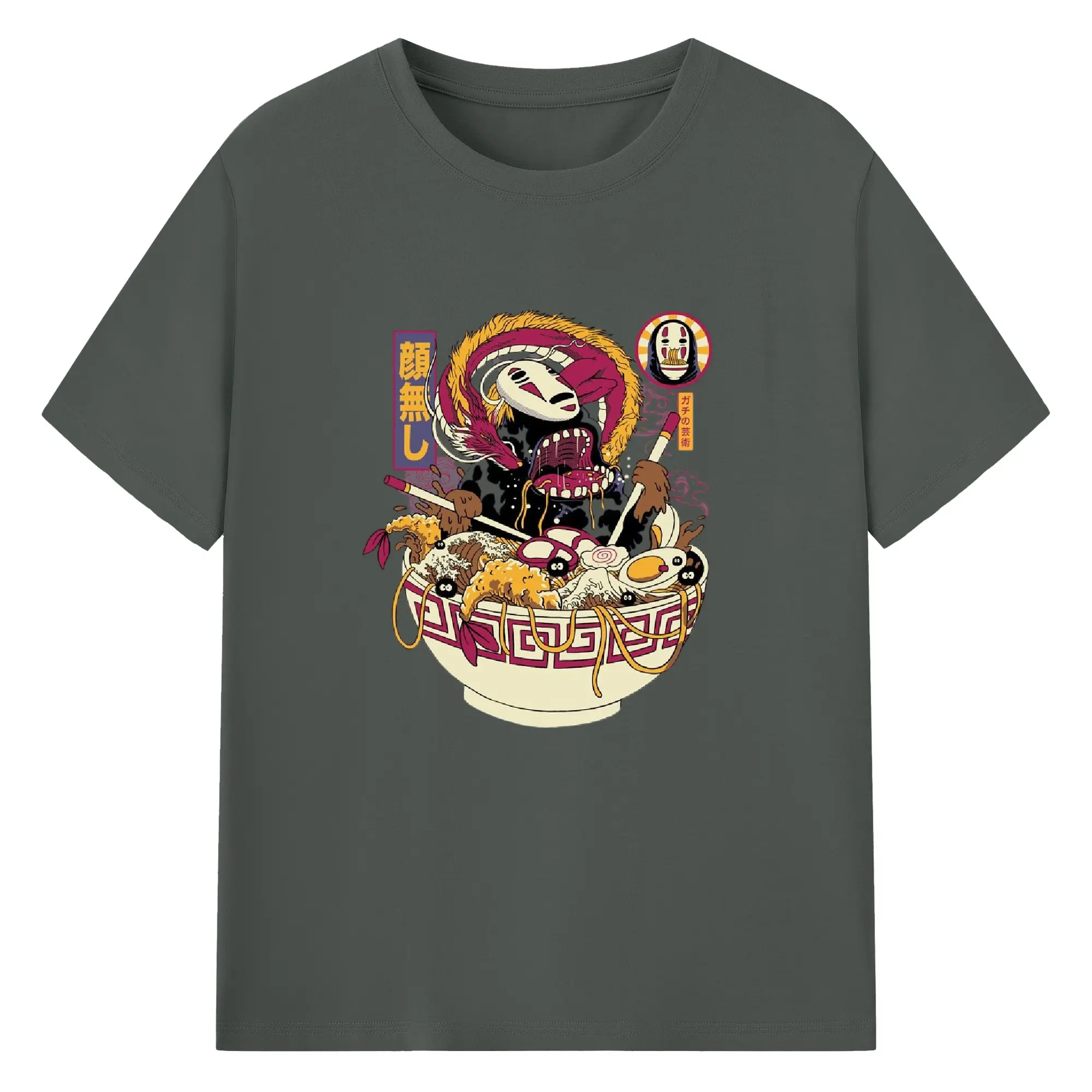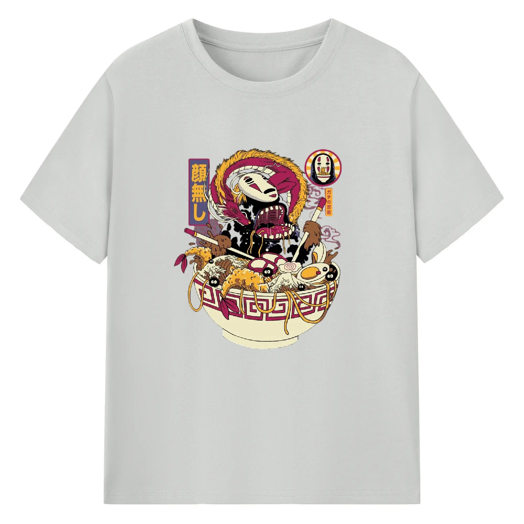 千と千尋の神隠し ラーメン特別限定 - 綿100% ヴィンテージ風 半袖Tシャツ ・ フロントプリント ・ 柔らか肌触り ・ 通気性 快適 ・ スポーツ カジュアル 外出用