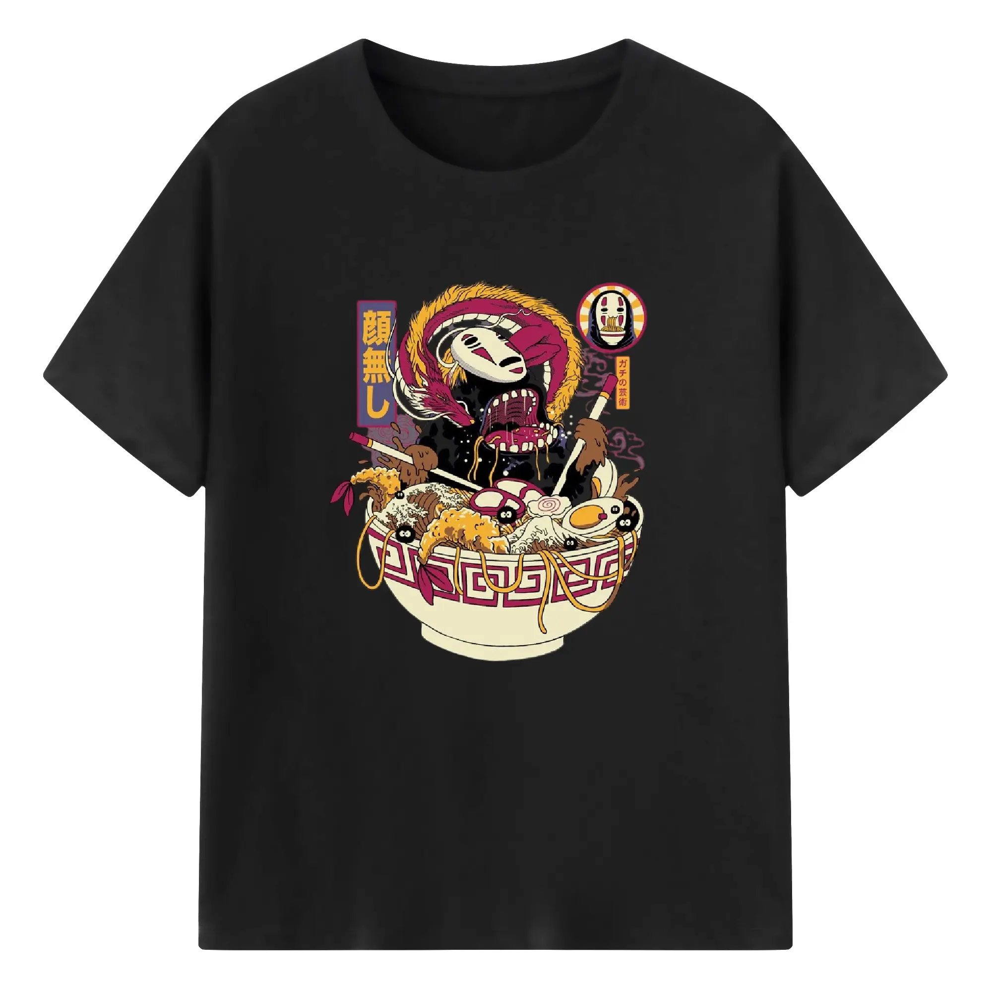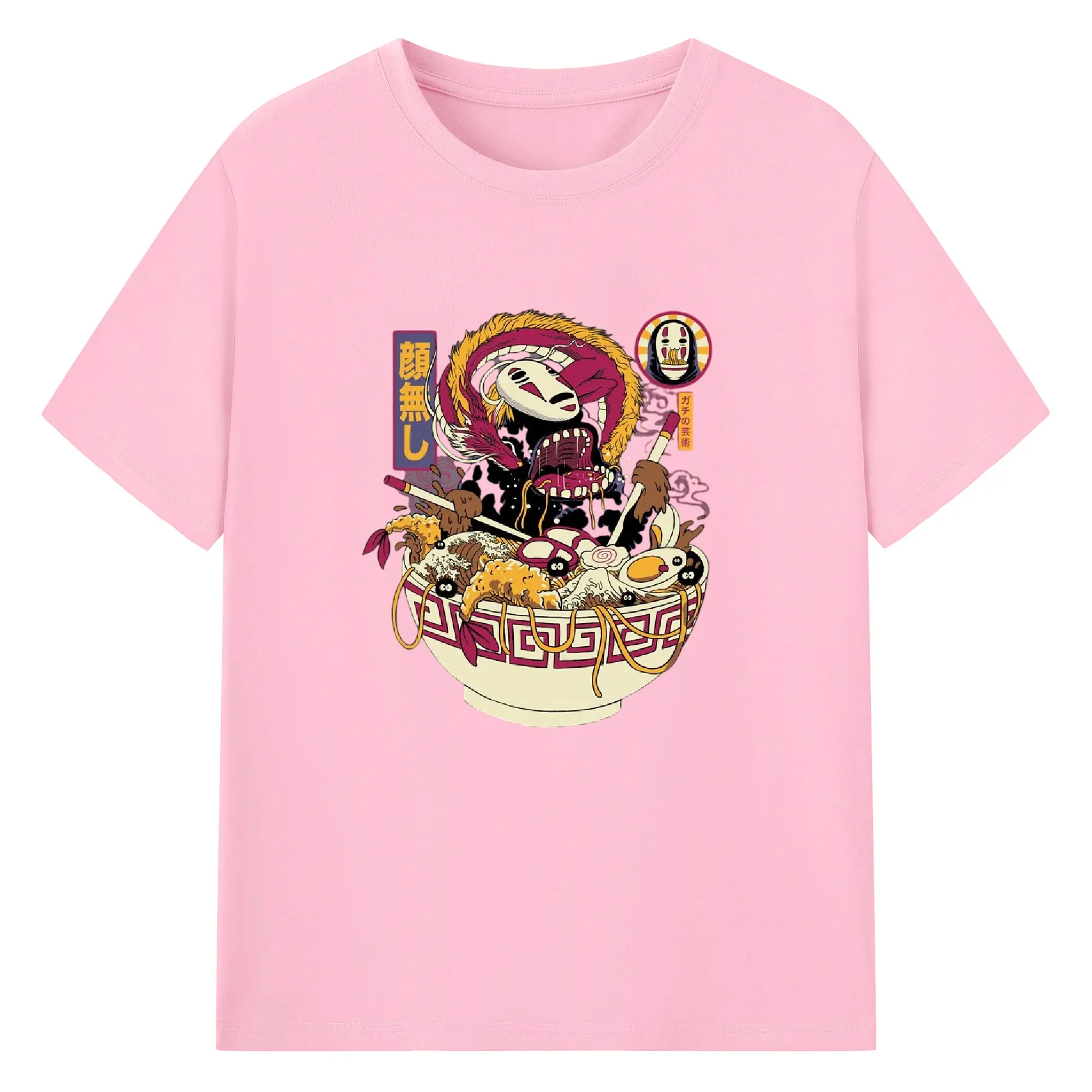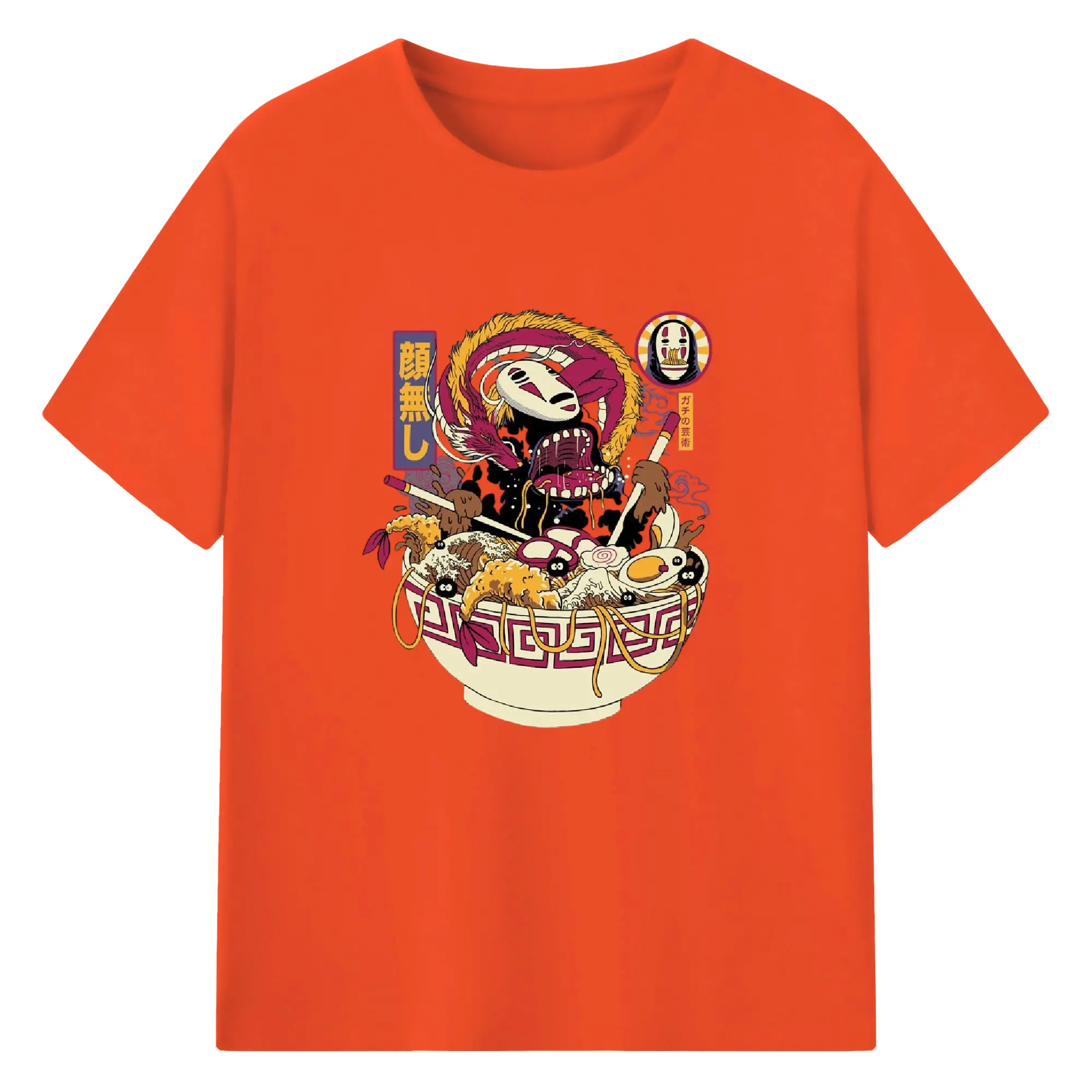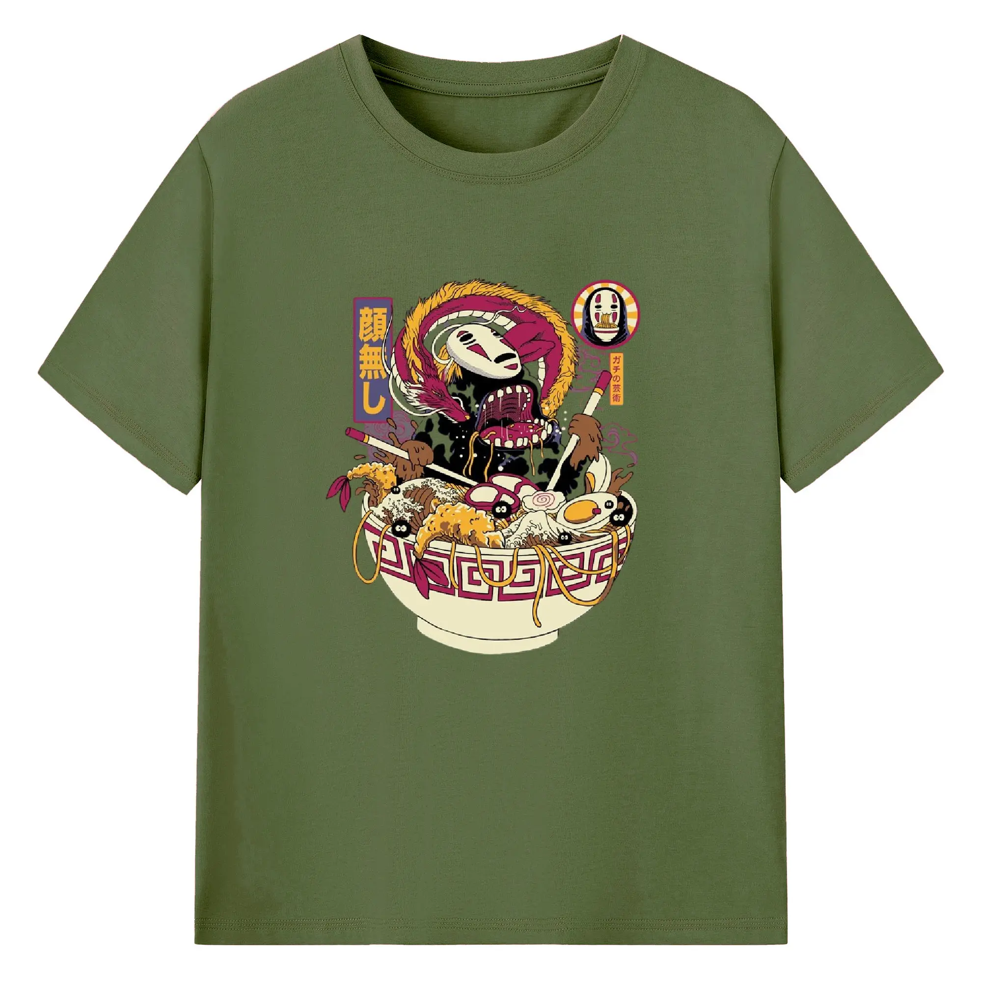 千と千尋の神隠し ラーメン特別限定 - 綿100% ヴィンテージ風 半袖Tシャツ ・ フロントプリント ・ 柔らか肌触り ・ 通気性 快適 ・ スポーツ カジュアル 外出用
