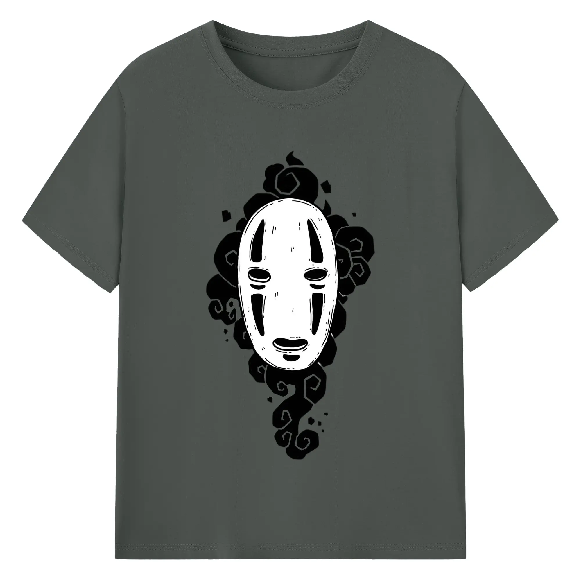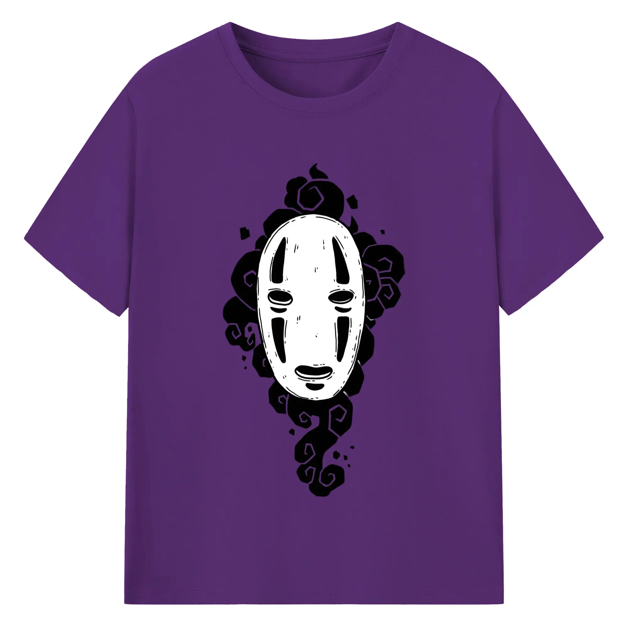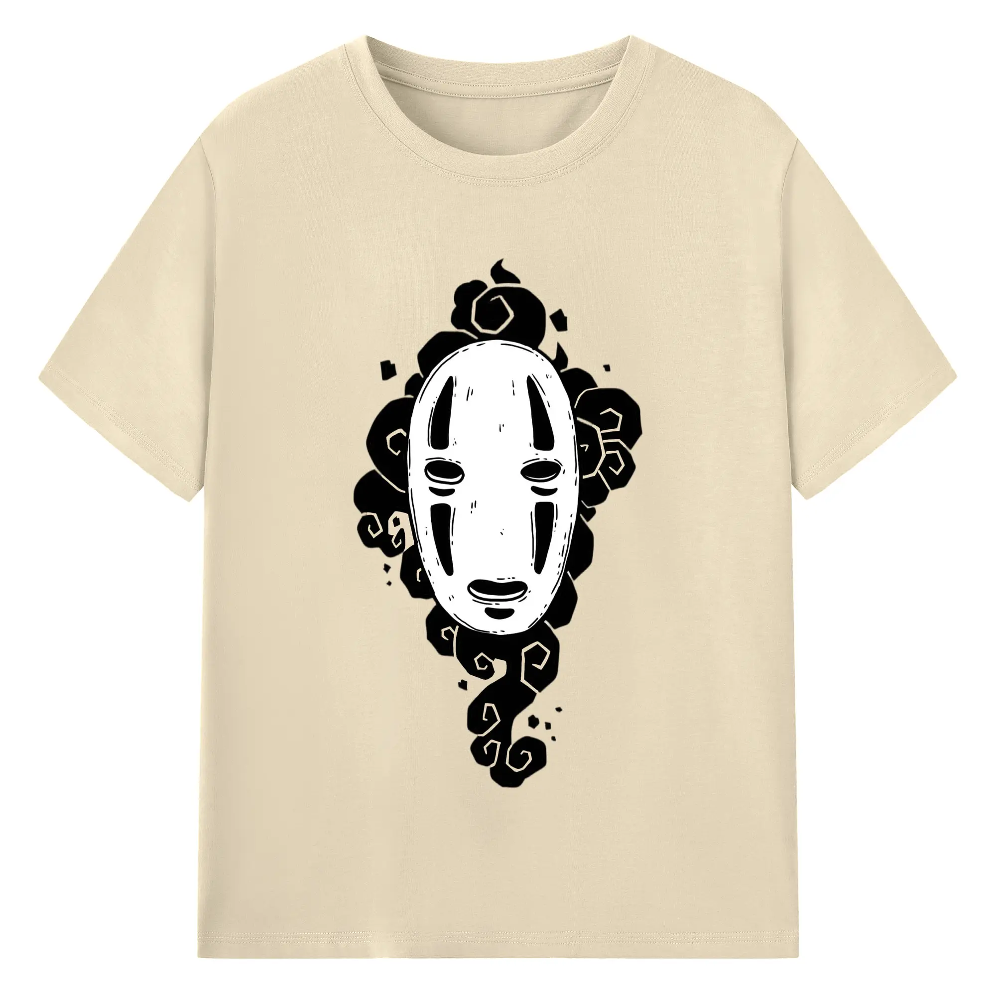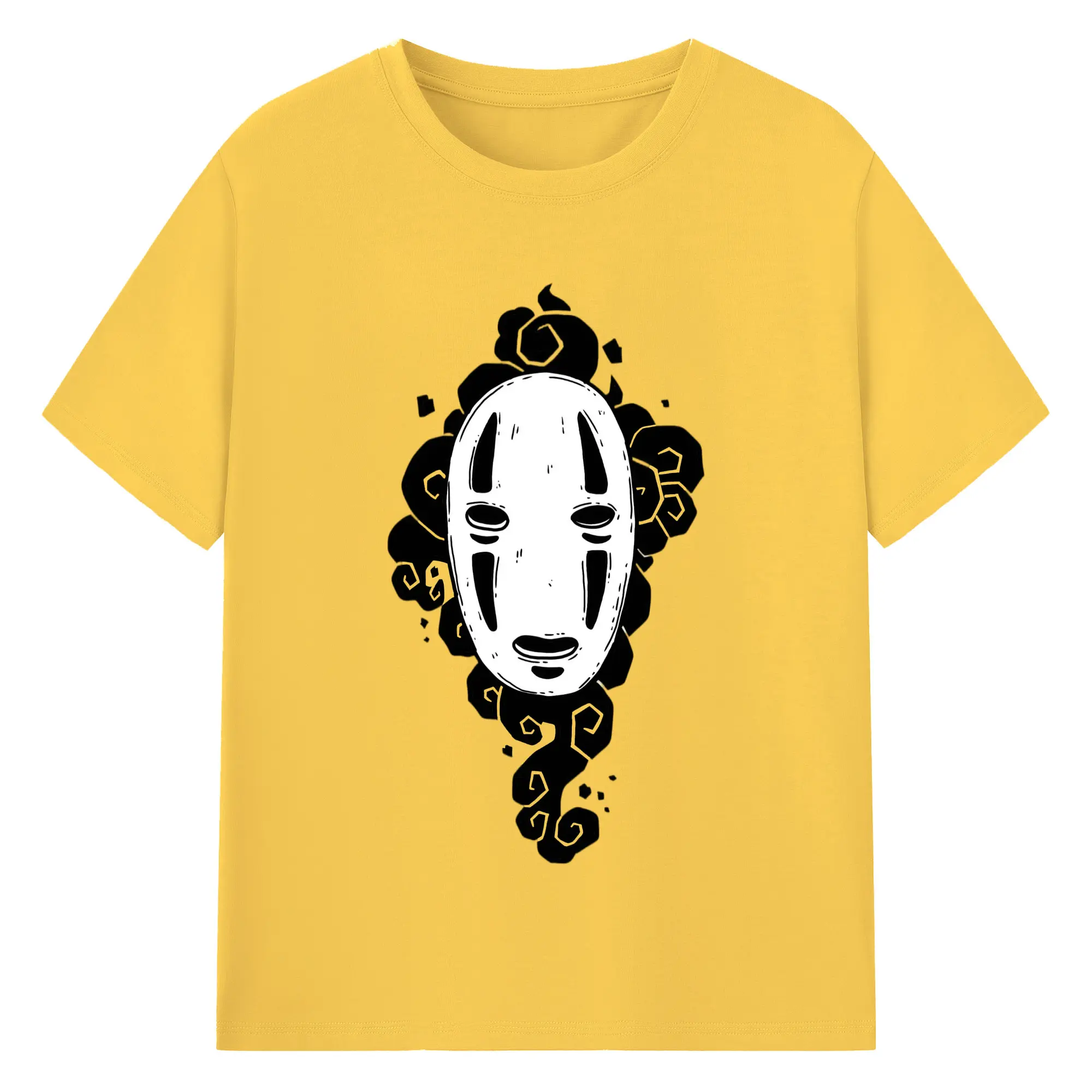 千と千尋の神隠し カオナシ - 綿100% ヴィンテージ風 半袖Tシャツ ・ フロントプリント ・ 柔らか肌触り ・ 通気性 快適 ・ スポーツ カジュアル 外出用
