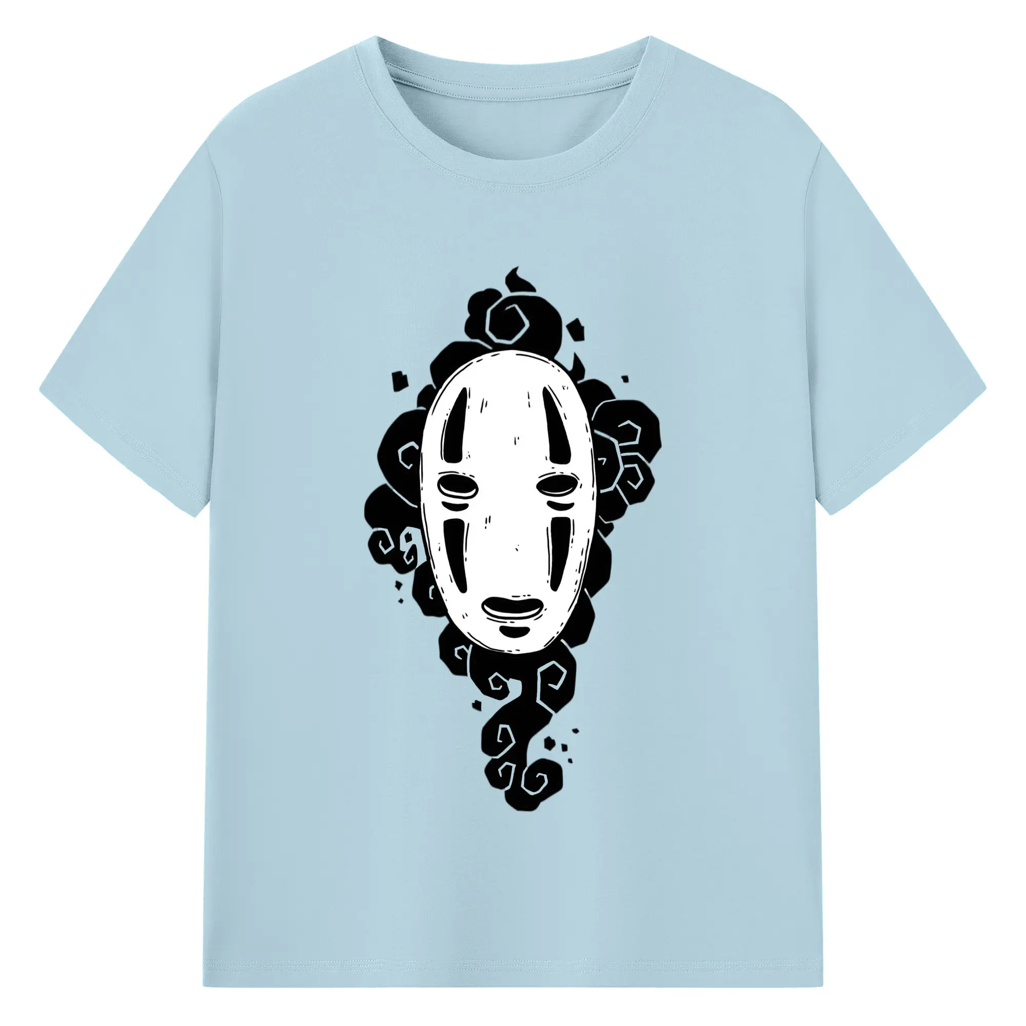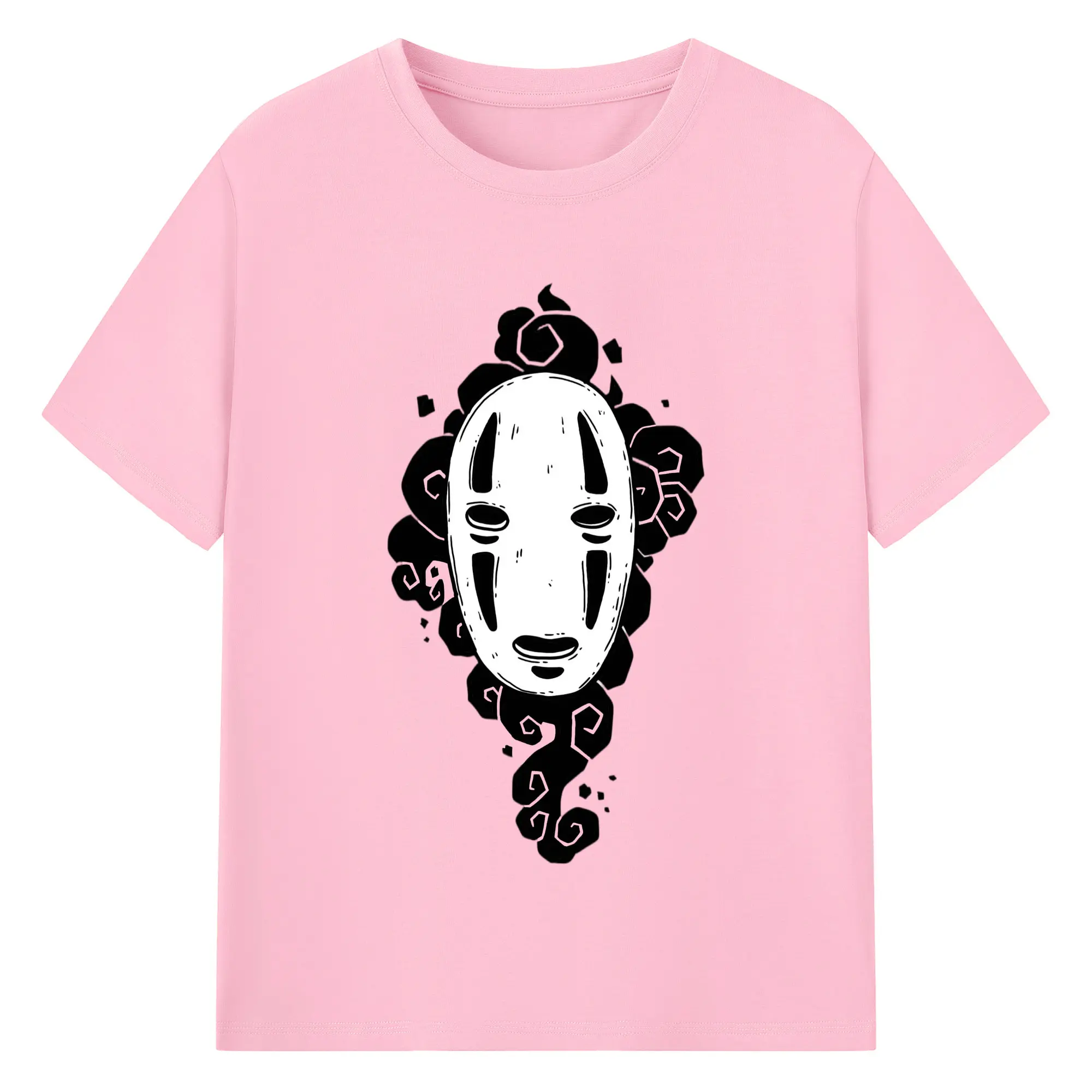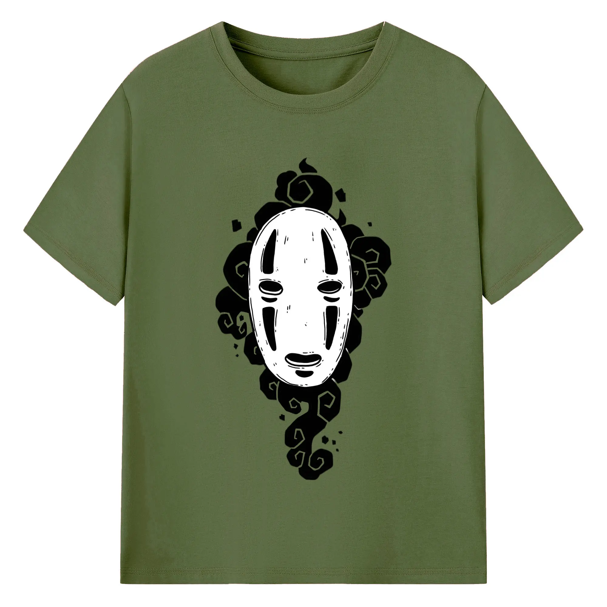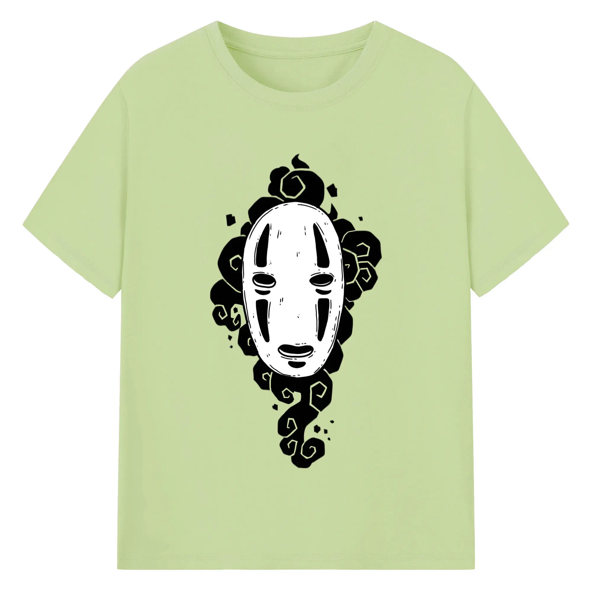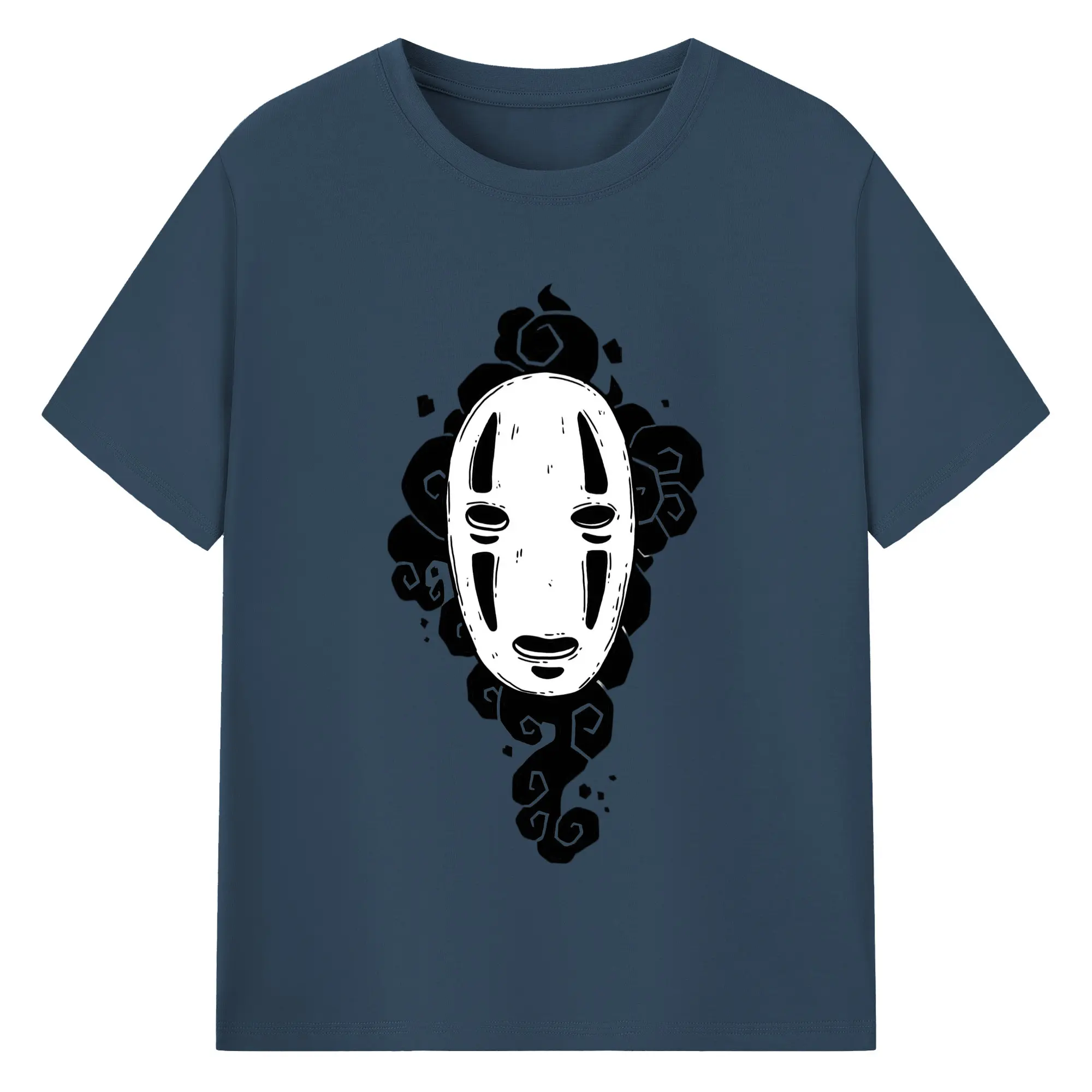 千と千尋の神隠し カオナシ - 綿100% ヴィンテージ風 半袖Tシャツ ・ フロントプリント ・ 柔らか肌触り ・ 通気性 快適 ・ スポーツ カジュアル 外出用