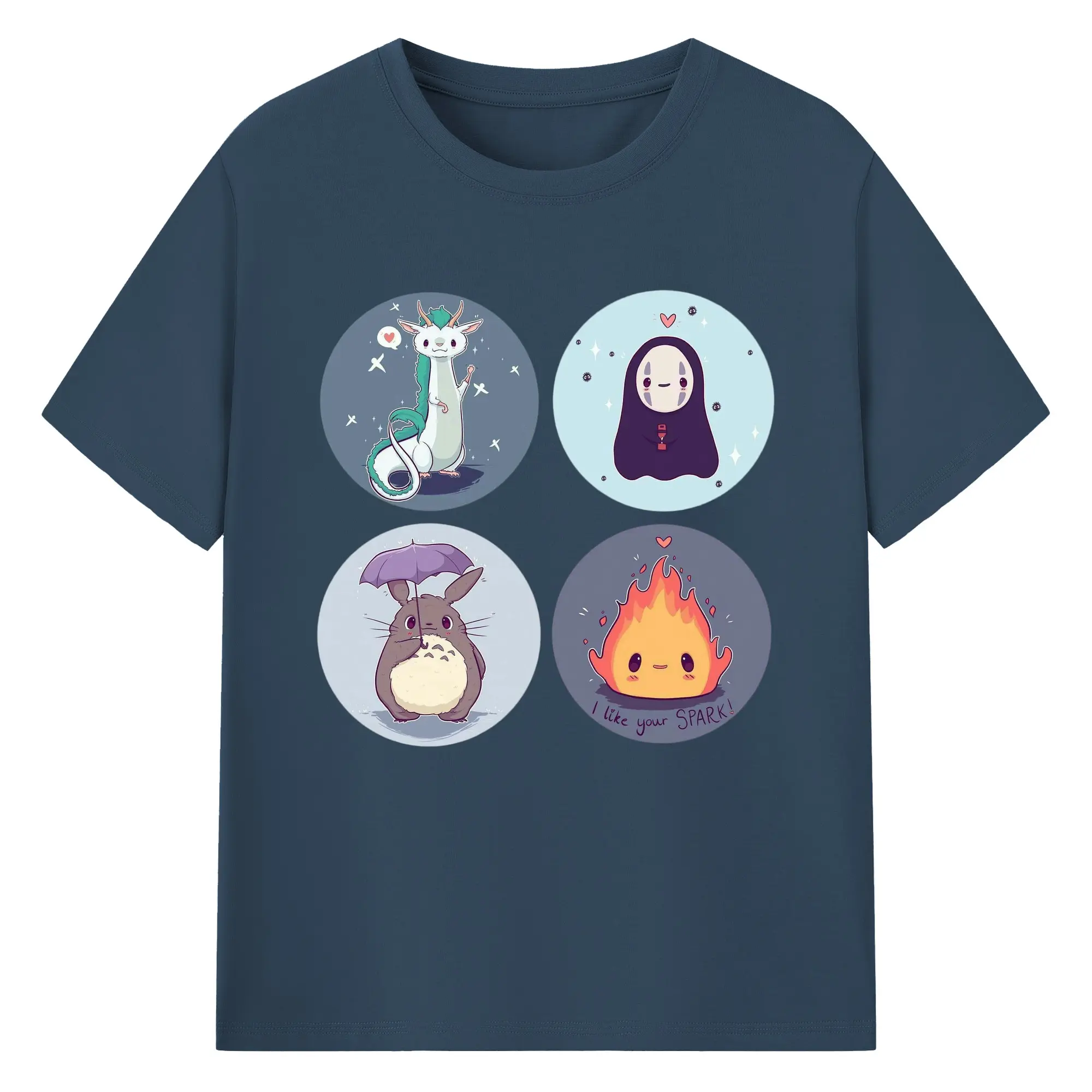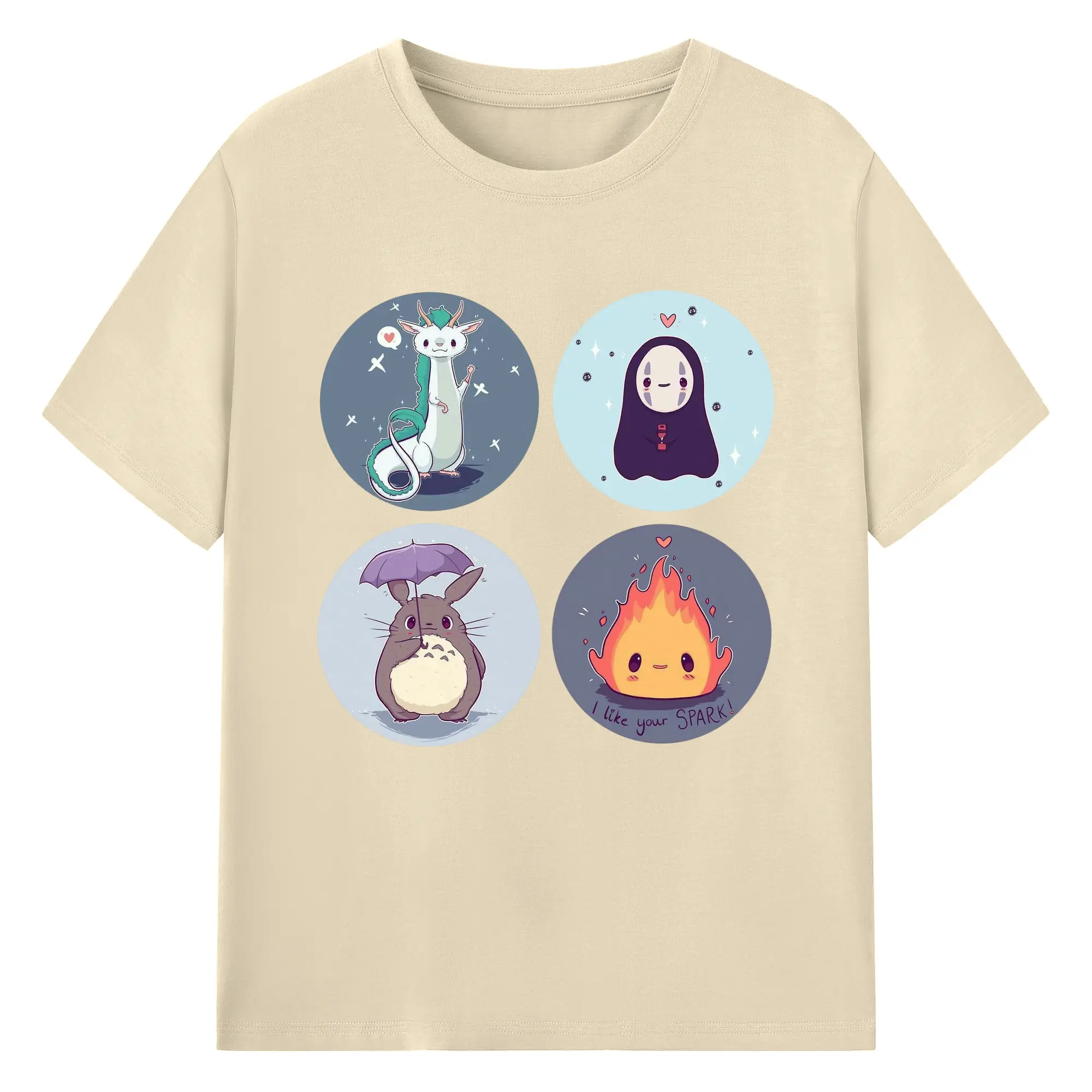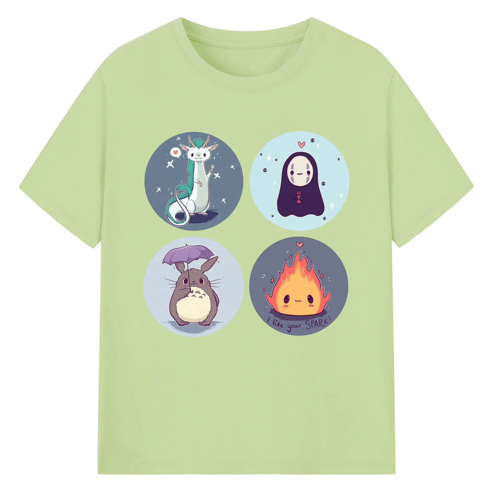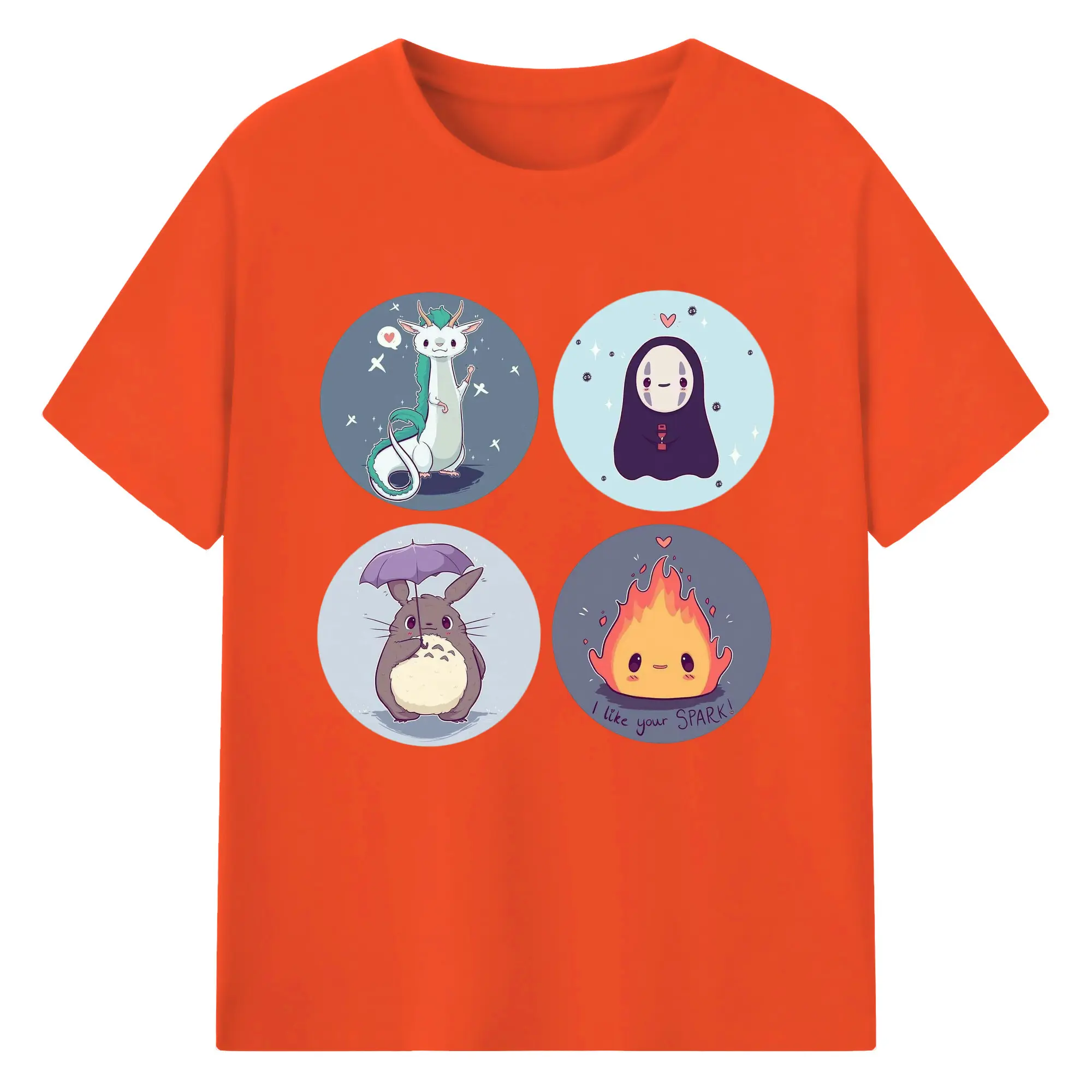 千と千尋の神隠し宮崎駿監督作品コラボ - 綿100% ヴィンテージ風 半袖Tシャツ ・ フロントプリント ・ 柔らか肌触り ・ 通気性 快適 ・ スポーツ カジュアル 外出用