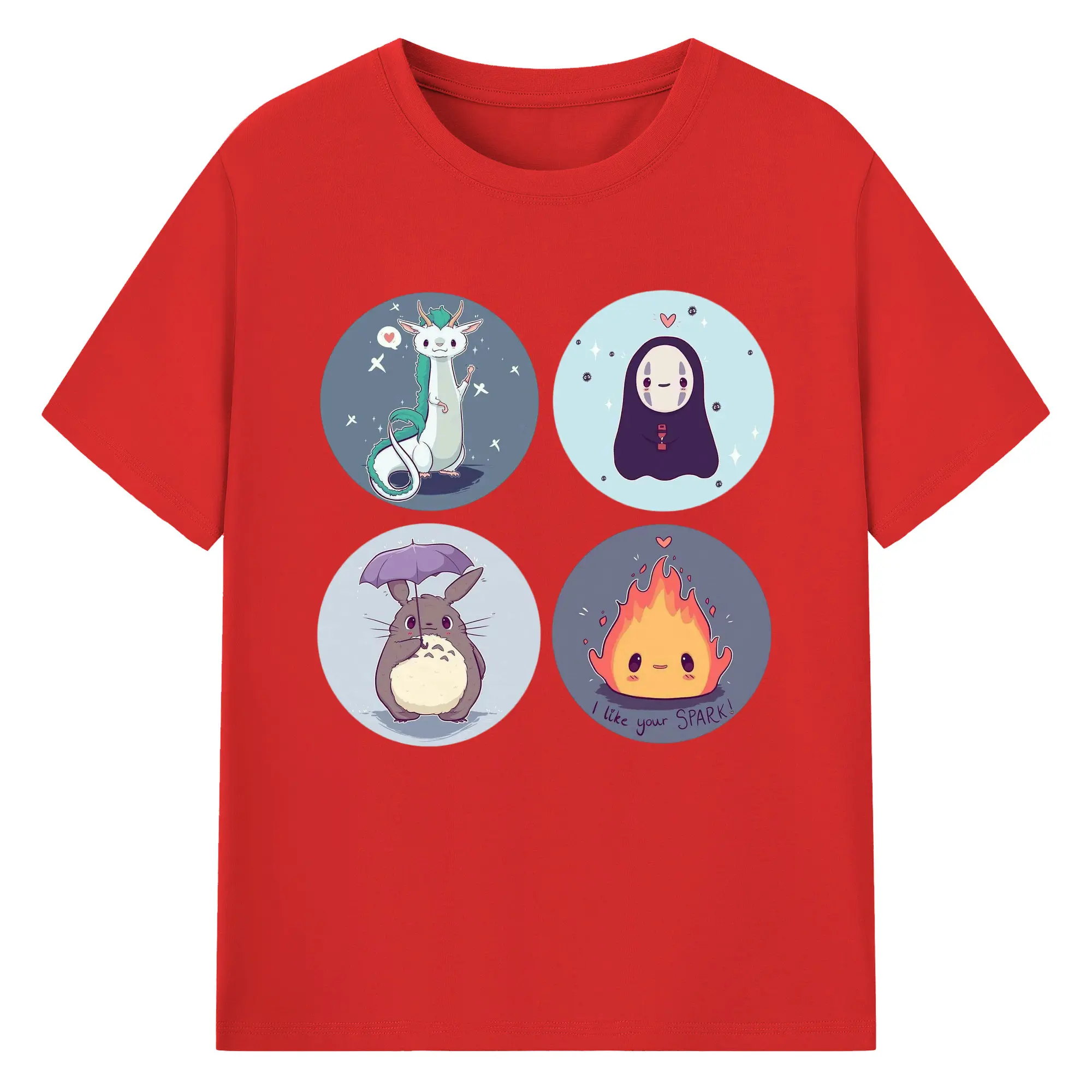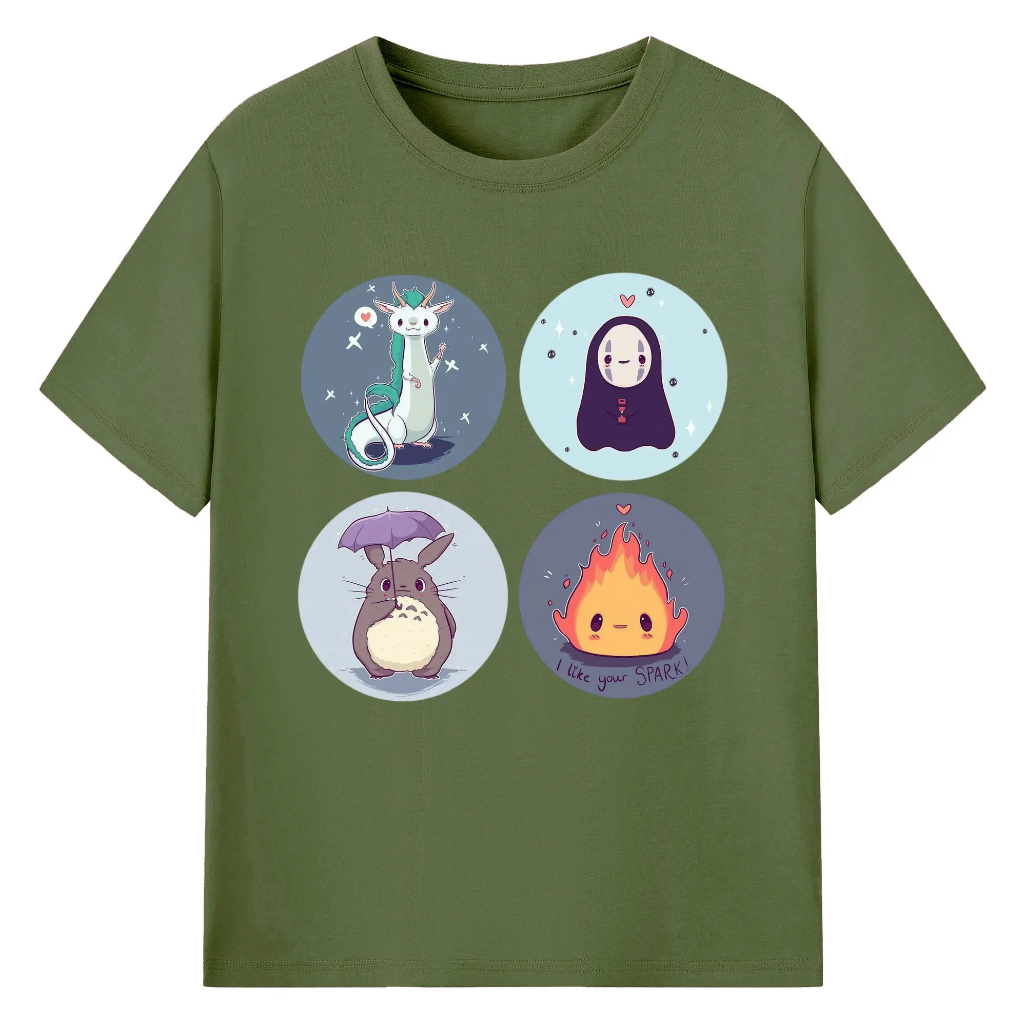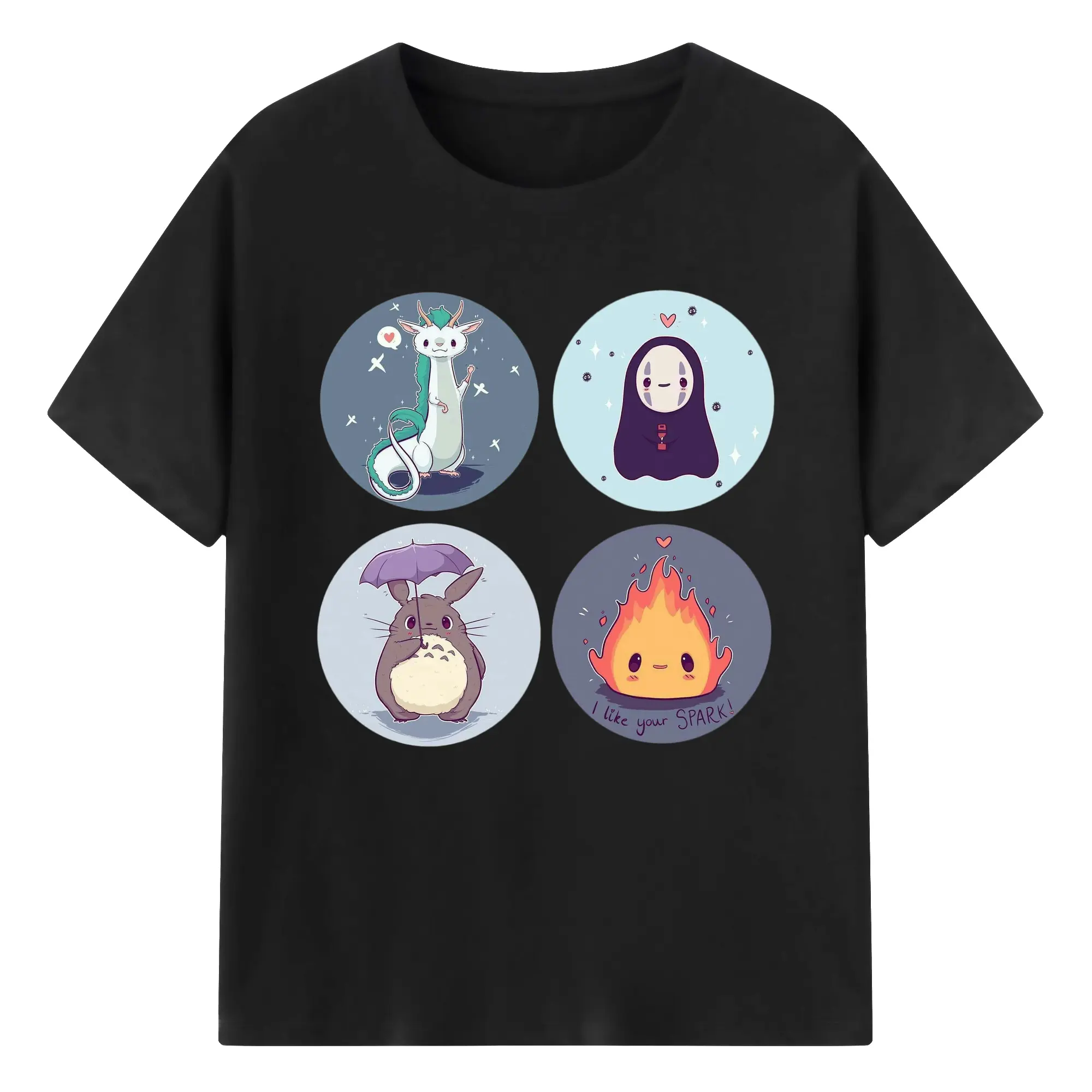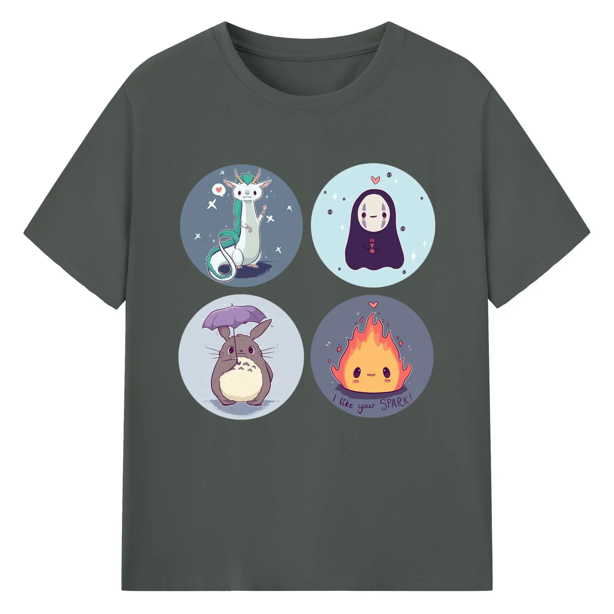 千と千尋の神隠し宮崎駿監督作品コラボ - 綿100% ヴィンテージ風 半袖Tシャツ ・ フロントプリント ・ 柔らか肌触り ・ 通気性 快適 ・ スポーツ カジュアル 外出用