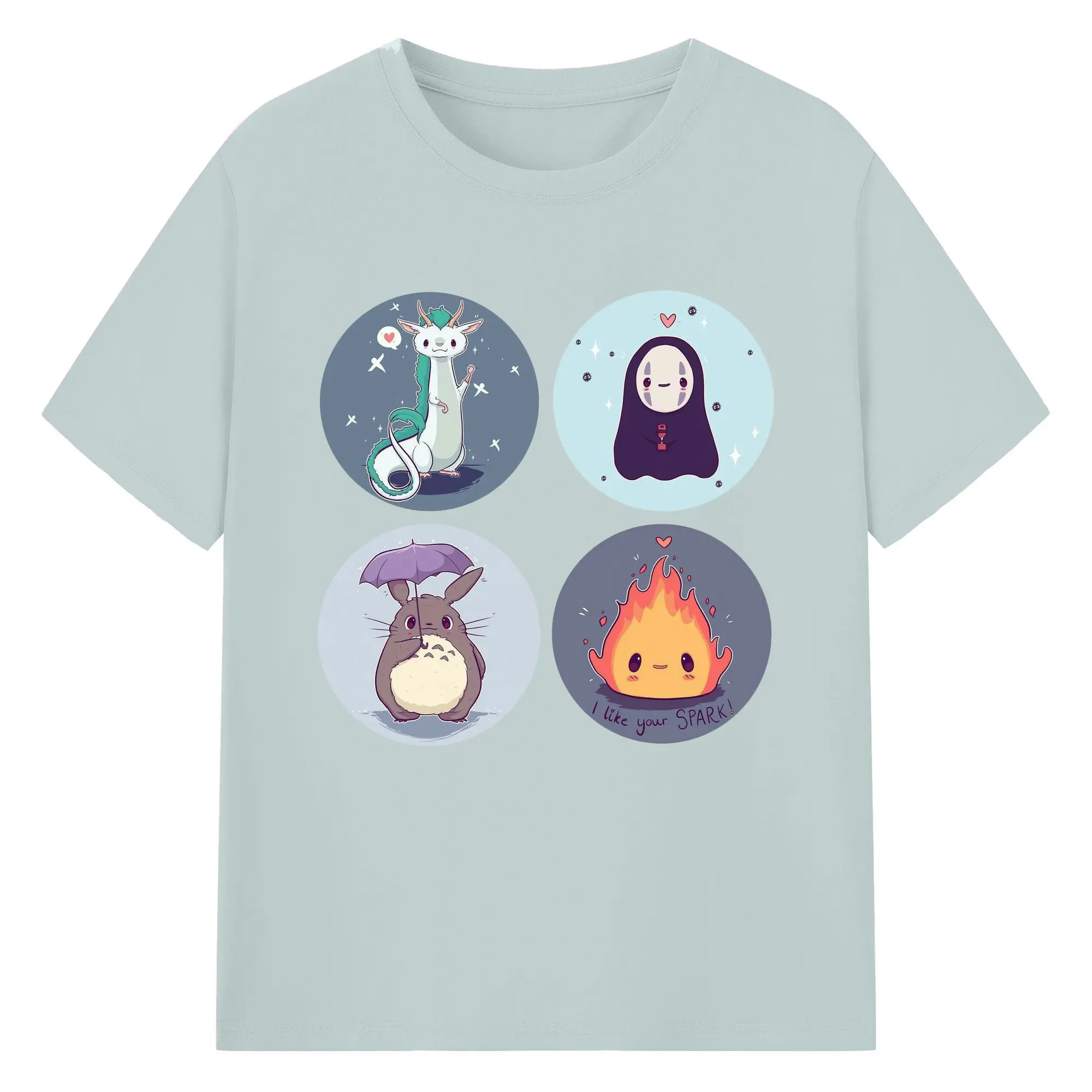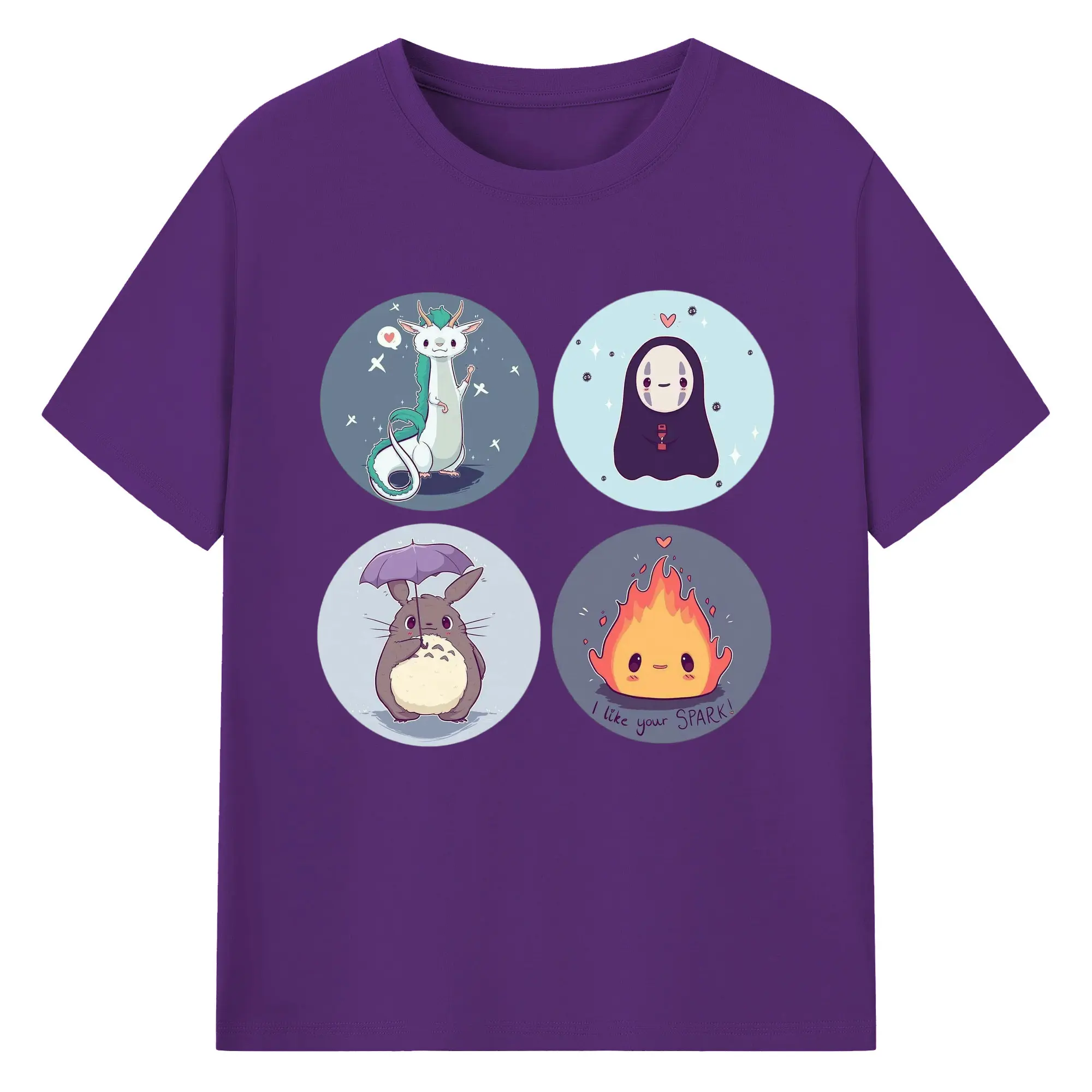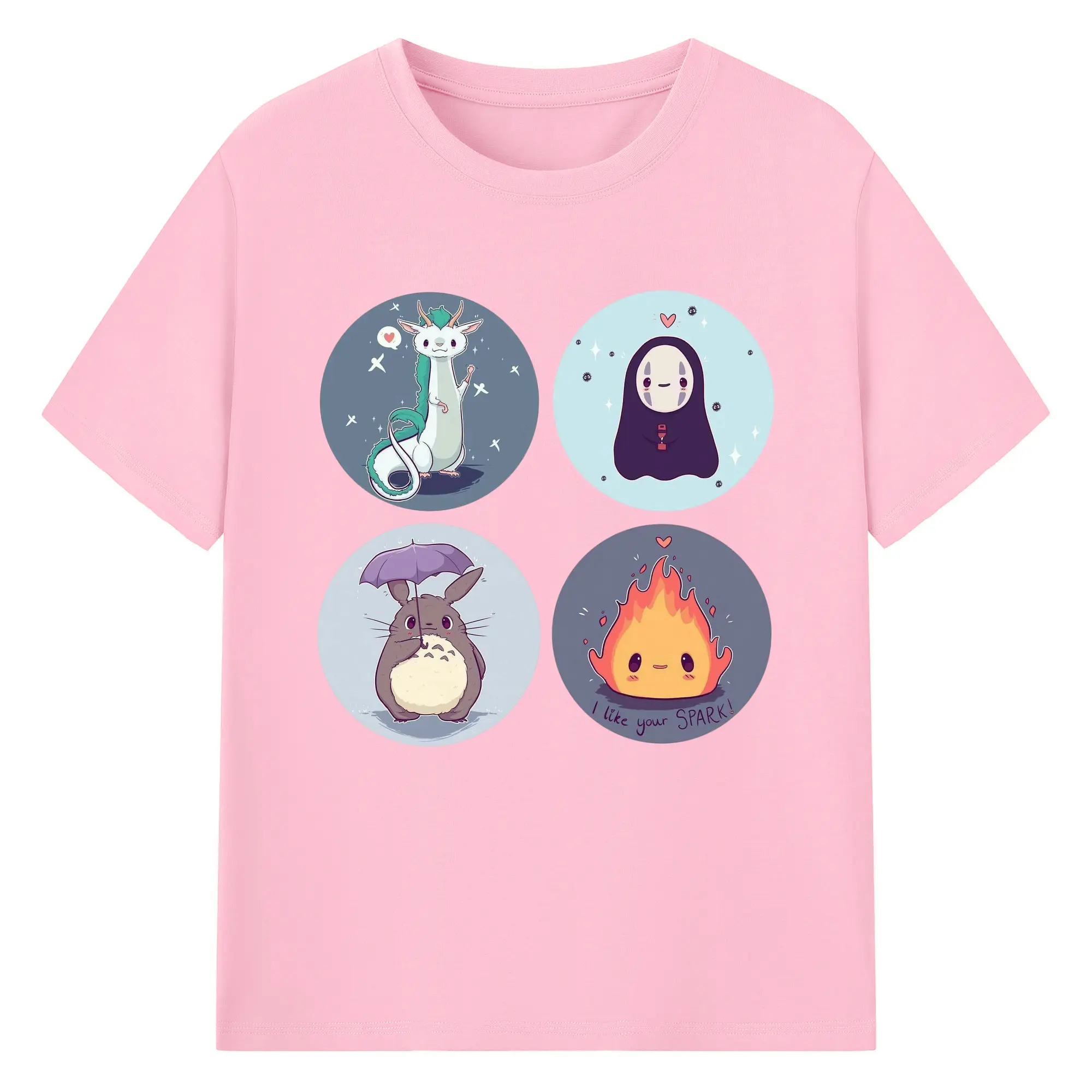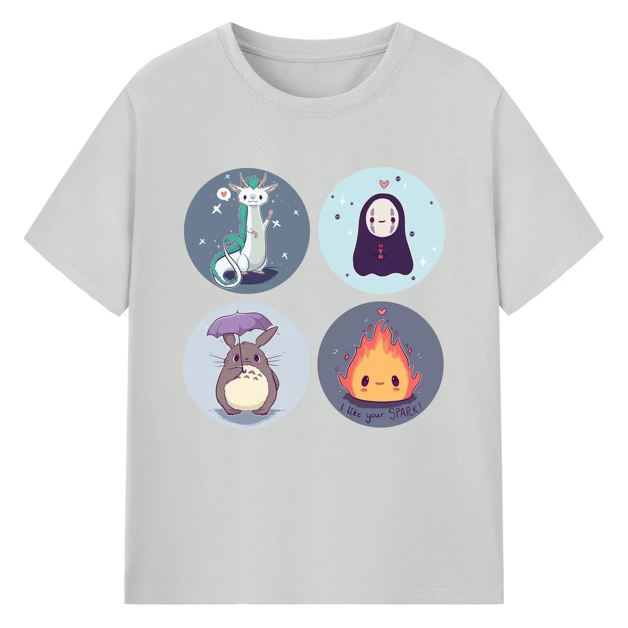 千と千尋の神隠し宮崎駿監督作品コラボ - 綿100% ヴィンテージ風 半袖Tシャツ ・ フロントプリント ・ 柔らか肌触り ・ 通気性 快適 ・ スポーツ カジュアル 外出用